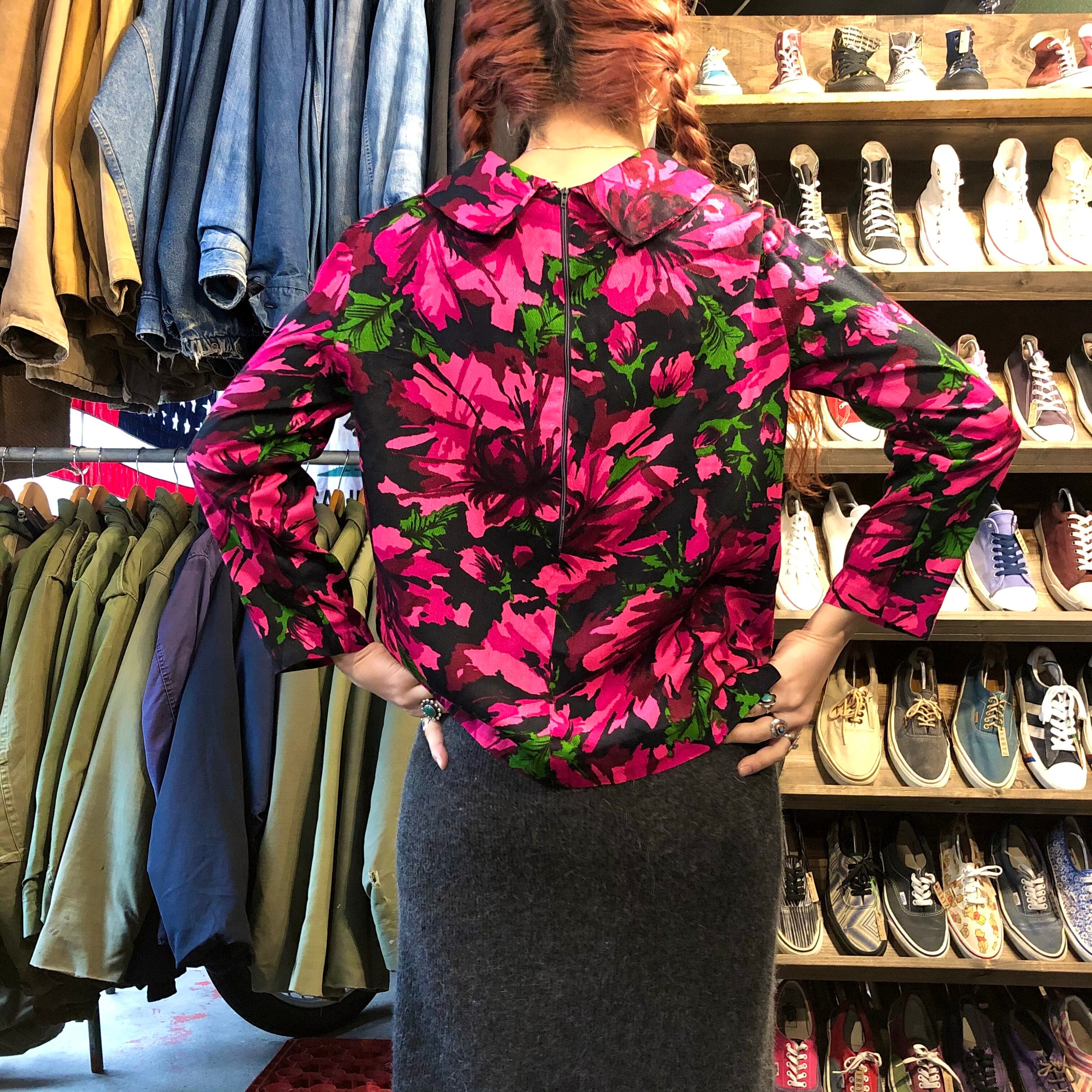 大きいお花の柄がかわいいプルオーバータイプのブラウスです。