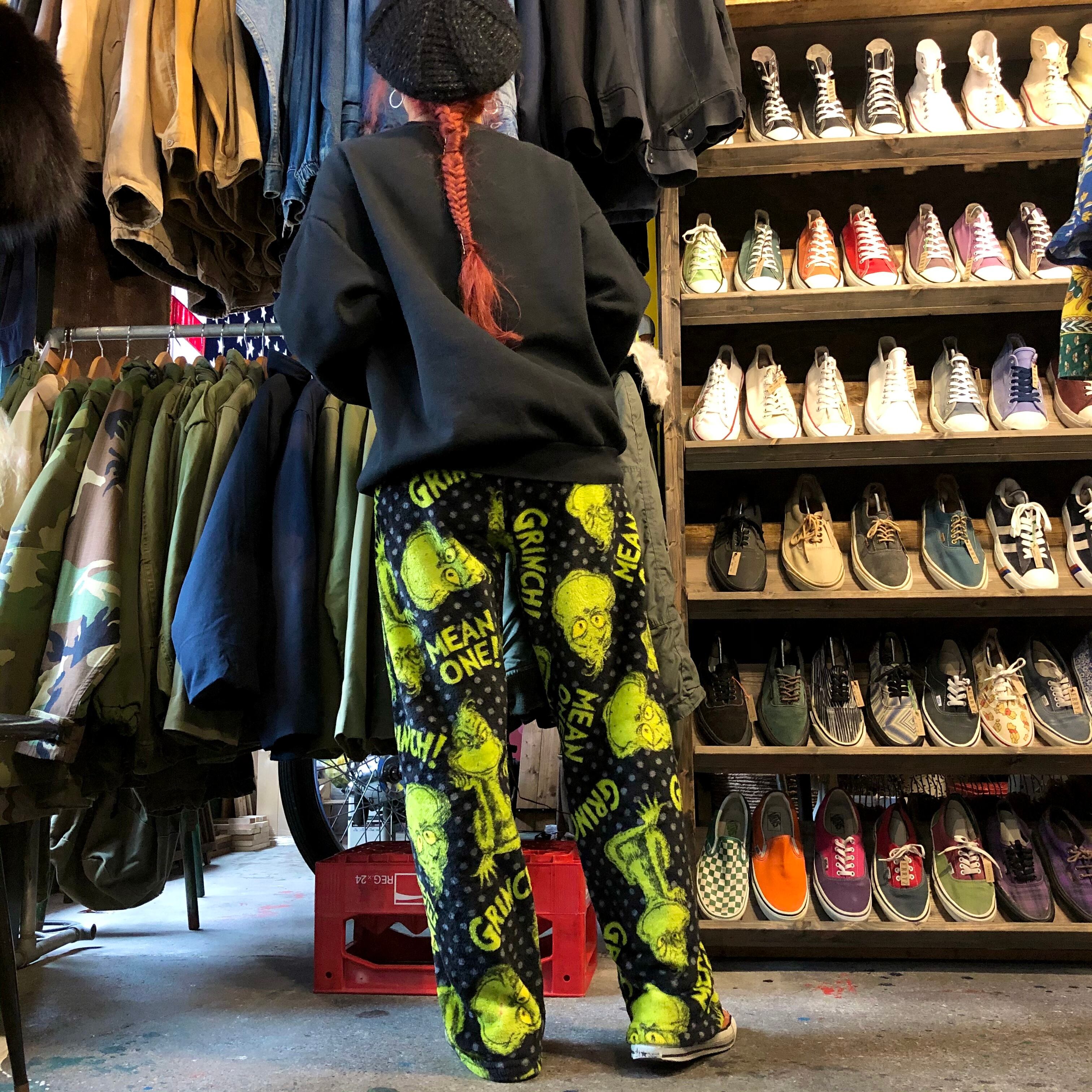 アメリカの絵本のキャラクター、グリンチ柄のイージーパンツです。