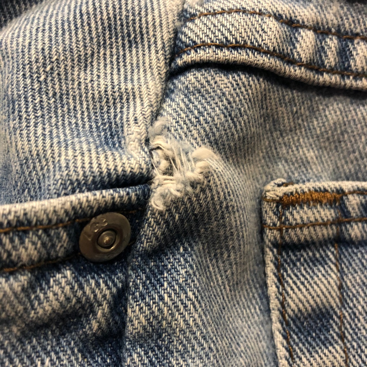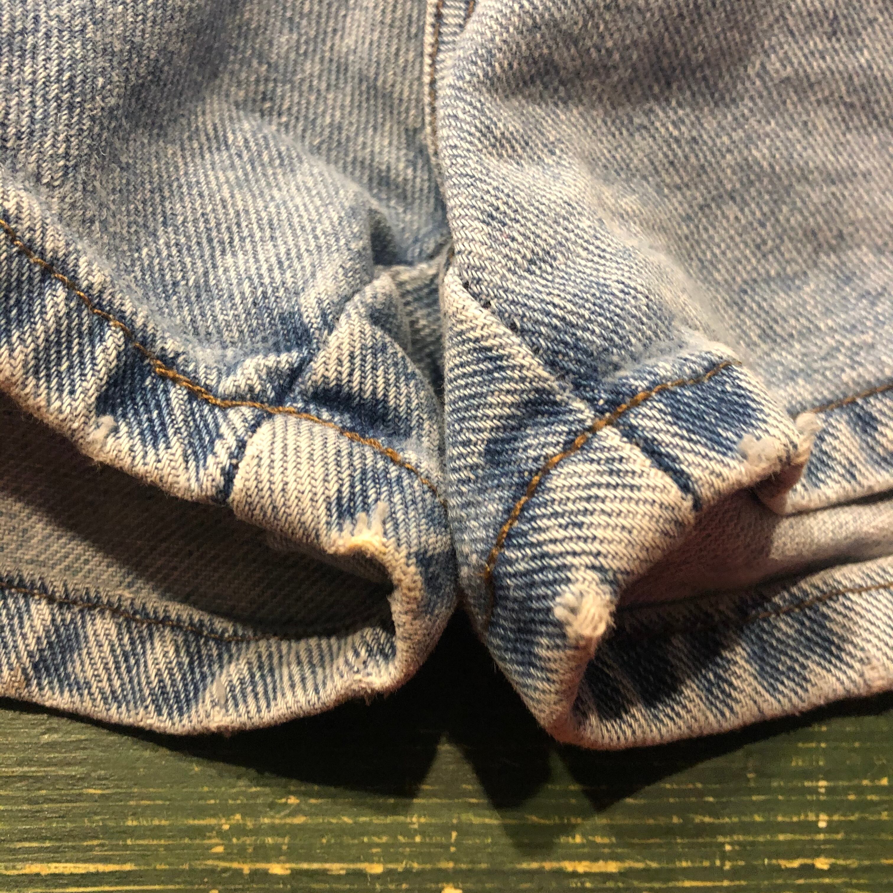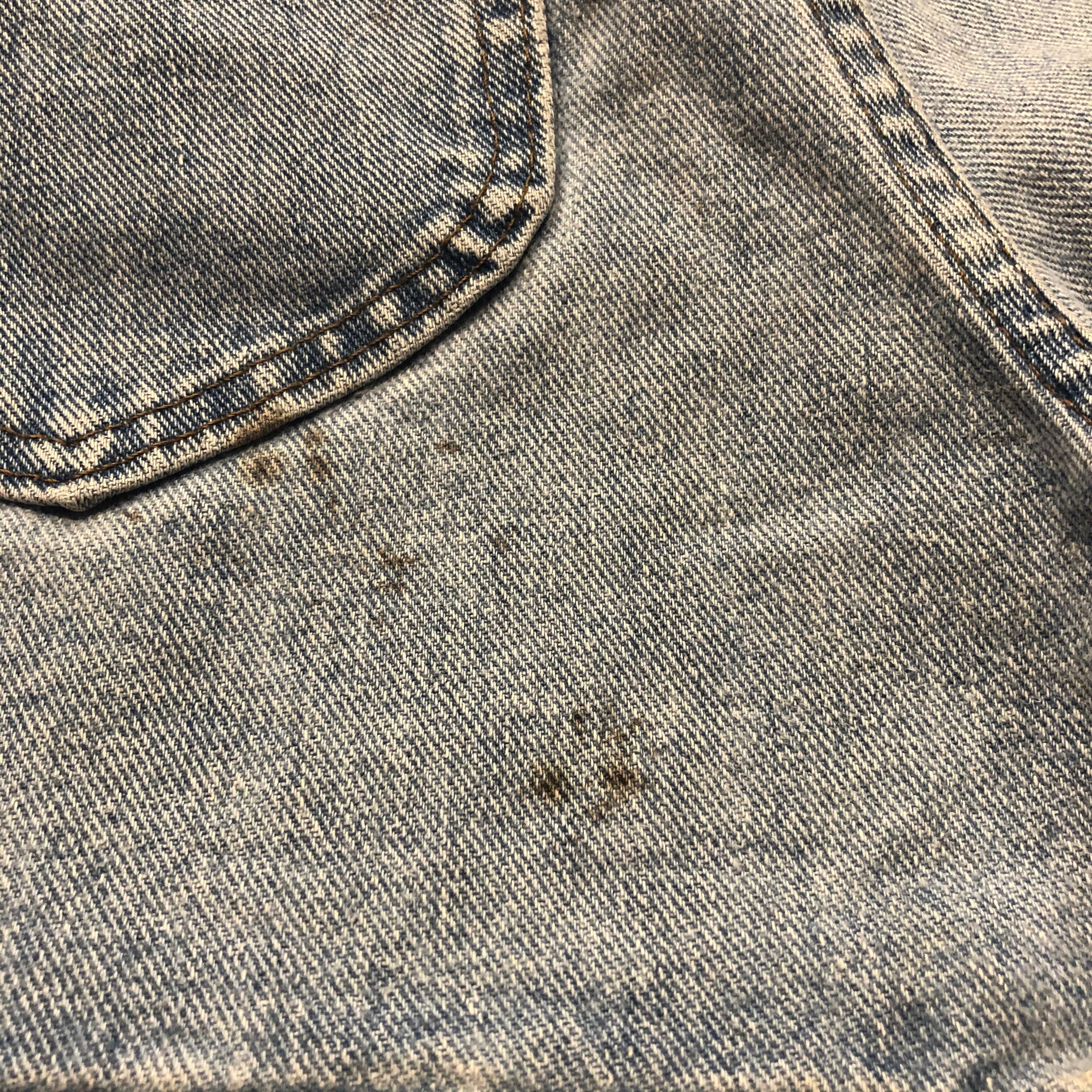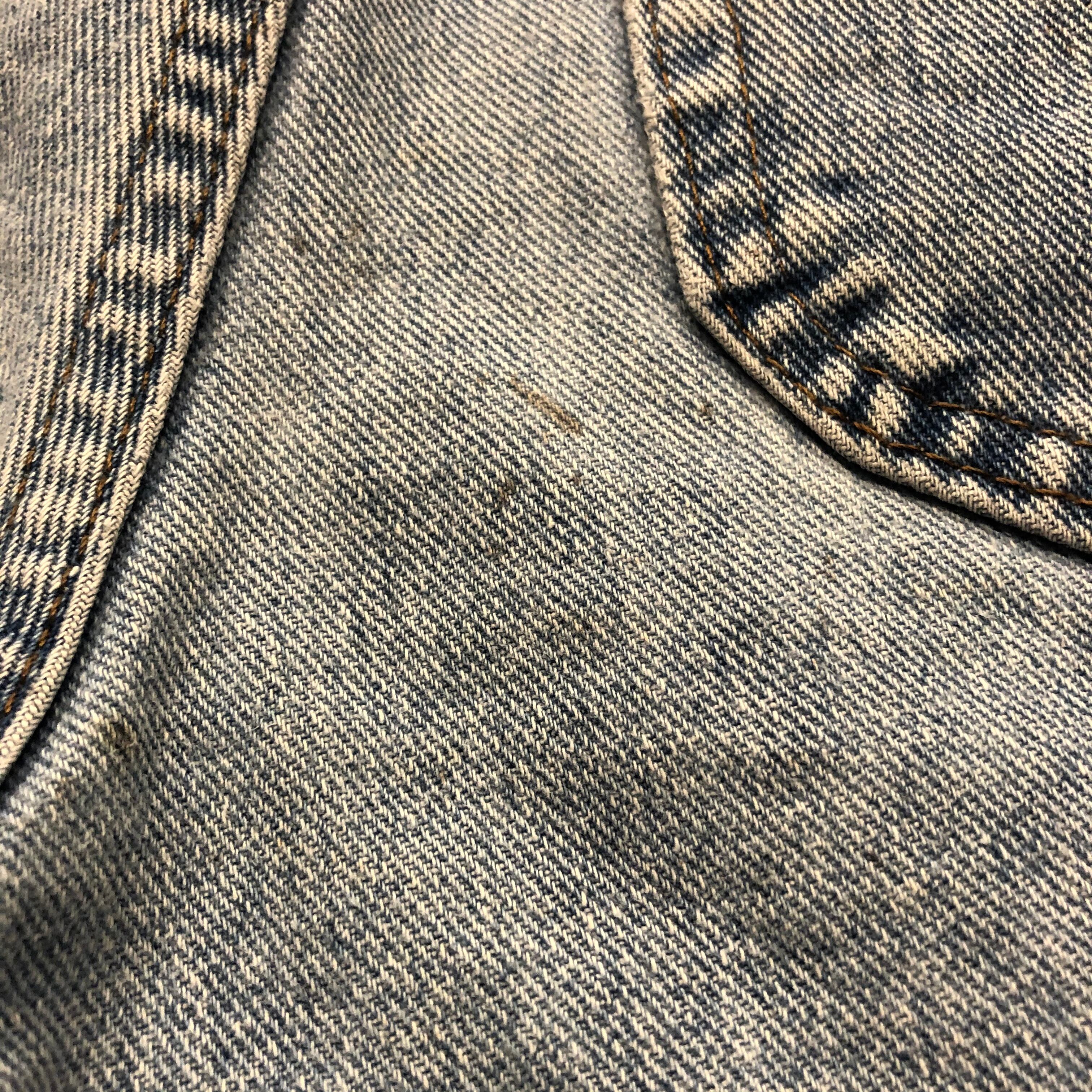 左脇ピンホール、擦れ多数、後ろに茶色いシミがあります。古着にご理解のある方のご購入をお願い致します。