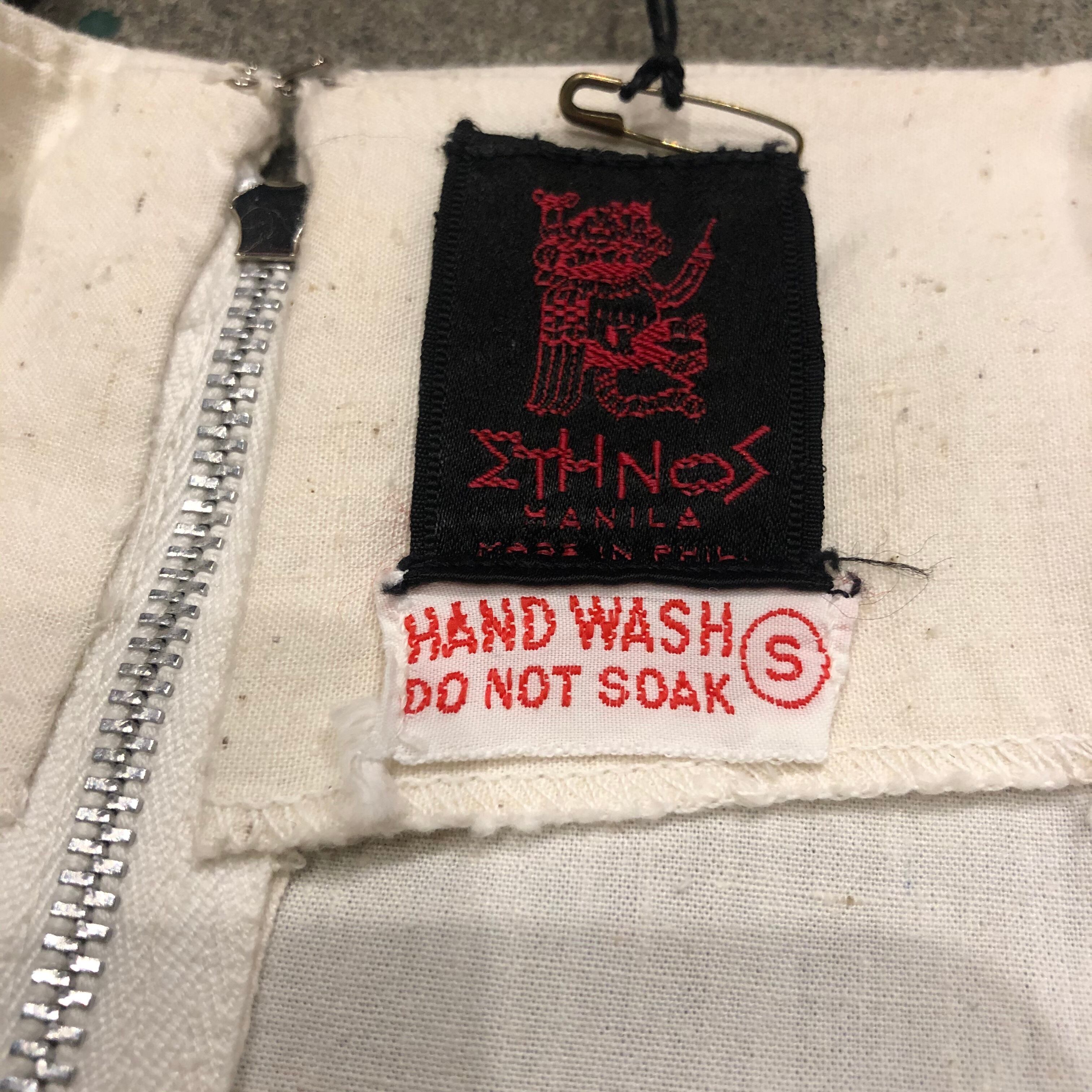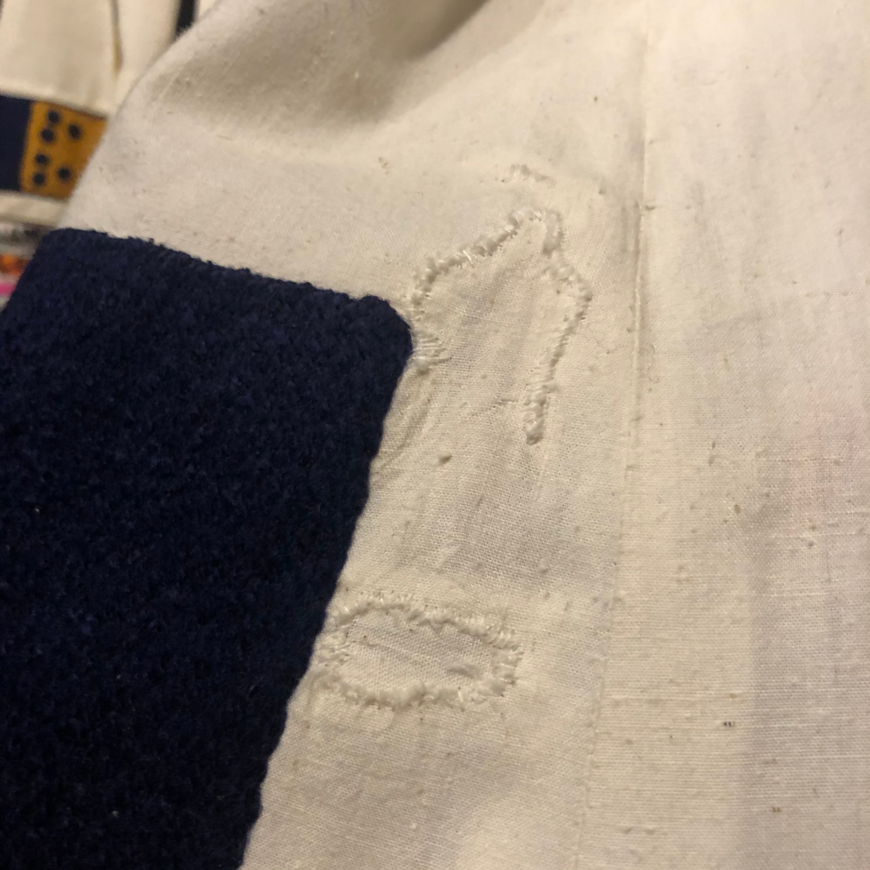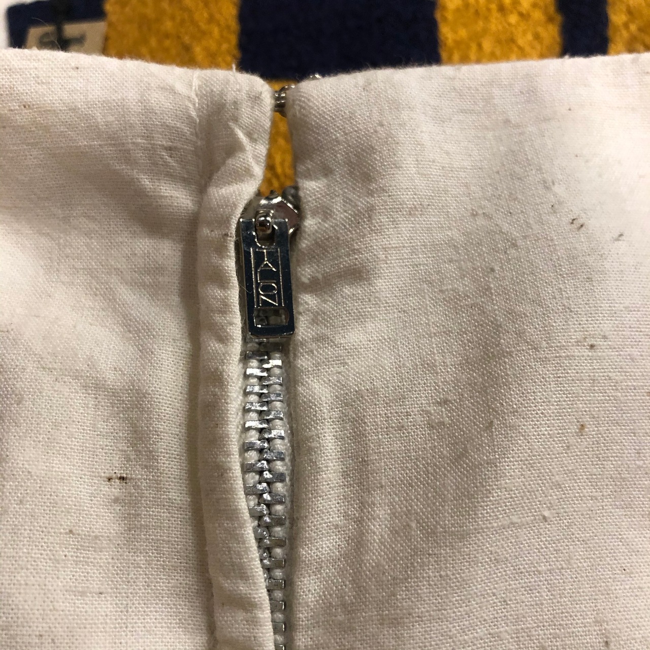 左脇太もも下あたりにかなりダメージがあり、リペアしてあります。左袖口にやや黄ばみがあります。写真をご確認の上、古着にご理解のある方のご購入をお願い致します。
