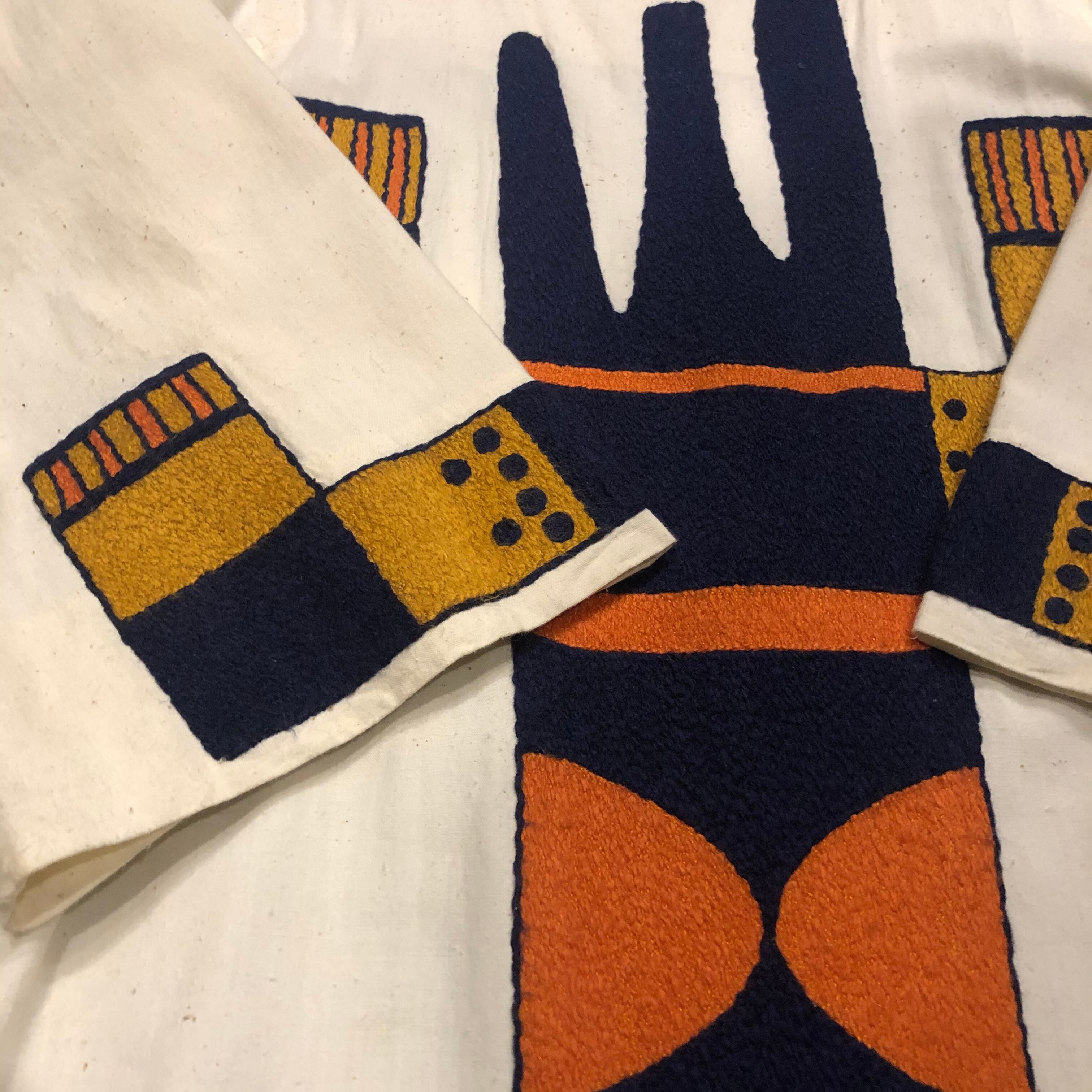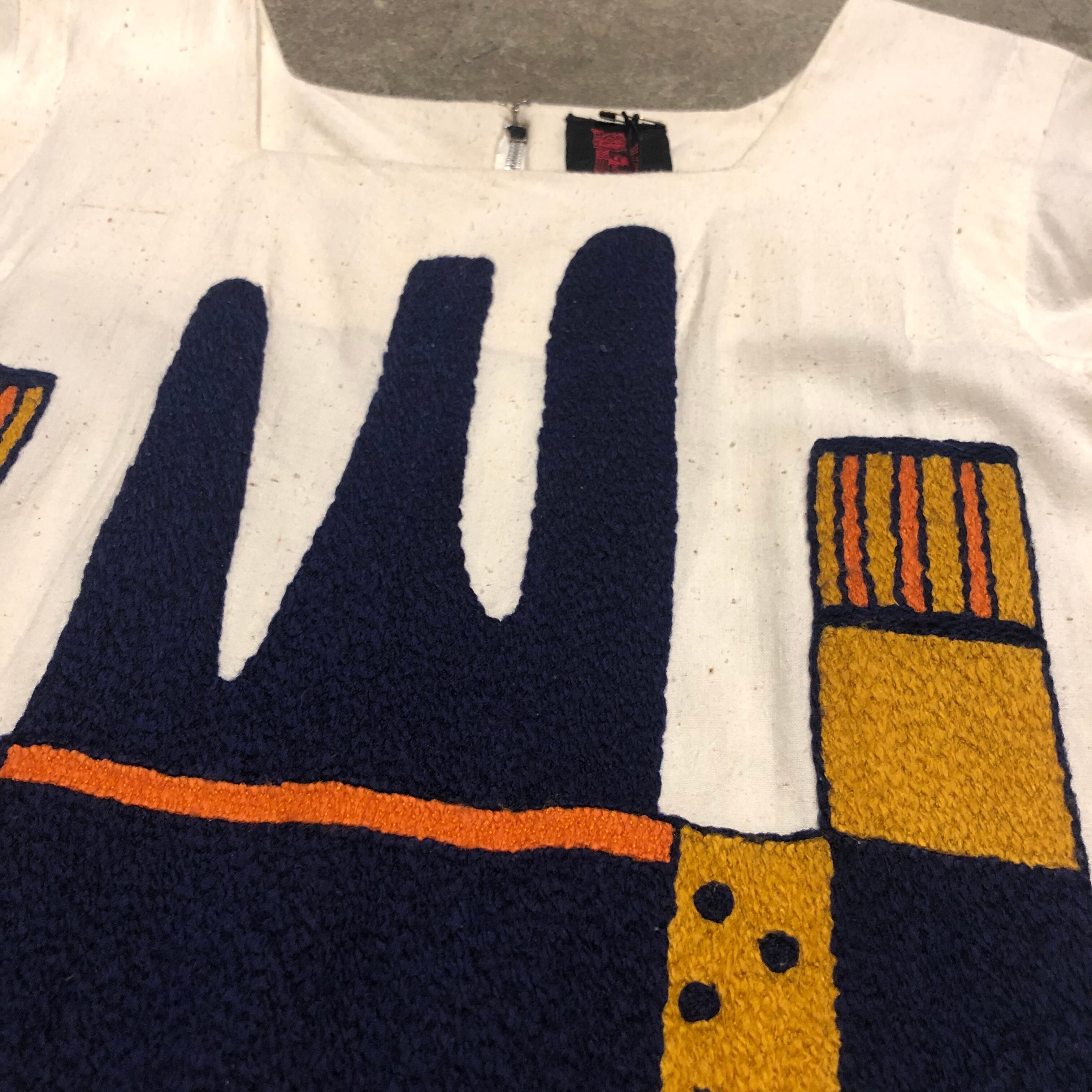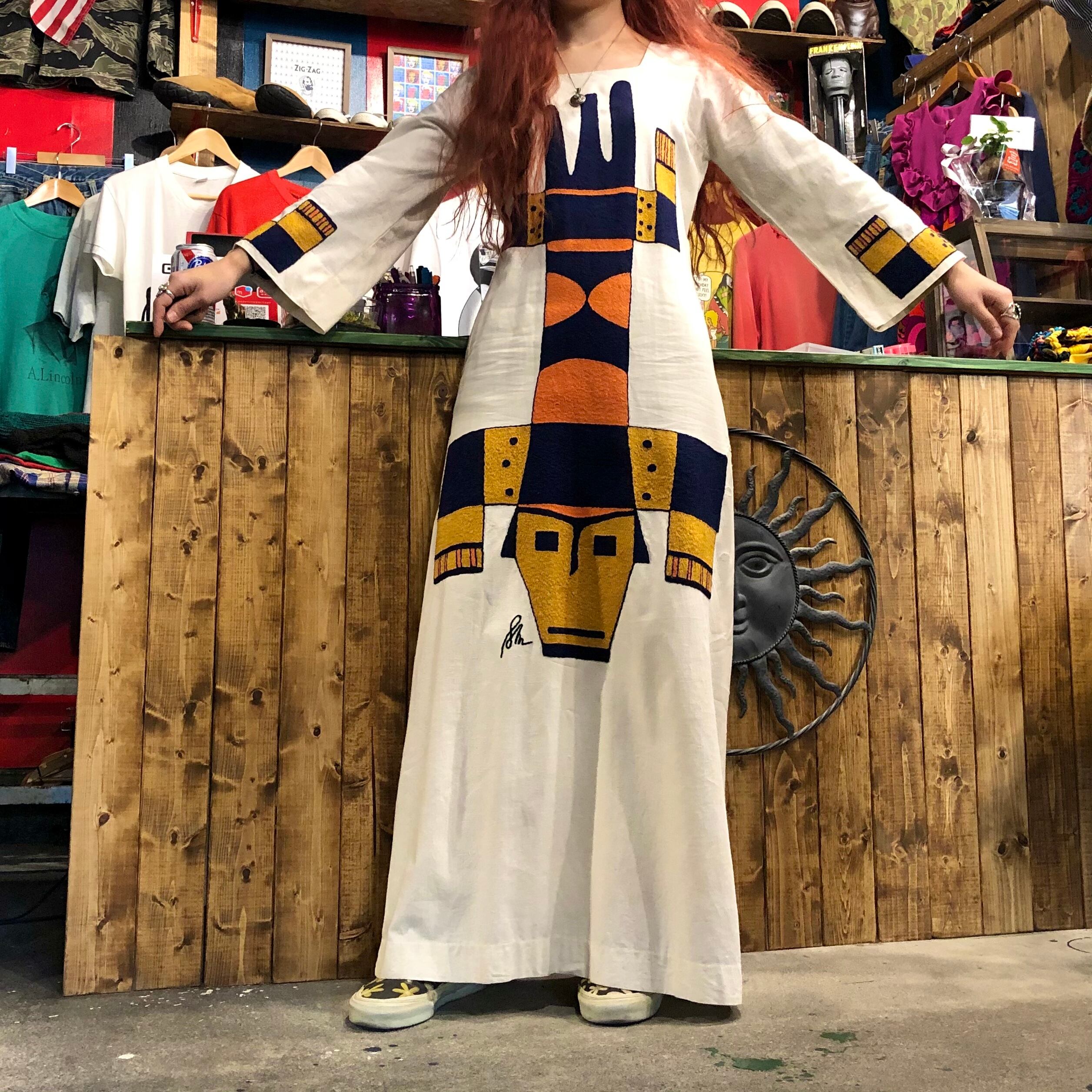かなりぎっしりミシン刺繍が施されたワンピースです。
