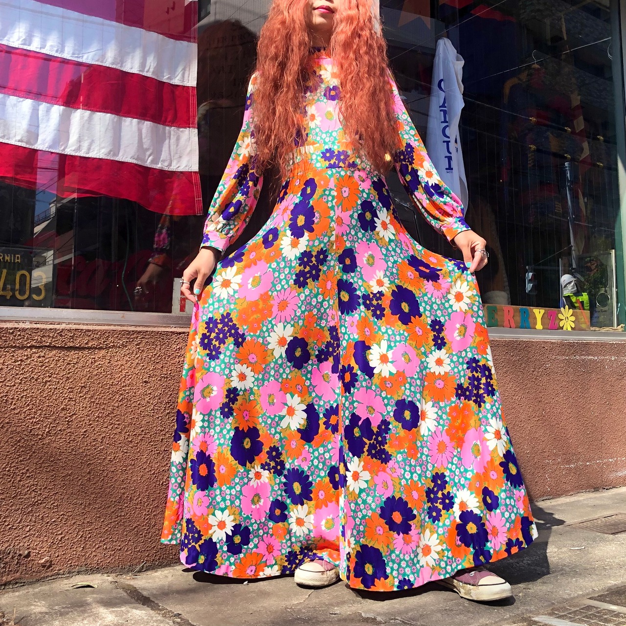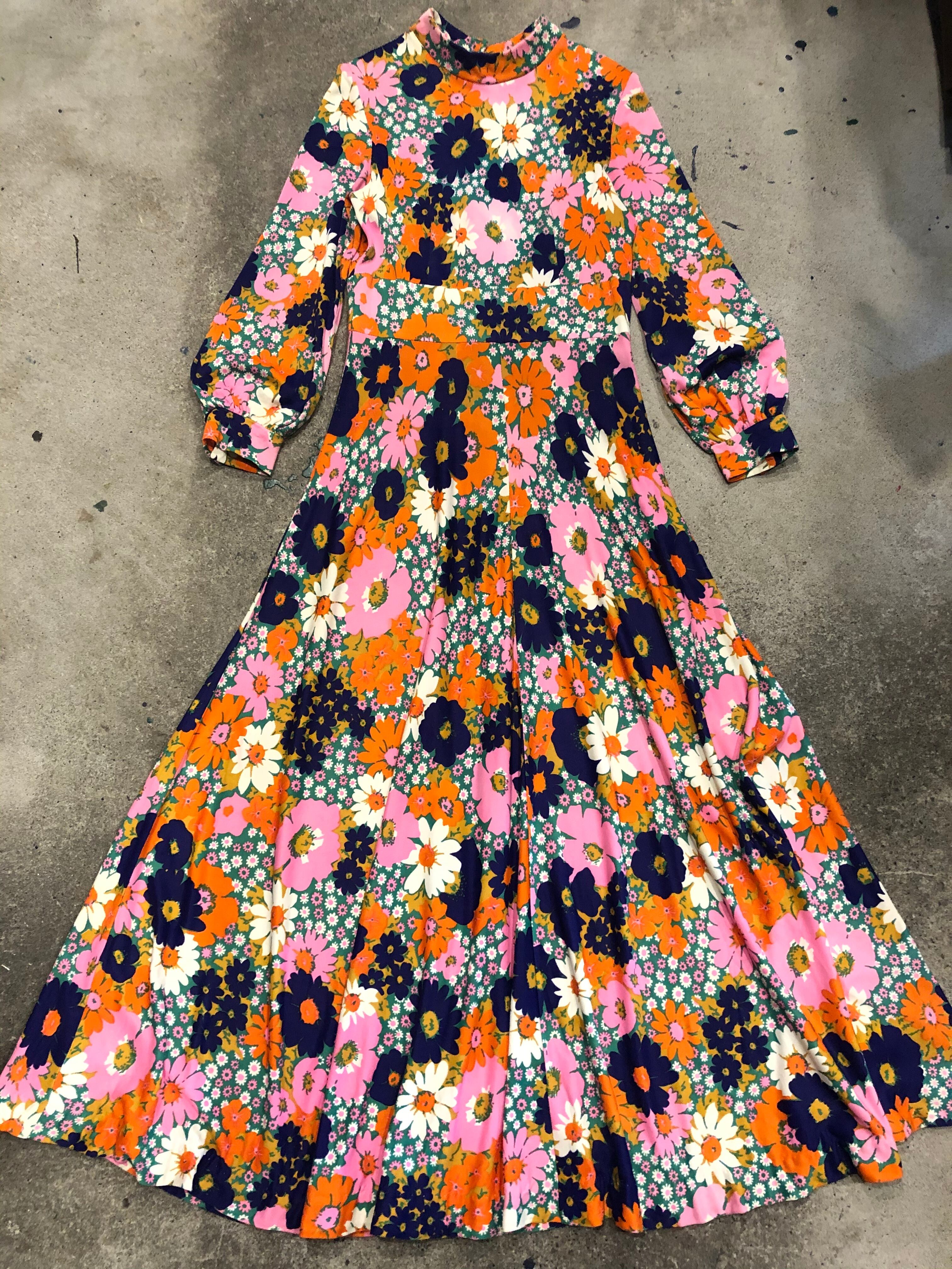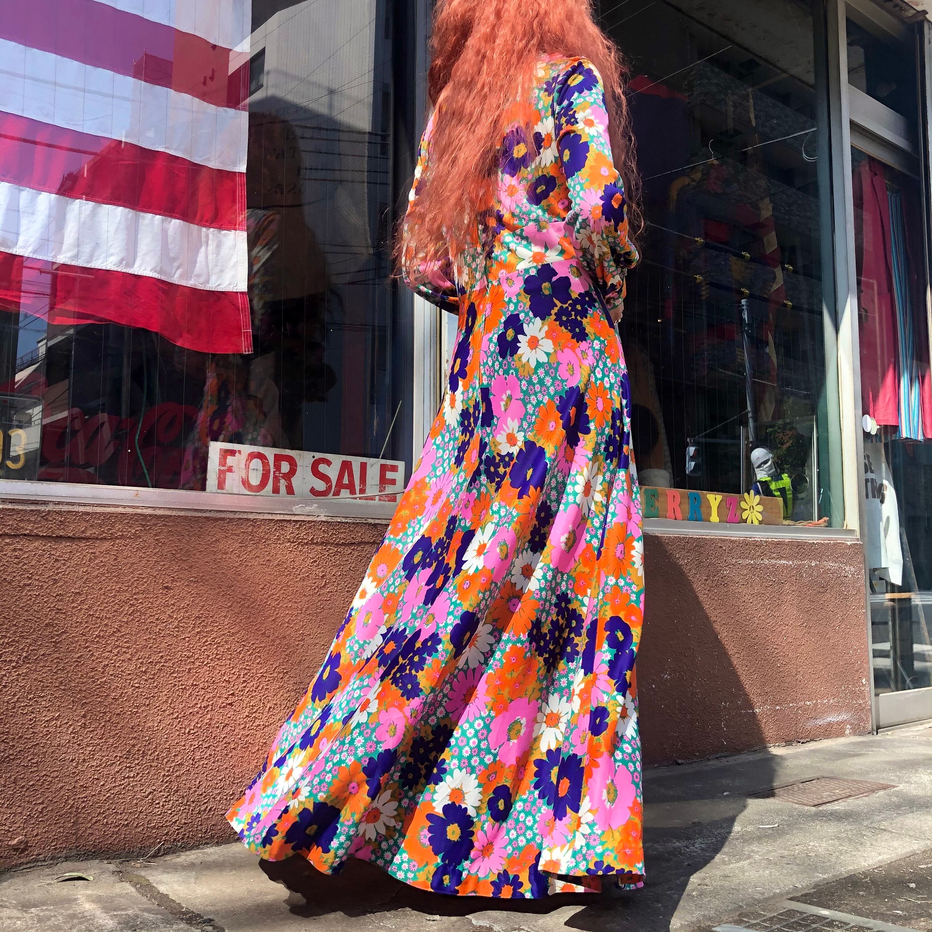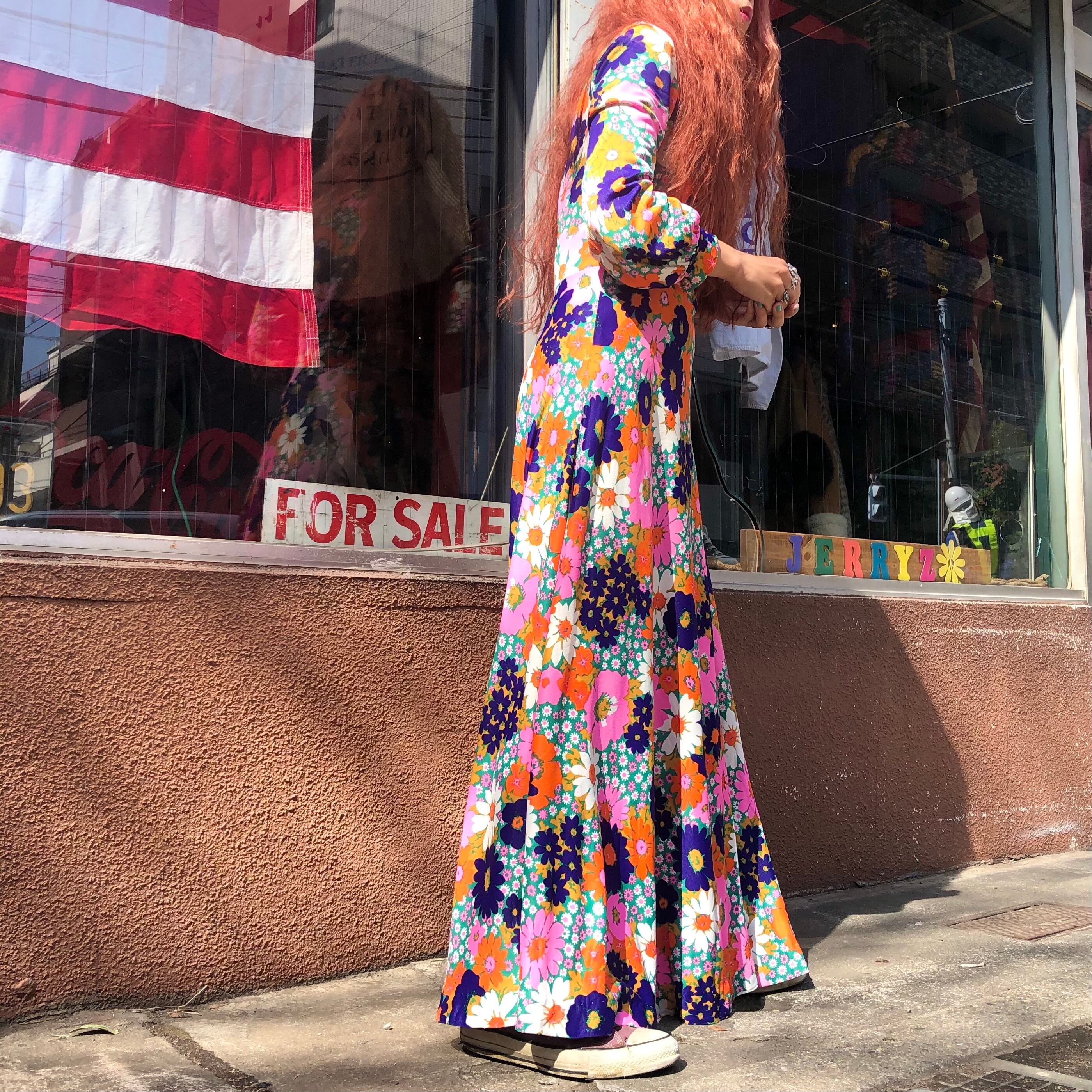 60-70's flower dress
