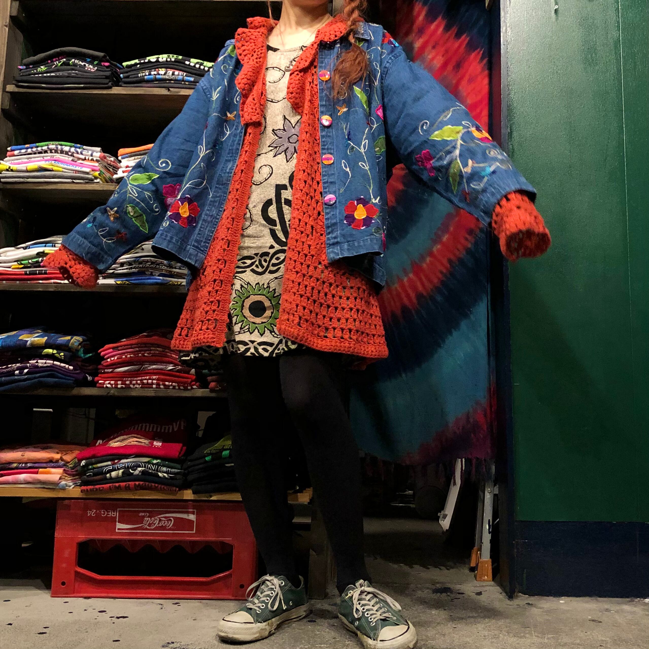袖口と襟がひらひらフリルのようになっているのでアウターからチラッと見えてもかわいいと思います。ロングなワンピースの上に羽織ったり、暖かくなったらタンクトップやキャミソールの上に着るのもかわいいですね!ウエストに紐ベルトが付いているので前を閉めてワンピース風に着るのも良いと思います。