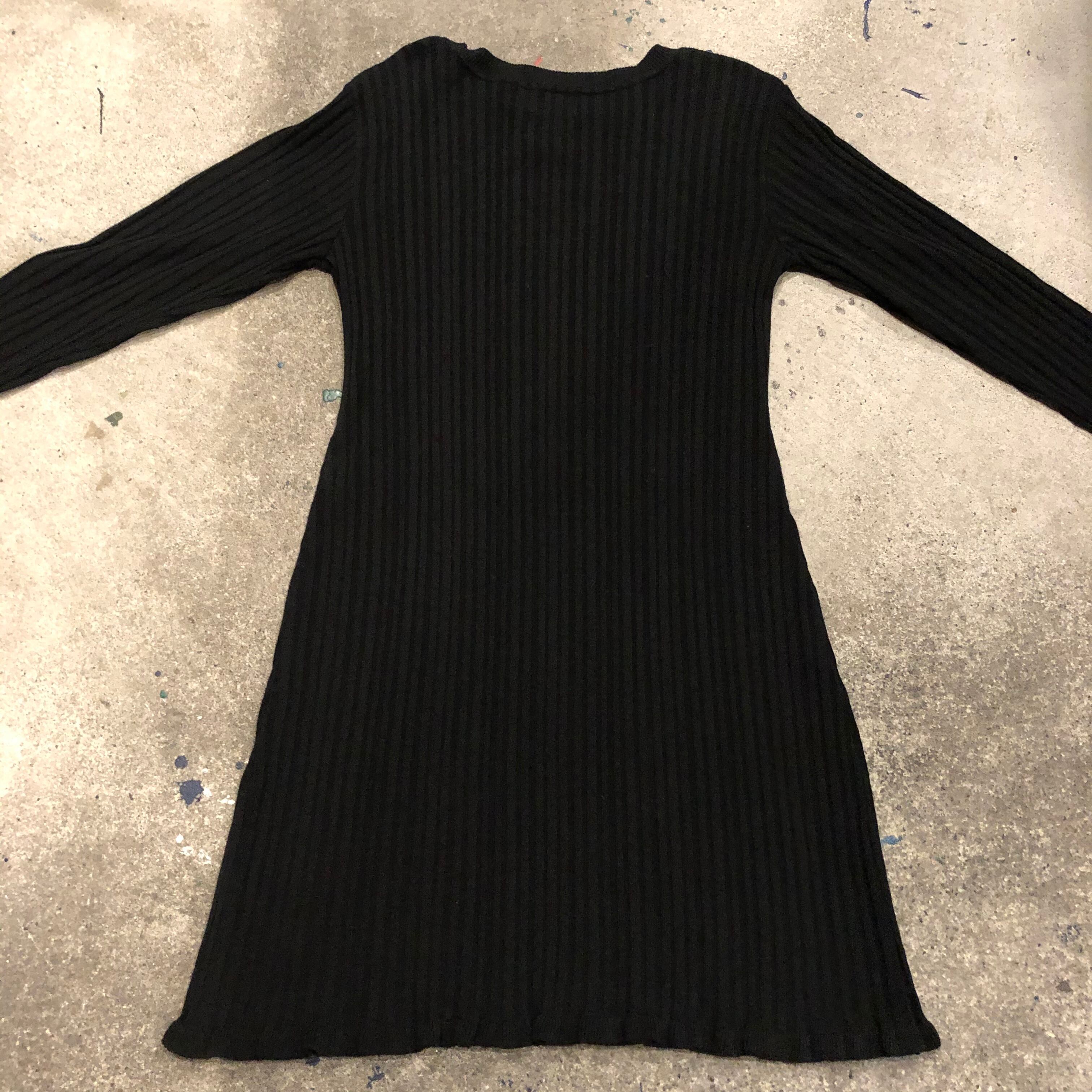アクリルですが、薄手でコットンニットのようなさらっとした肌触りですのでとても着やすいです。裾がリブ編みのフリルのようになっているところがさりげなくポイントになっていてかわいいです。シンプルですが、一枚で着ても上に色々重ねても良いと思います!