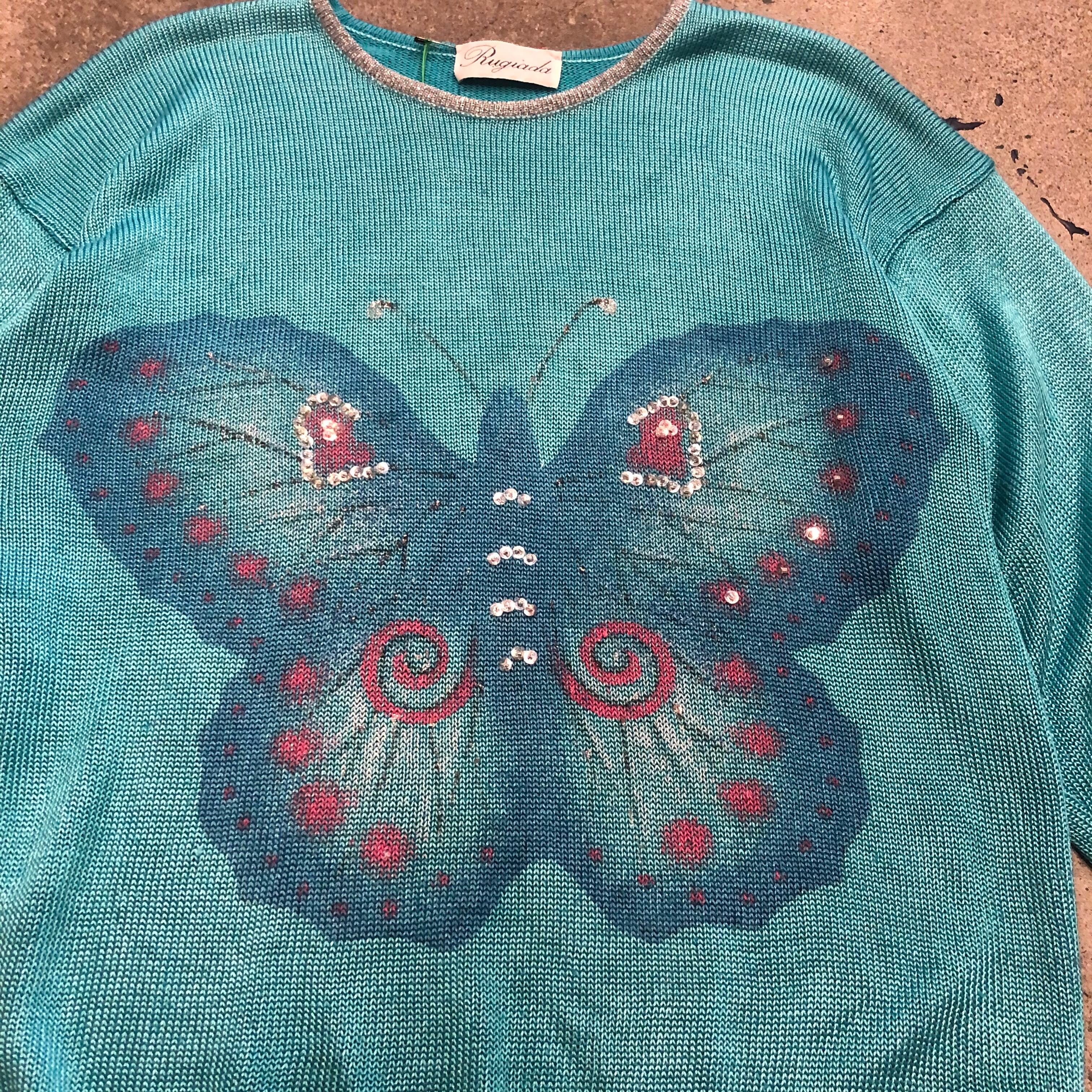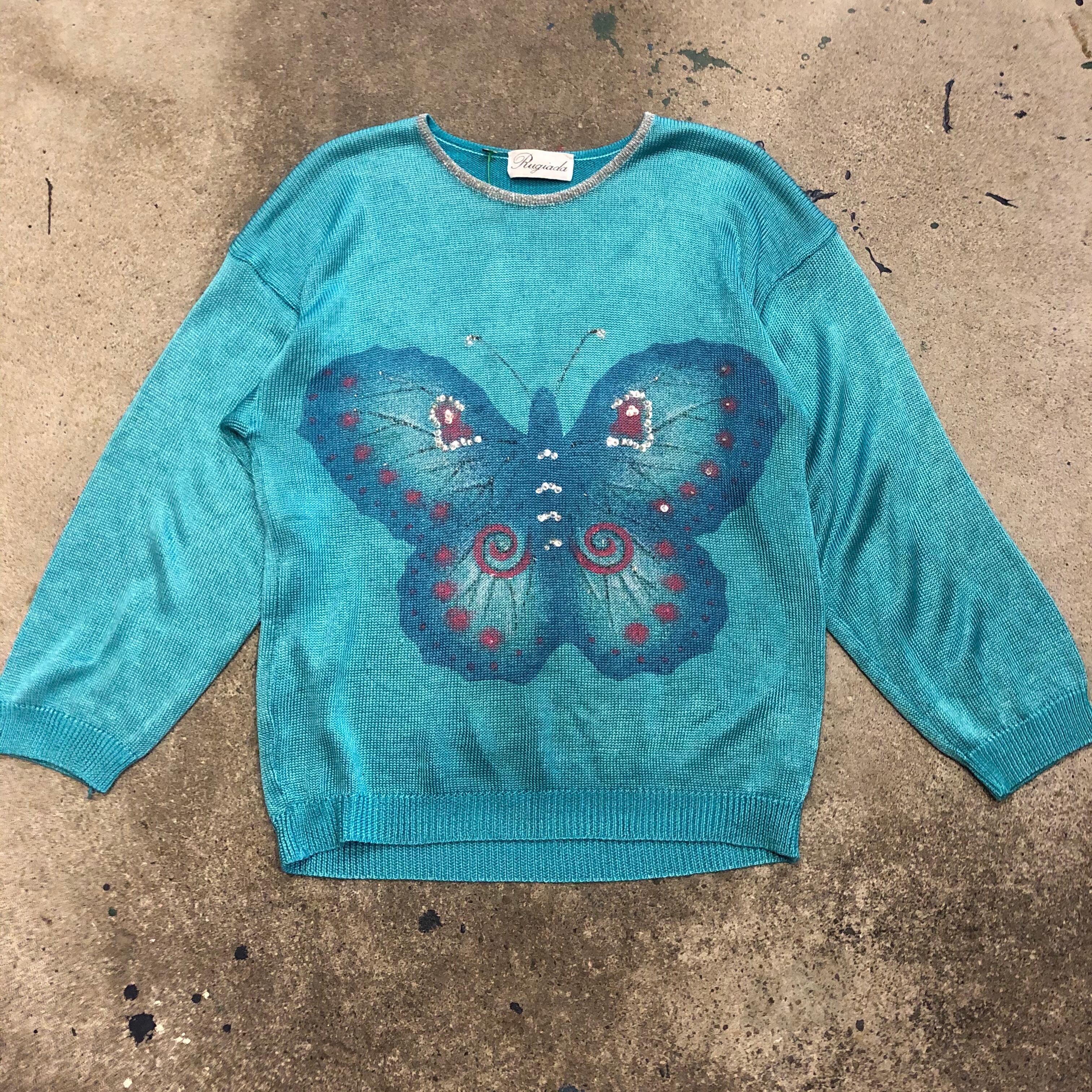 蝶の模様がかわいいつるんとしたニットです。