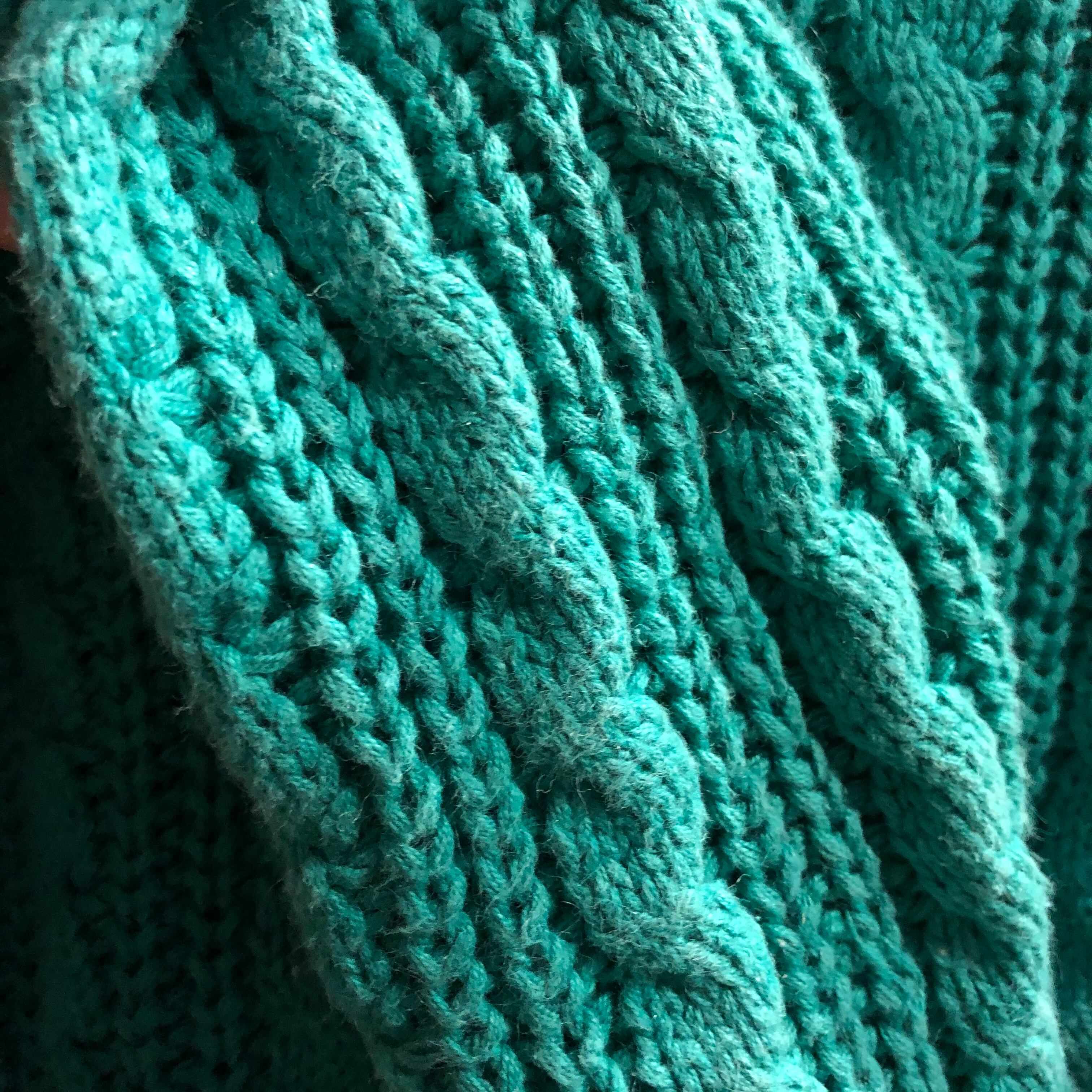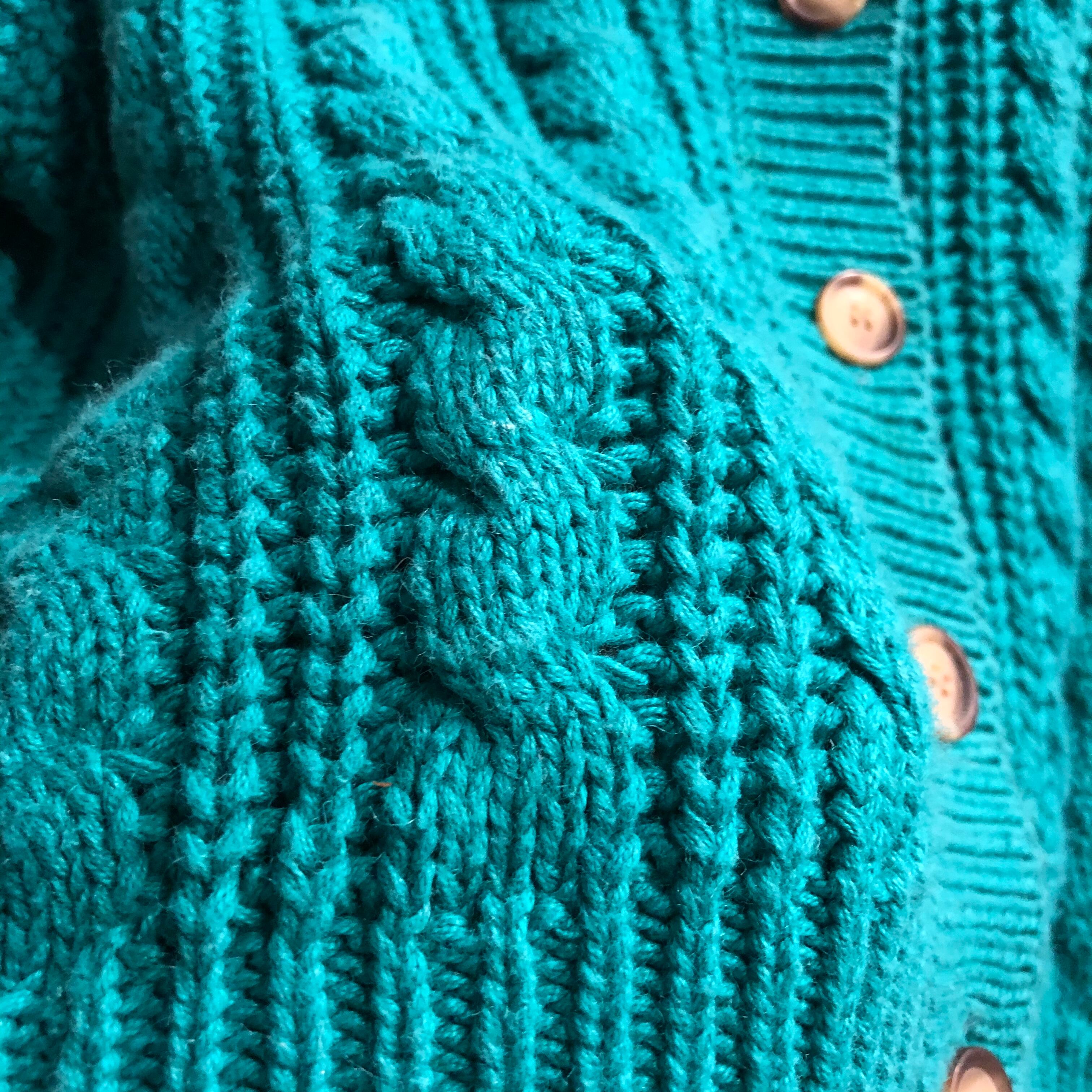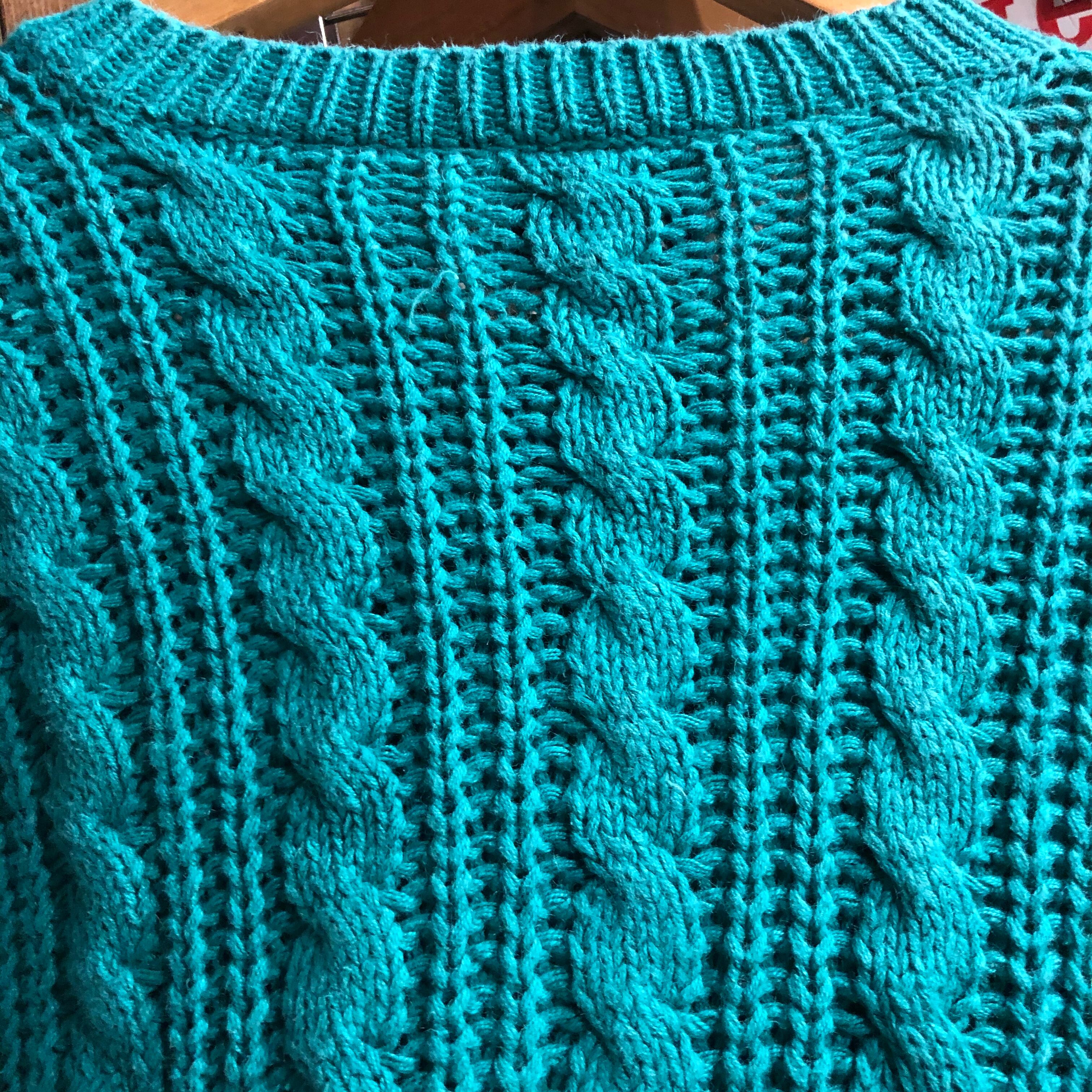 しっかり厚みのある編み地ですが、素材的に暖かすぎず、春や秋に使いやすい一着です。