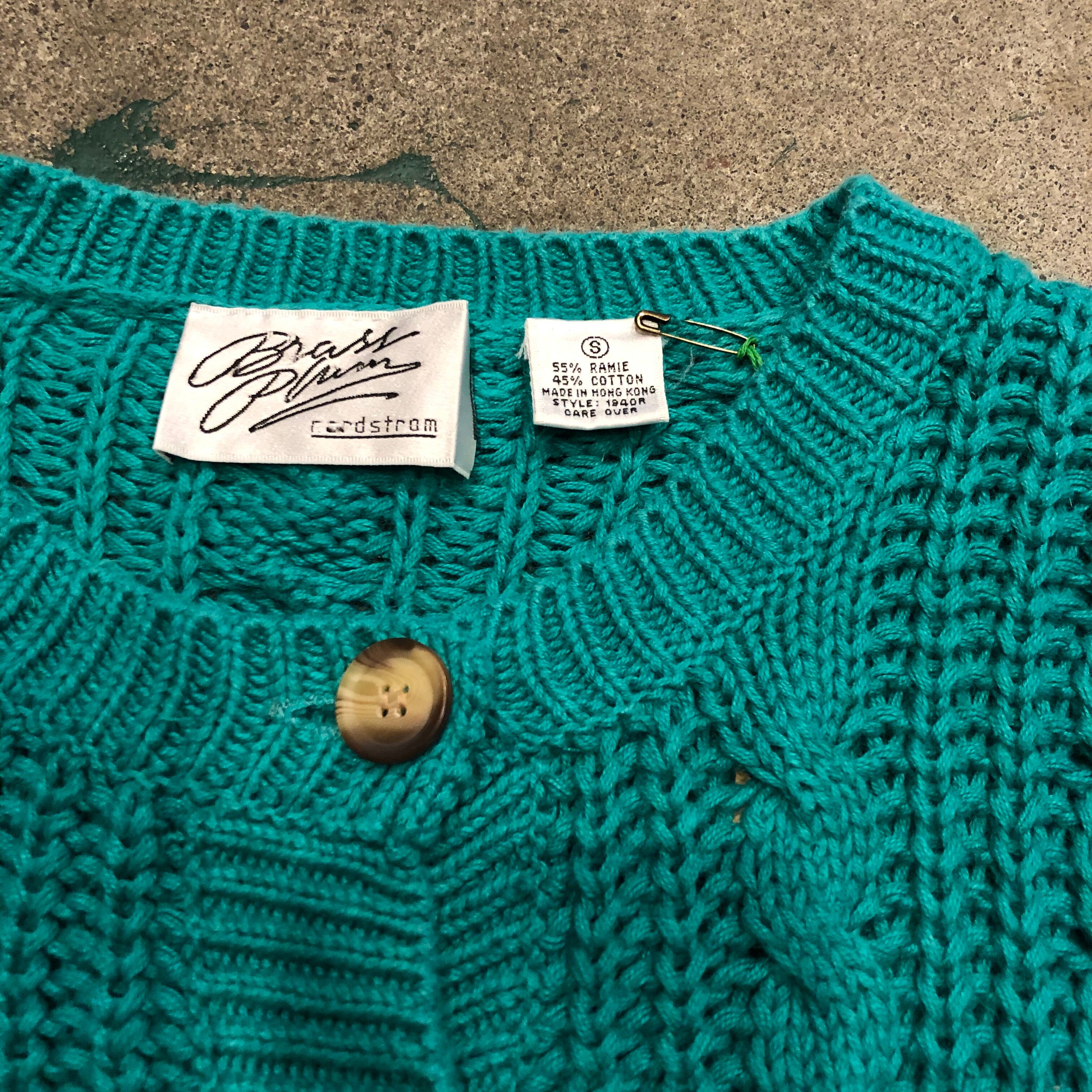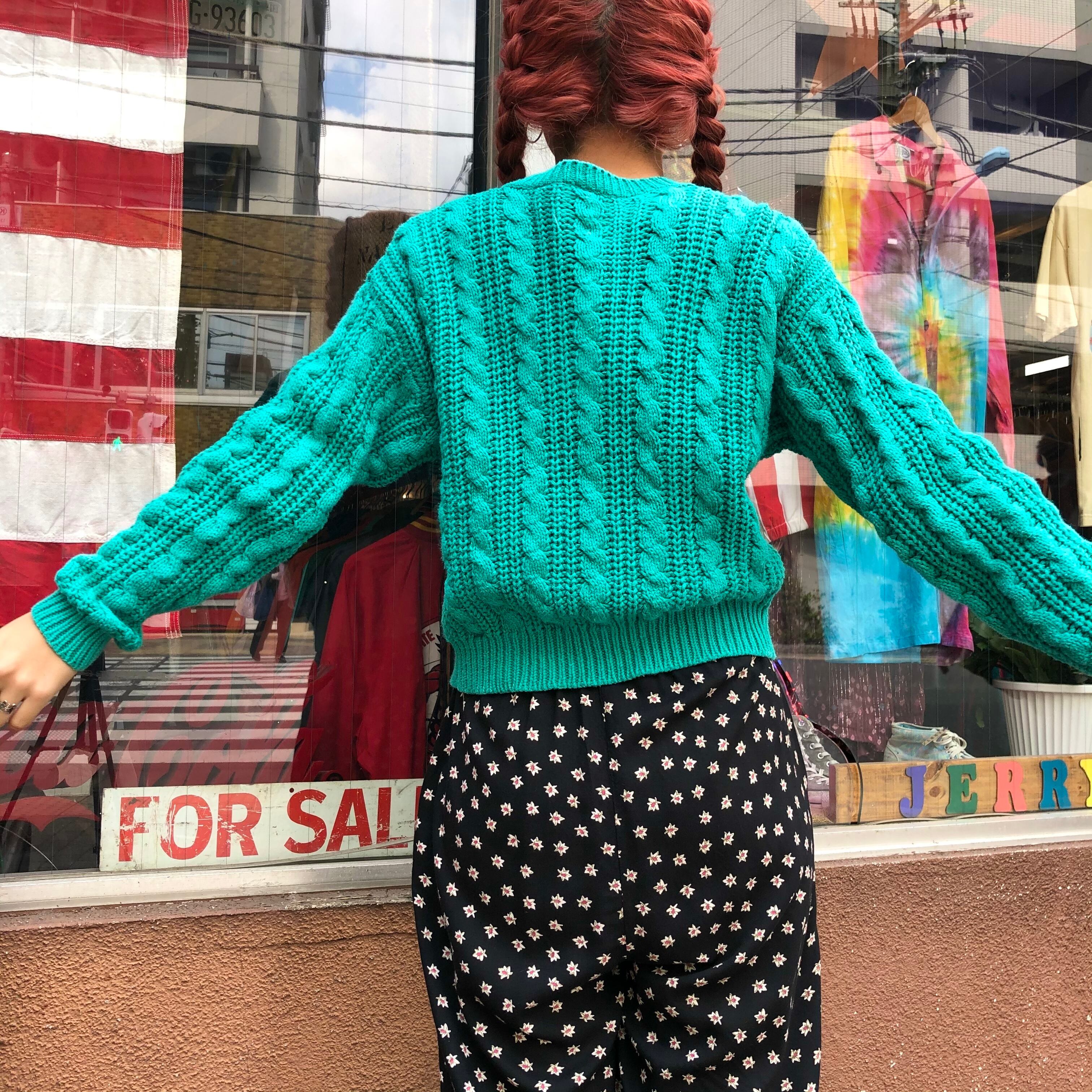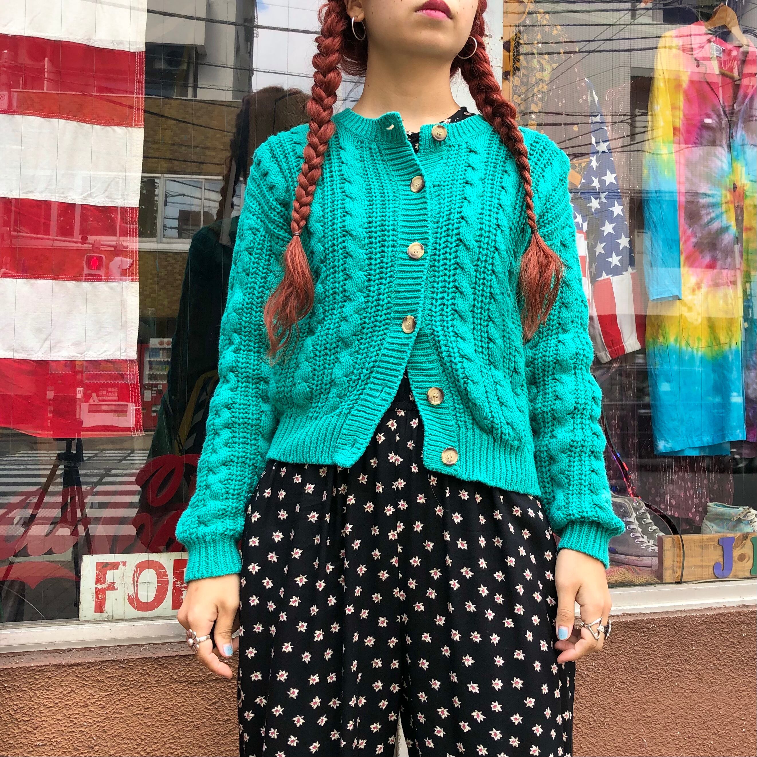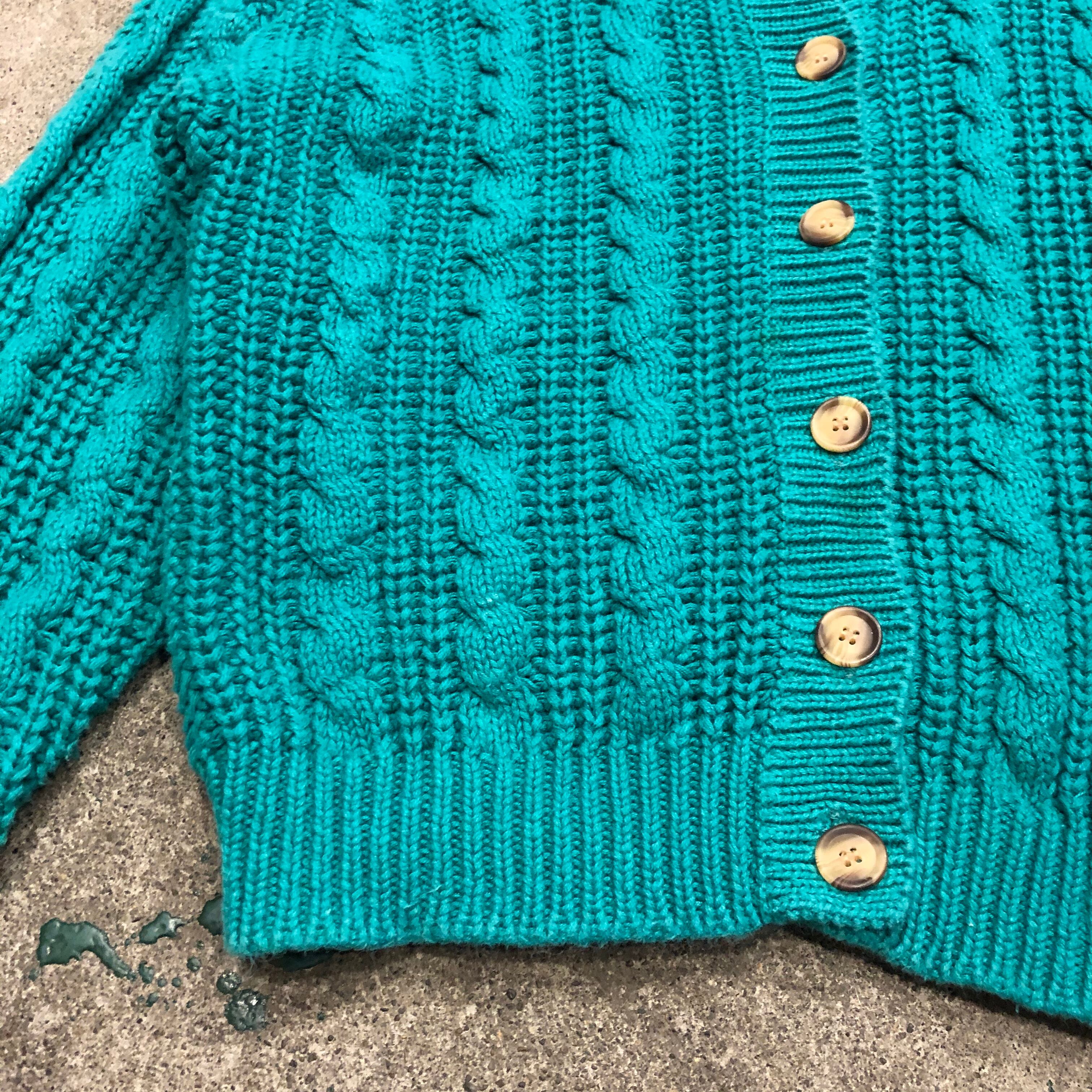 かわいい緑のコットン×ラミーニットカーディガンです。