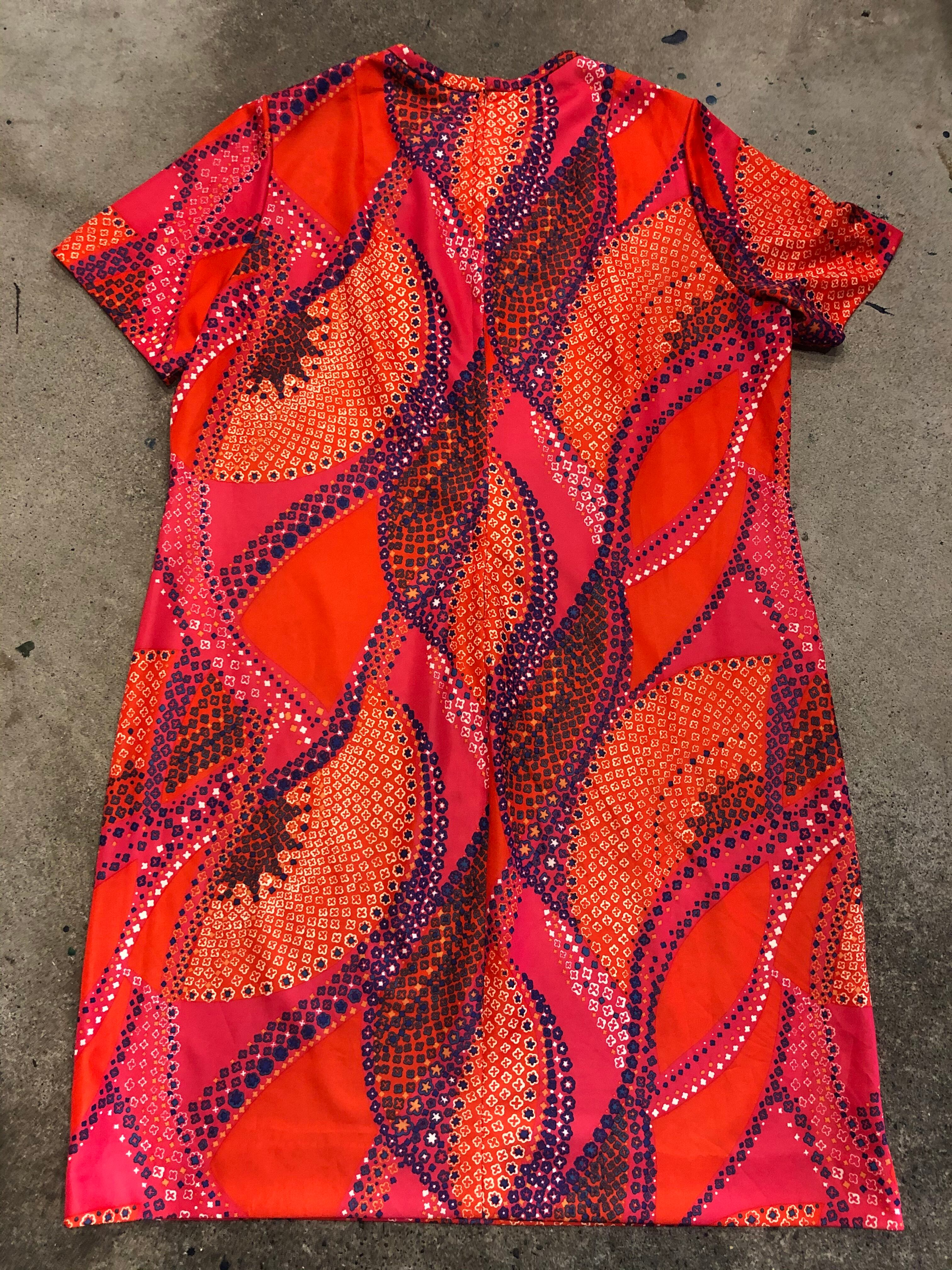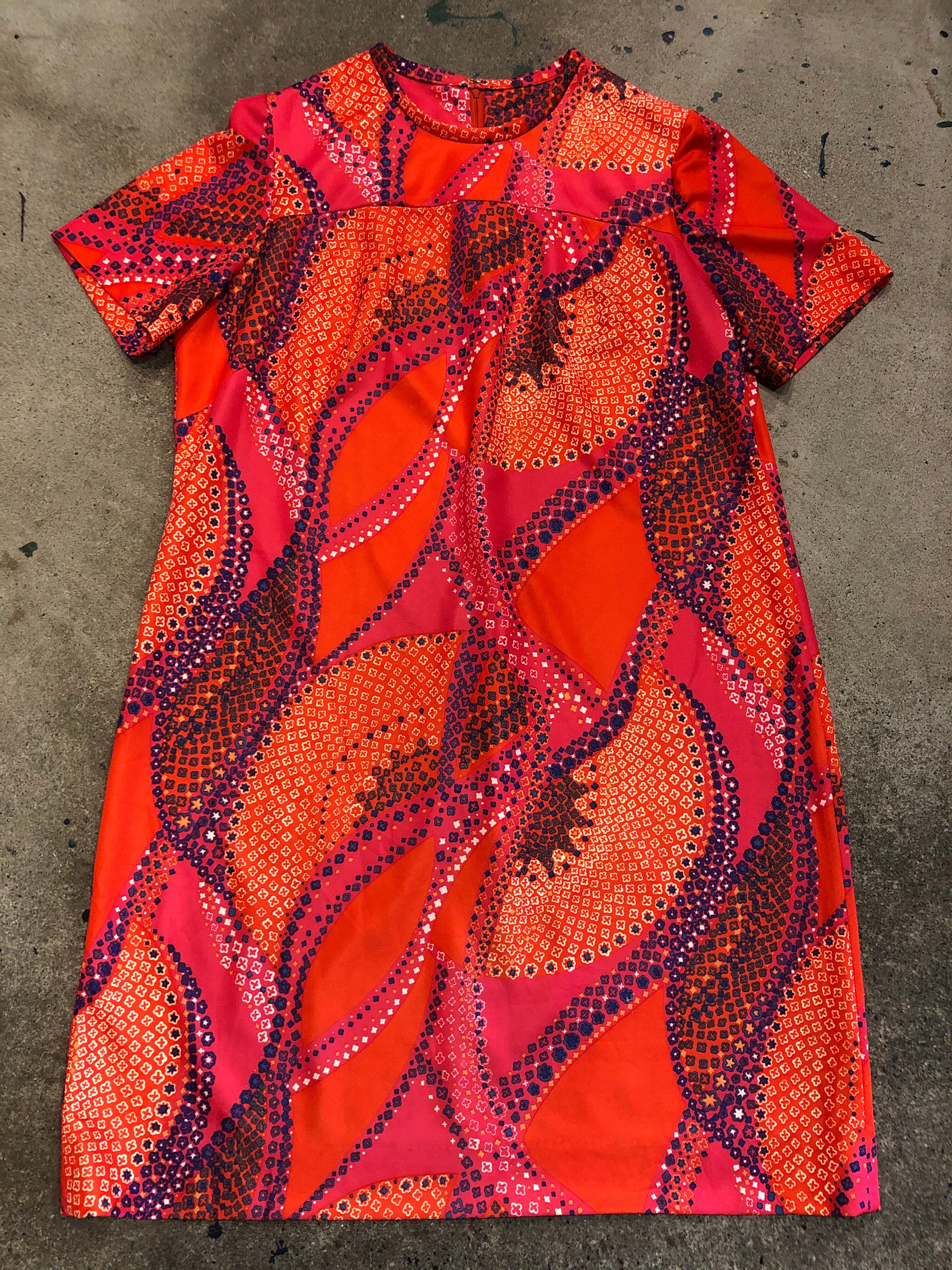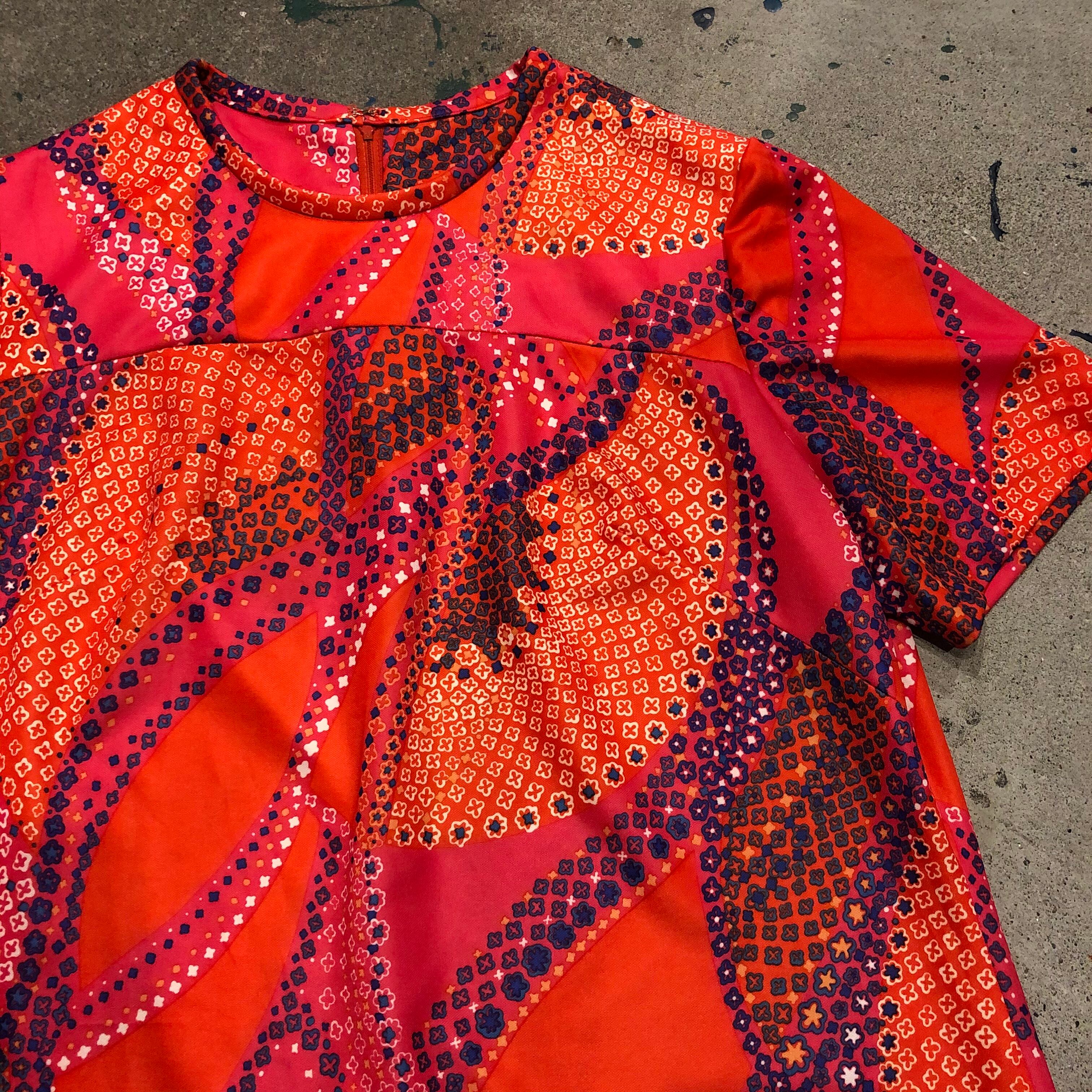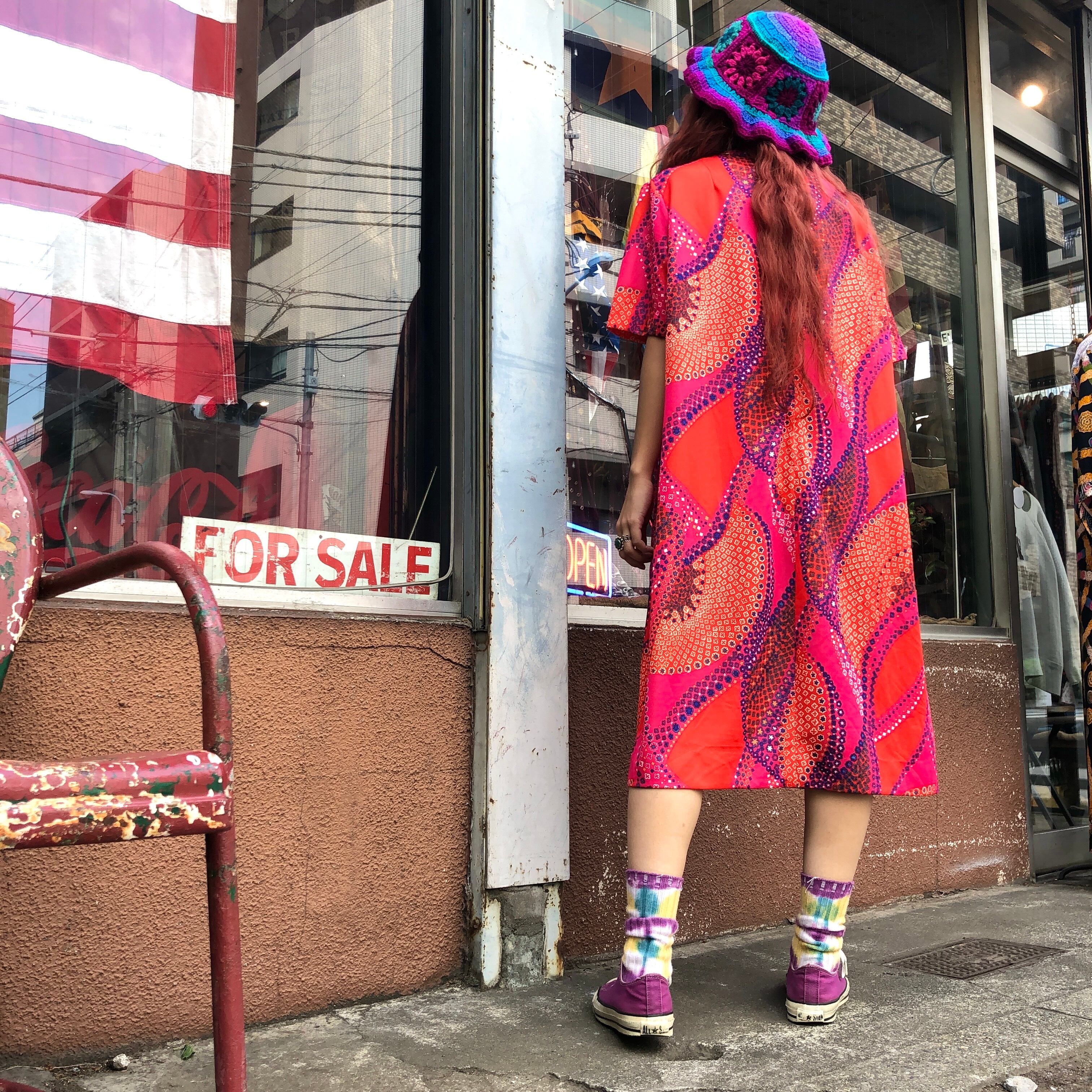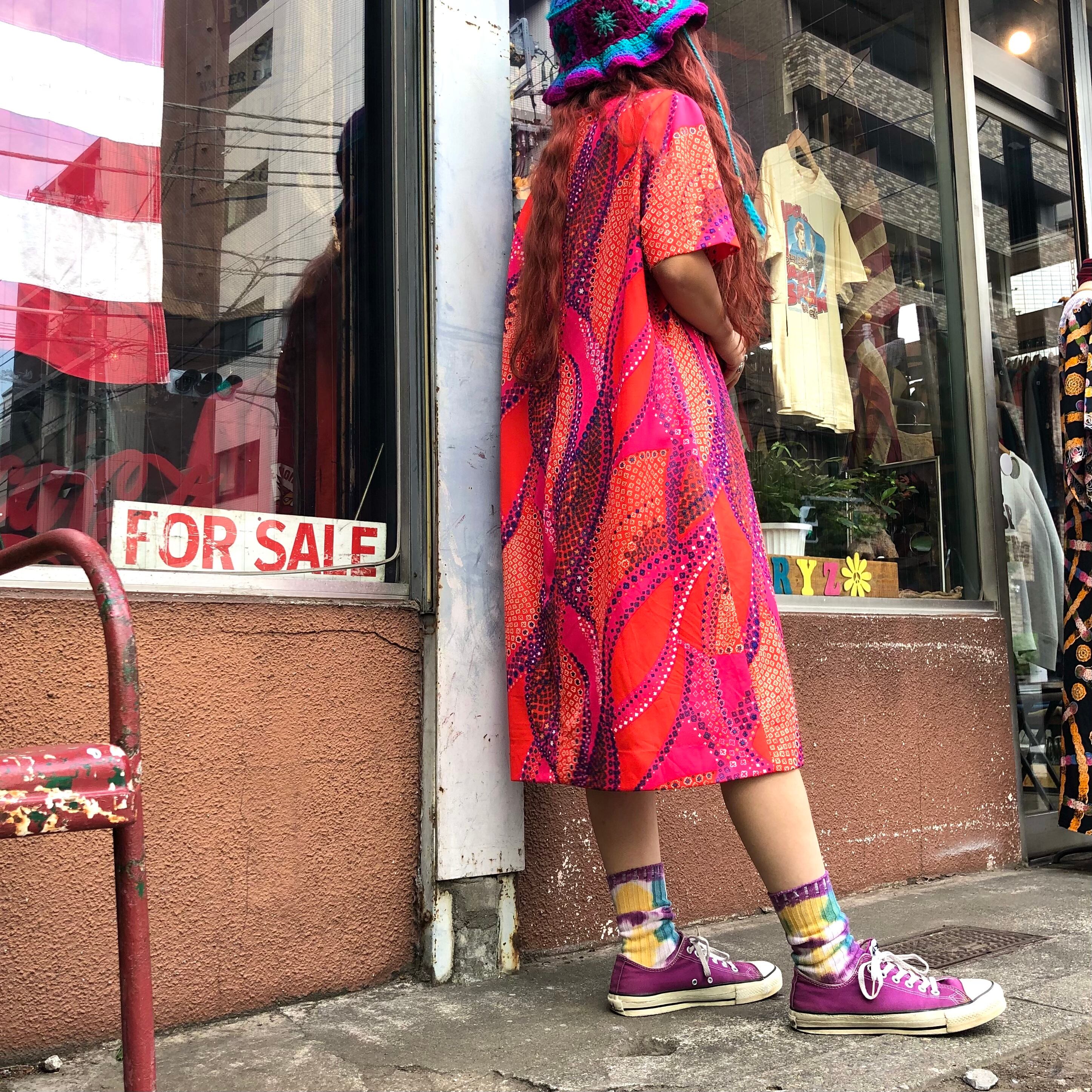ピンクがベースで派手派手な感じがとても素敵です!ゆったりズドンとしたシルエットで、さらつるっとした素材感ですのでとても楽ちんです。