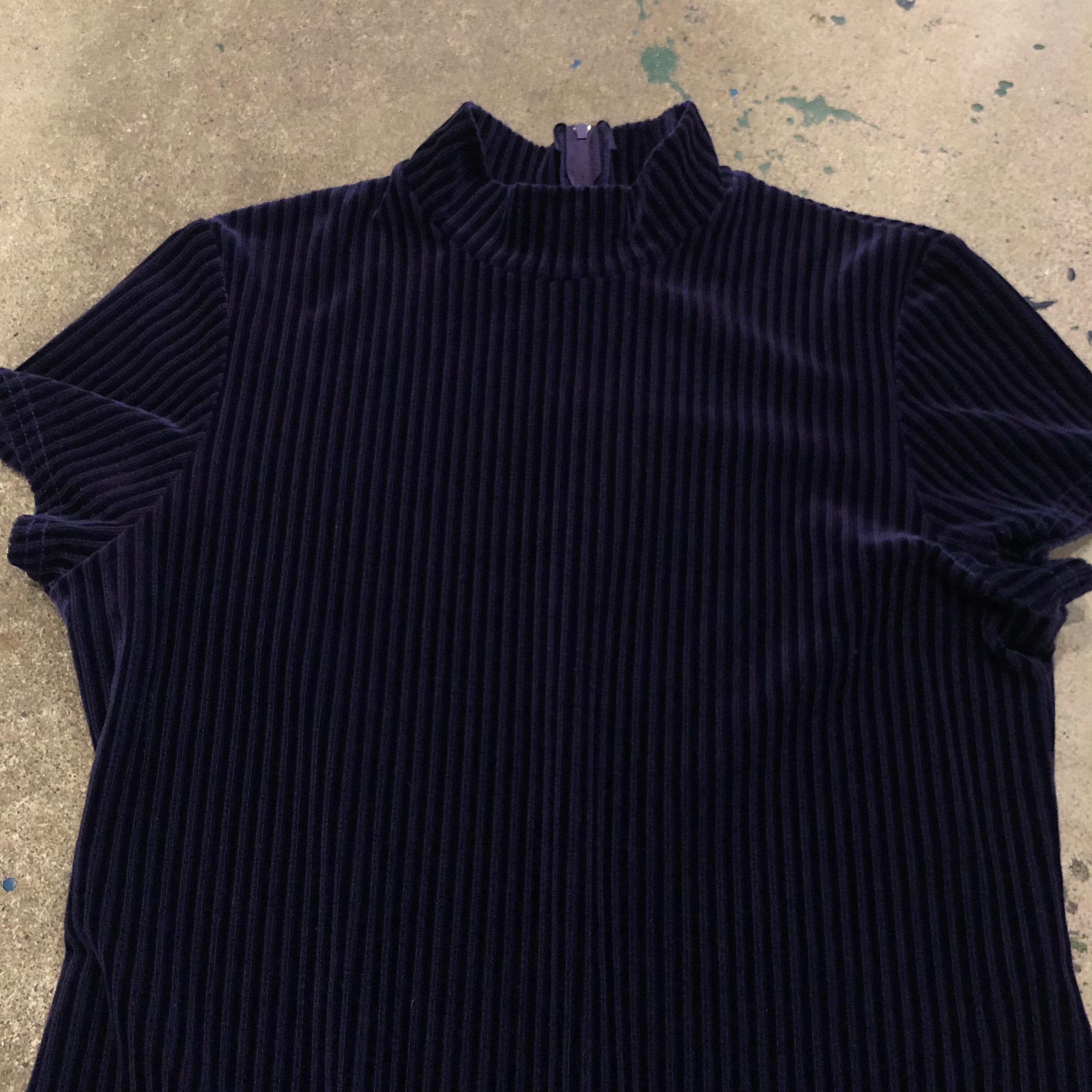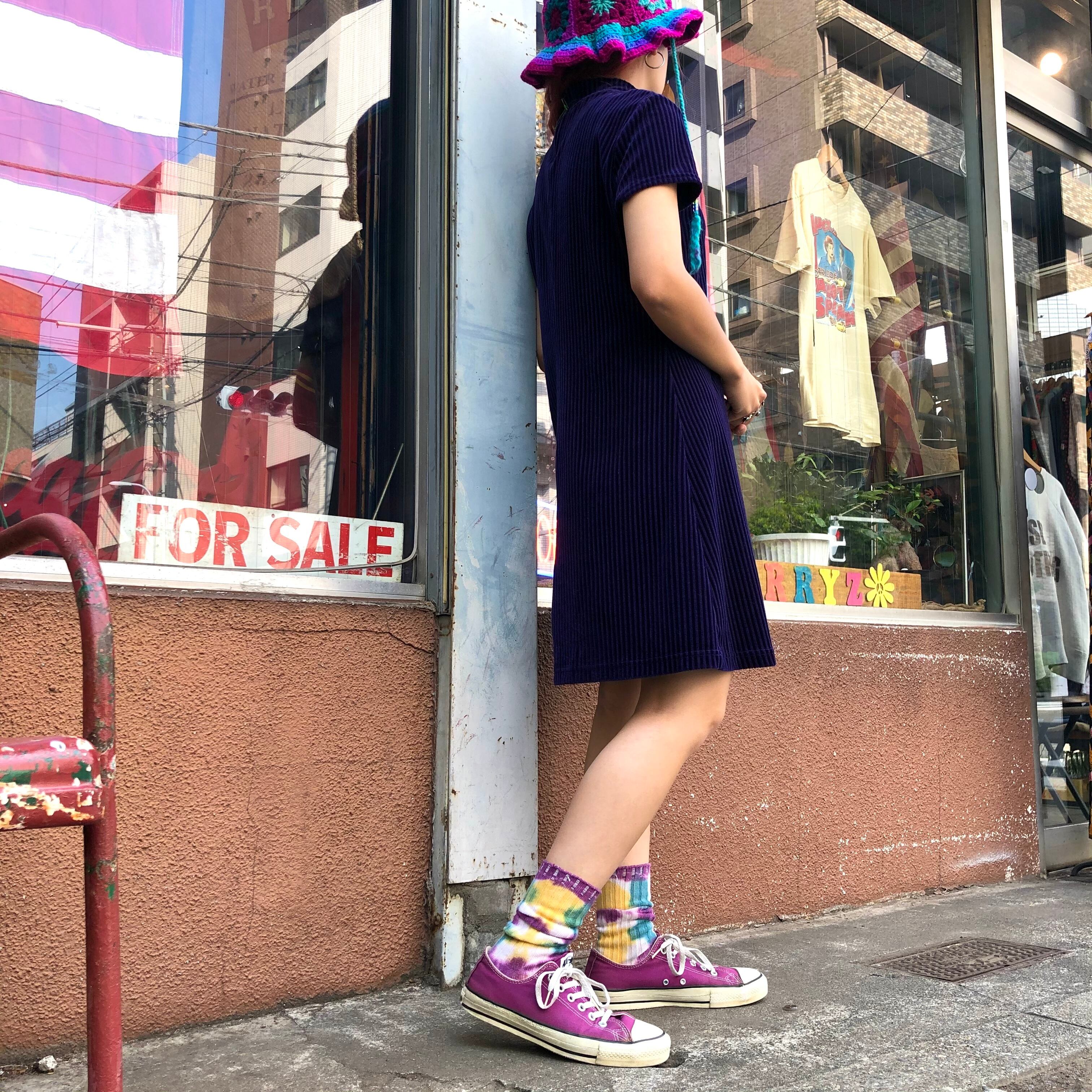 コンパクトなデザインがかわいいワンピースです。ハイネックで半袖で深い紫で、とても大人っぽい印象です。黒いロングスカートを重ねたり、ショートブーツを合わせたりしても良いですね!シンプルなデザインですので胸元にブローチやパッチをつけてもかわいいと思います。