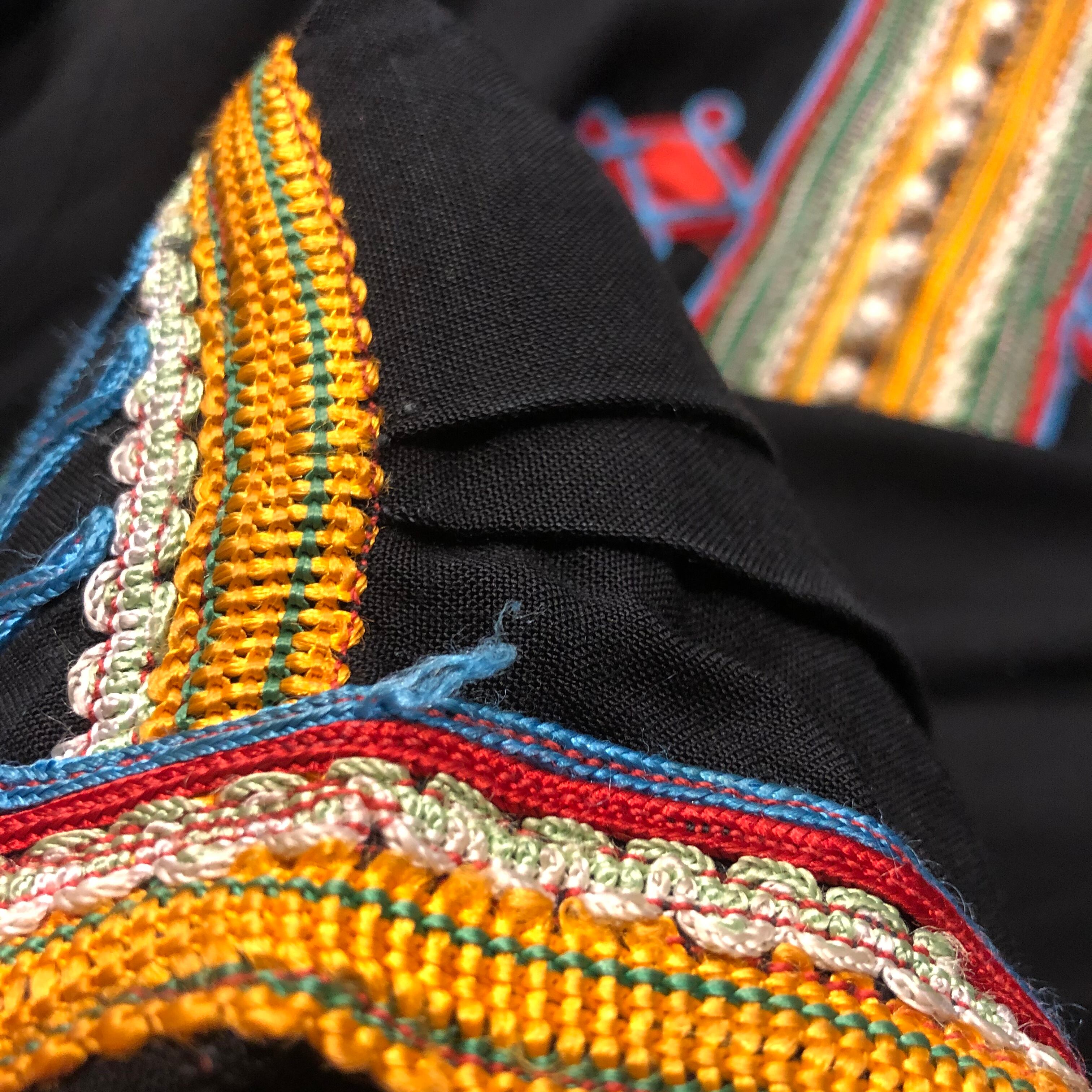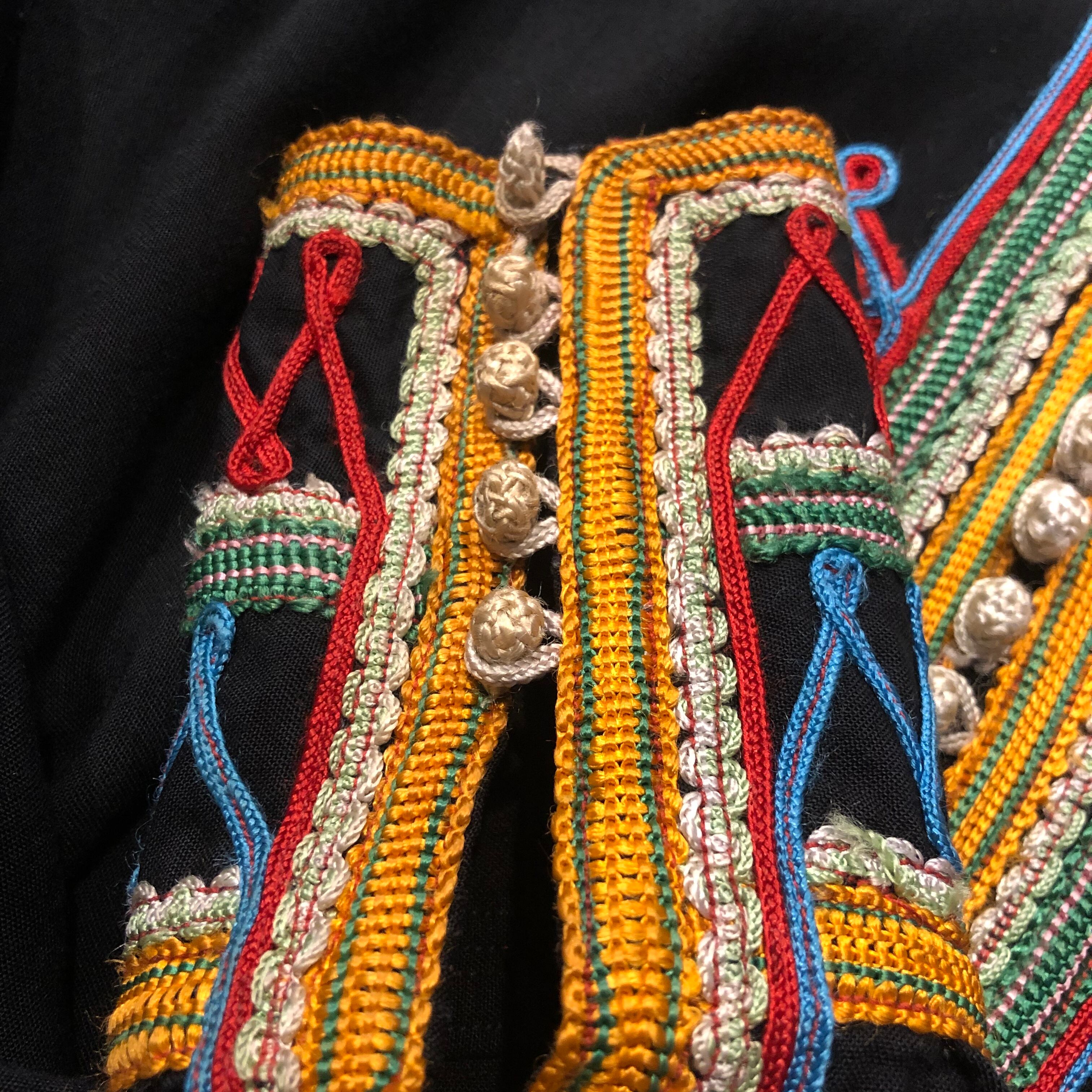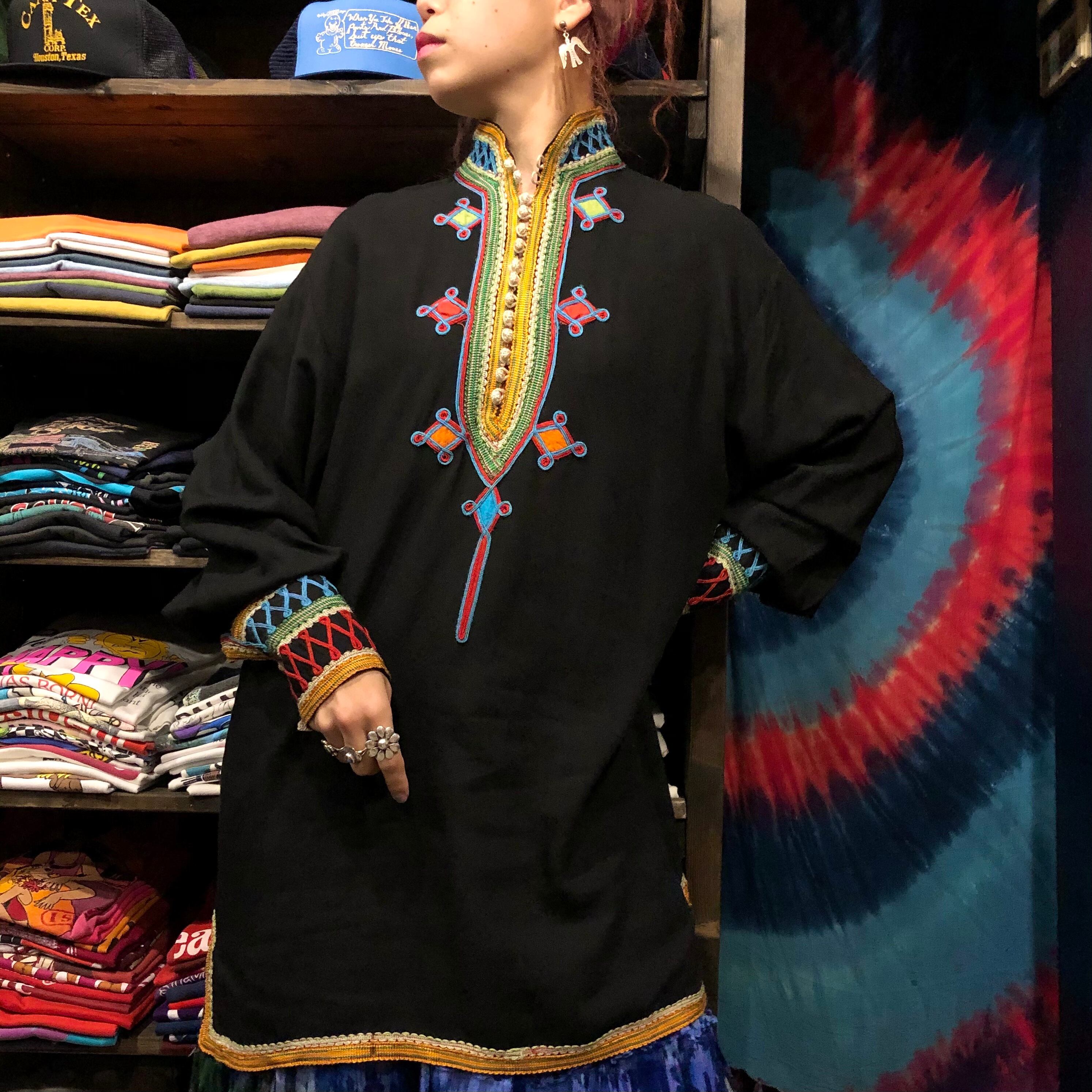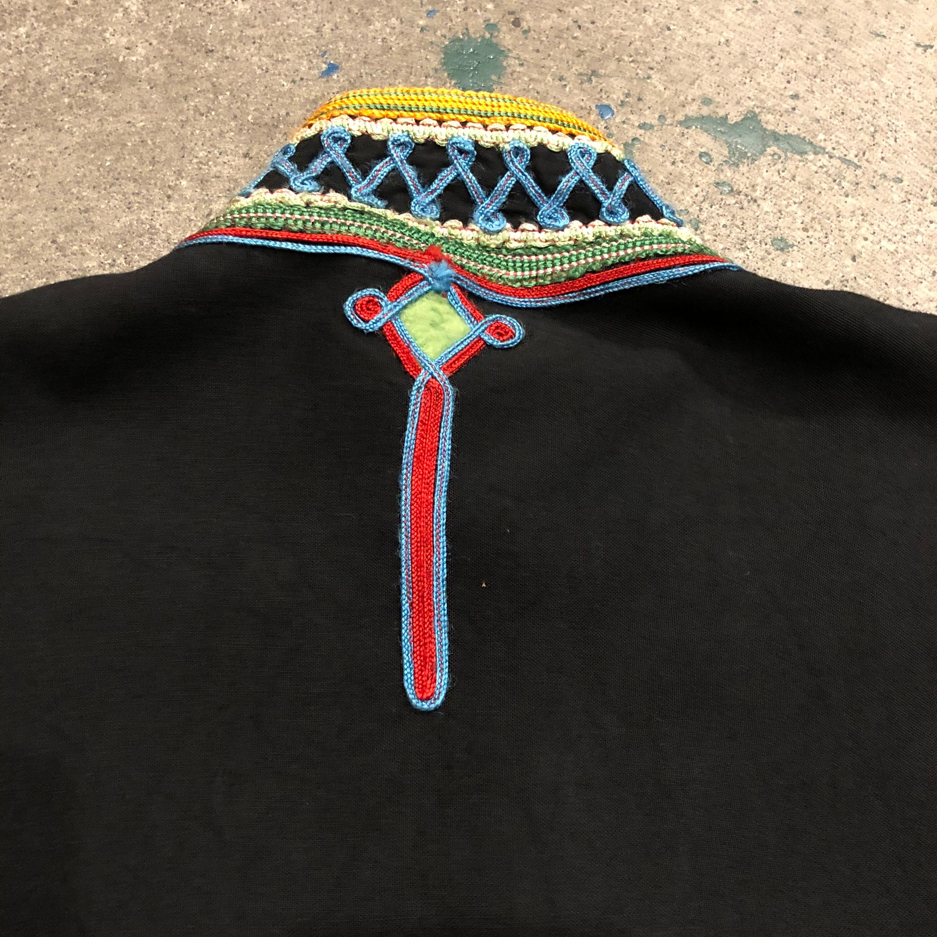 黒地にコード刺繍が映えてかっこいいシャツです。襟やカフス、裾のデザインが抜かりなく存在感があります。