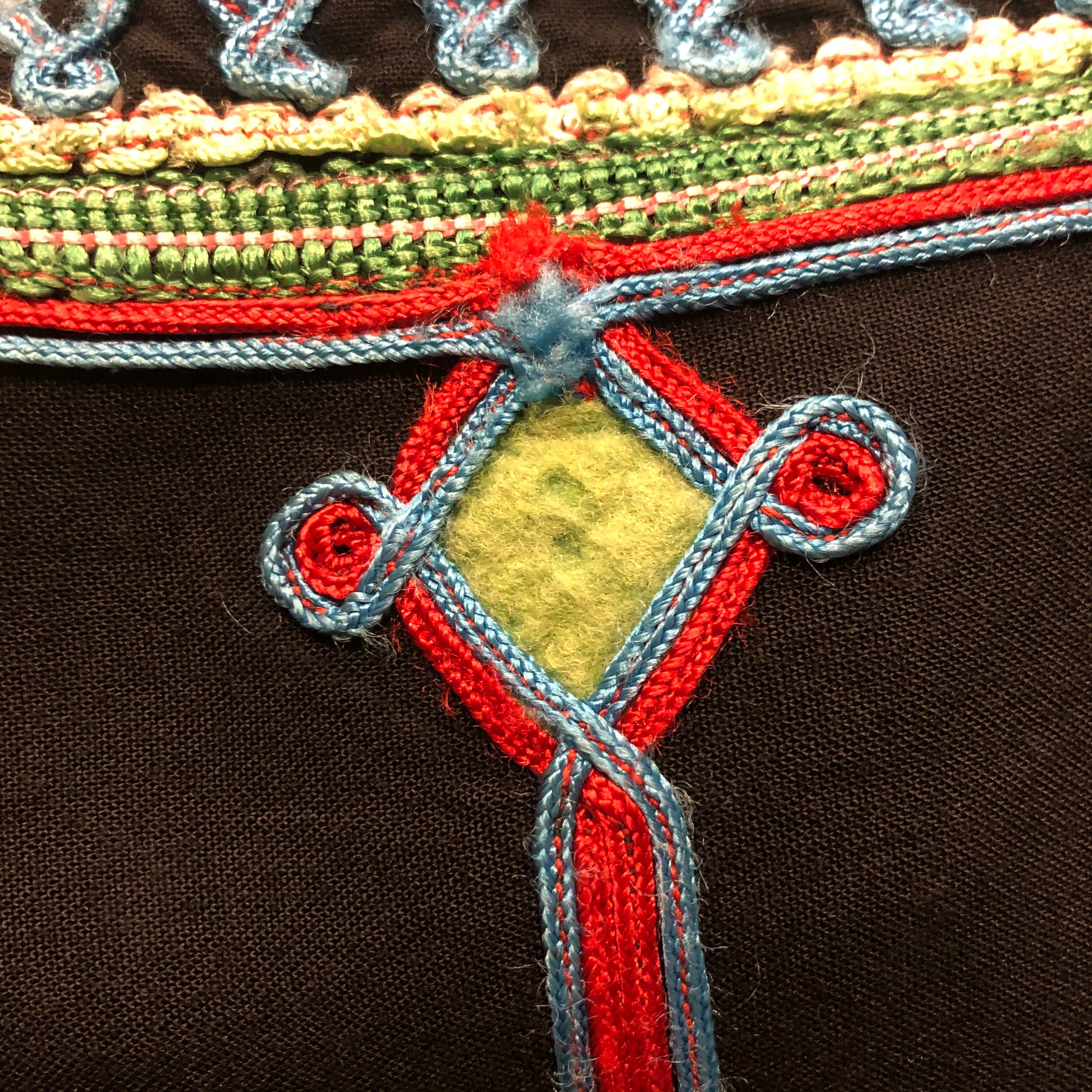 右袖口の一つ目のボタンが開きやすくなっています。糸のほつれ、黄緑のフェルトのような部分のダメージがあります。古着にご理解のある方のご購入をお願いいたします。