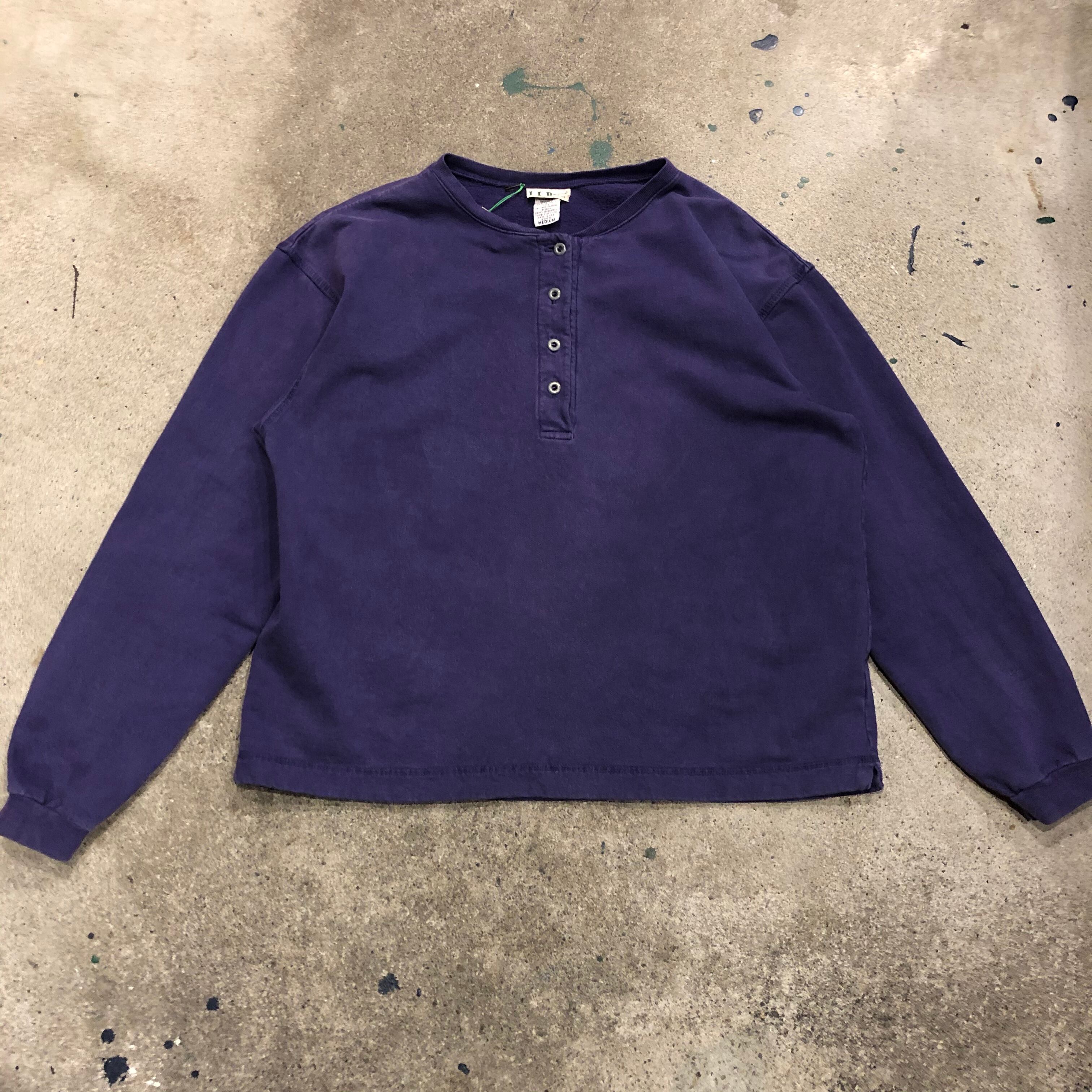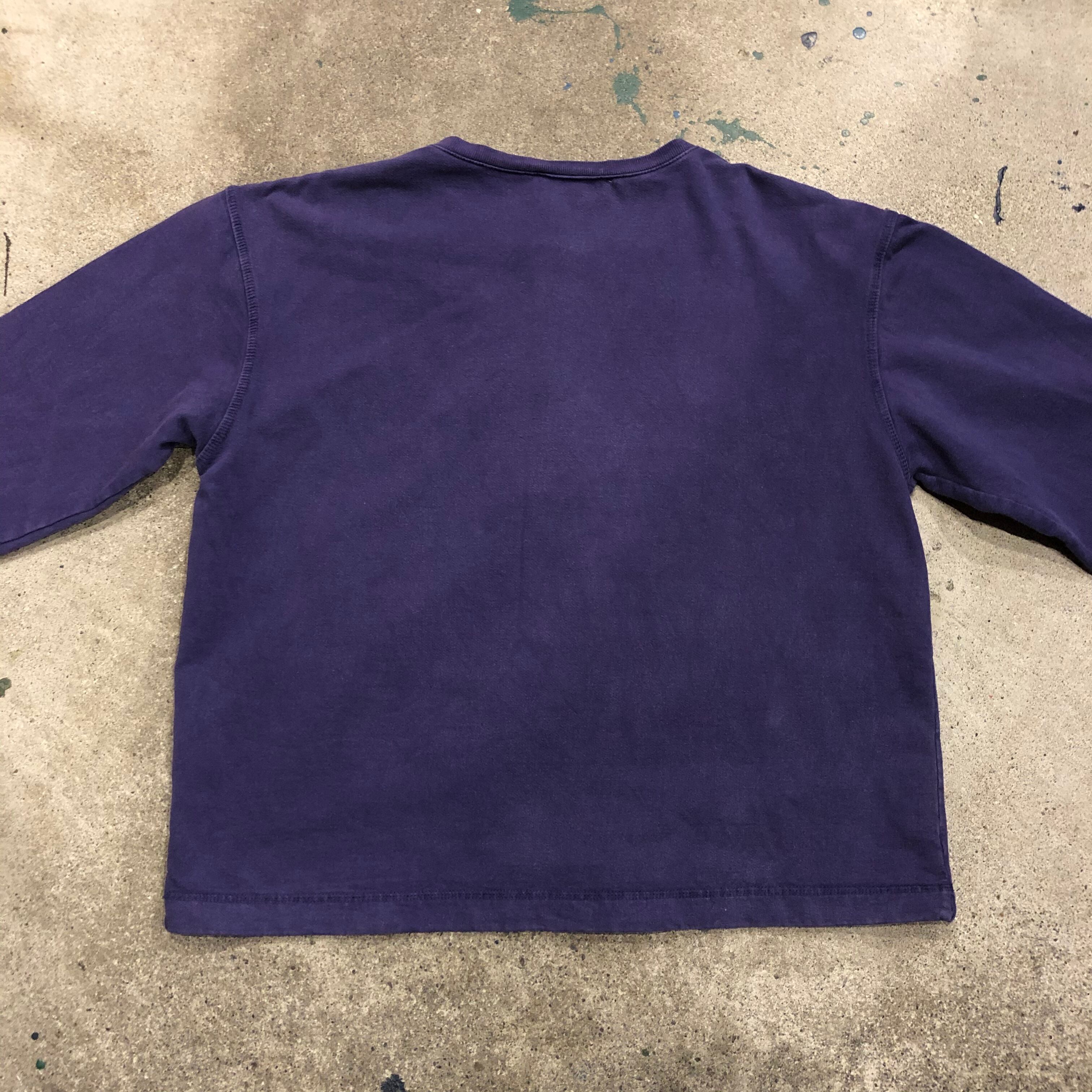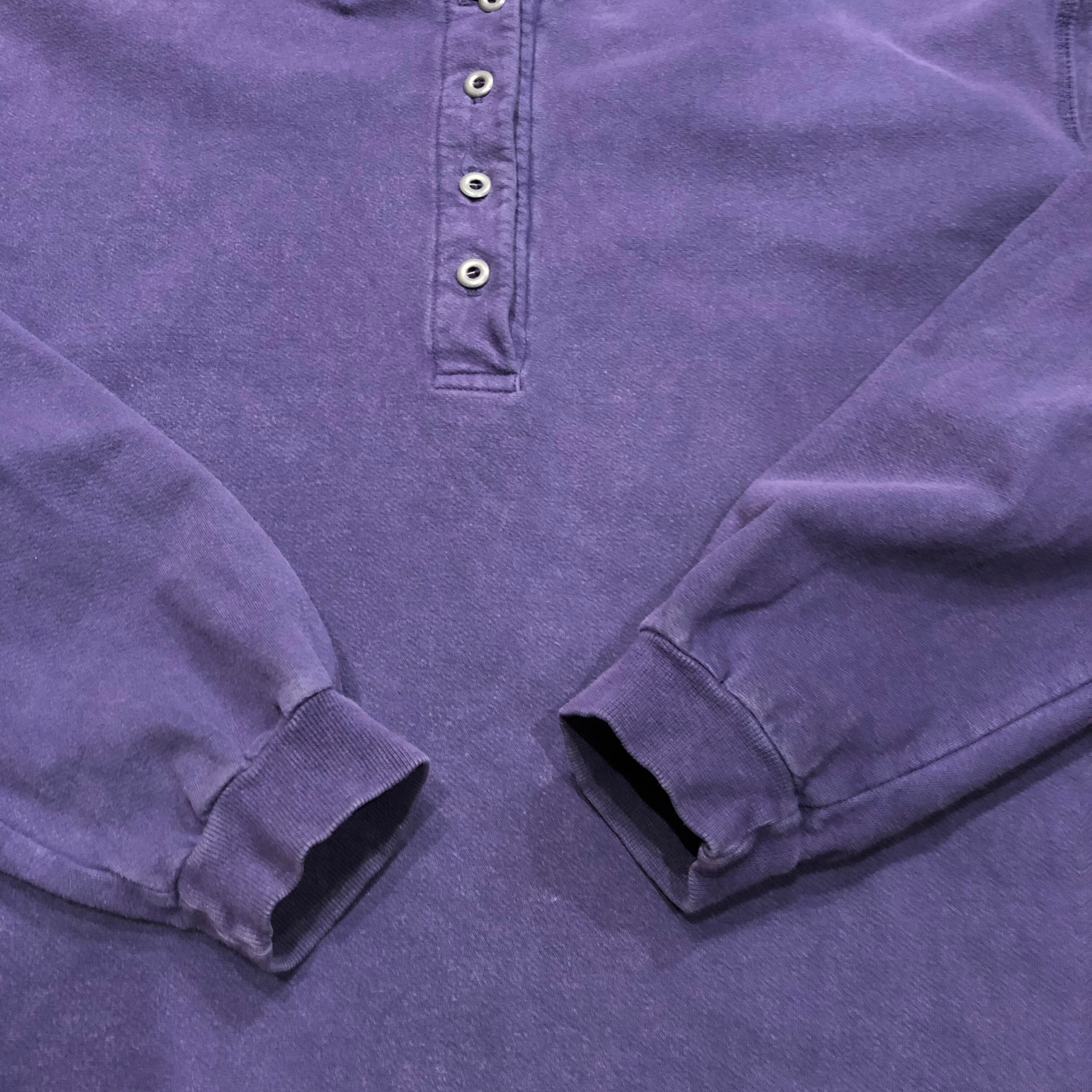 色褪せた紫が良い雰囲気のUSA製L.L.Beanのスウェットです。ロンTとスウェットの間くらいの薄手の生地感でショート目な丈感が使いやすいです。