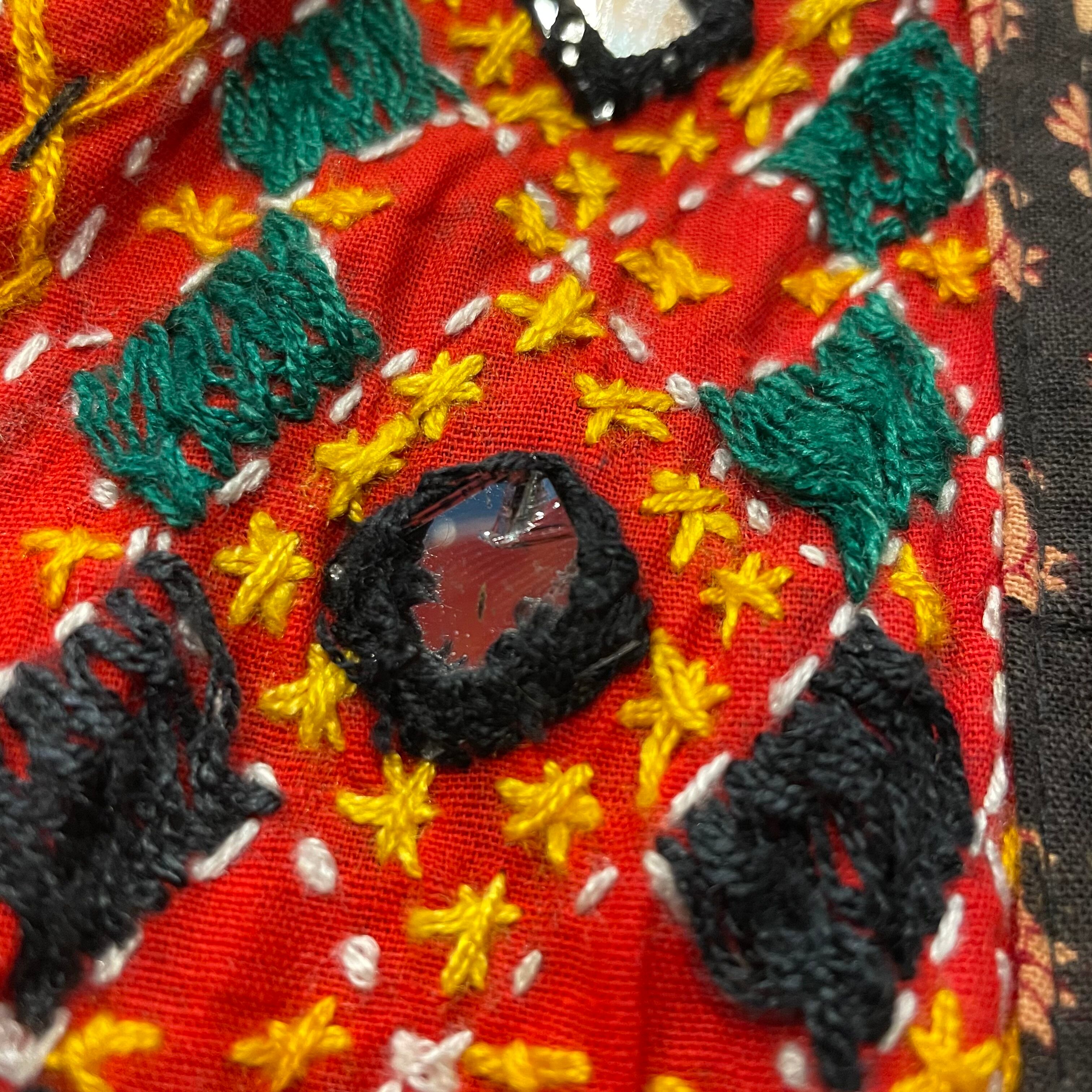 背中に色抜けや日焼けのような箇所があります。ミラーワークのパーツが菱形ですが角が尖っていますので注意が必要です。