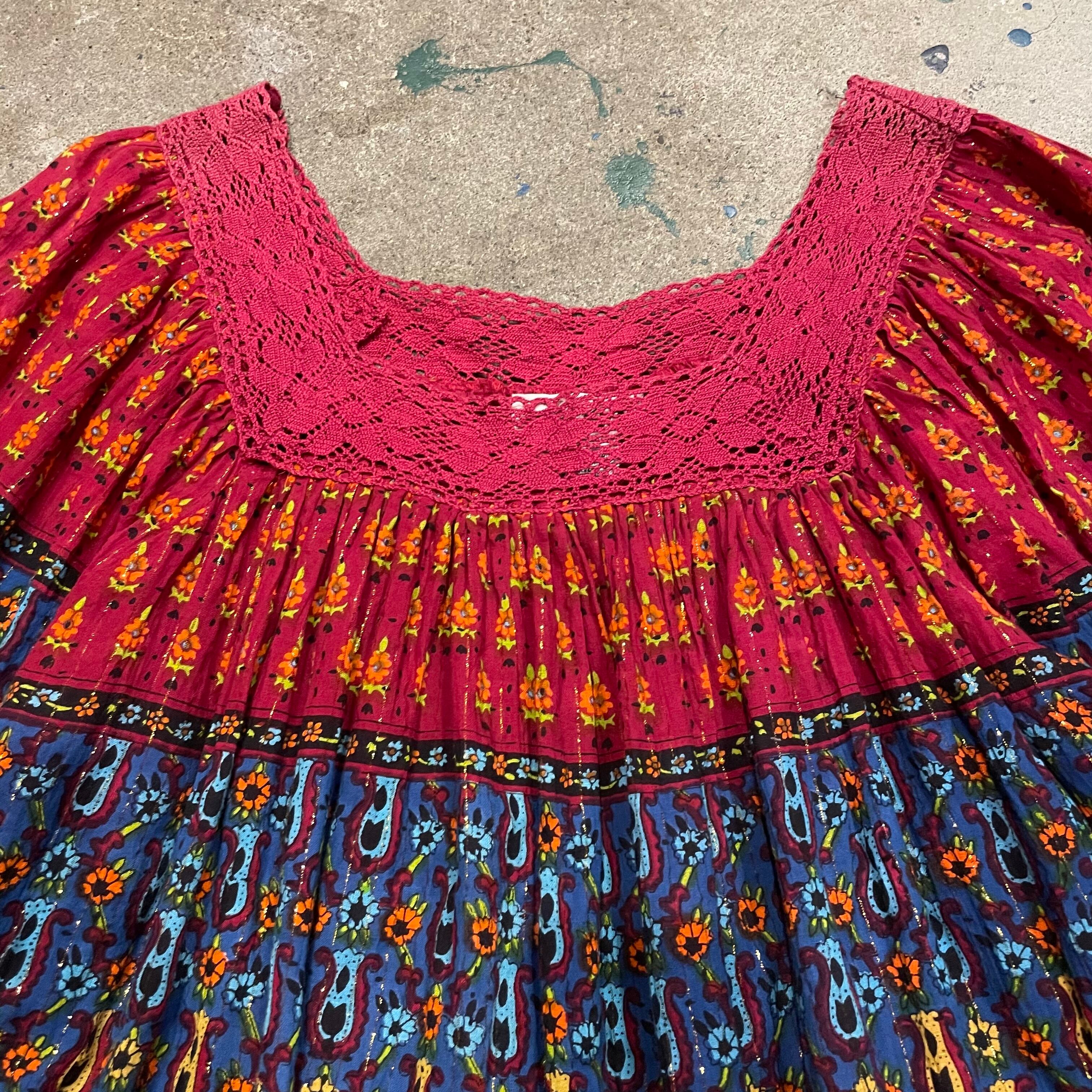 花柄とサテンのテープ、きらっとラメの糸など細部までかわいいチュニックです。
