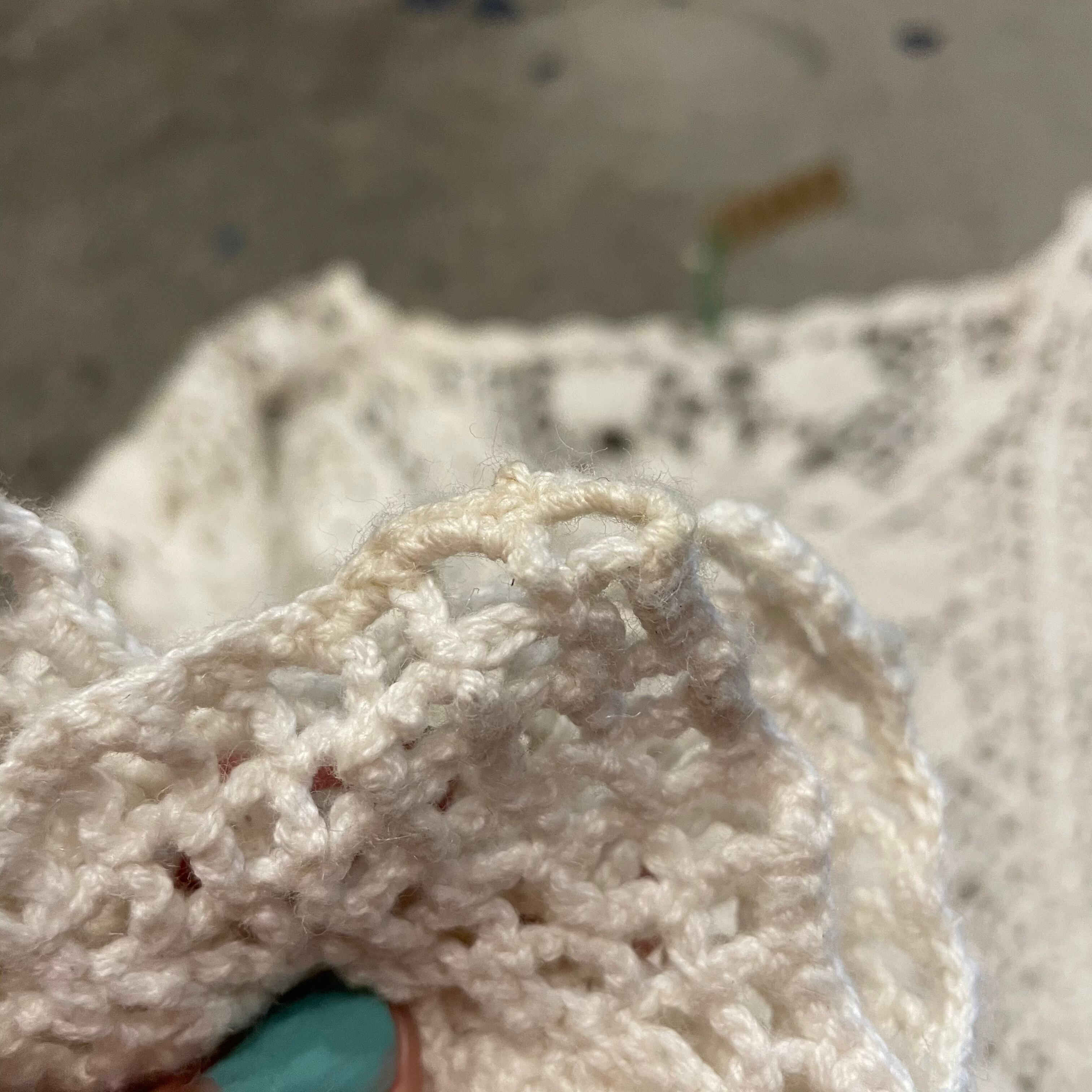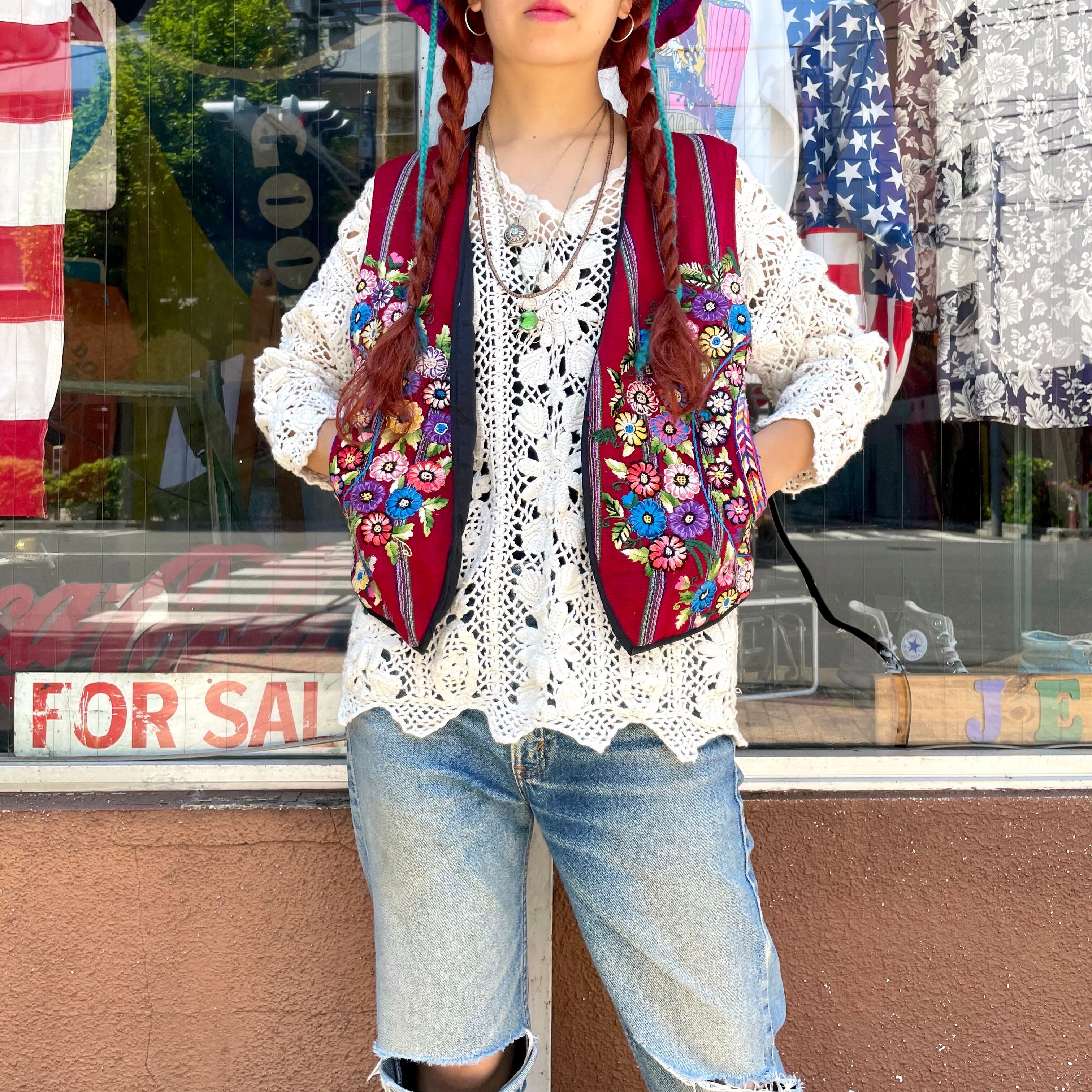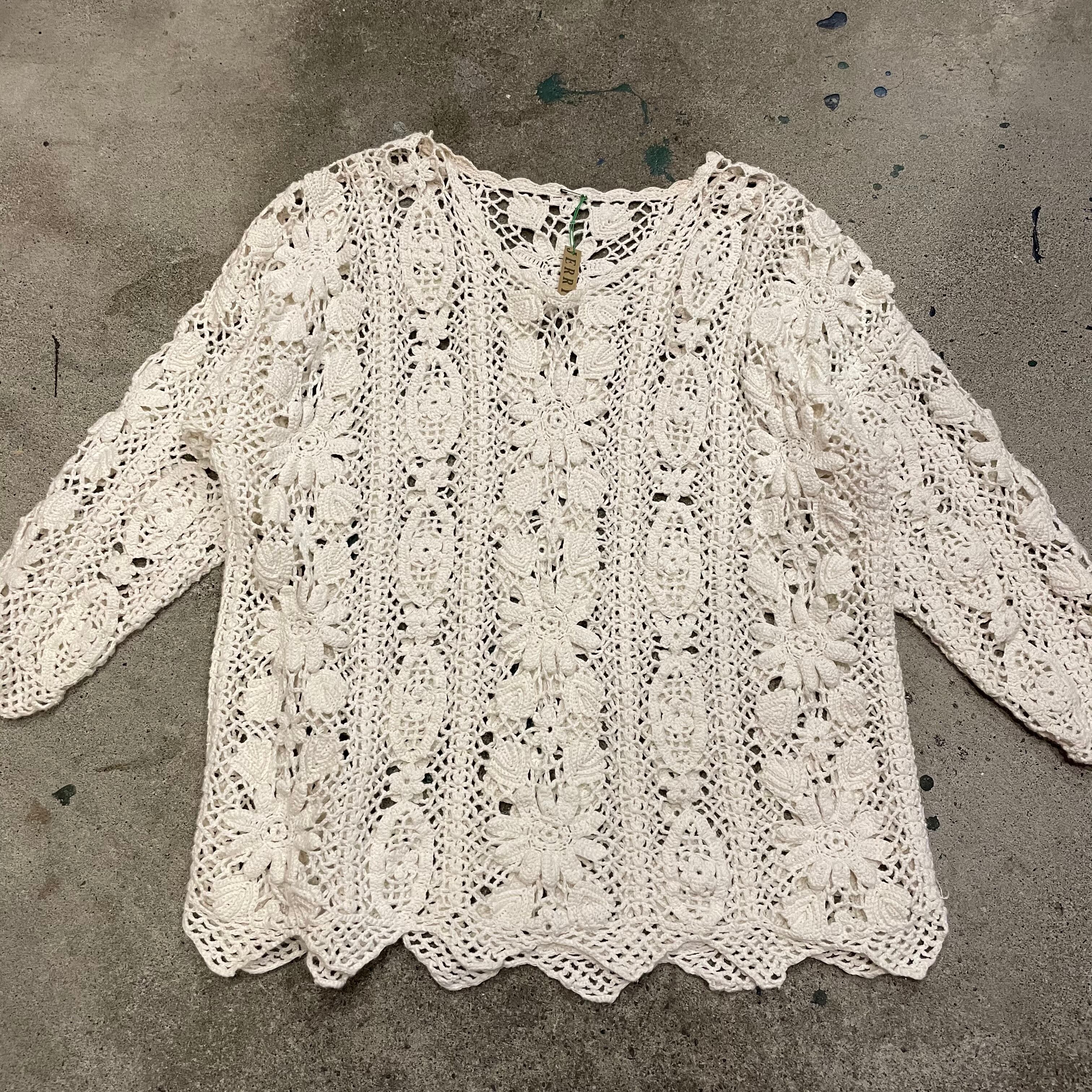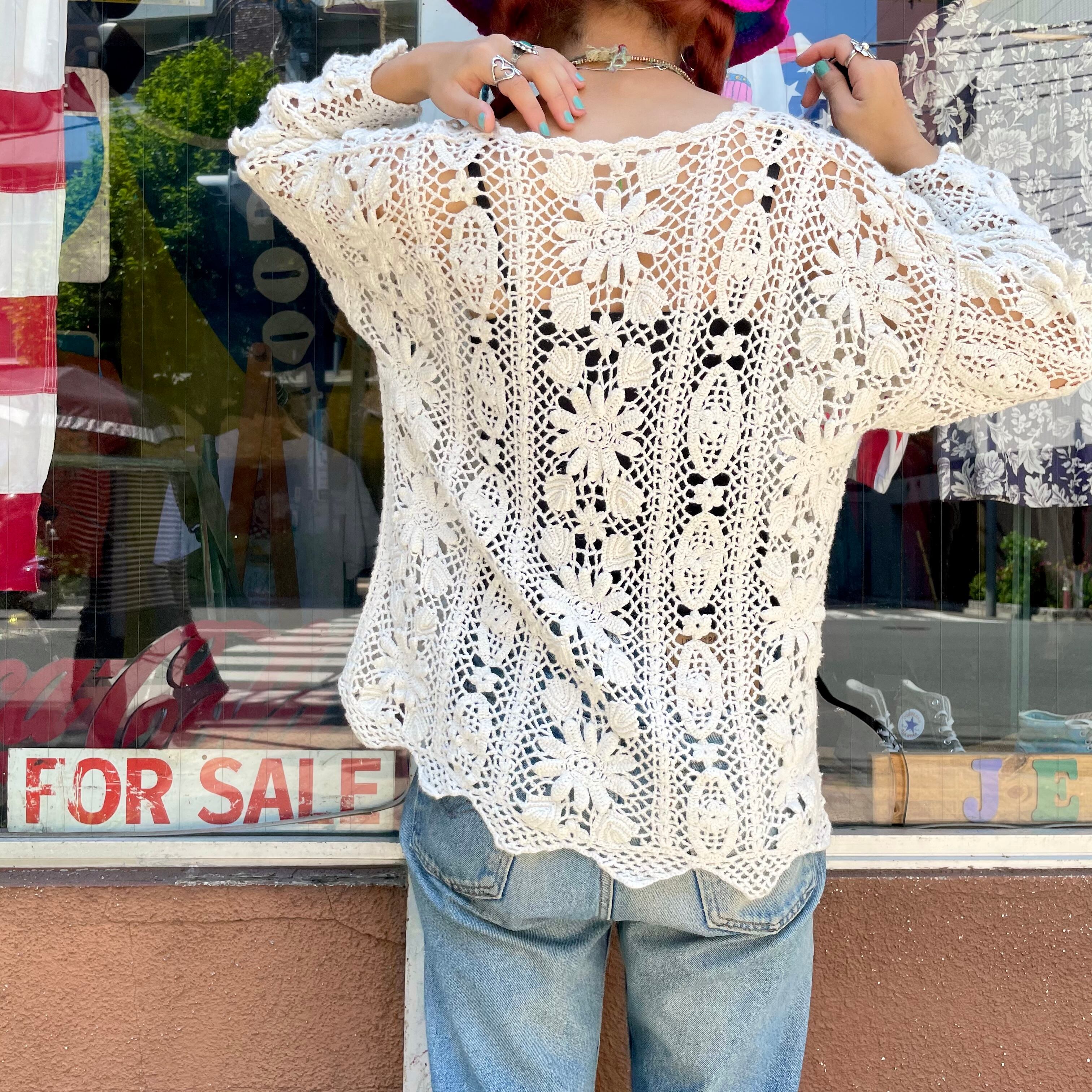大きめのお花のモチーフが透けてとてもかわいいです。袖口や裾がギザギザになっているのもポイントです。インナーに派手な色を合わせたり、キャミソールワンピースの上に重ねたり、ブラトップのみで肌を透けさせるのもかわいいですね!