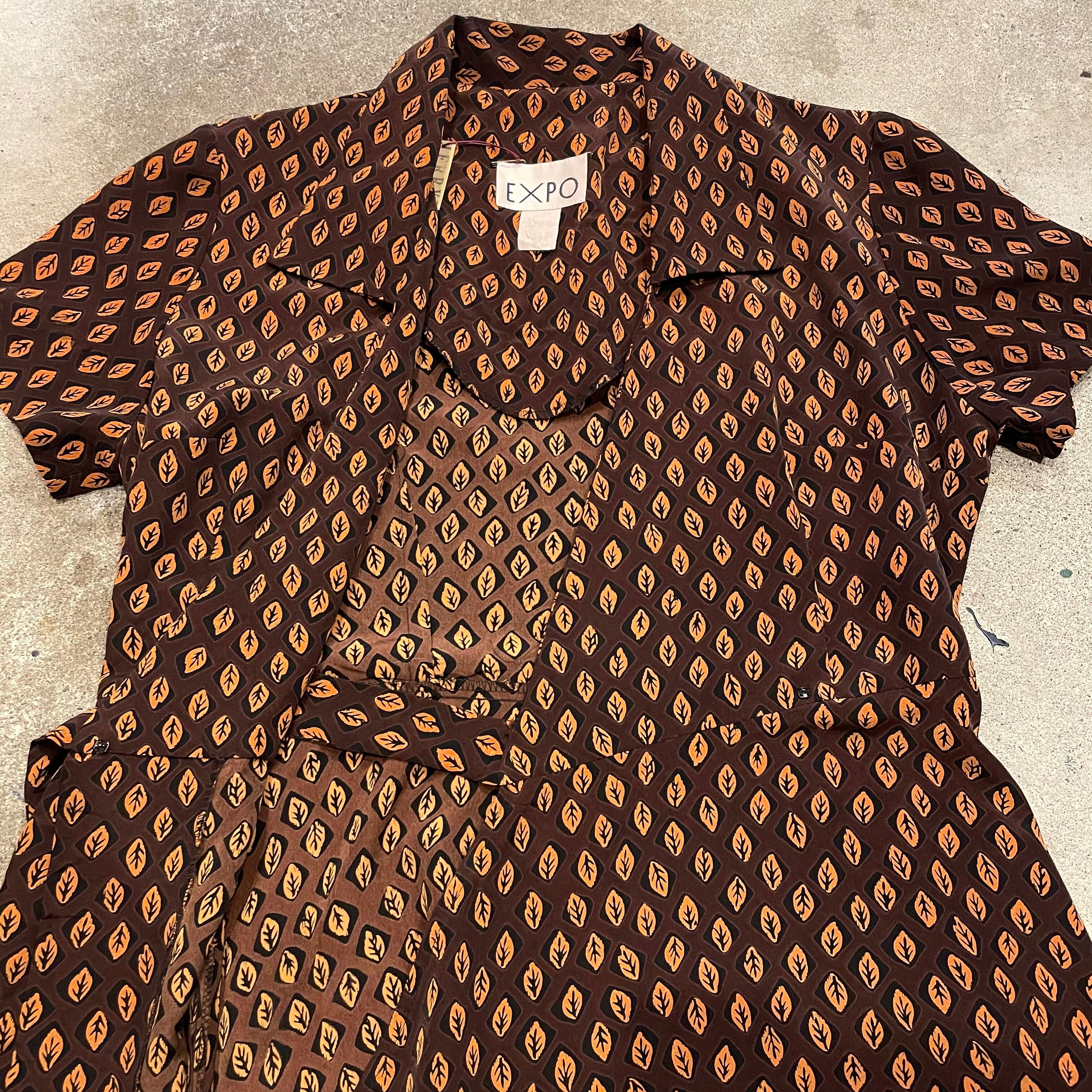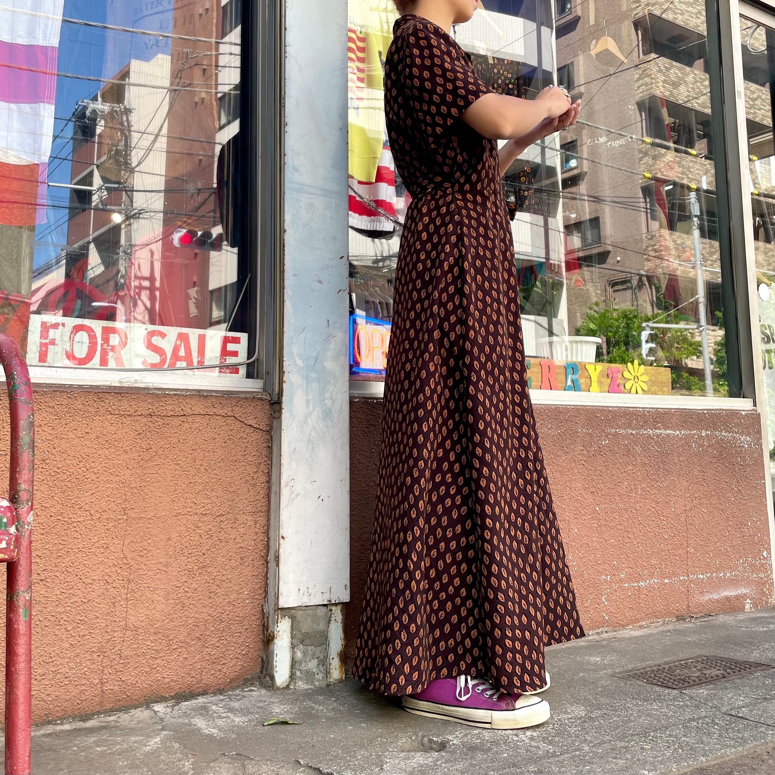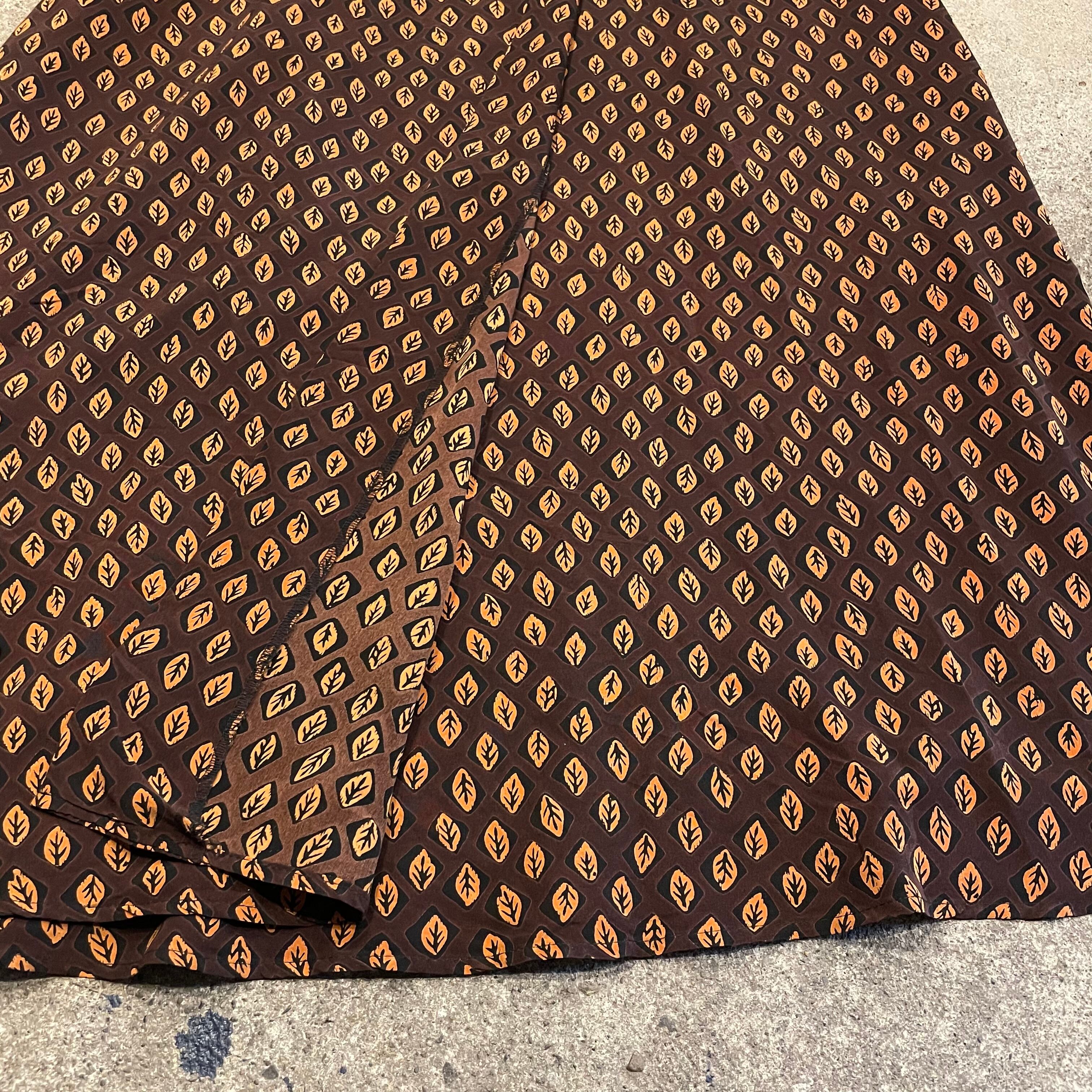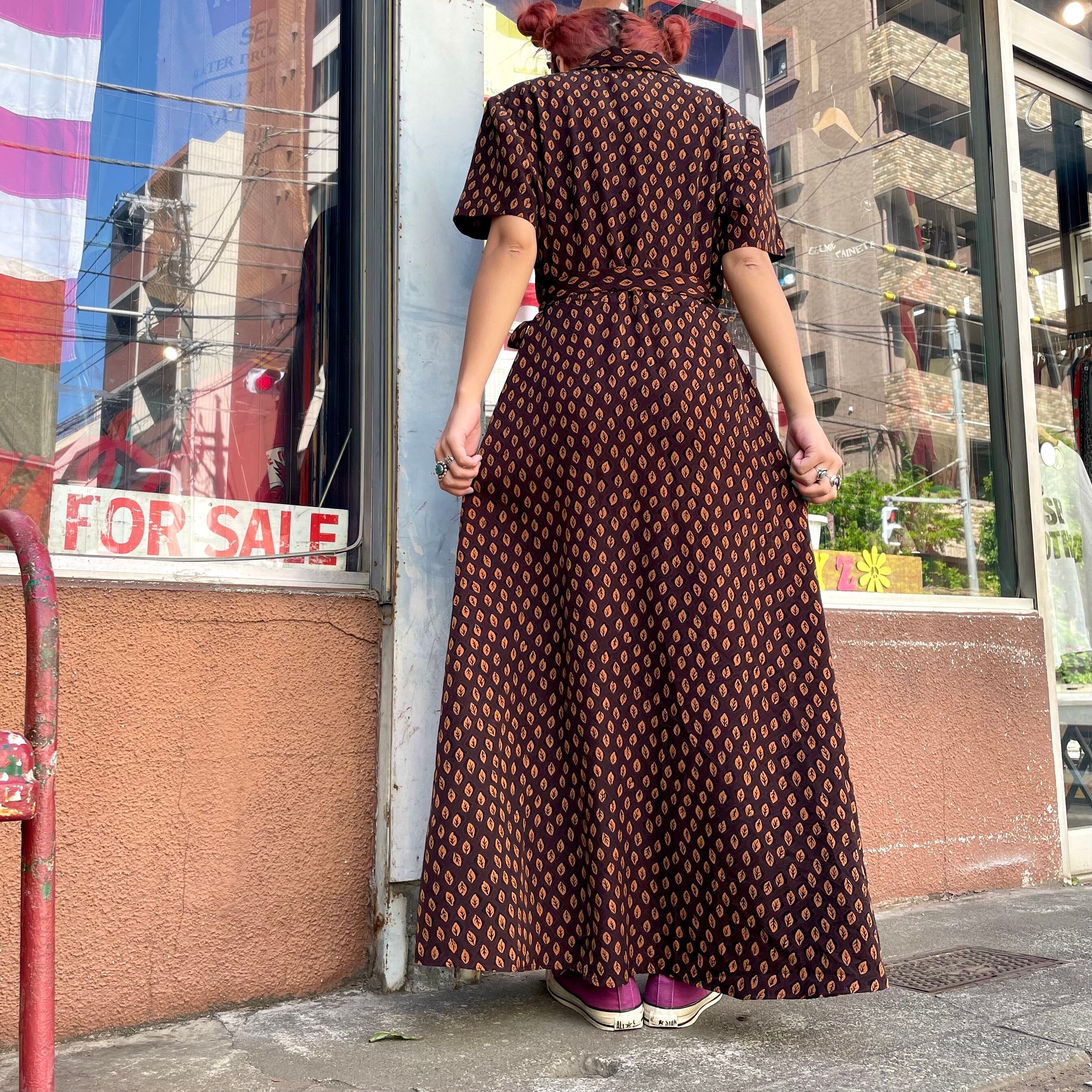 茶色に葉っぱ柄のカシュクールタイプのワンピースです。