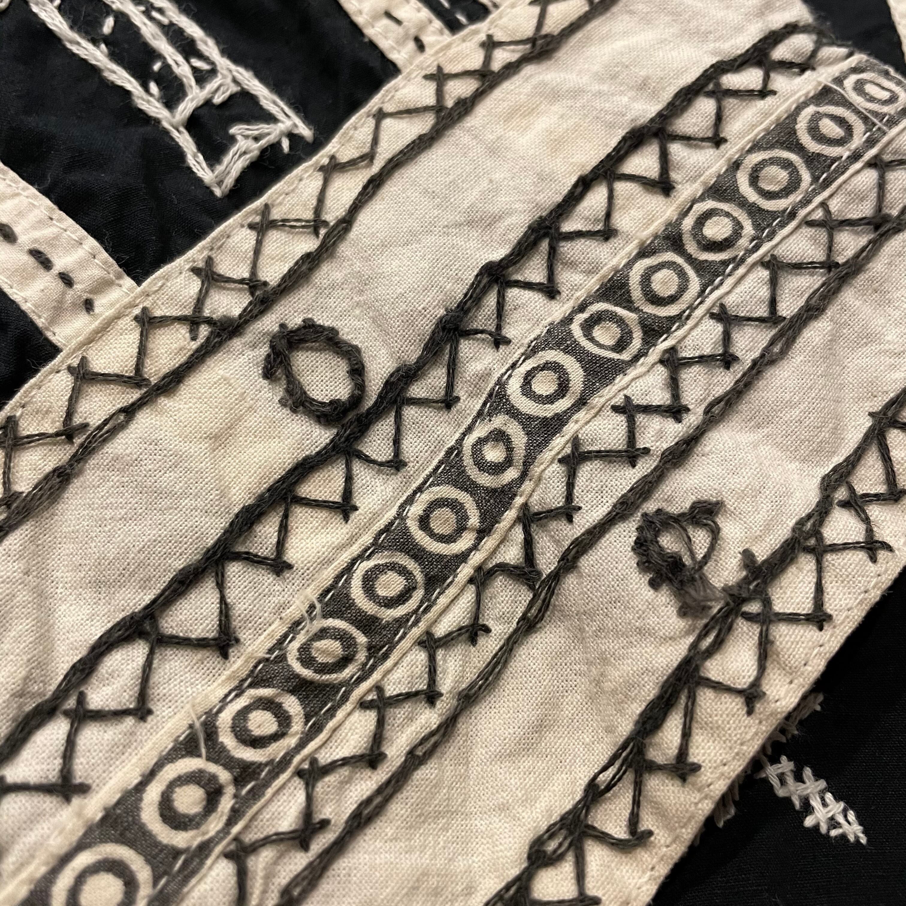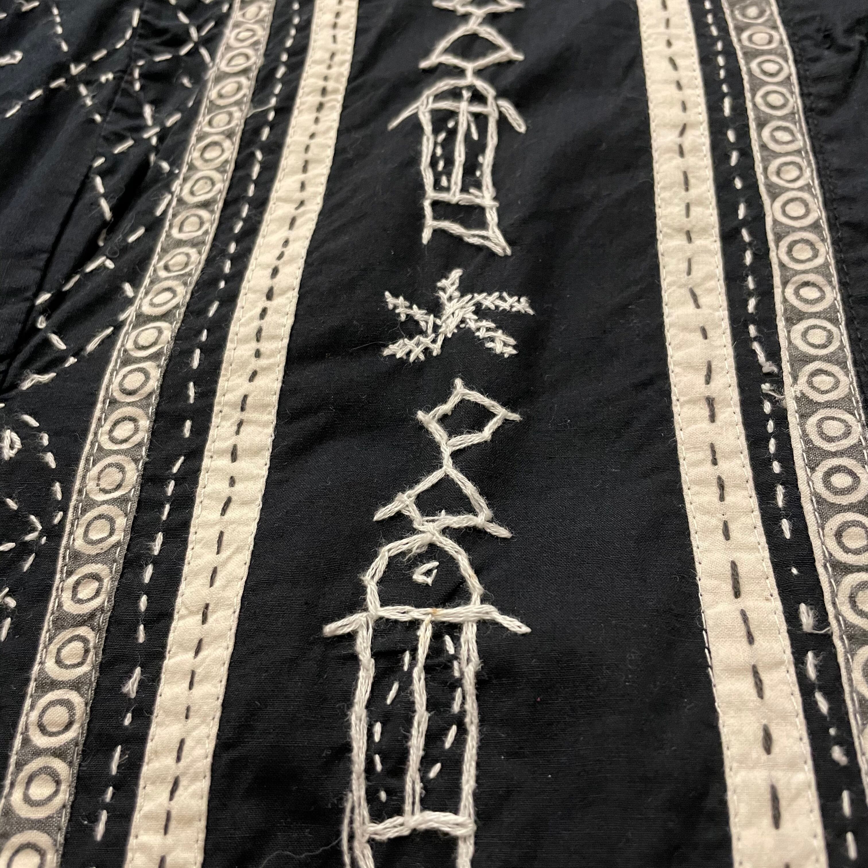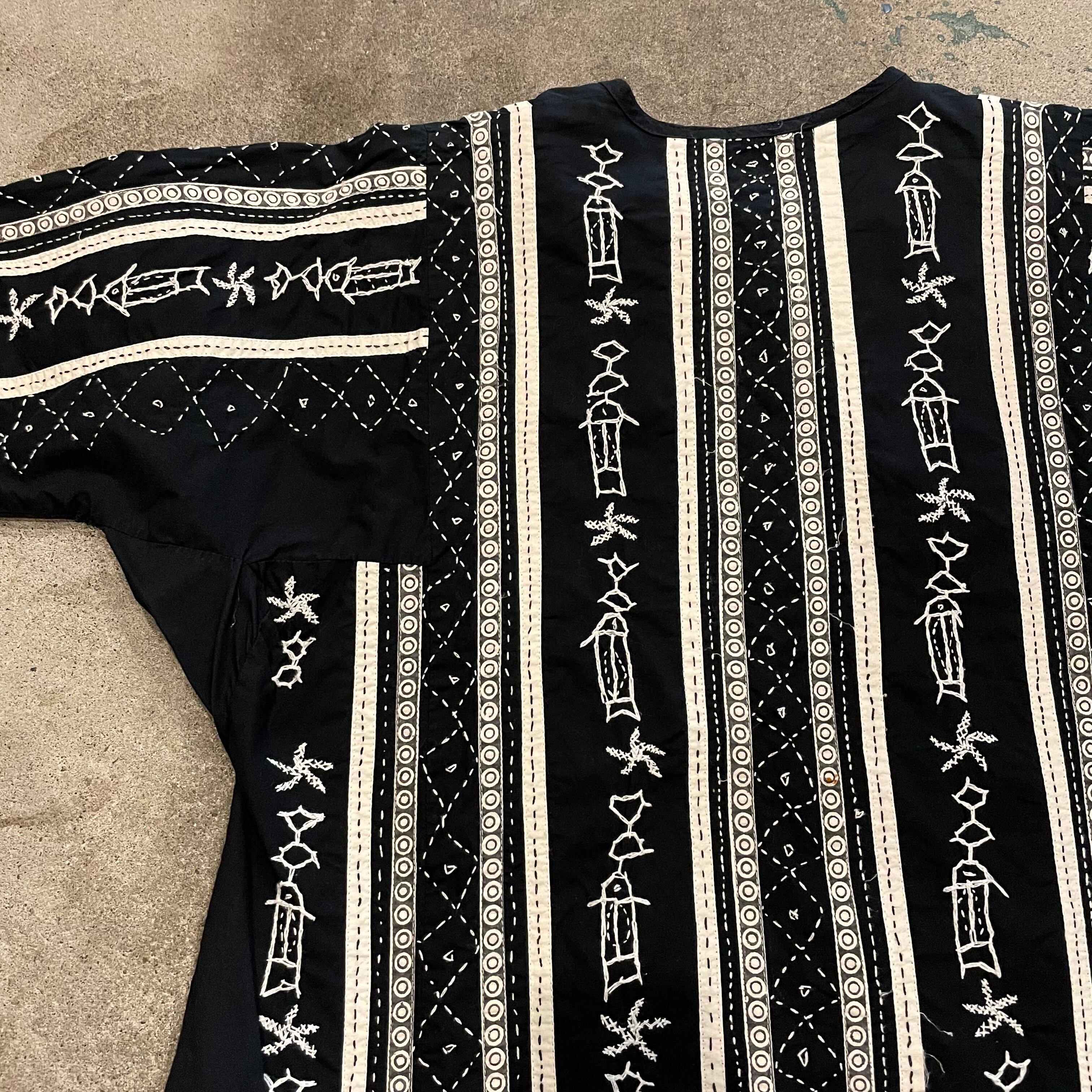 繊細とは言えない刺繍ですが前はもちろん、背中や袖までしっかり施されております。適当に刺繍されたモチーフが少しマヌケな雰囲気でおもしろい一着です。