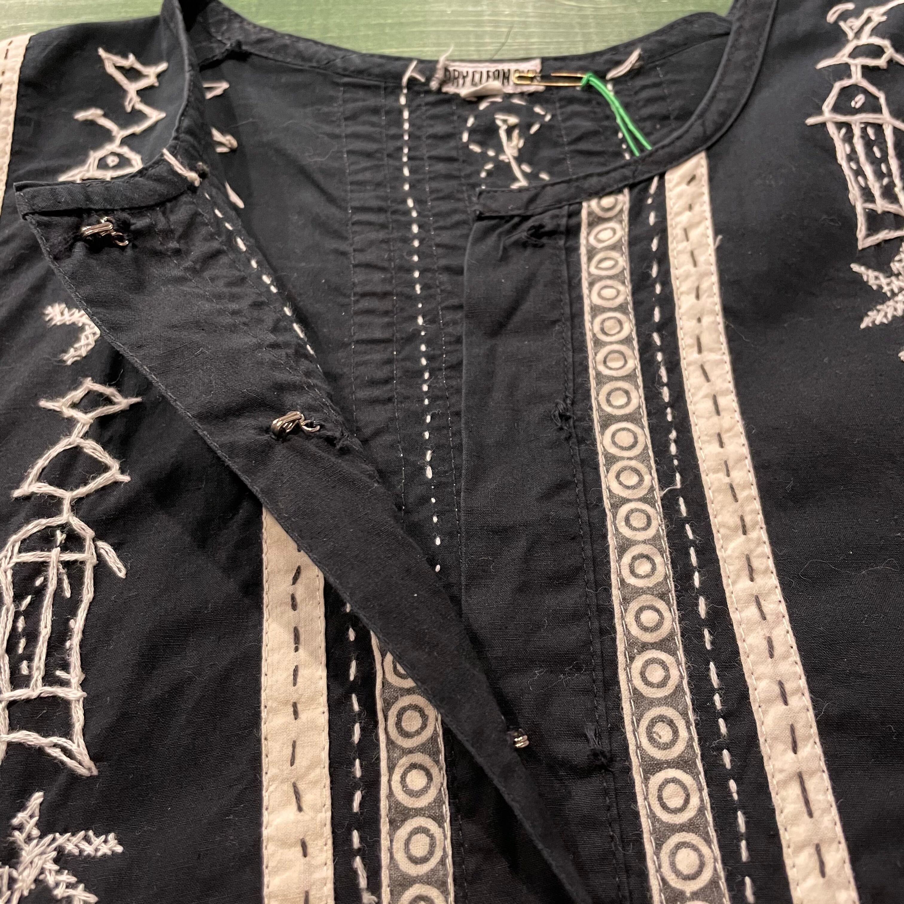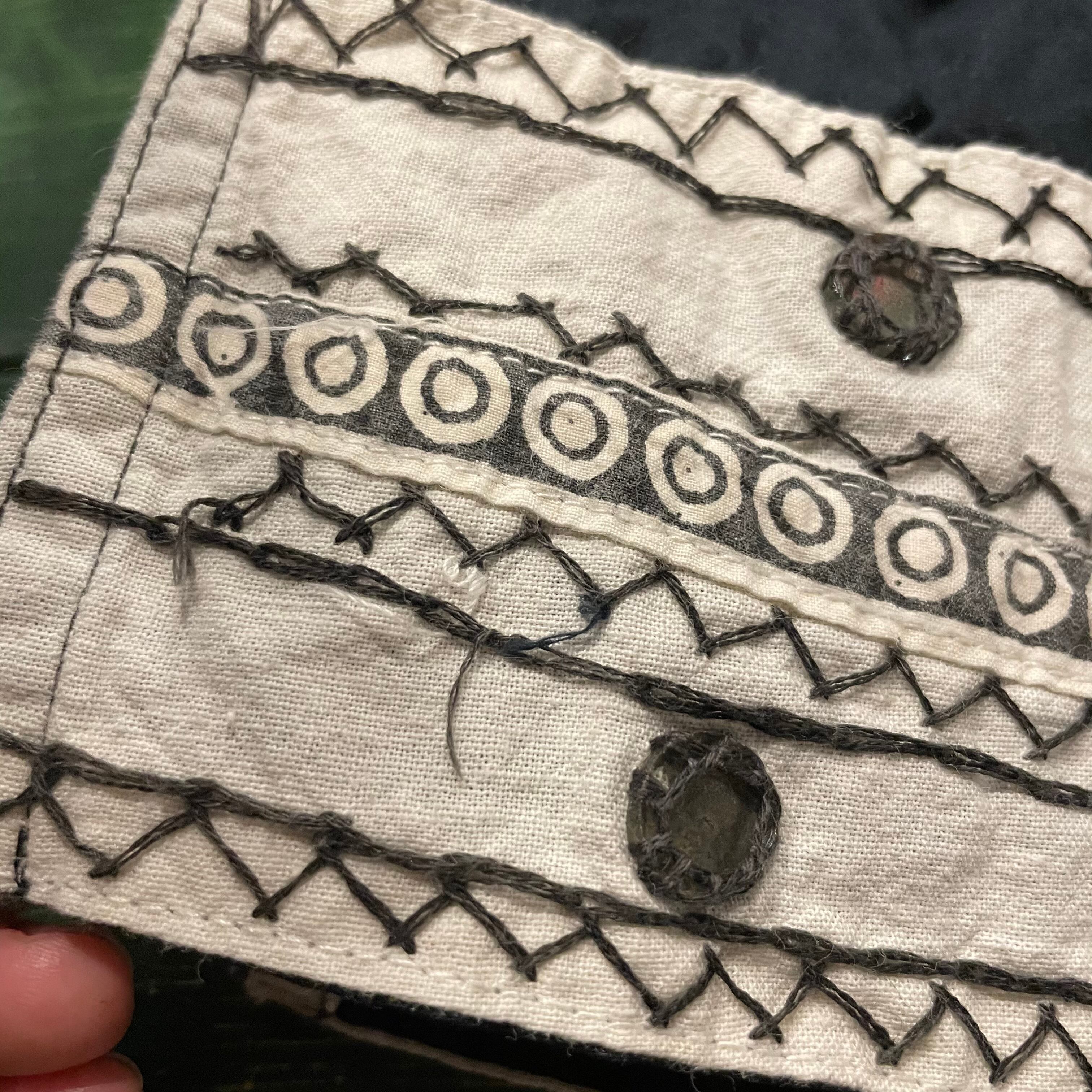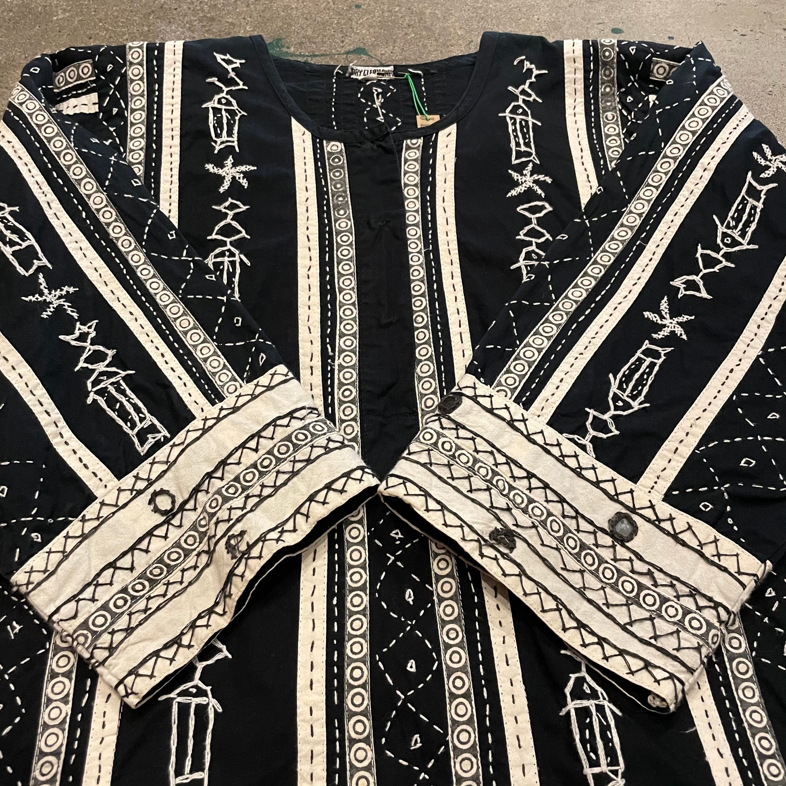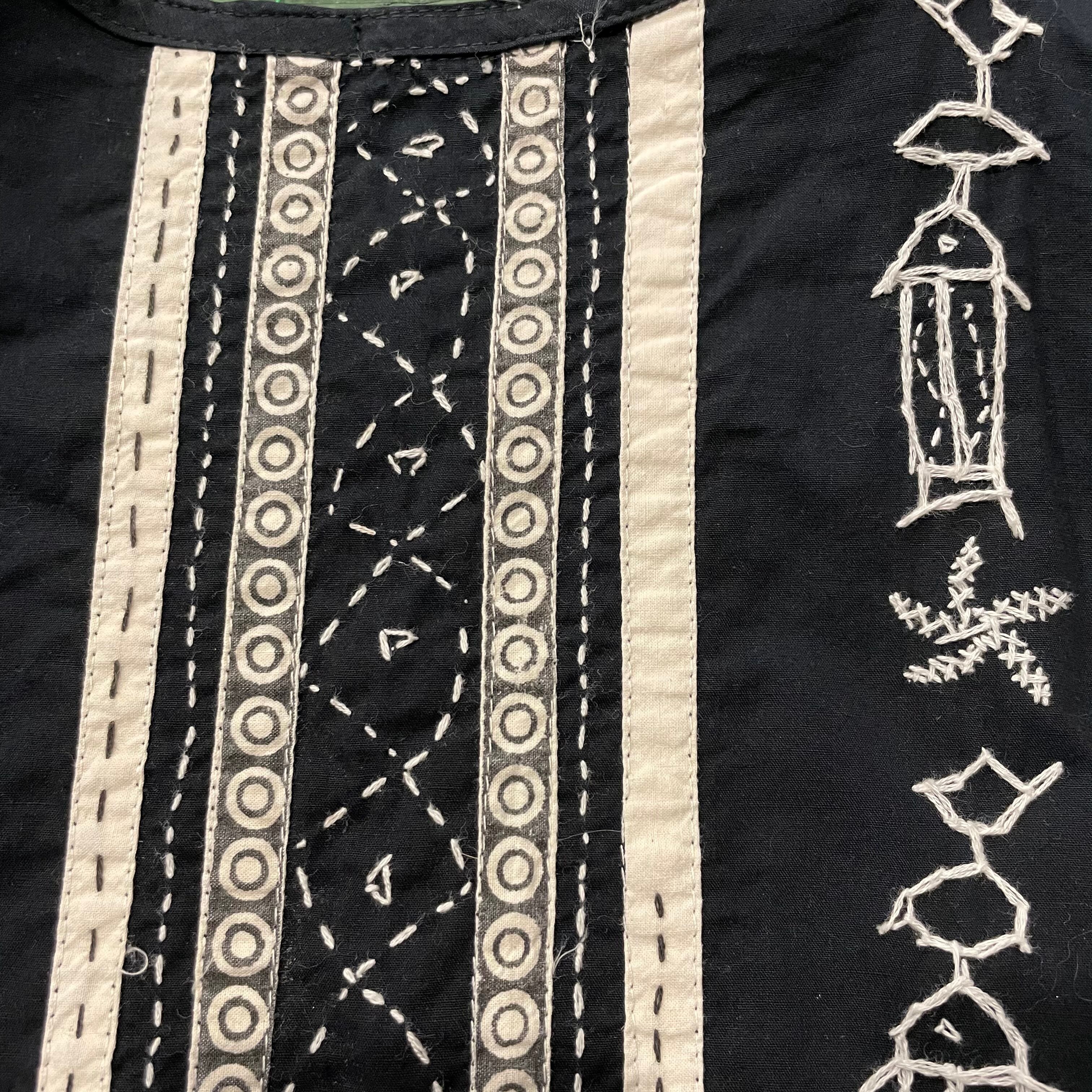 繊細とは言えない刺繍ですが前はもちろん、背中や袖までしっかり施されております。適当に刺繍されたモチーフが少しマヌケな雰囲気でおもしろい一着です。