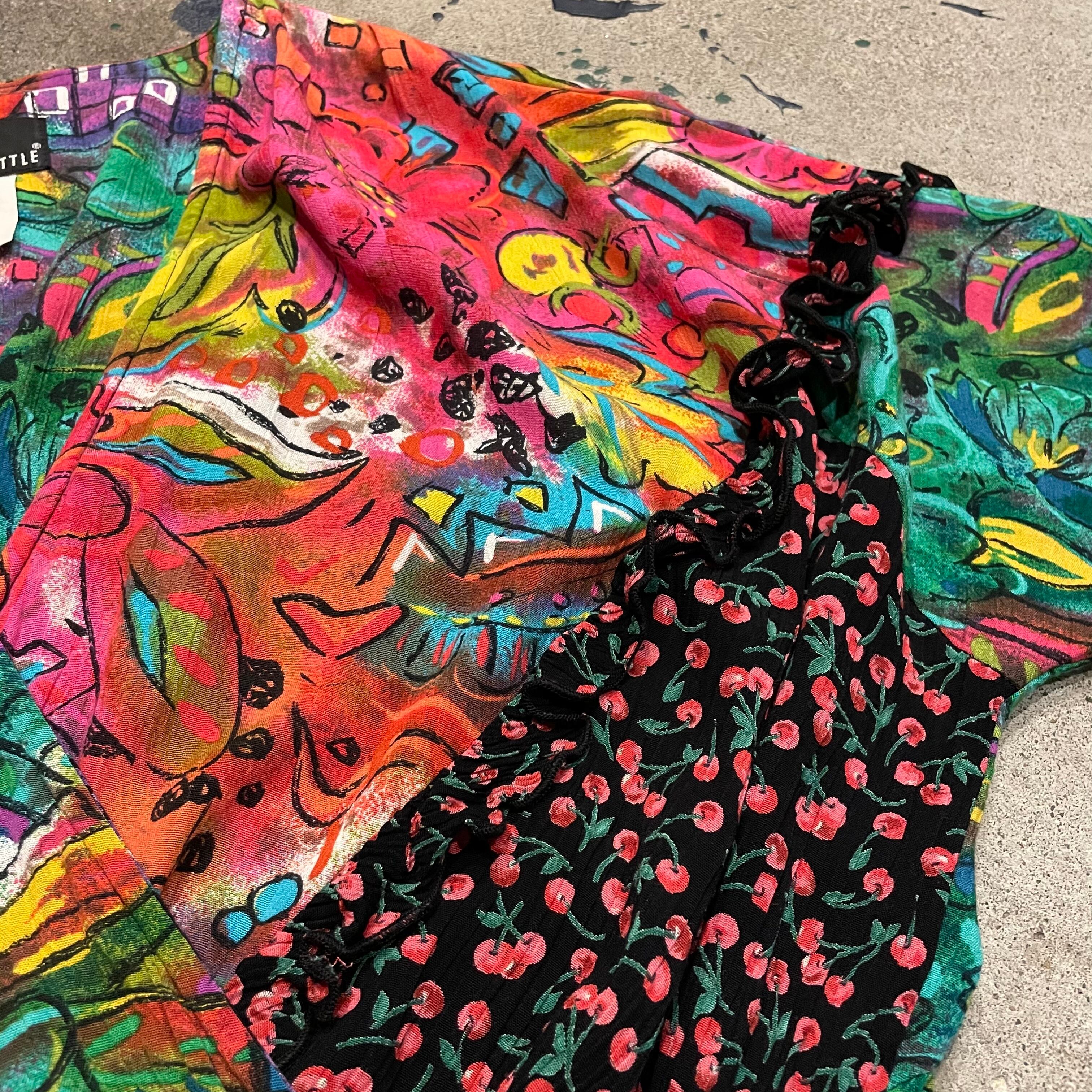 袖にはフリルが付いていたり全体的に華やかでとてもかわいい一着です。ウエストの両サイドはシャーリングになっていてシルエットもバランスが取りやすいと思います。