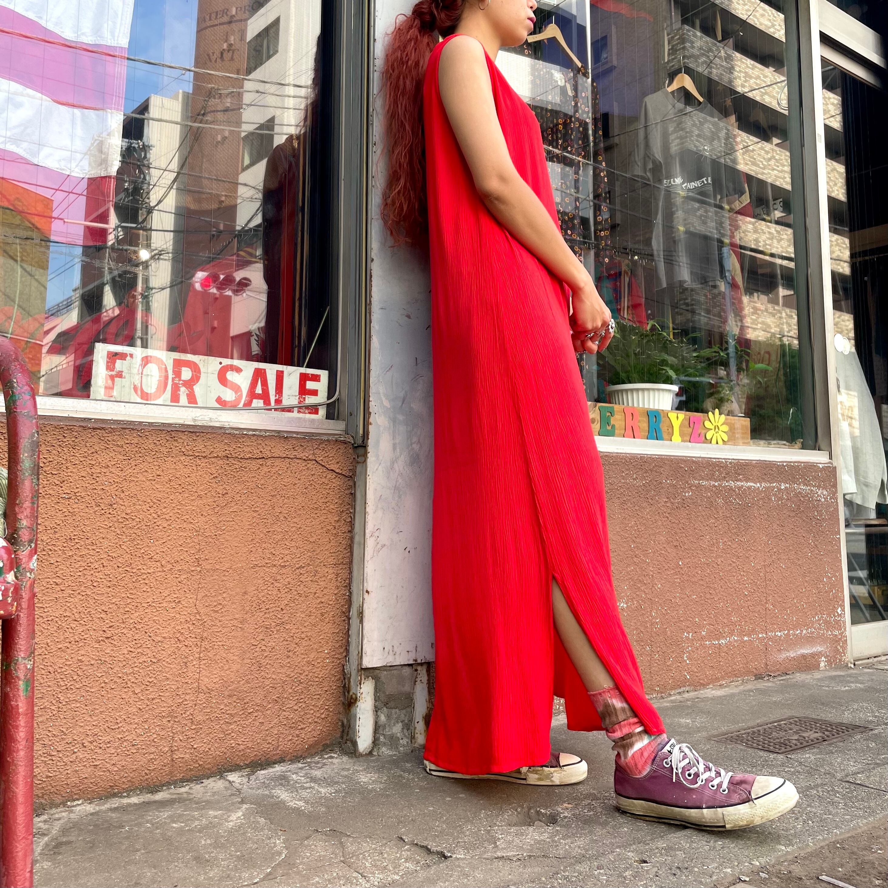 鮮やかでジューシーな朱色っぽいオレンジ一色が素敵なワンピースです。