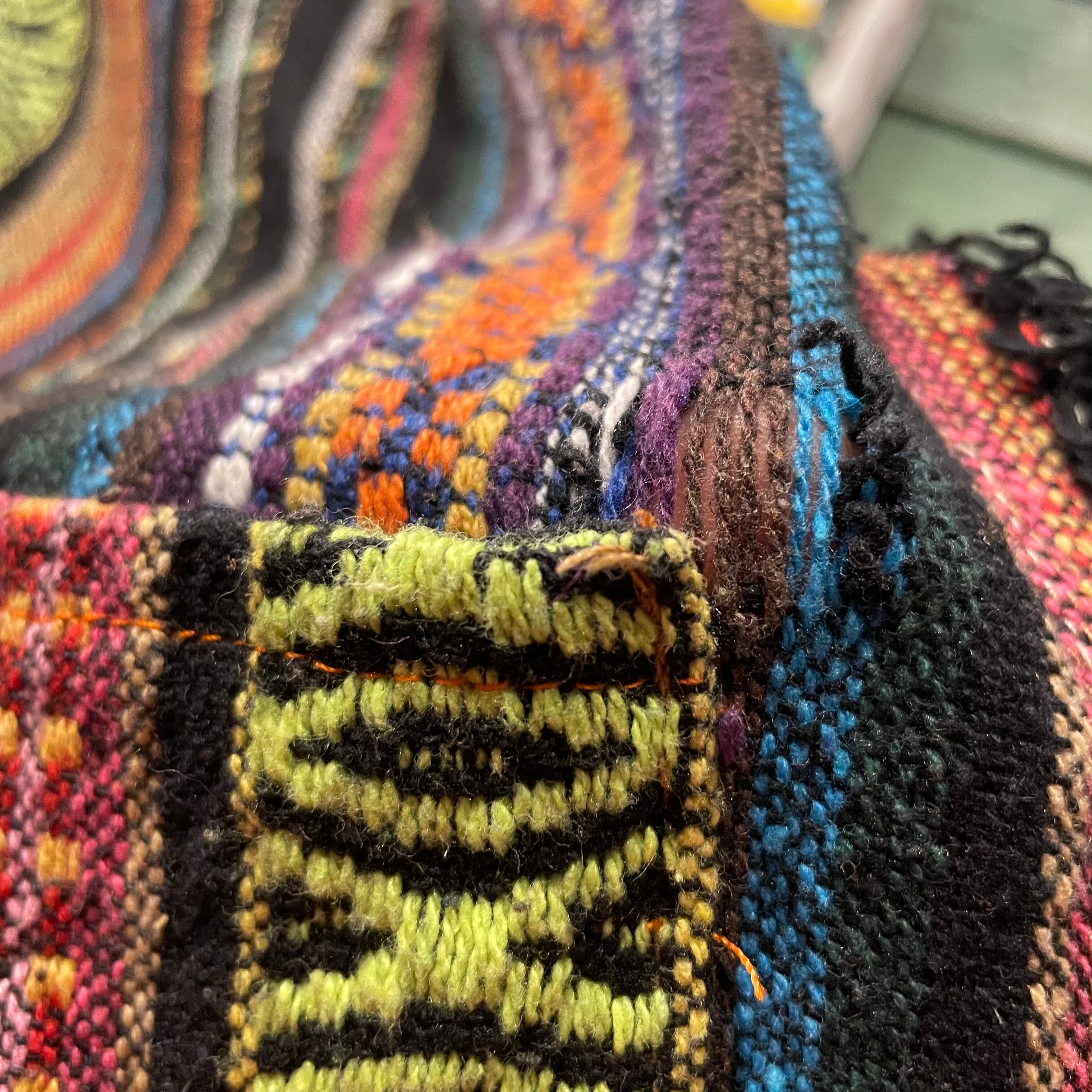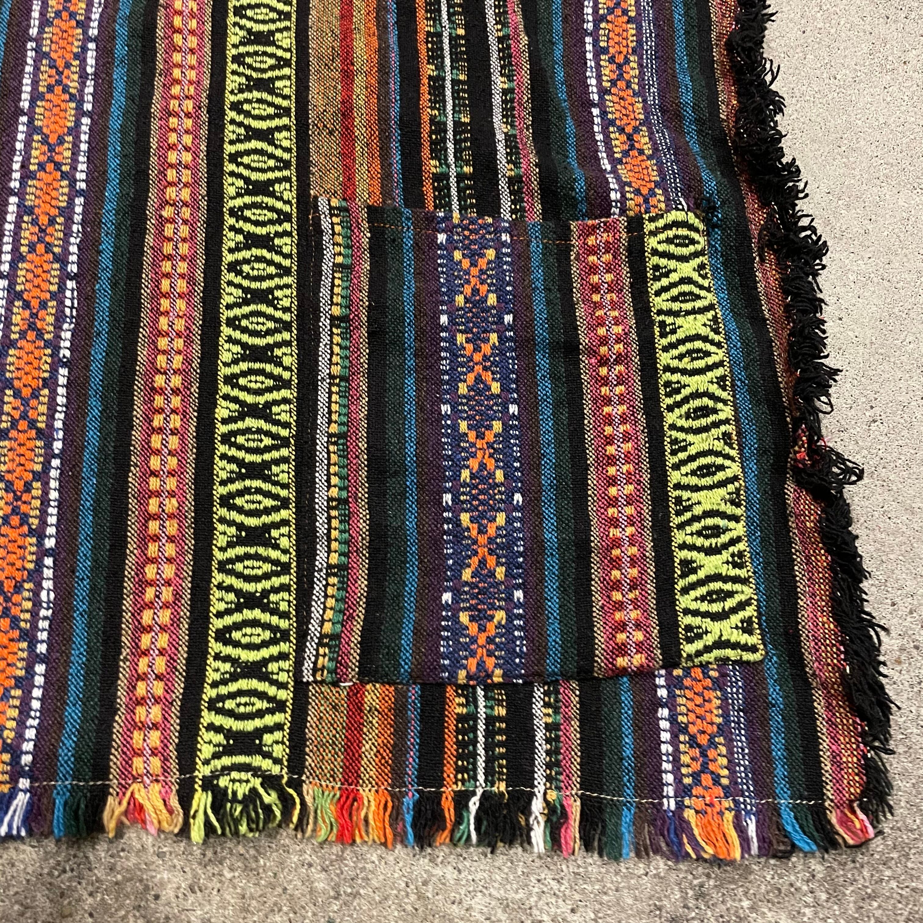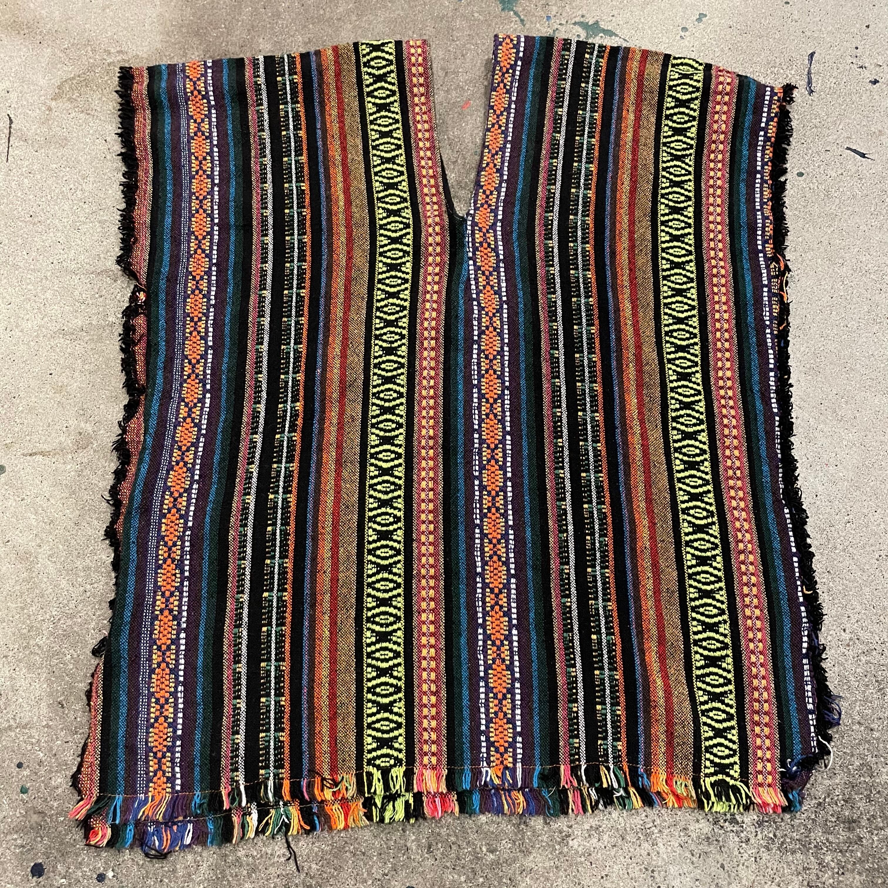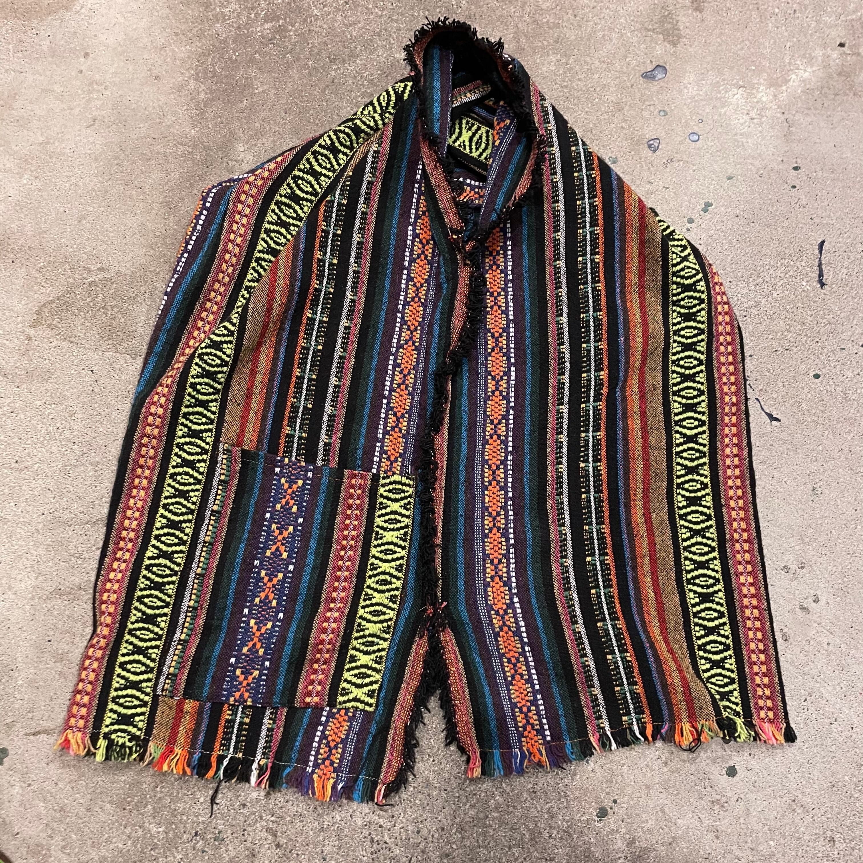 ガテマラっぽい雰囲気の織りがかわいいポンチョ風のトップスです。脇は縫われていますので普通のトップス感覚で着ていただけます。
