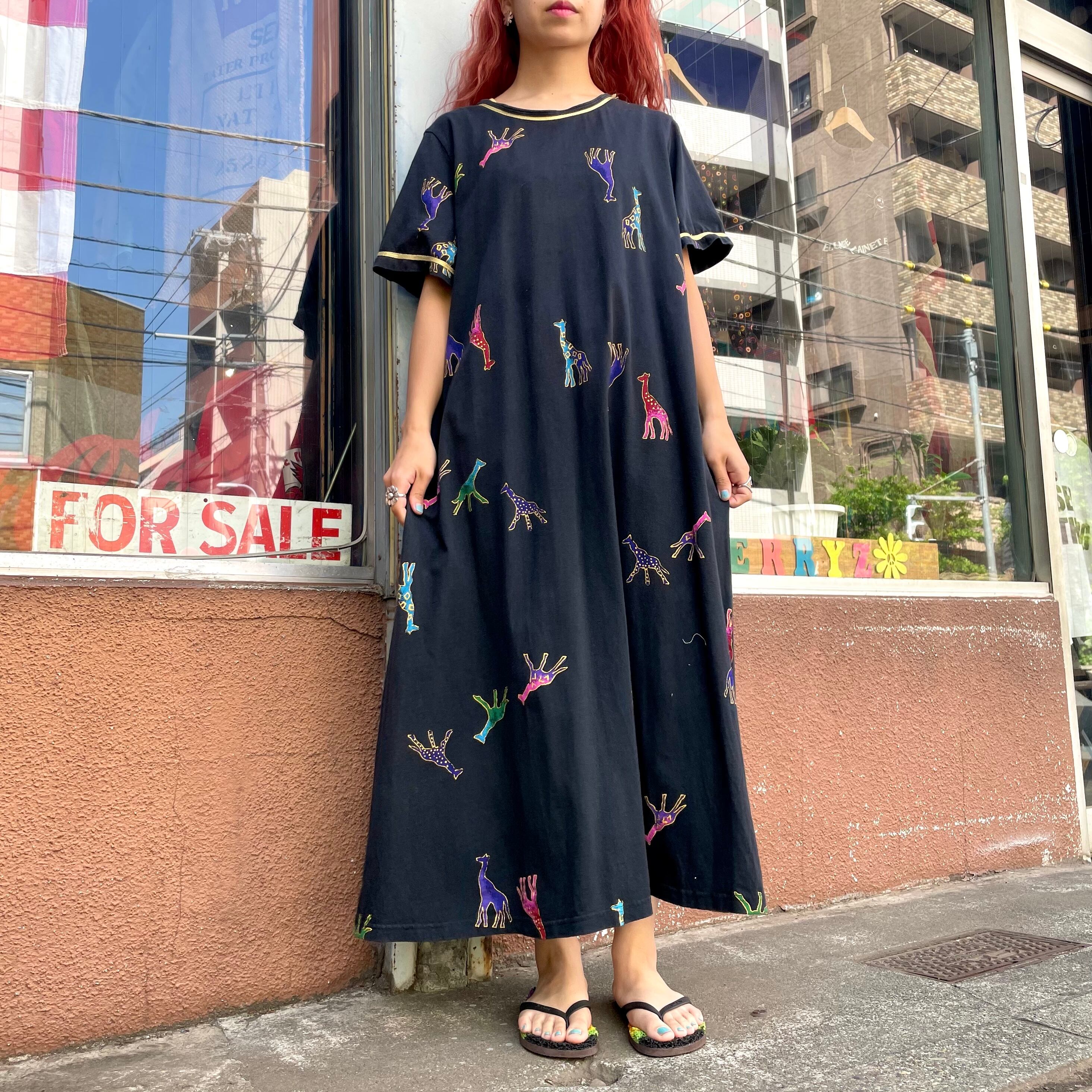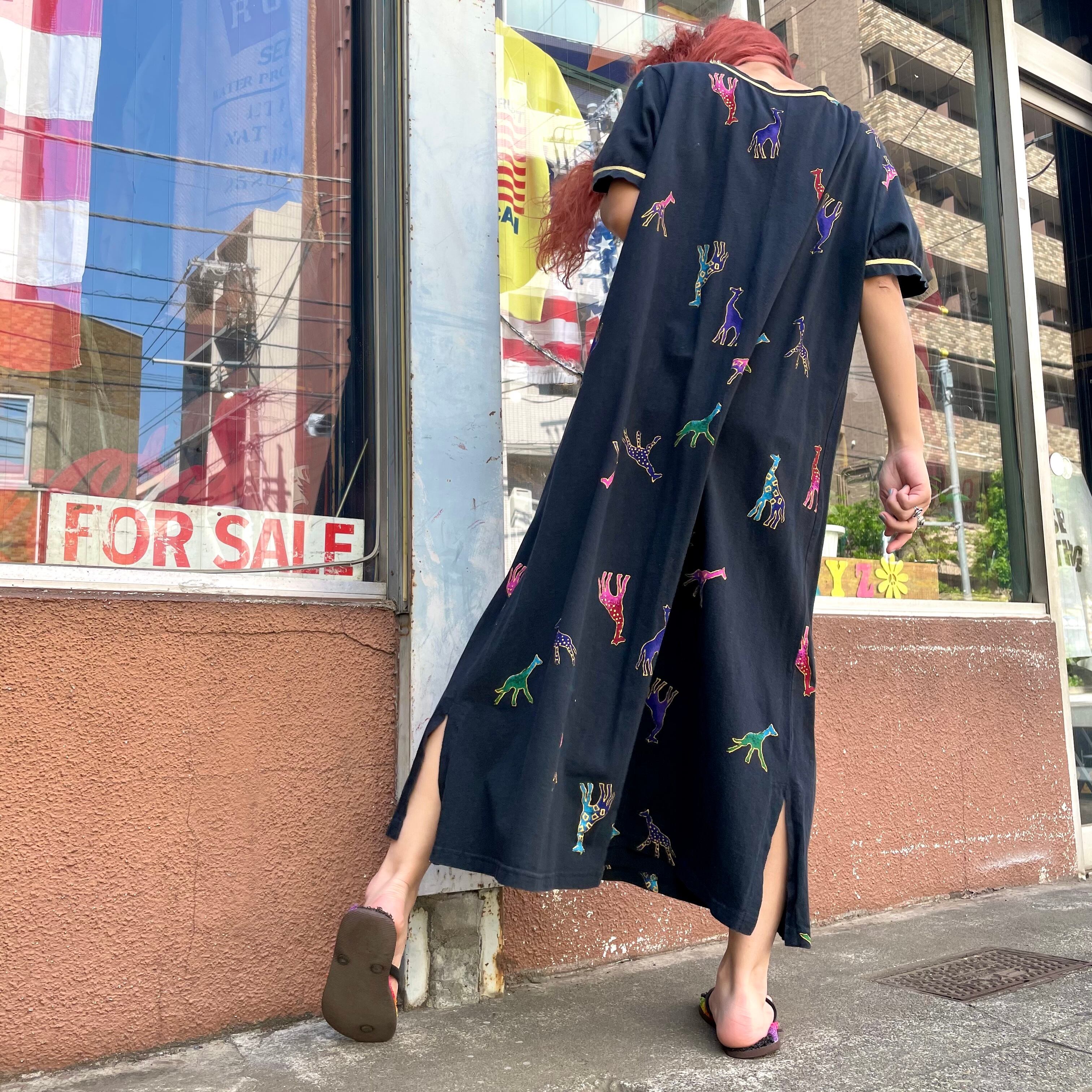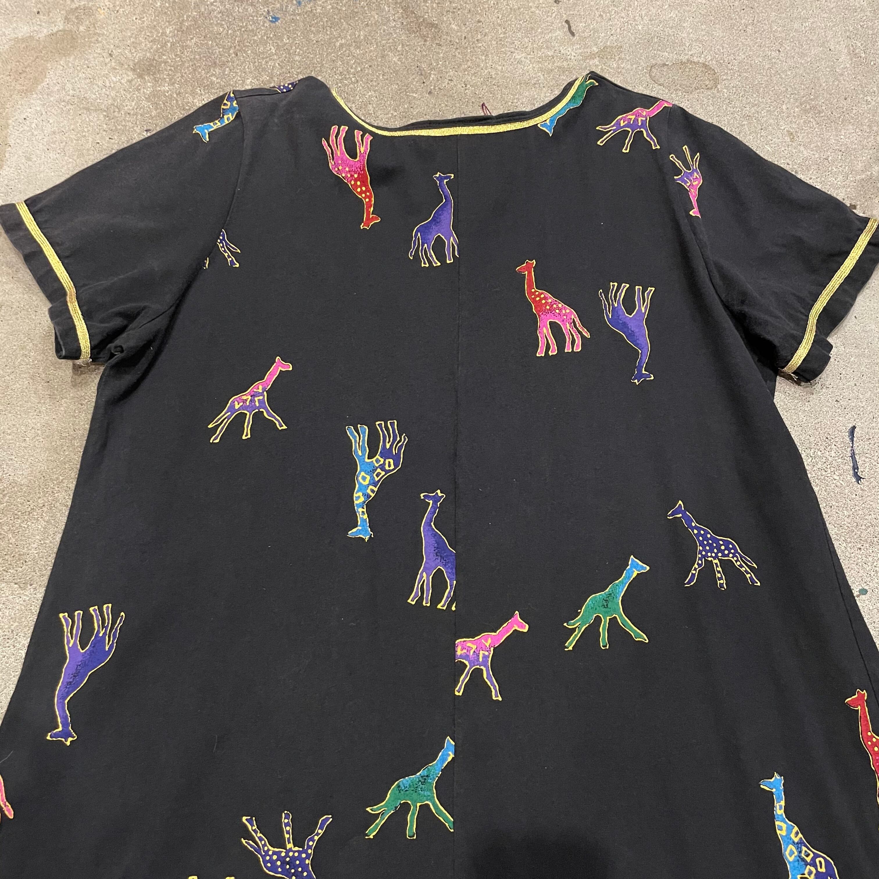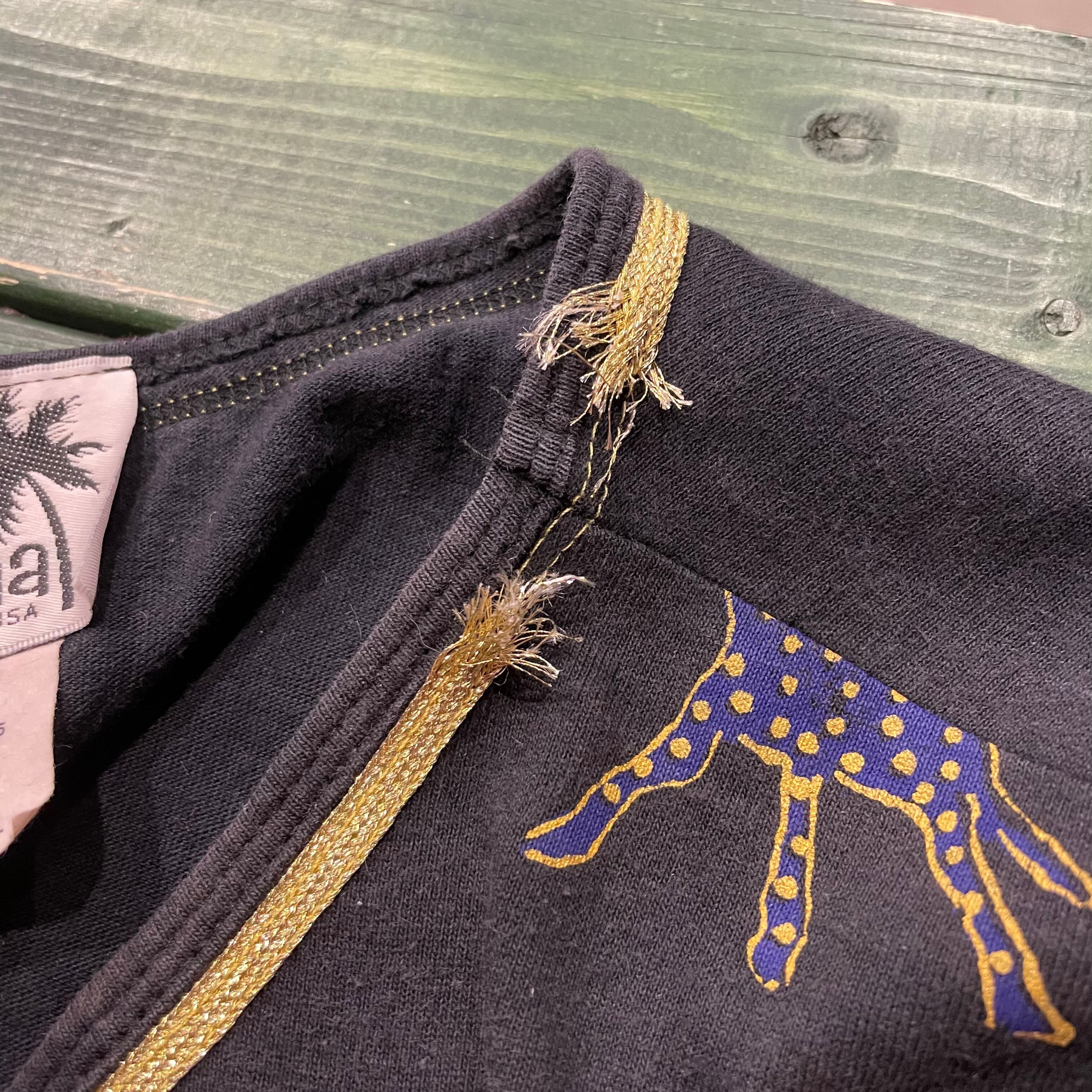 襟ぐりや袖口にはラメのテープが付いていたり、ゴールドで縁取りされたキリンたちが不思議な雰囲気で良いですね!