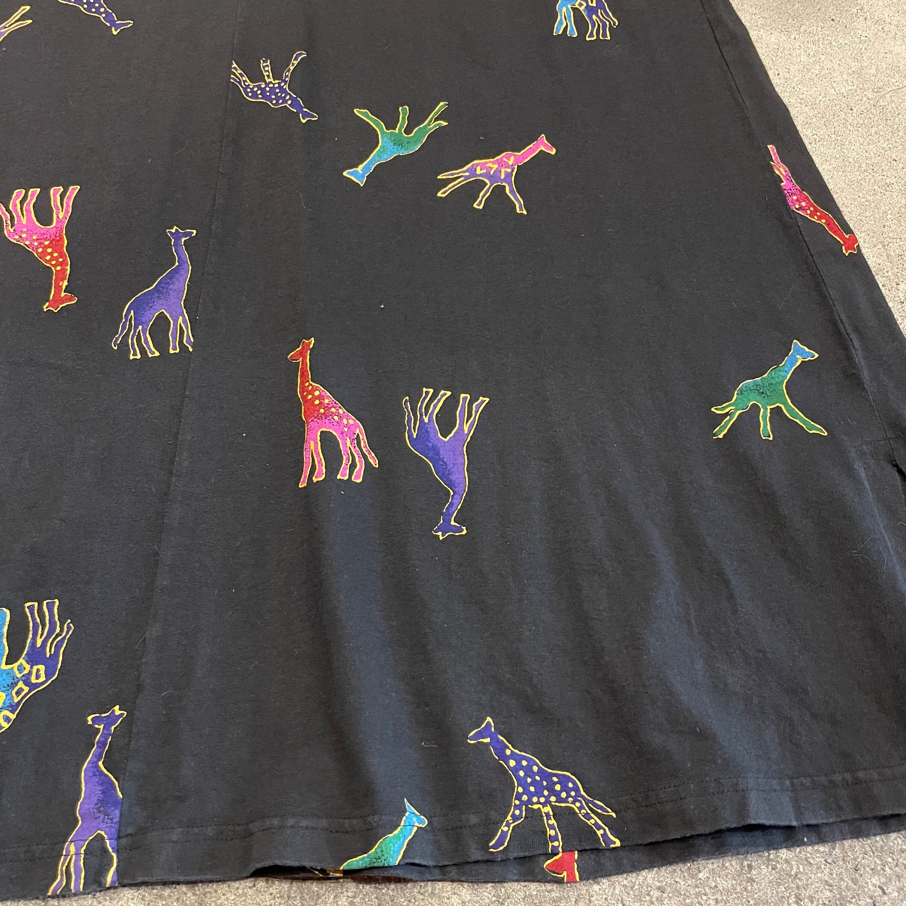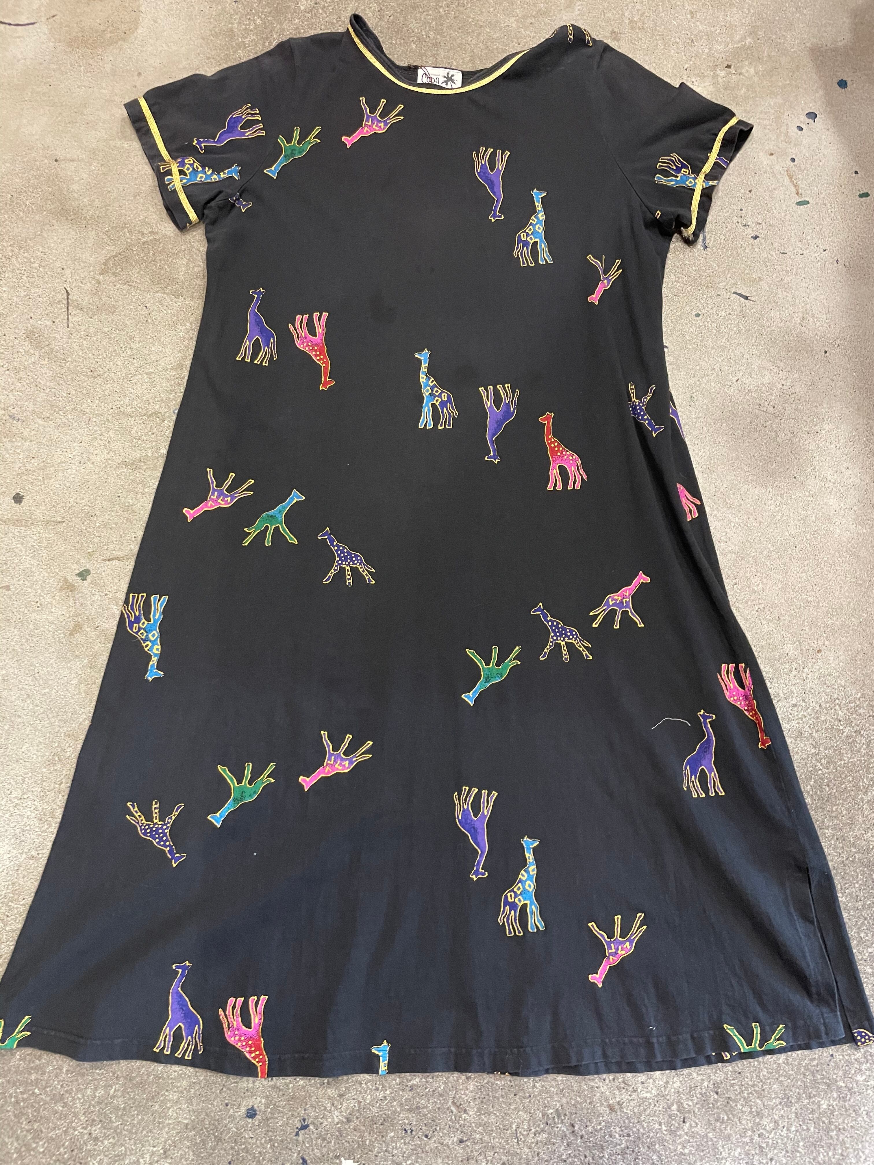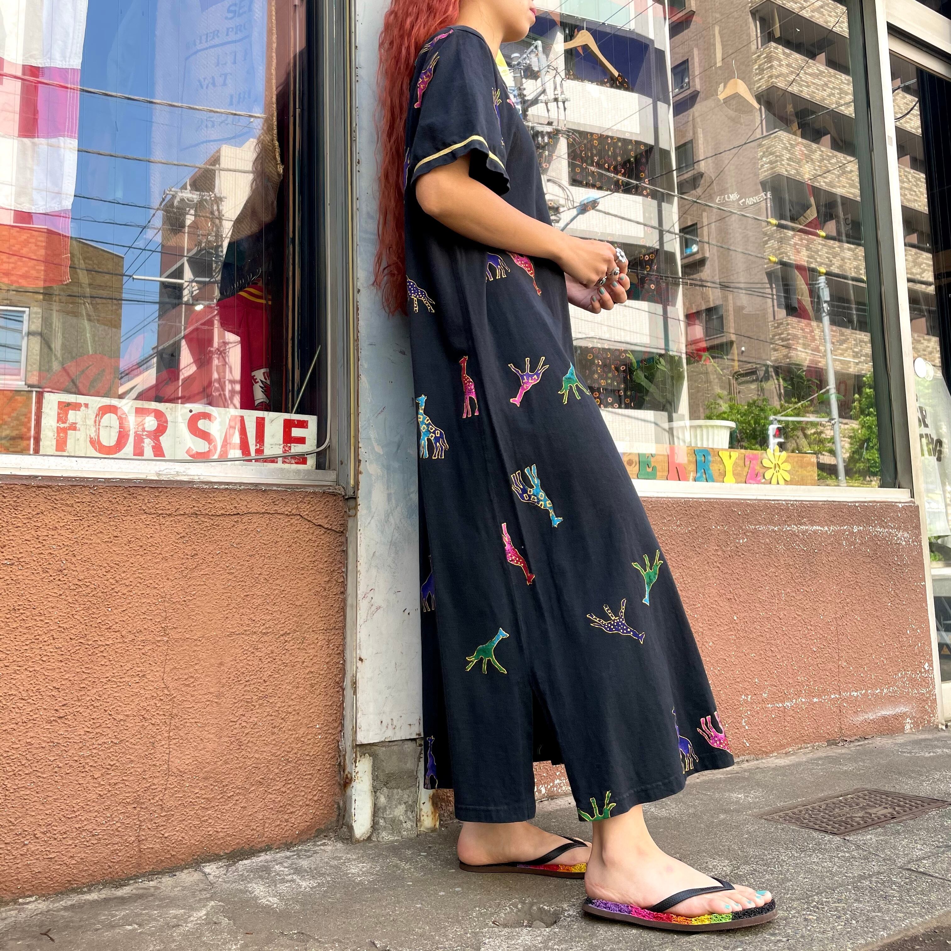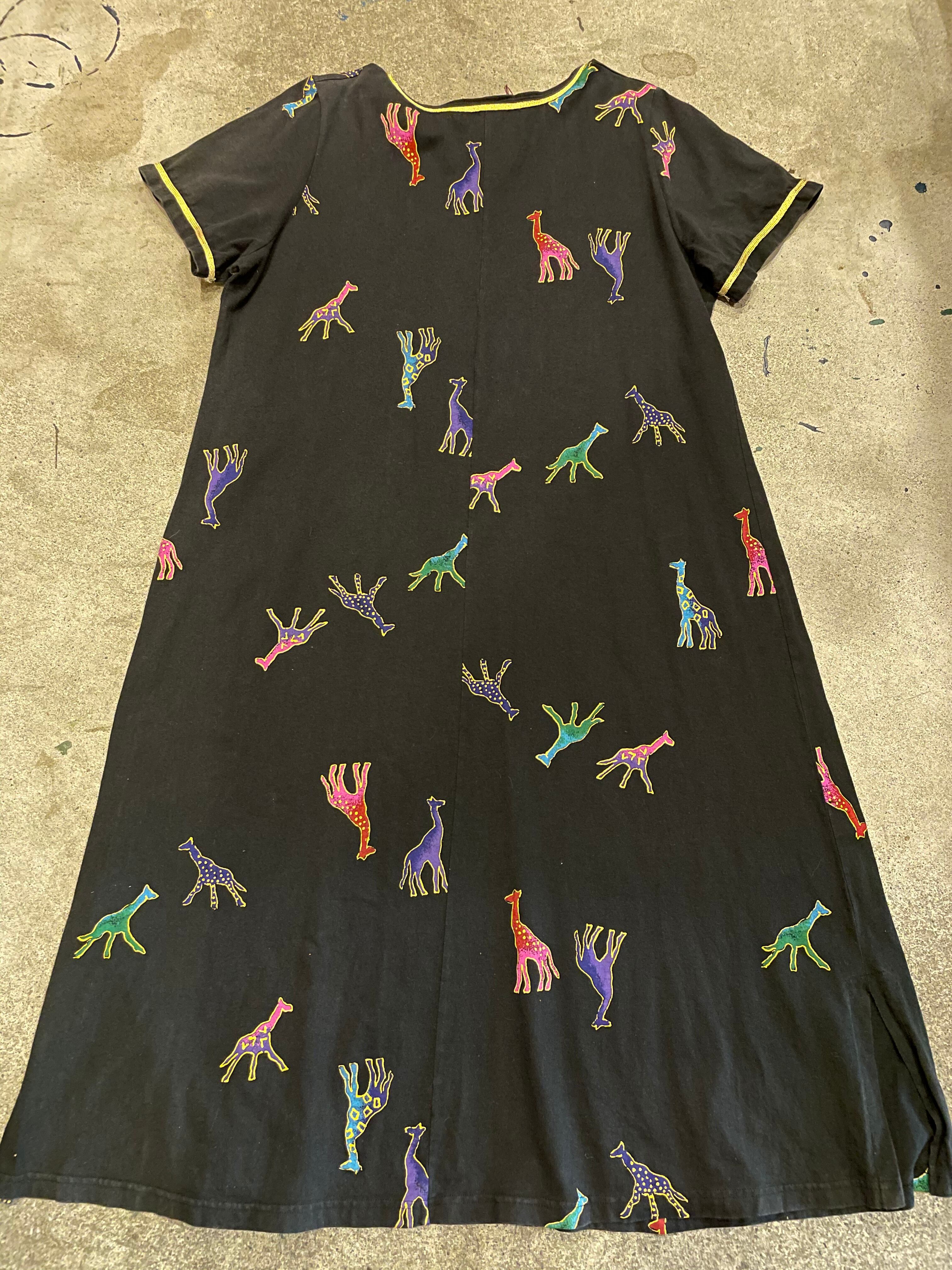 襟ぐりや袖口にはラメのテープが付いていたり、ゴールドで縁取りされたキリンたちが不思議な雰囲気で良いですね!
