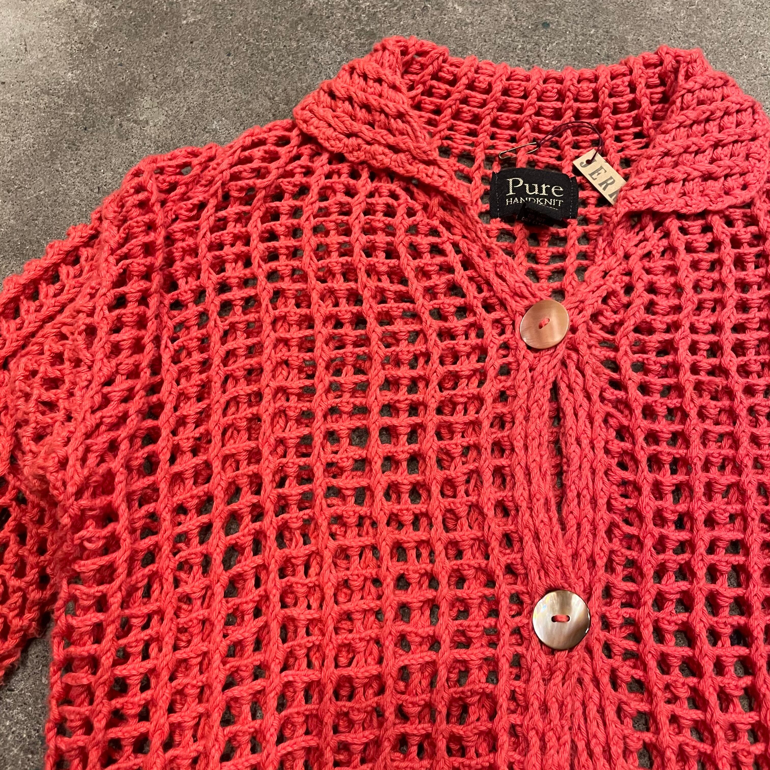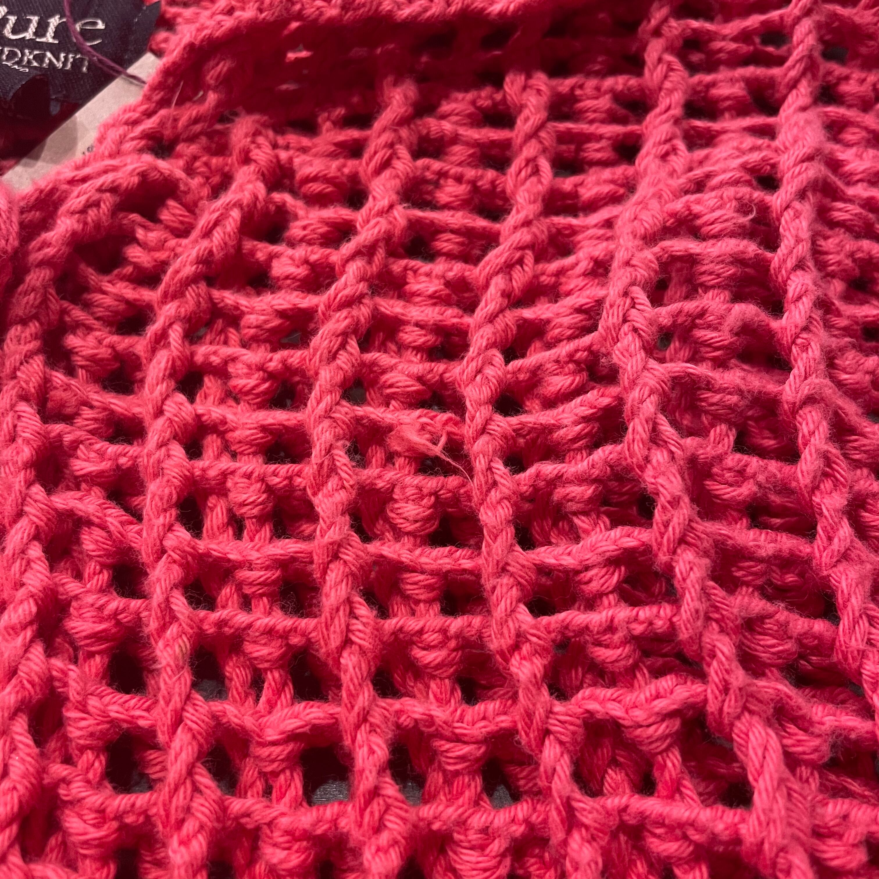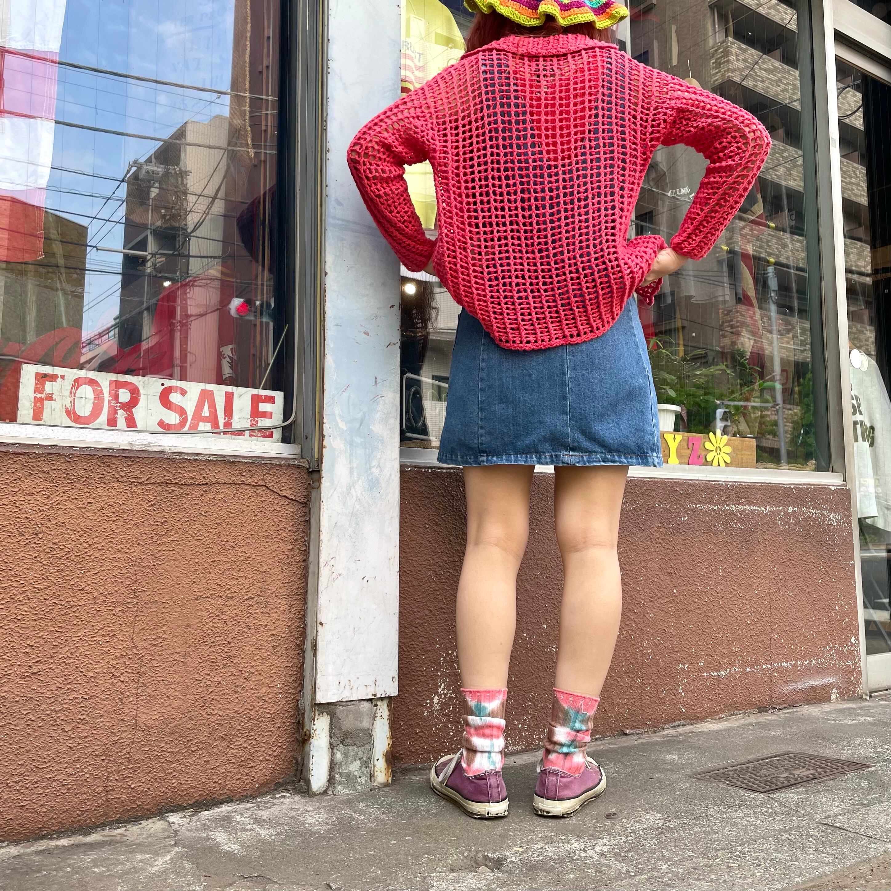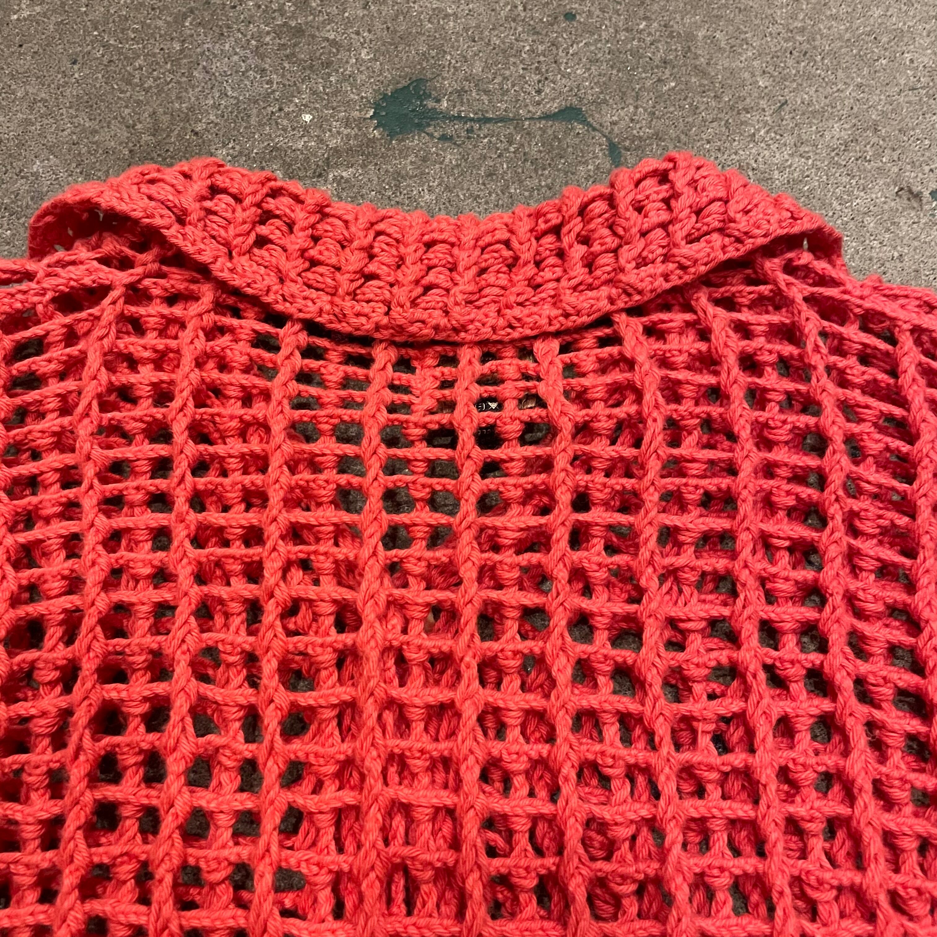 かなりスケスケな編み地と、小さめなサイズ感がかわいいです。ぴったりめの長袖と合わせたりノースリーブと合わせたりいろいろお楽しみいただけると思います。