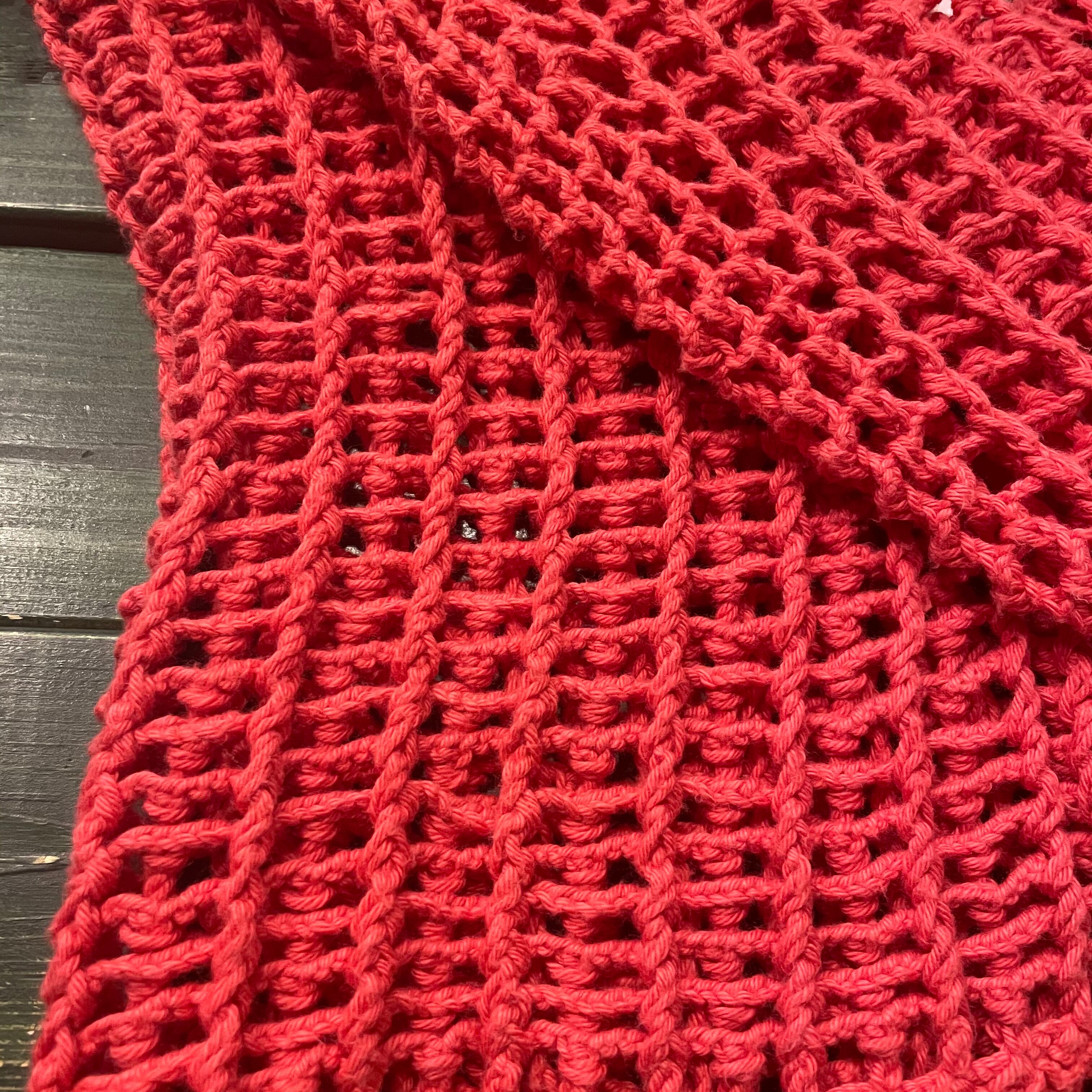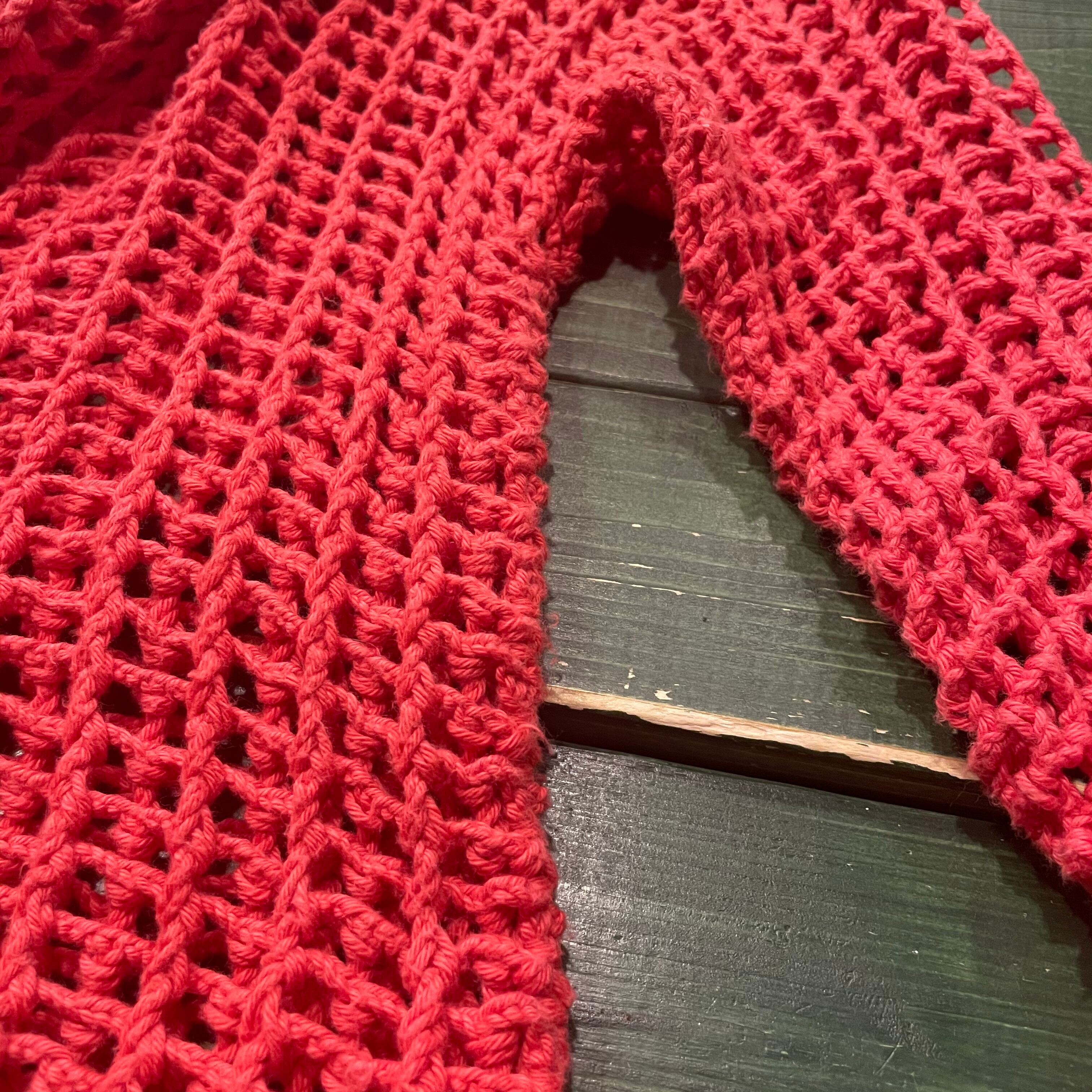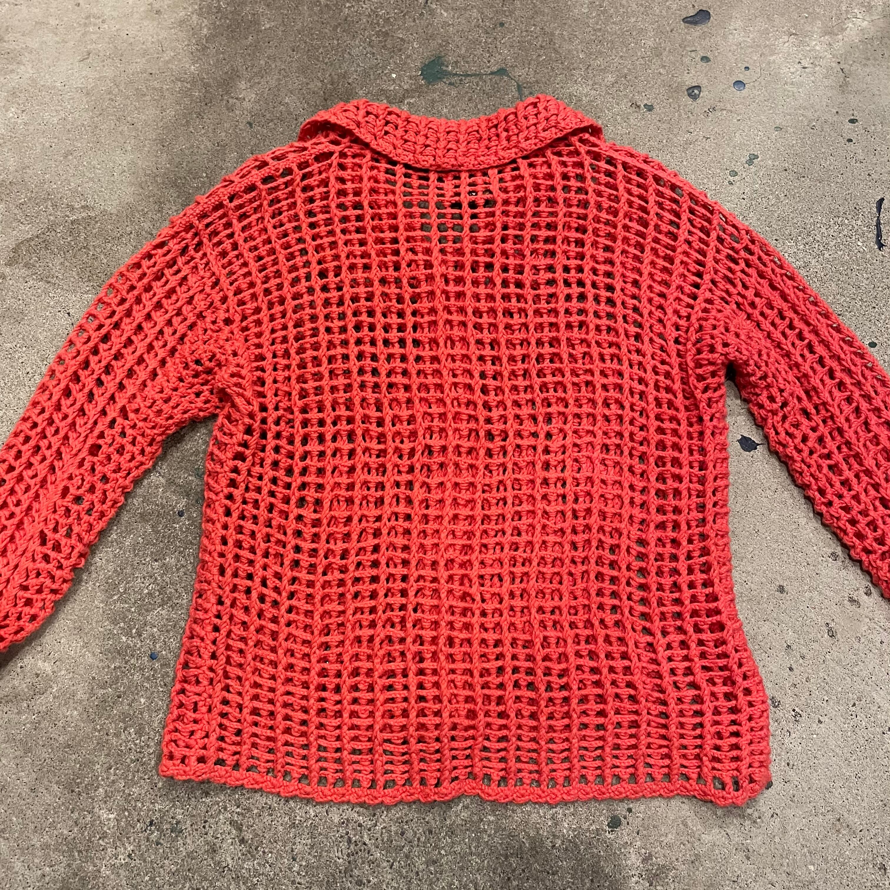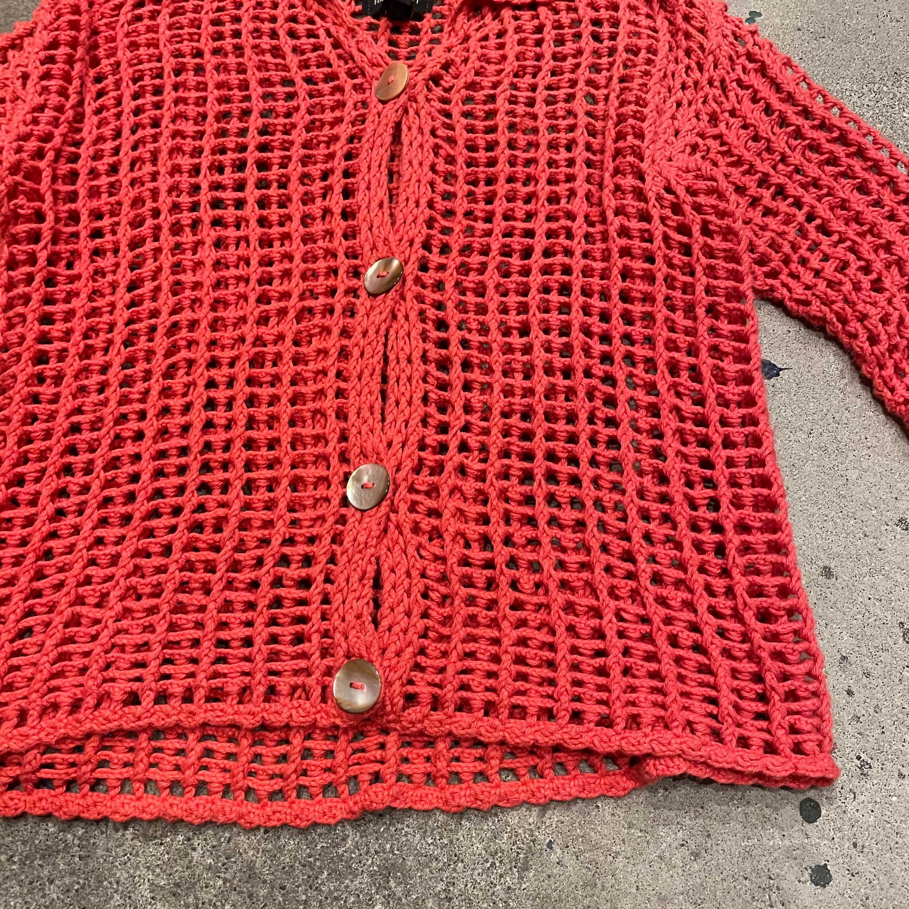 かなりスケスケな編み地と、小さめなサイズ感がかわいいです。ぴったりめの長袖と合わせたりノースリーブと合わせたりいろいろお楽しみいただけると思います。