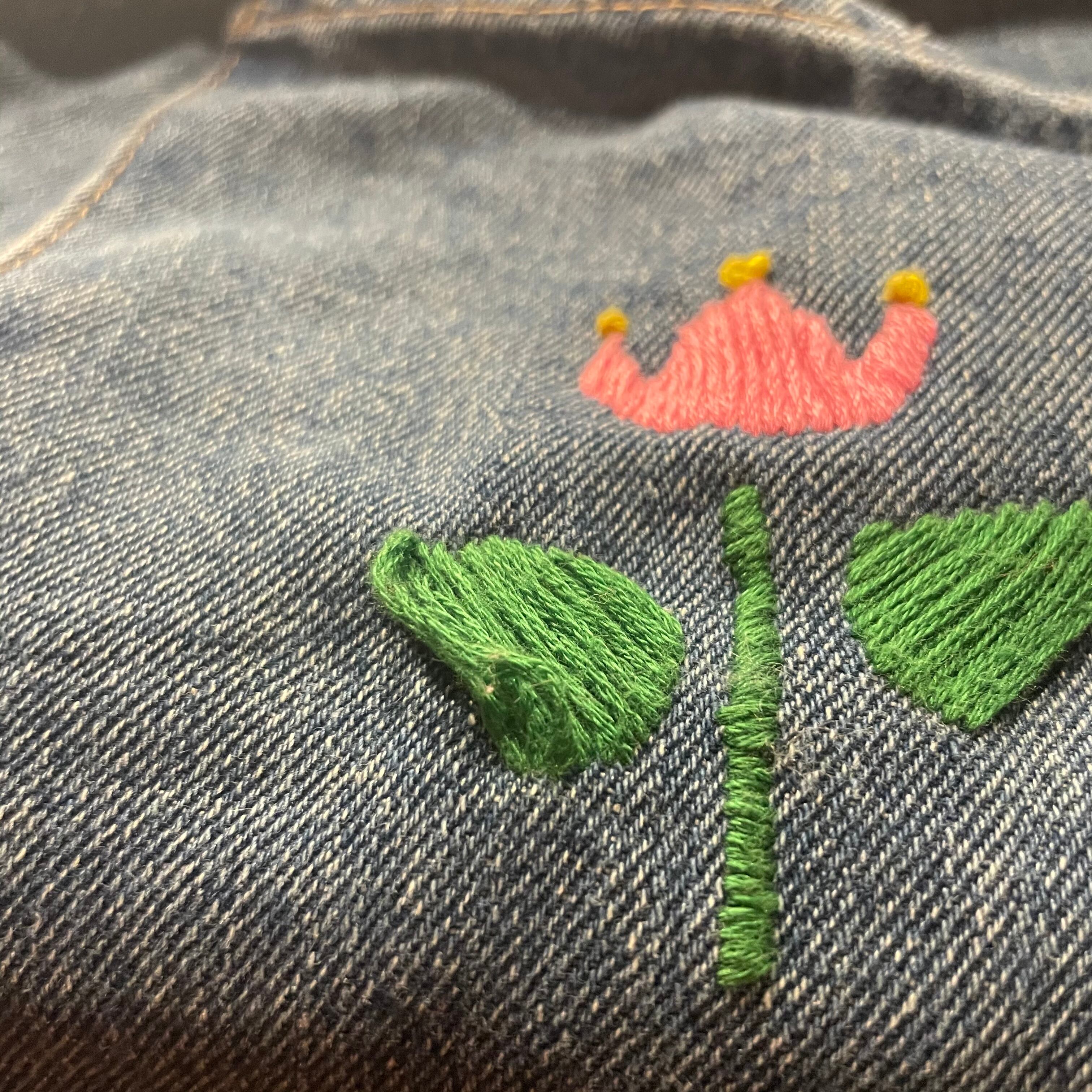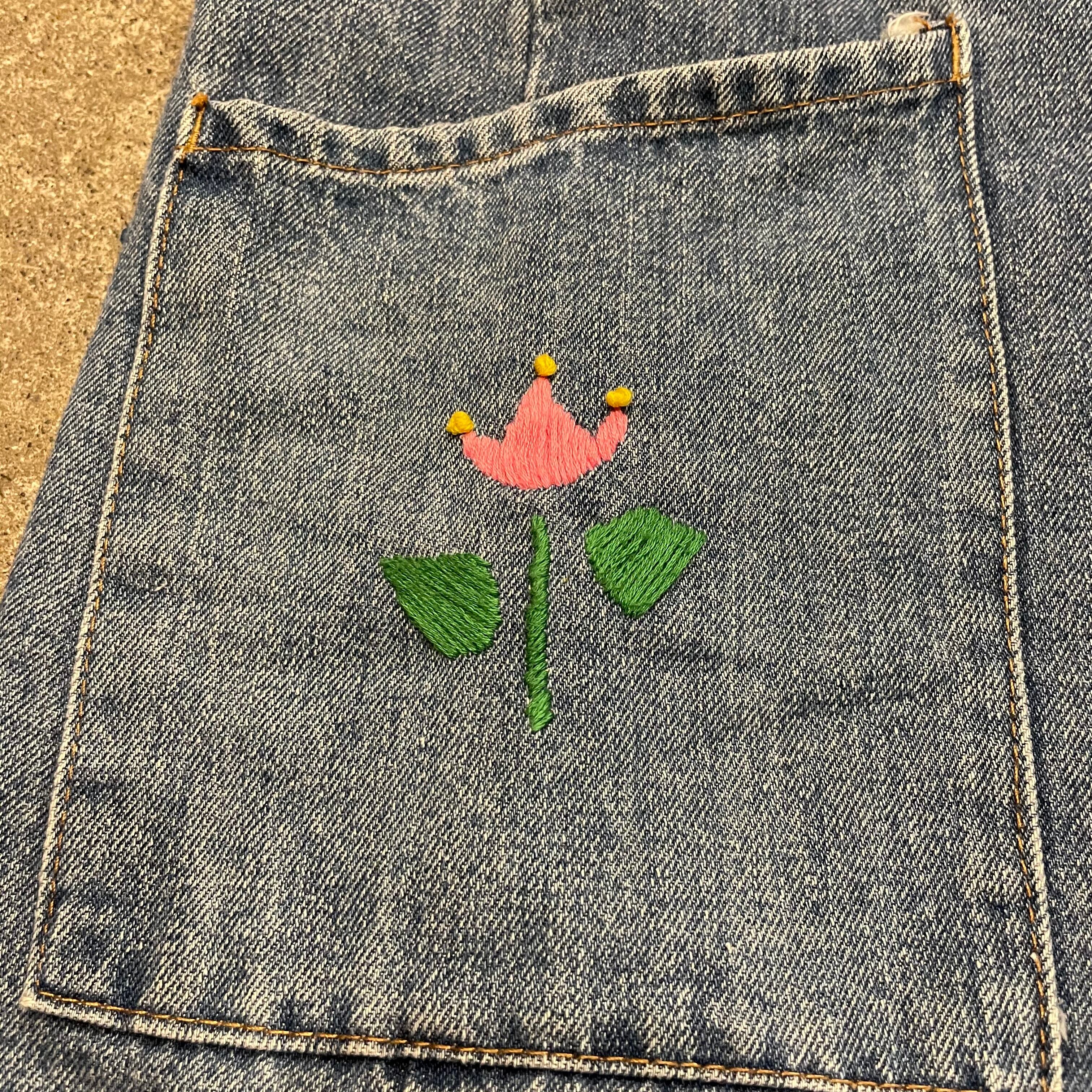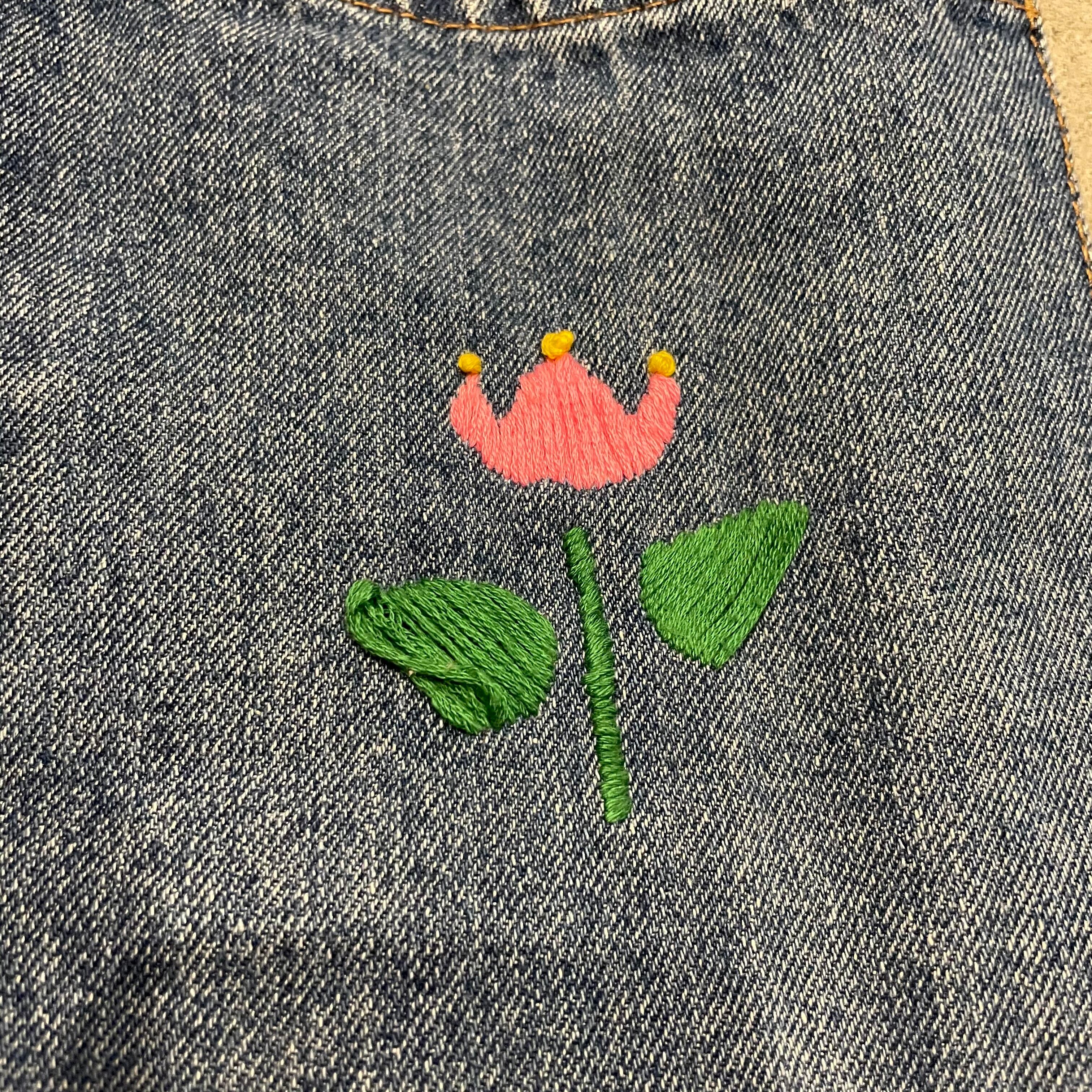 ポケットにチューリップが手刺繍されていて前の持ち主の方の愛着が伺えます。