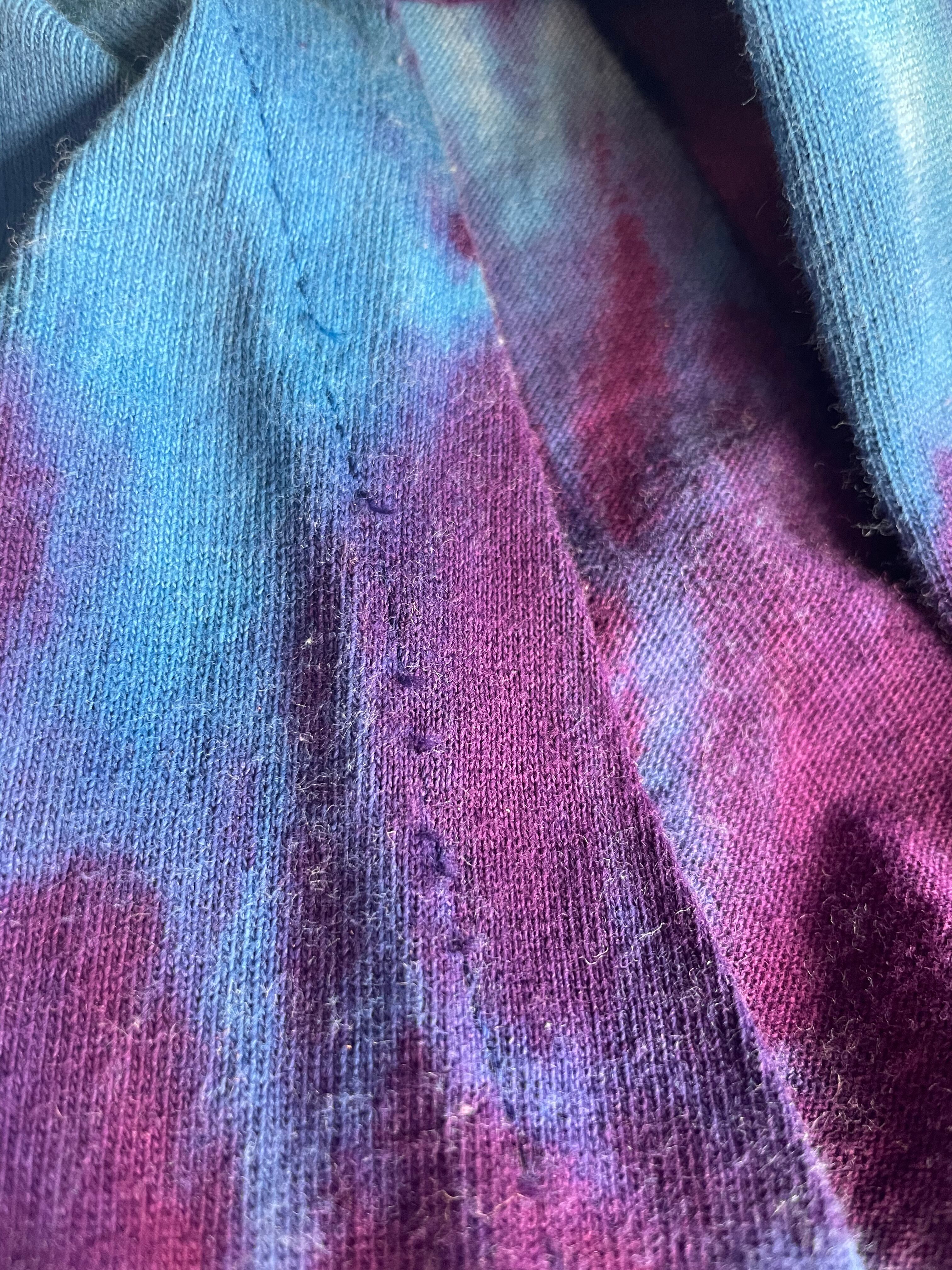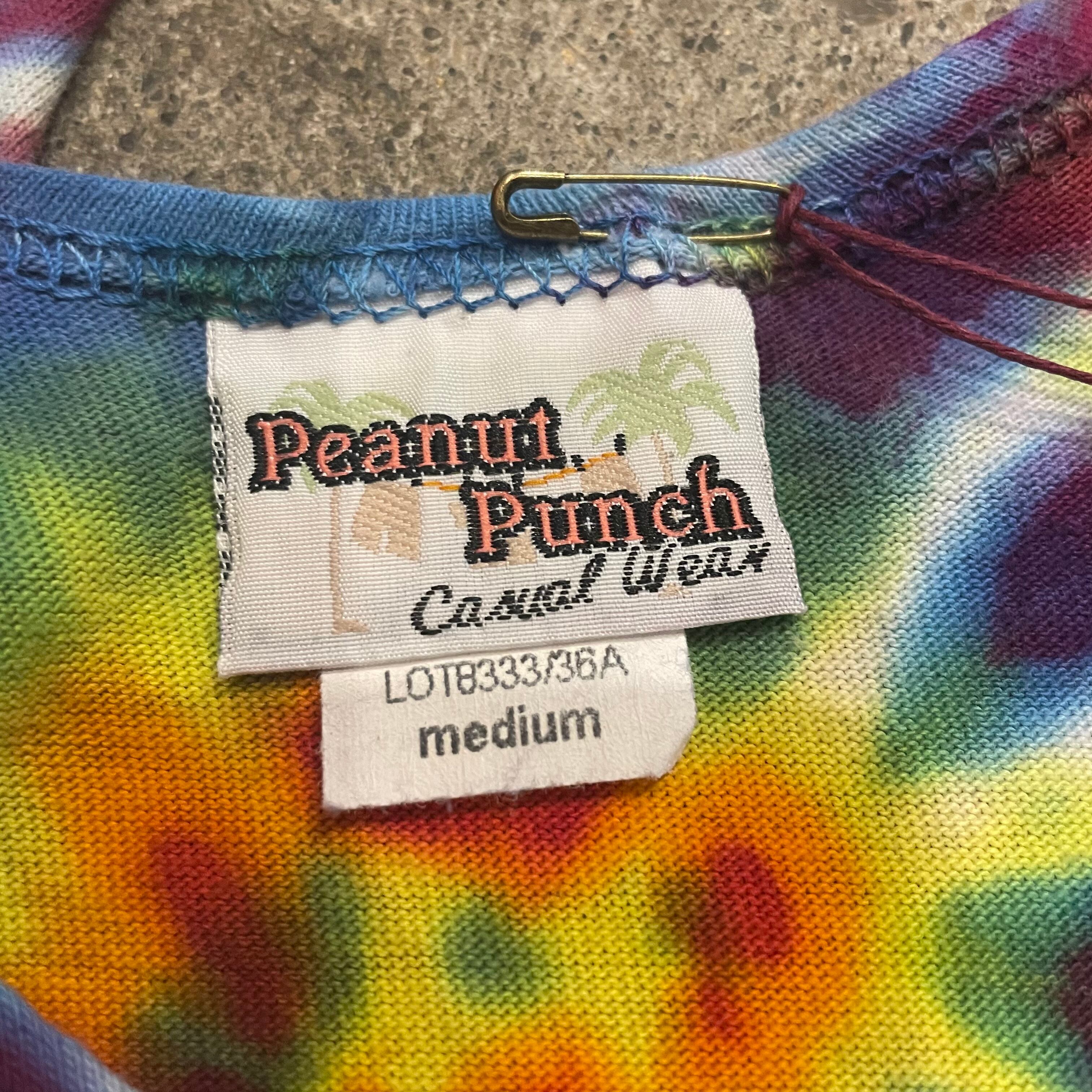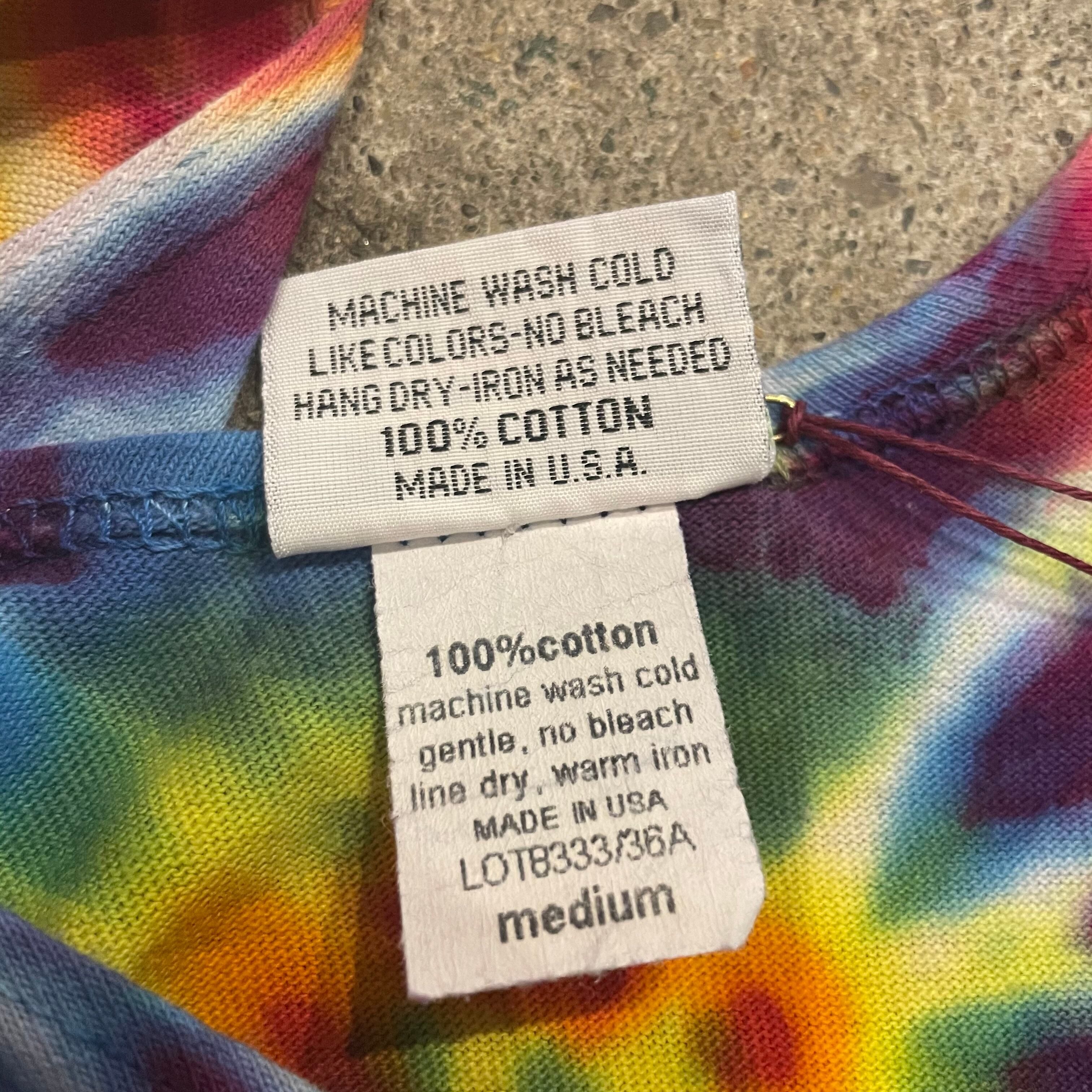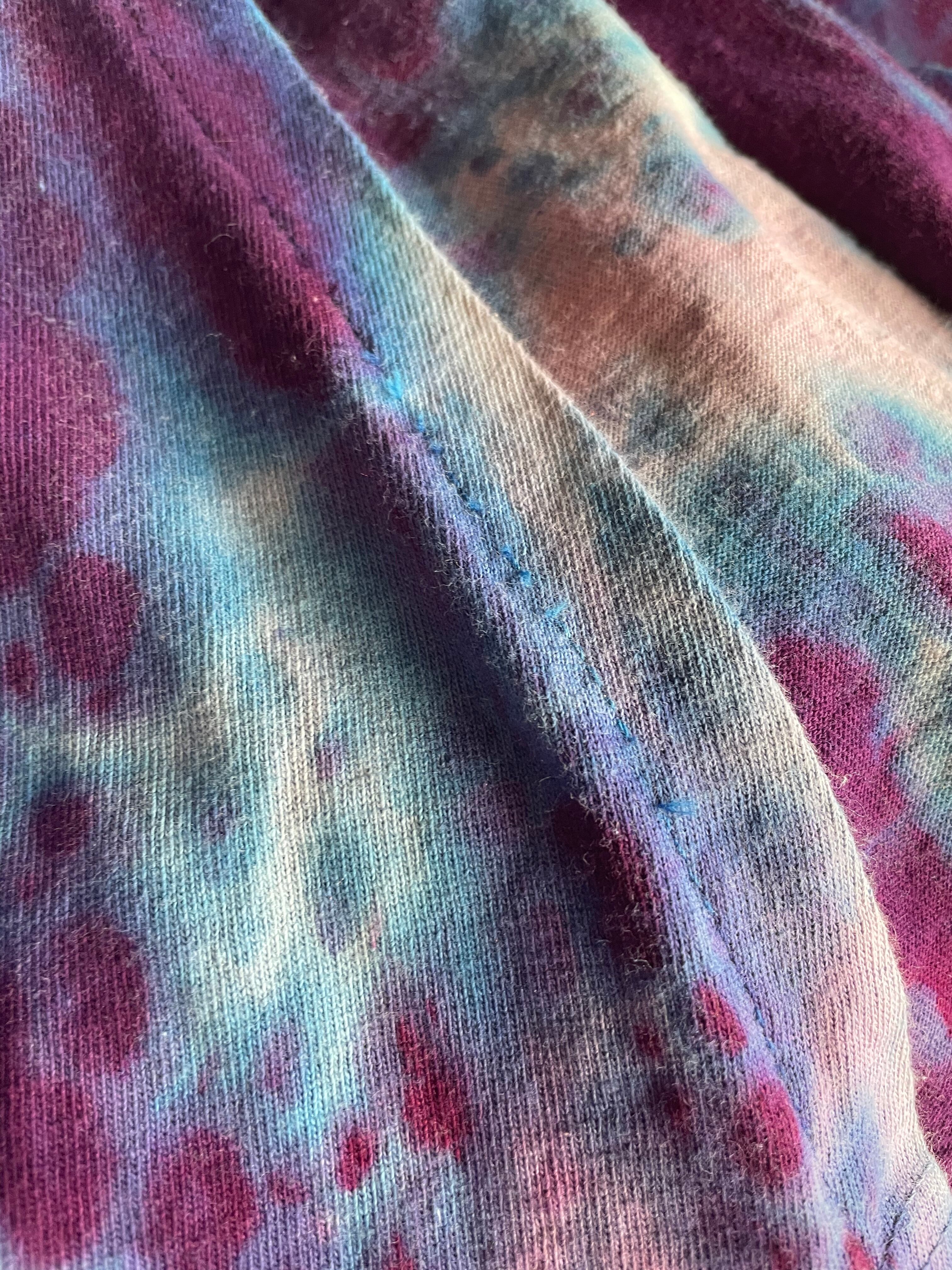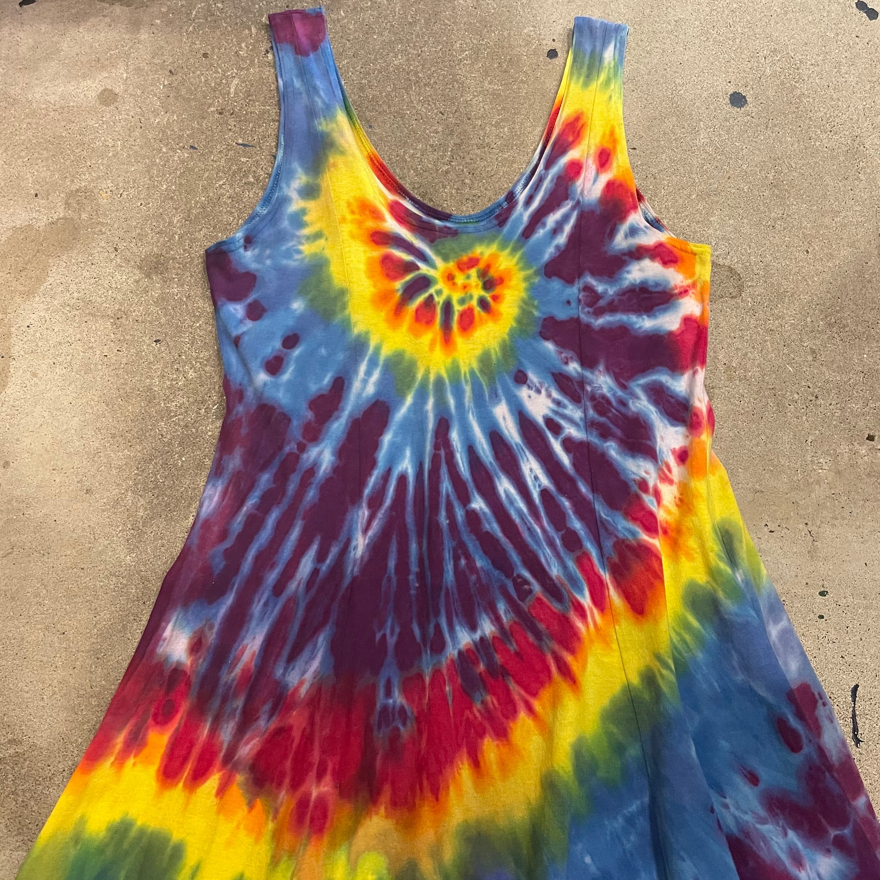 ザ・夏!なタイダイがかわいいワンピースです。パッキリ系のタイダイですので、かなりインパクトがあります。厚手のTシャツのような素材感でとても楽ですし、ボリュームやシルエットがとてもかわいいです。前に二箇所スリットが入っているのもポイントですね。