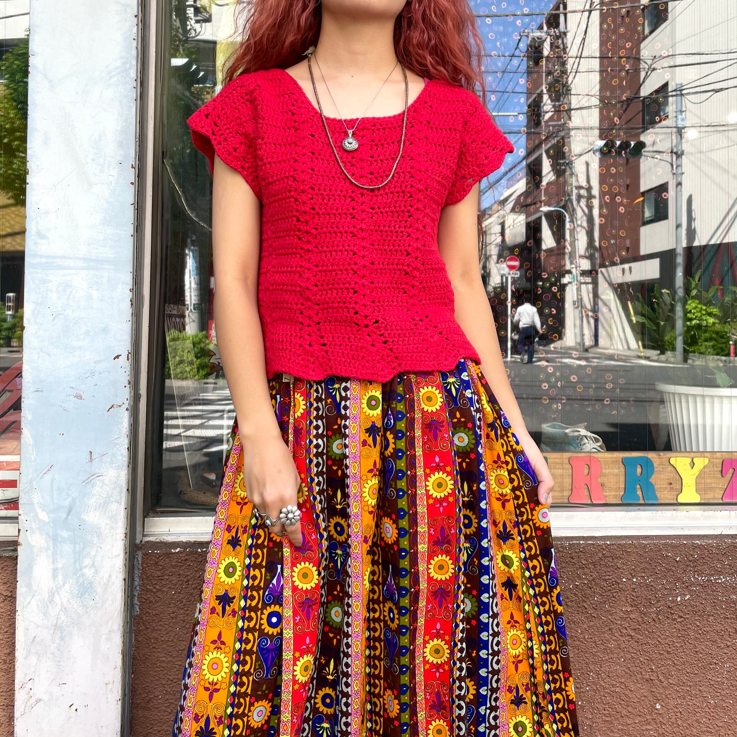 手編みのクロシェトップスです。