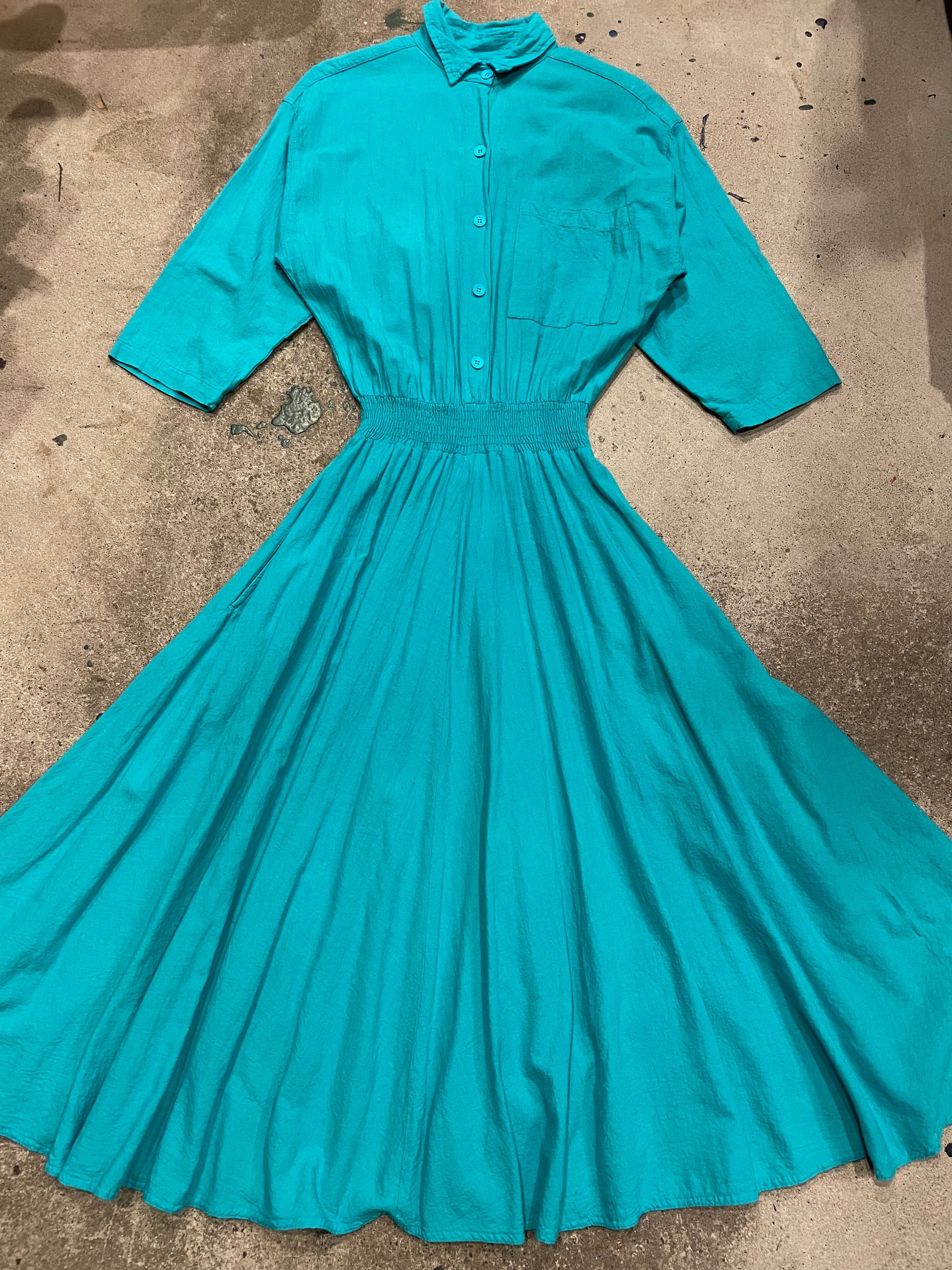 七分丈の袖、ウエストのシャーリング、マキシ丈などかわいいポイントがたくさんありますが、シンプルですのでいろんな方に着ていただけそうな一着です。