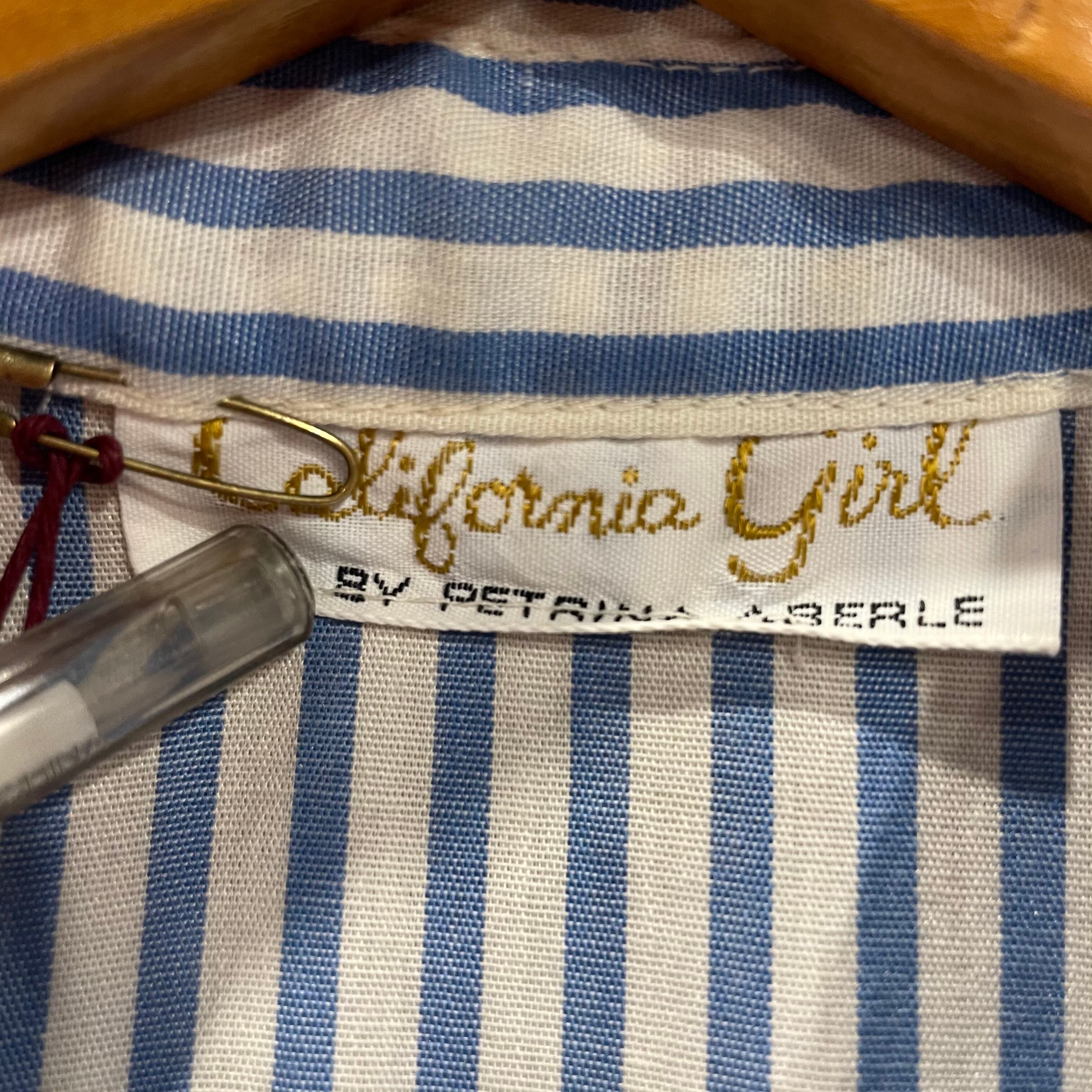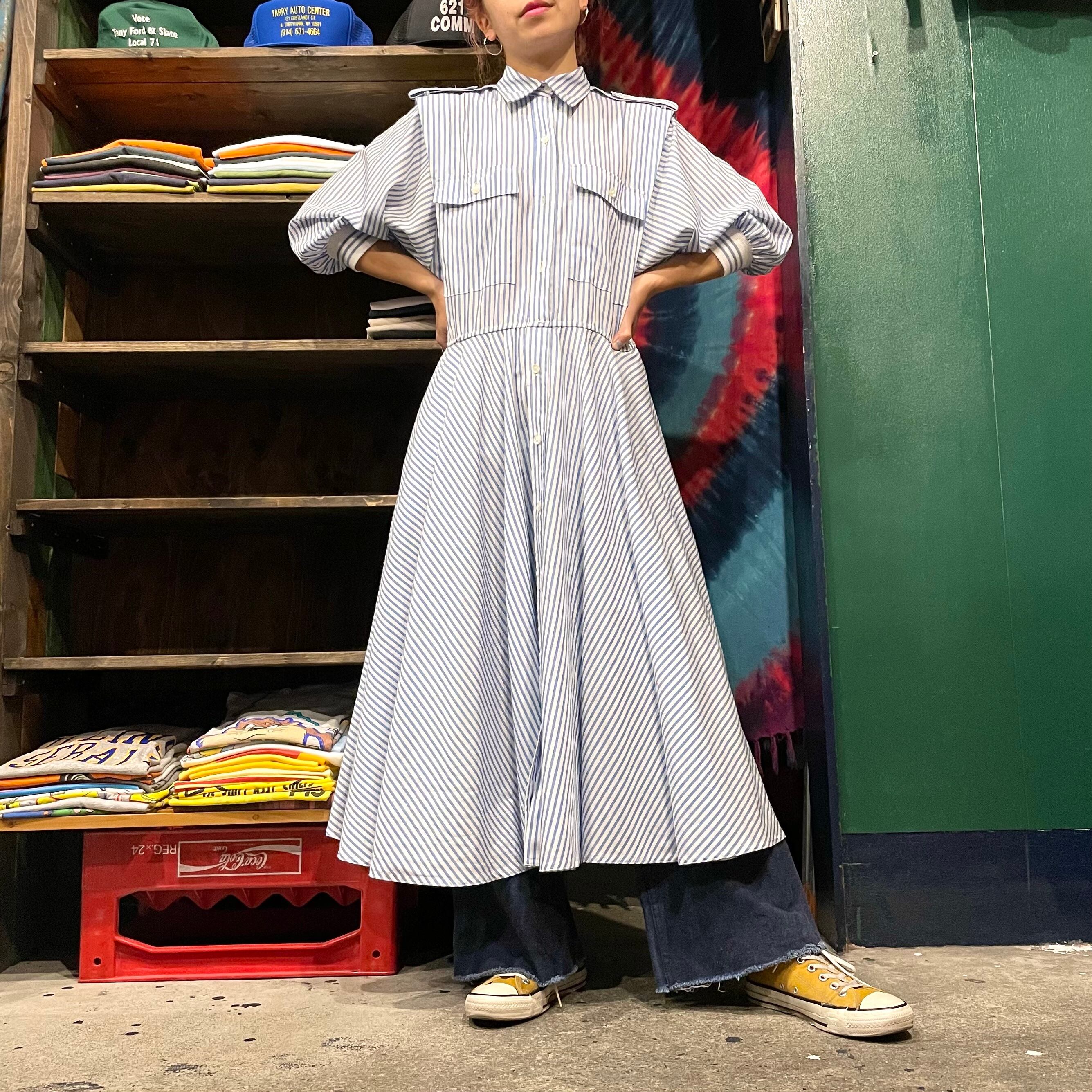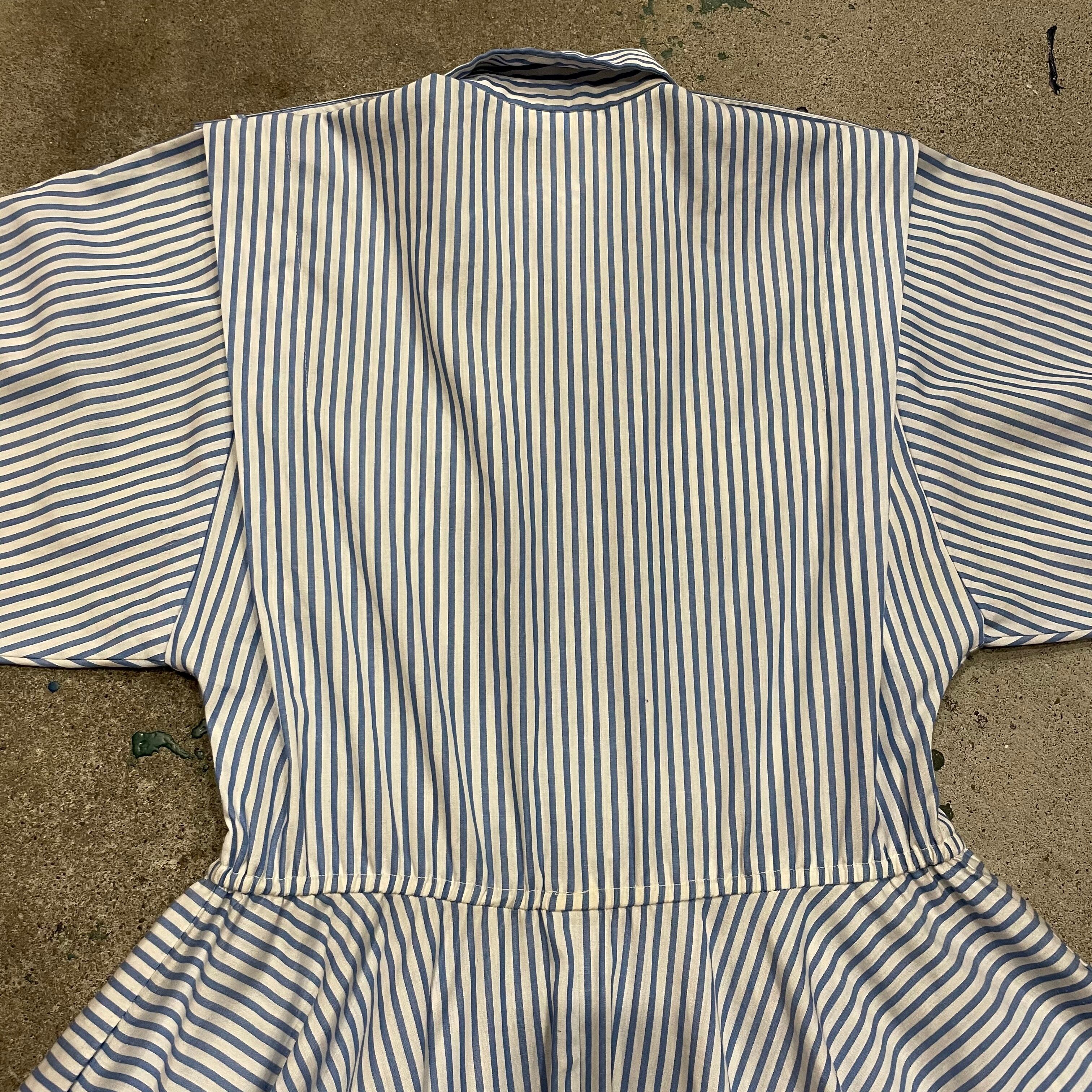 白と水色の爽やかなストライプがかわいいシャツワンピースです。
