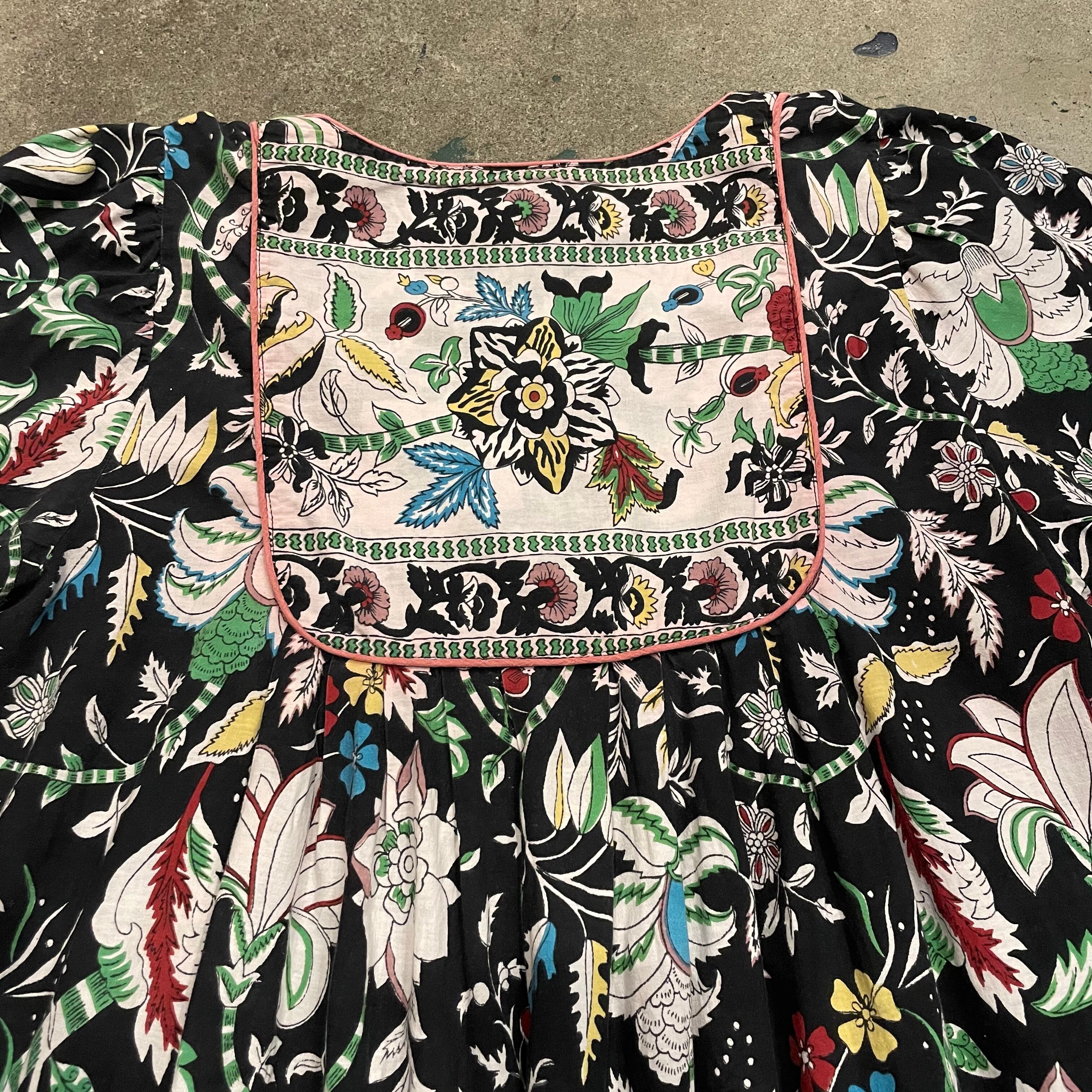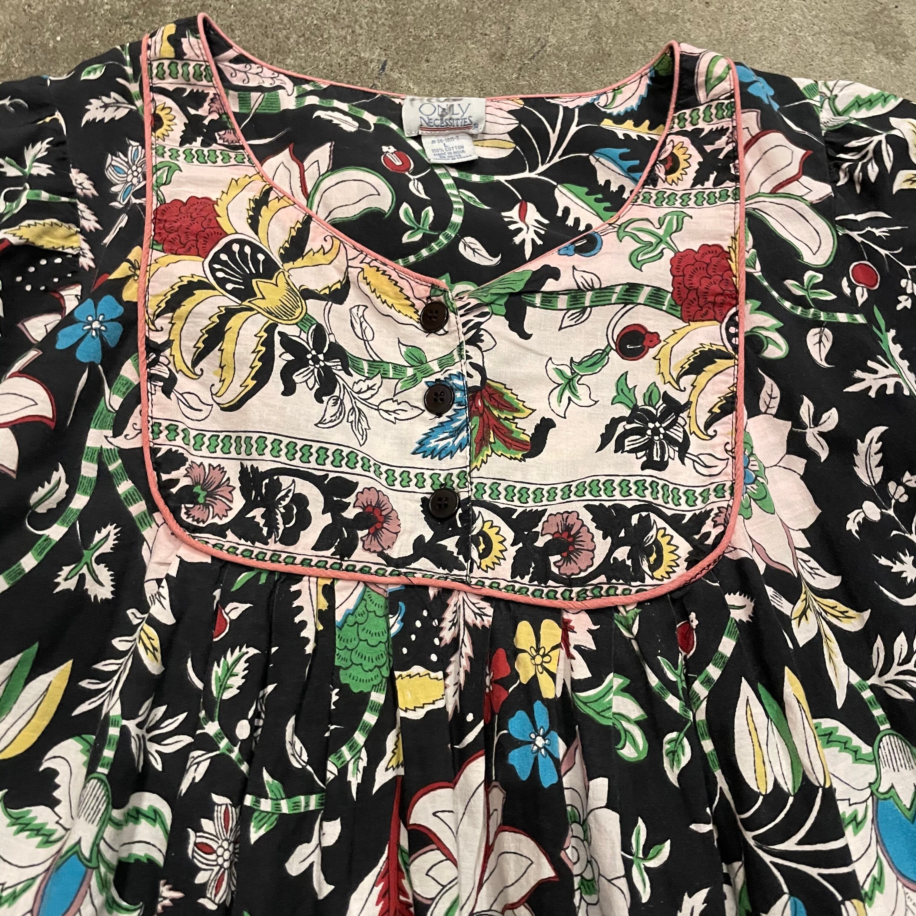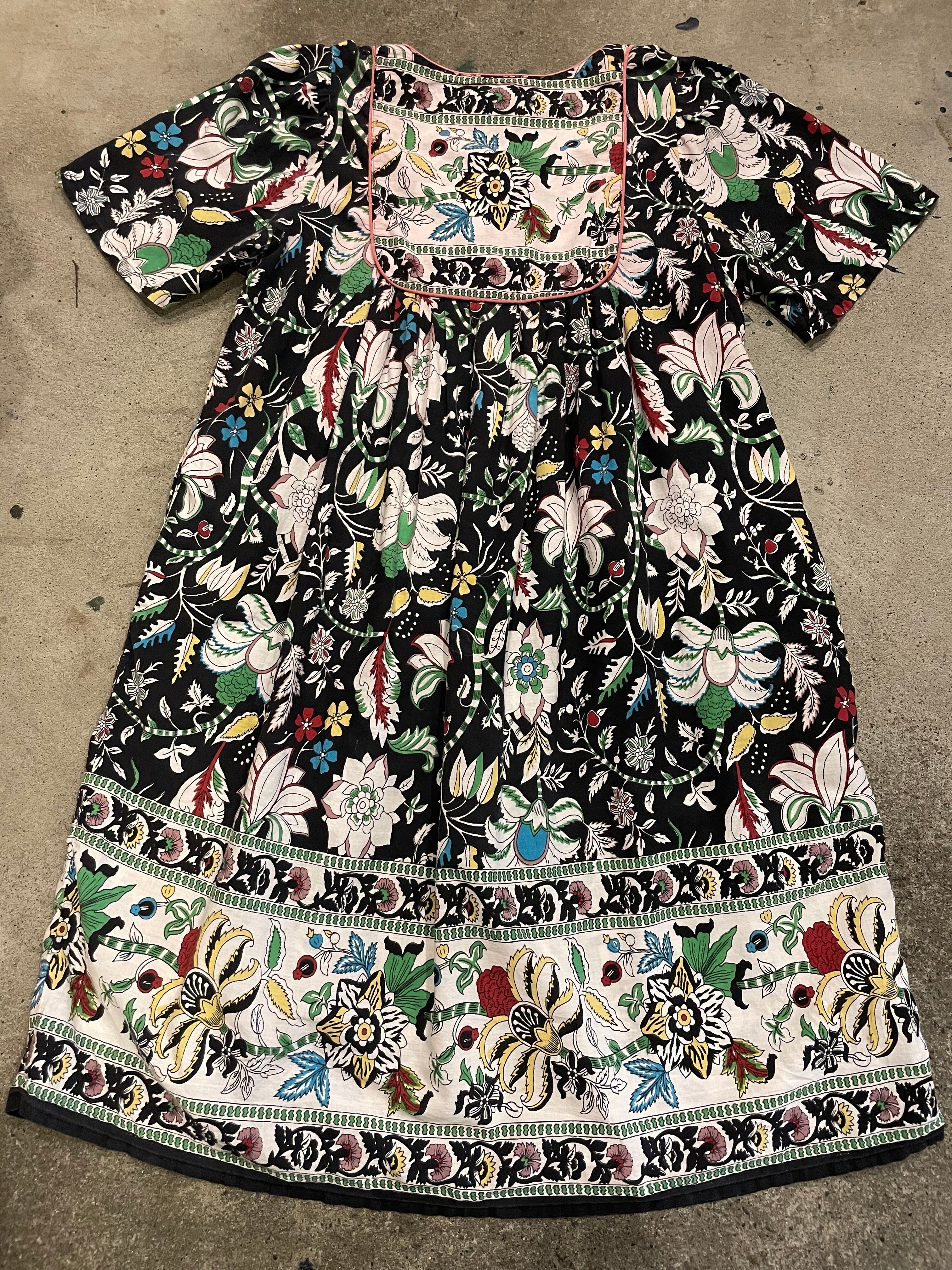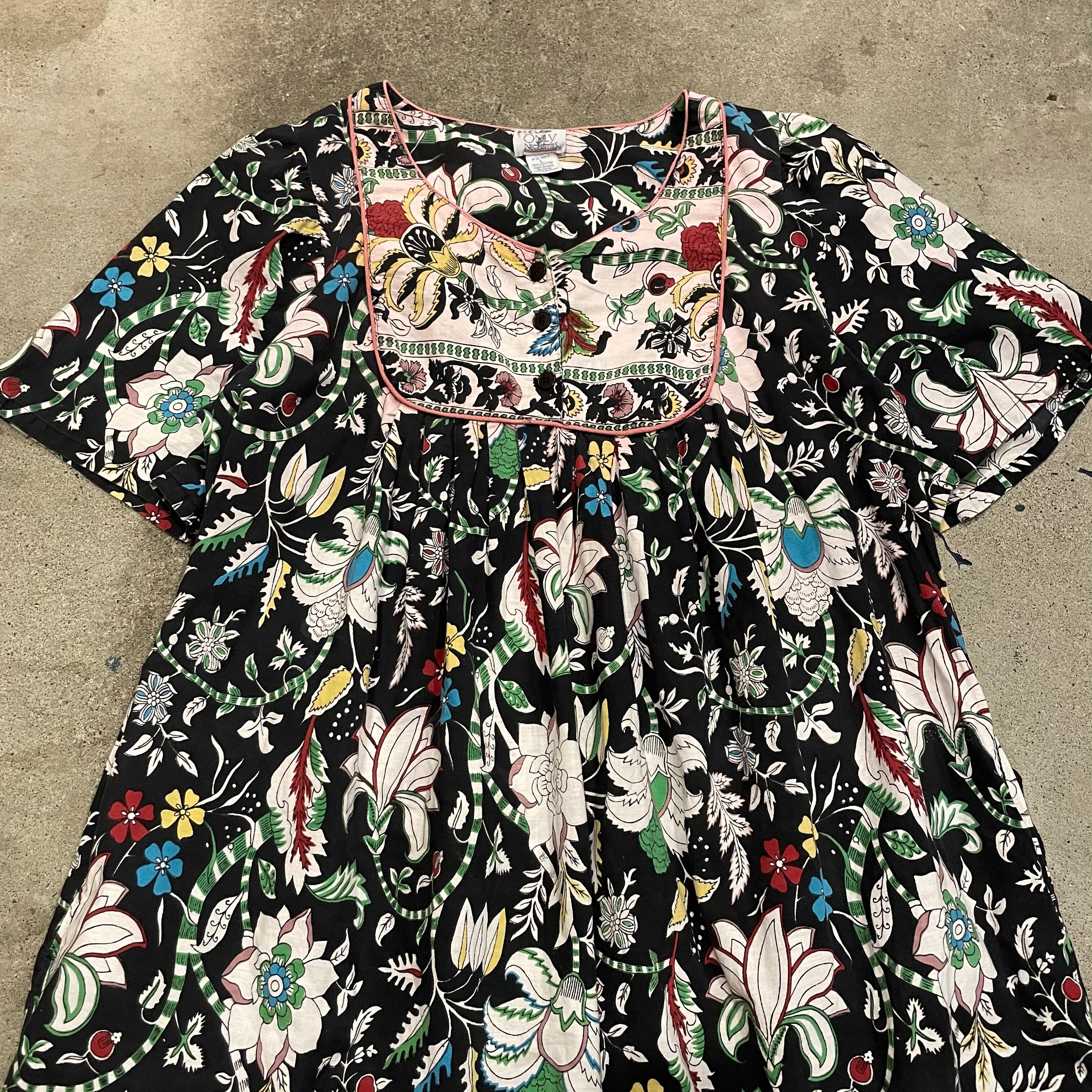黒地に花柄がかわいいコットン素材のワンピースです。