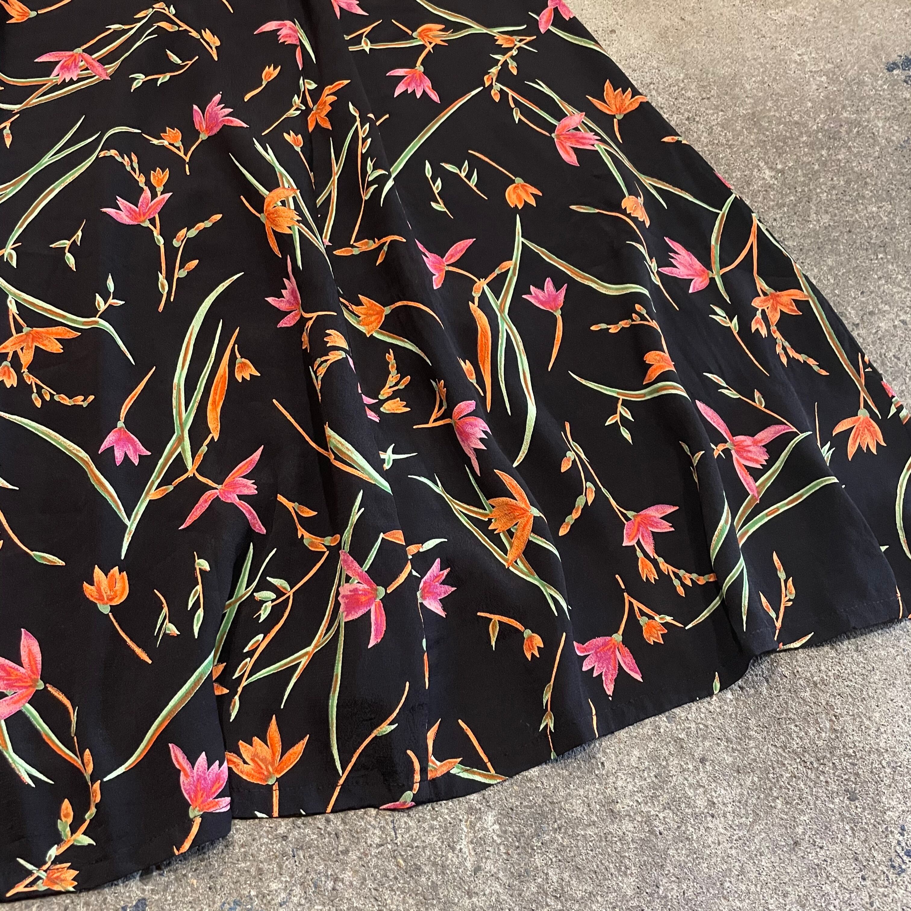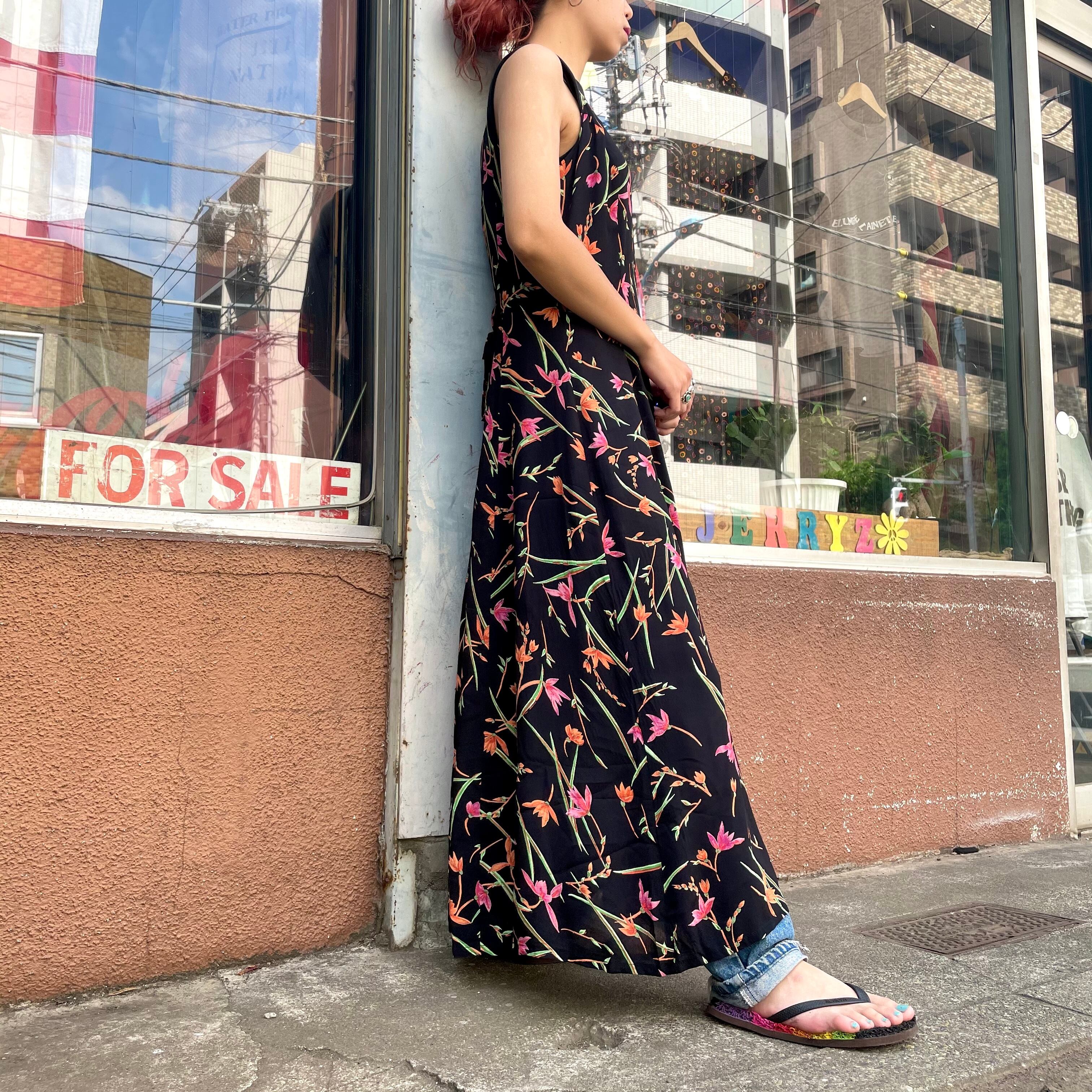 黒地に大人っぽい花柄のワンピースです。