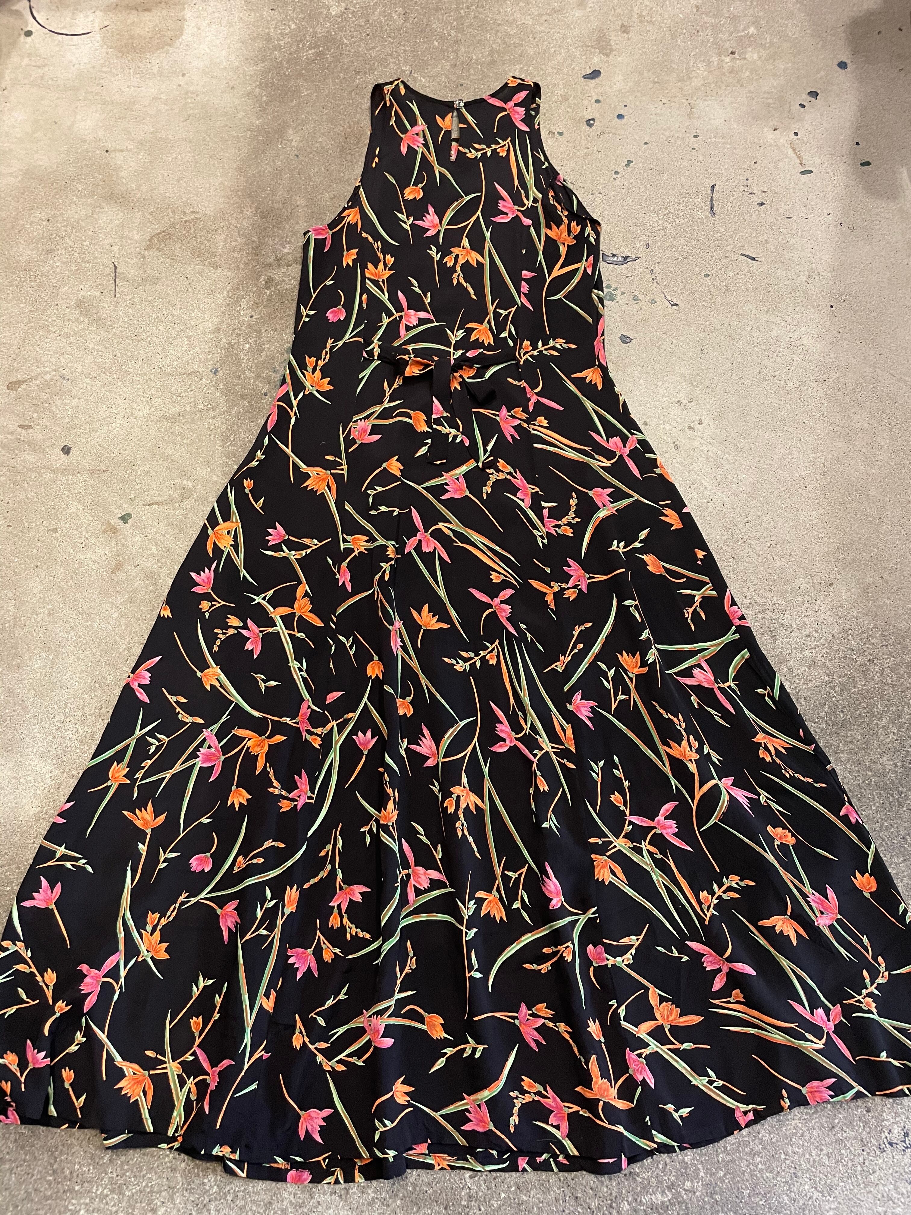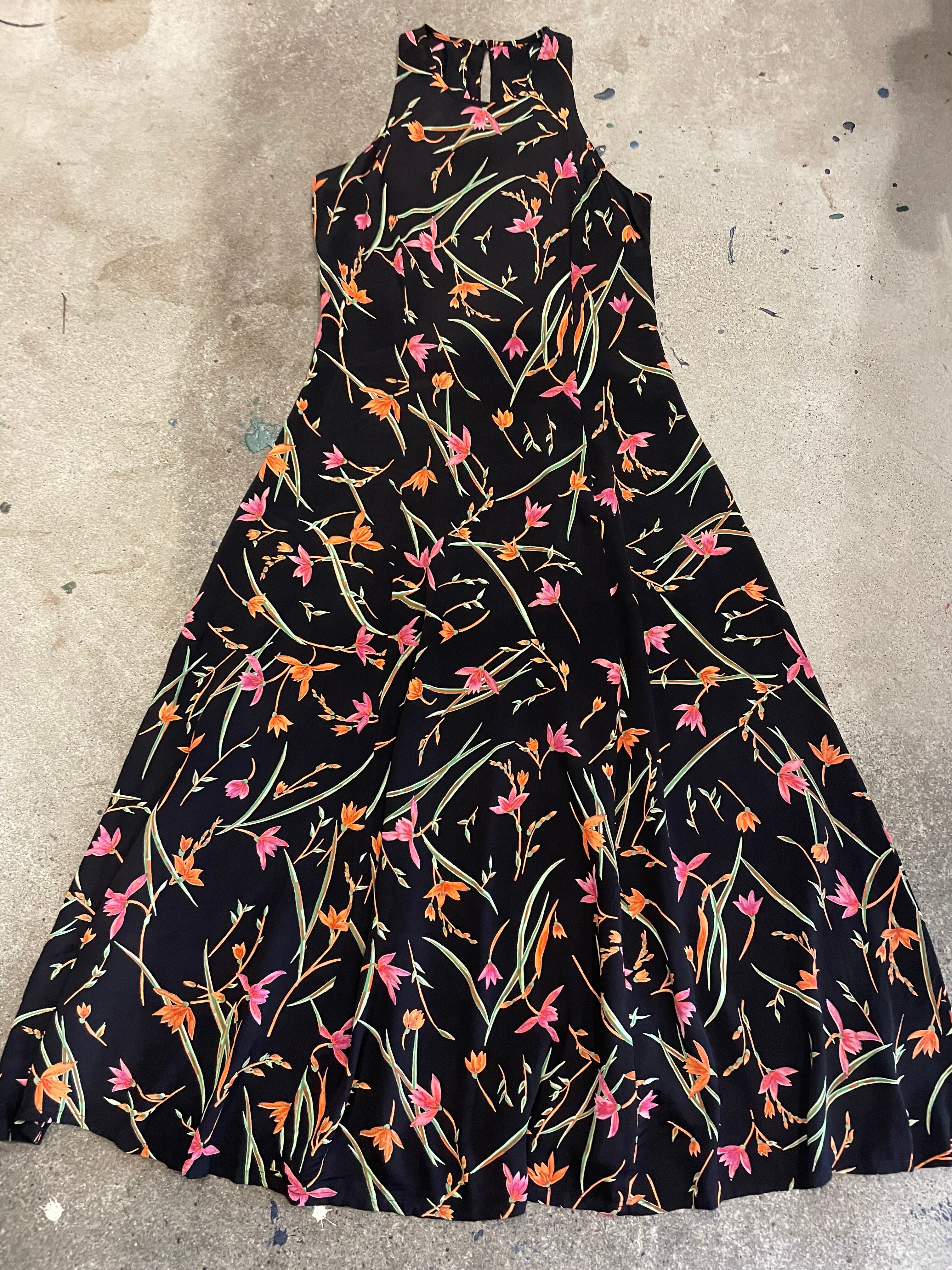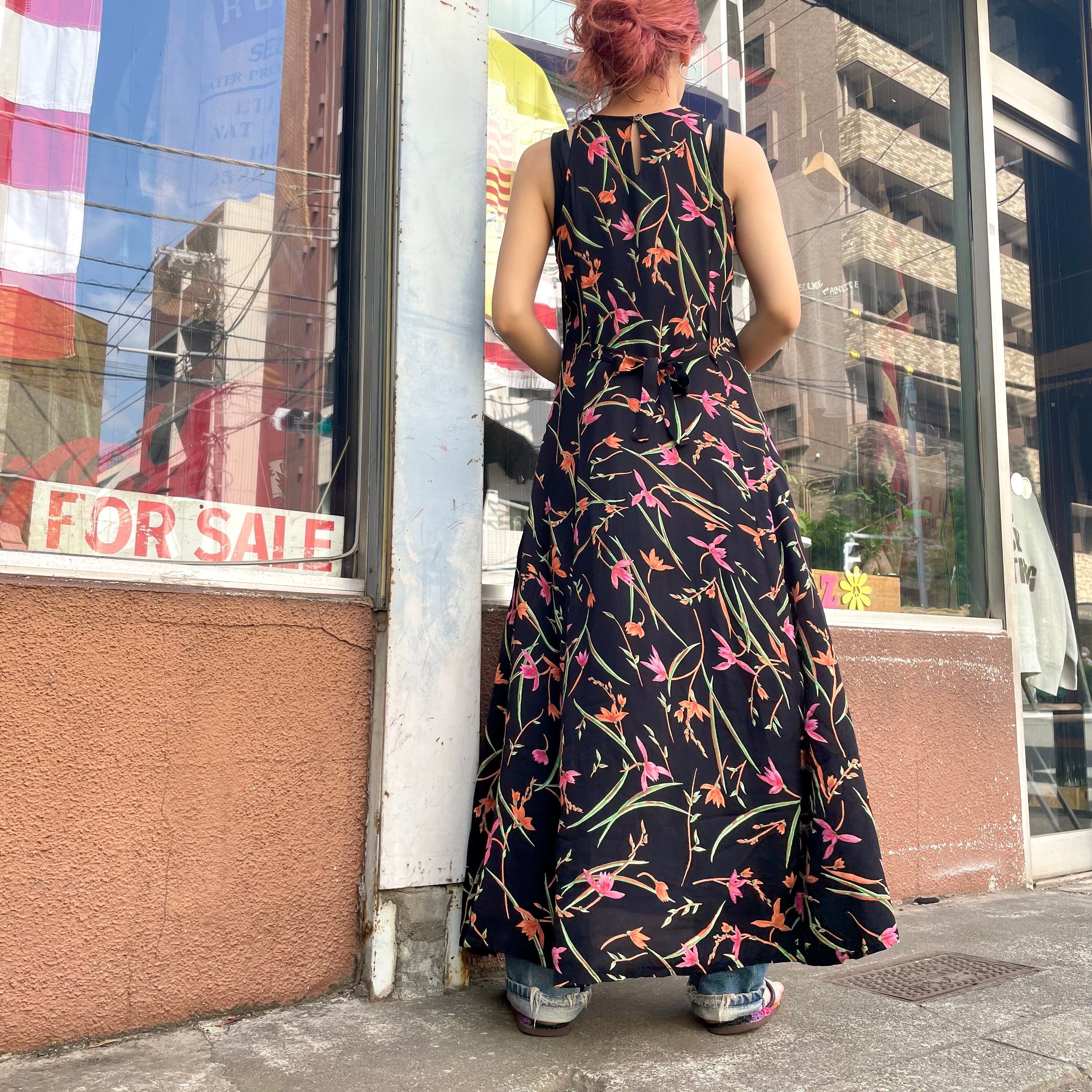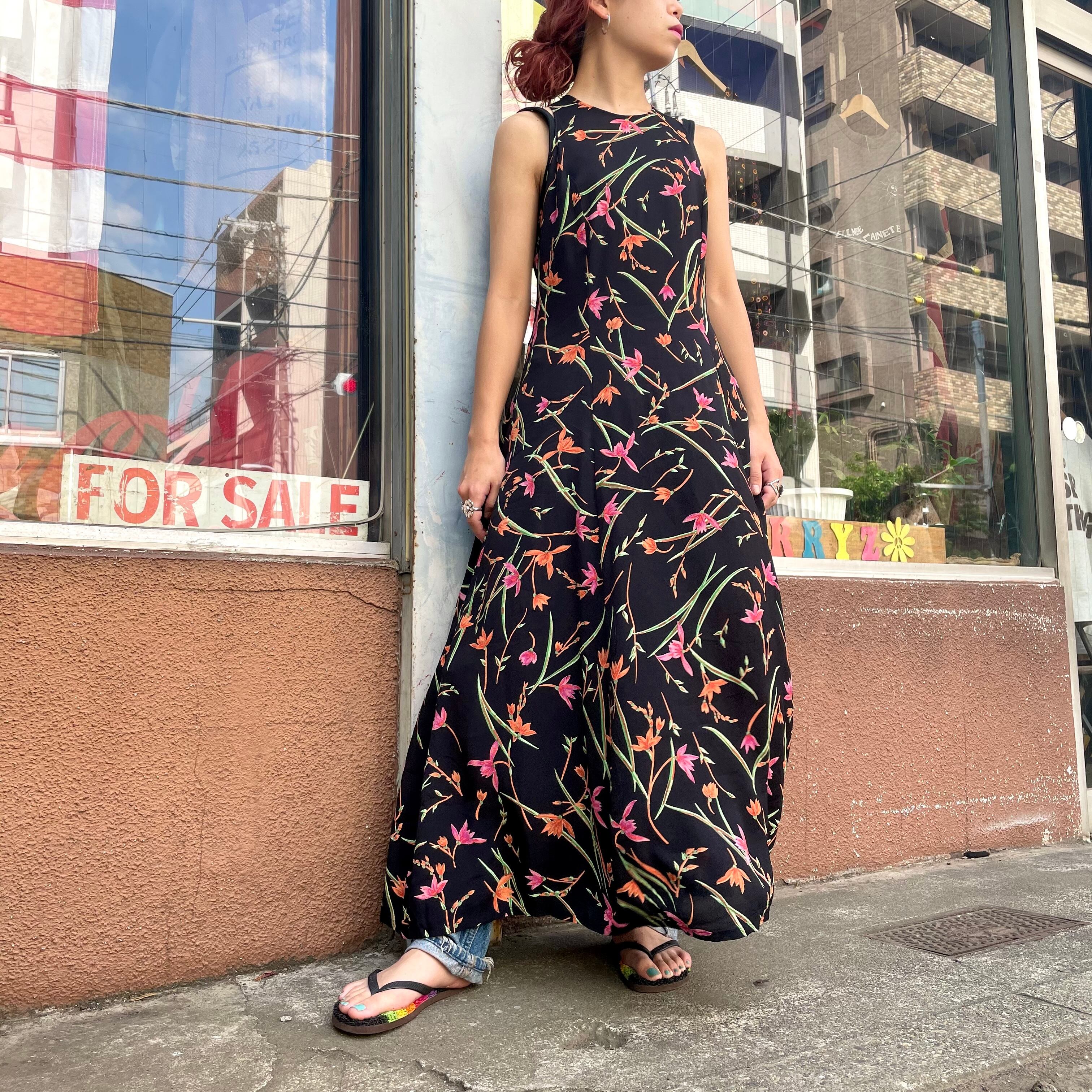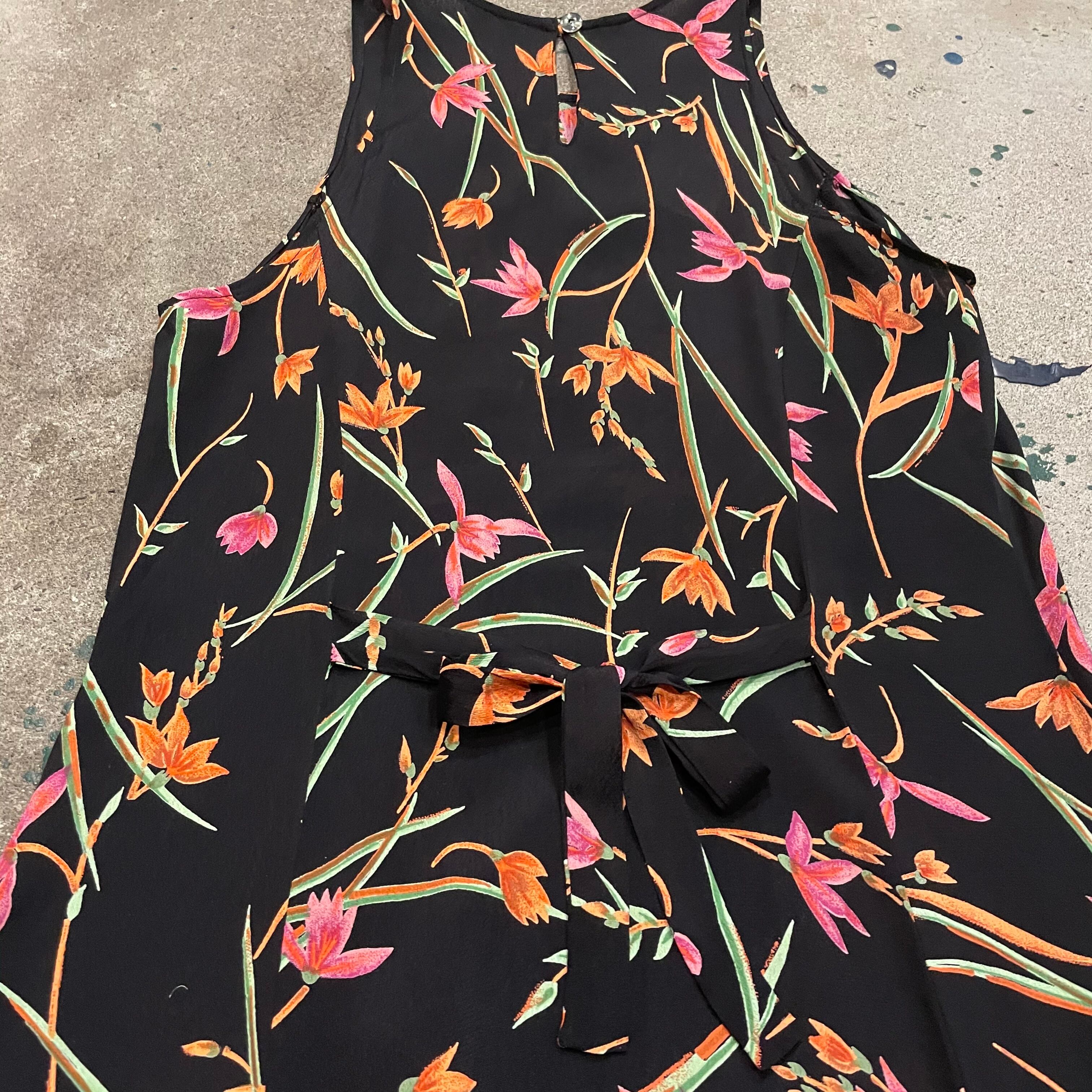 black flower sleeveless dress