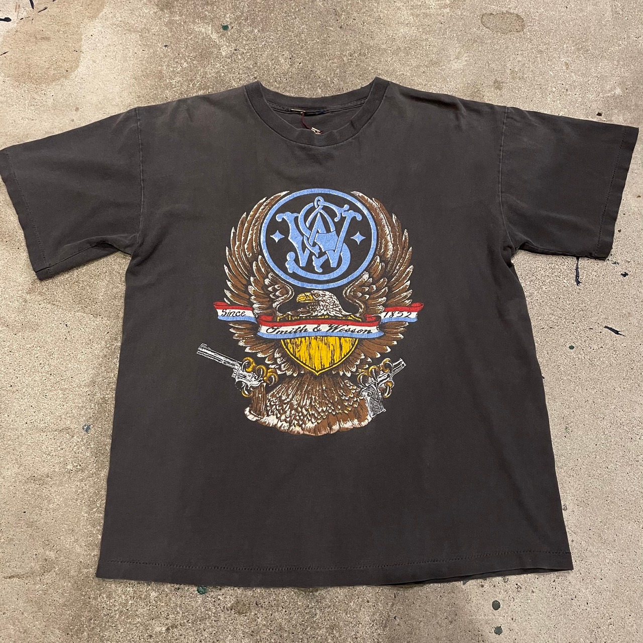 1852年にアメリカで設立した銃器メーカー"スミスアンドウェッソン"のTシャツです。