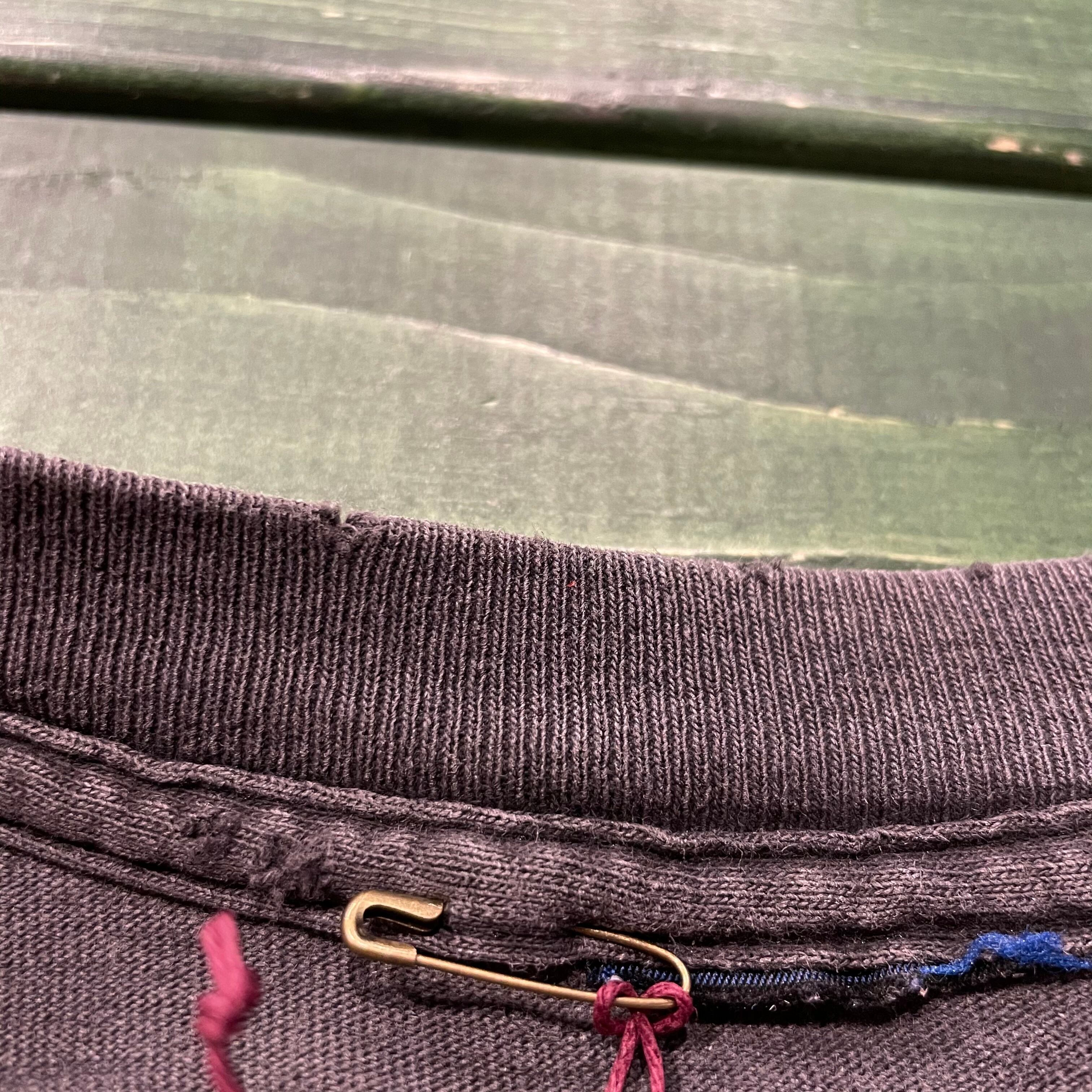 全体的に色褪せており、部分的に更に褪せている部分もございます。襟ぐりに小さな傷が多数あります。写真をご確認の上、古着にご理解のある方のご購入をお願い致します。