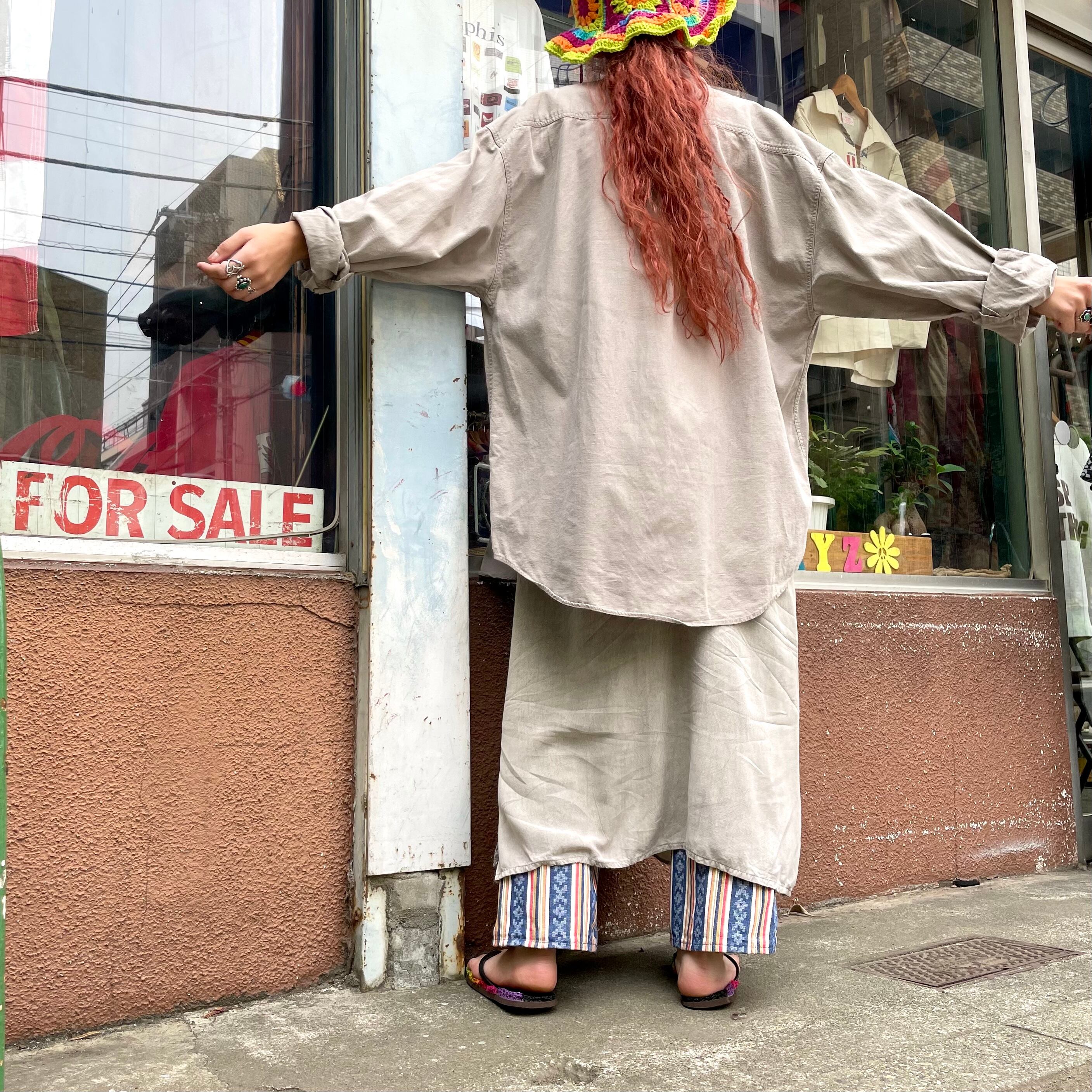 メンズのLサイズでゆったり大きく、丈も長めで羽織として合わせやすい一着です。男性にももちろんおすすめですが、女性がミニワンピース風に着るのもかわいいと思います。