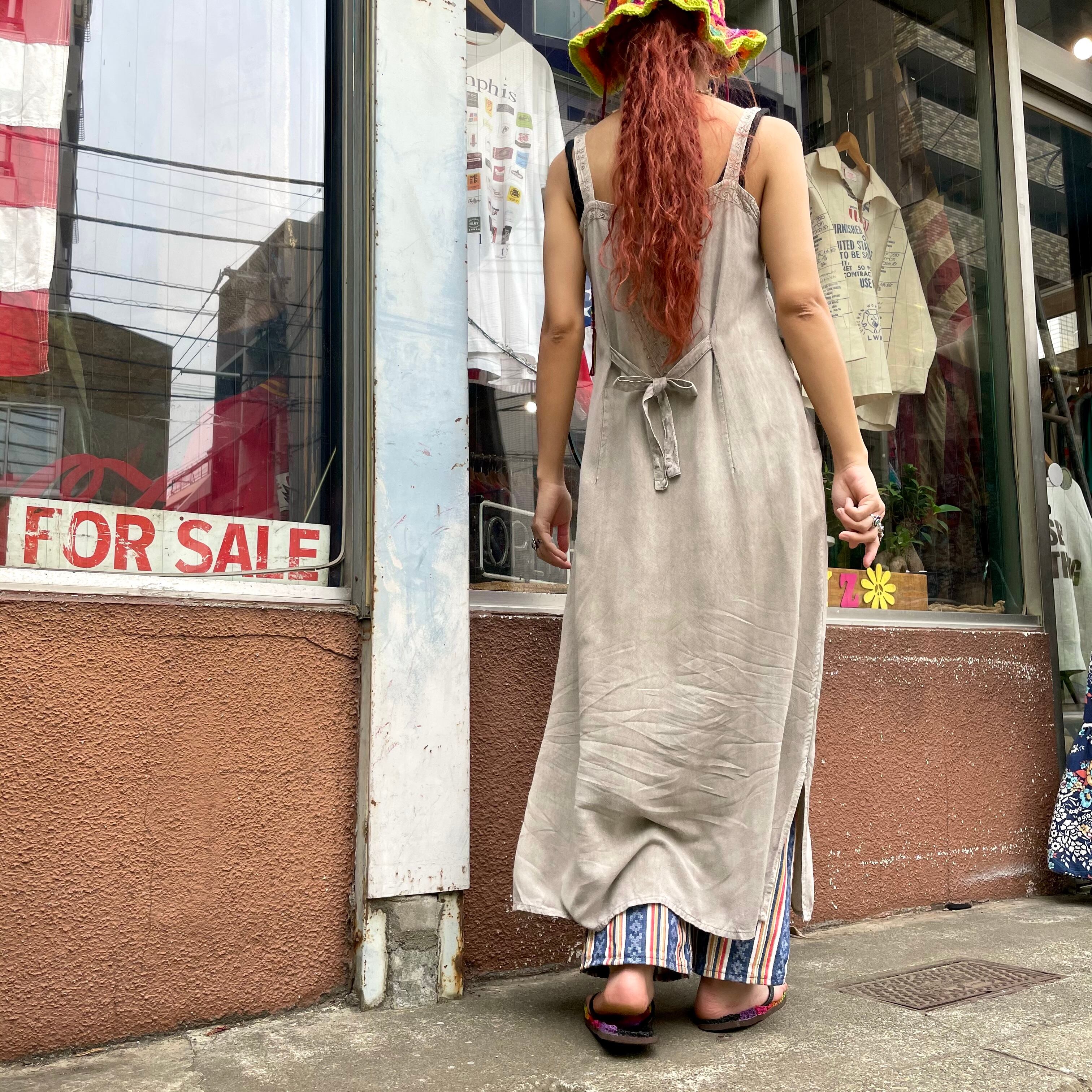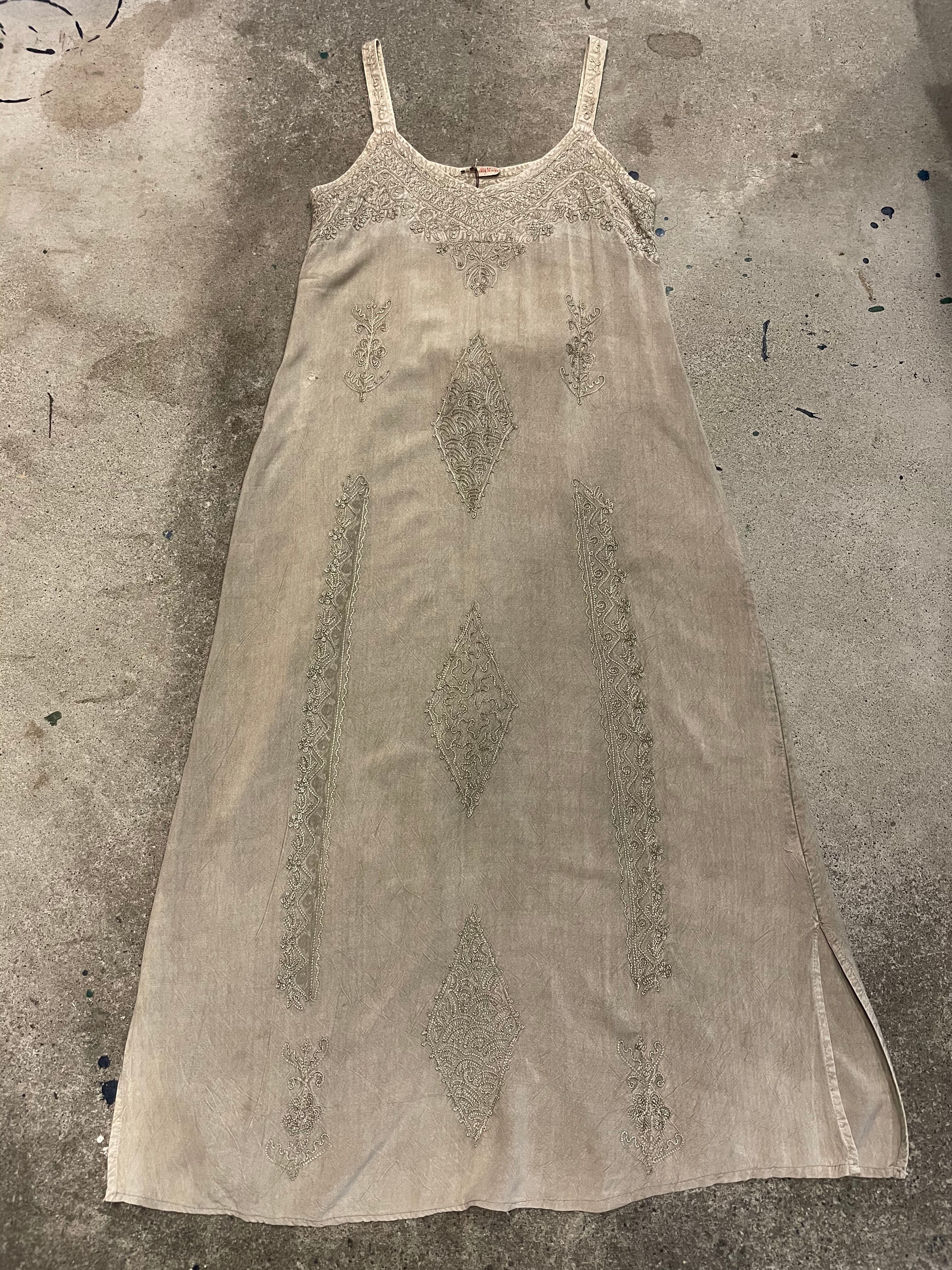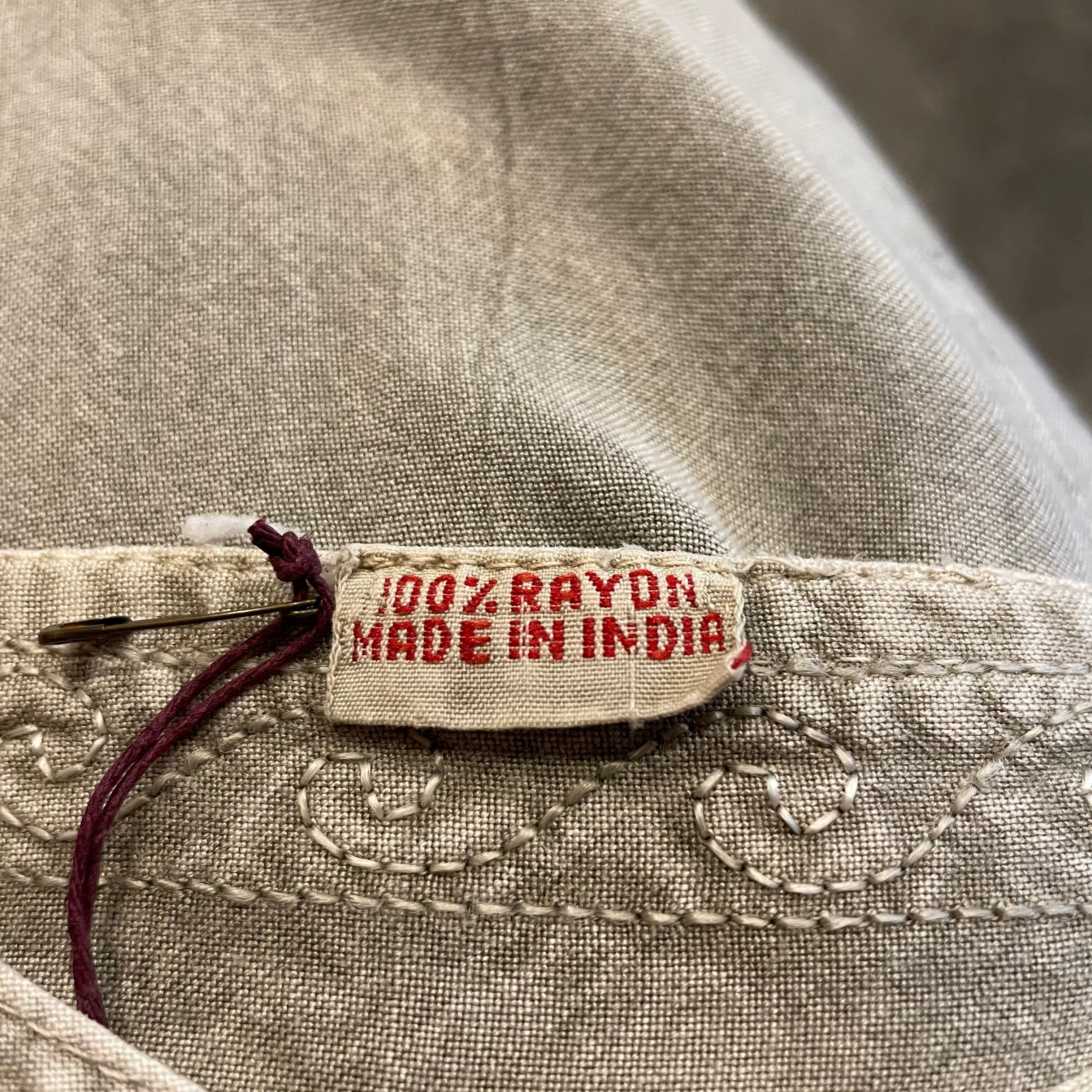 インド製のレーヨンキャミソールワンピースです。テロンと涼しい生地感と程よい異国感がかわいいです。さりげない刺繍も素敵です。