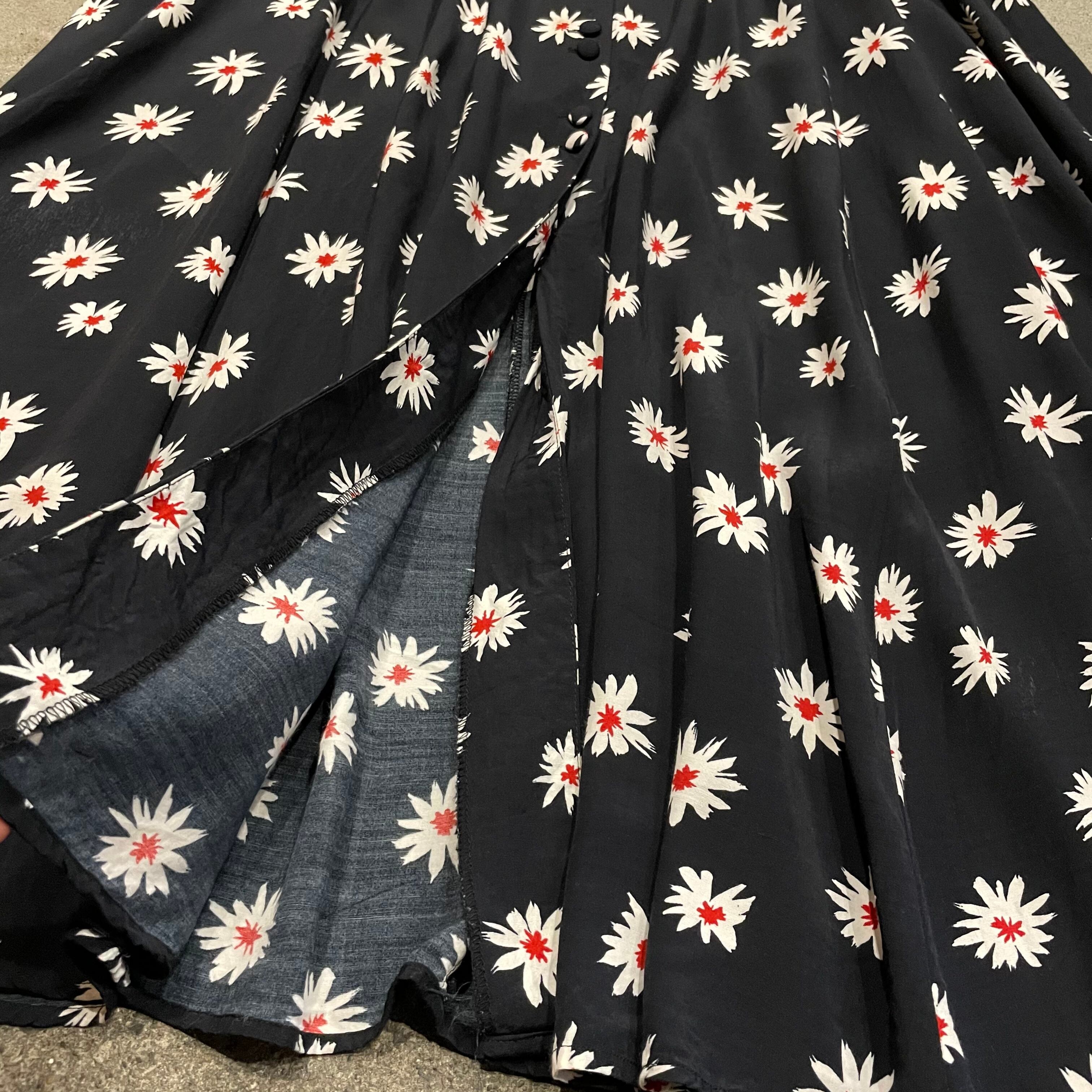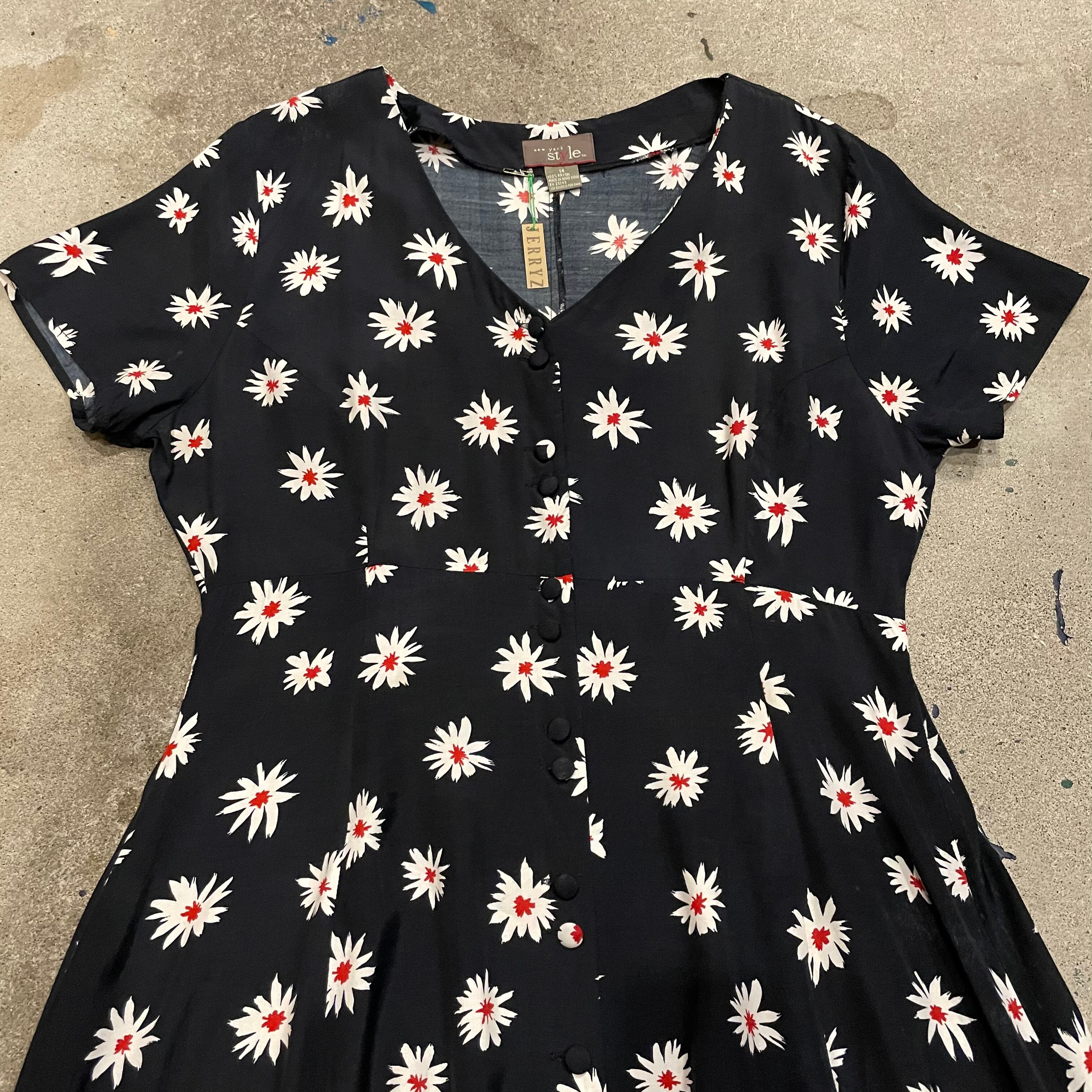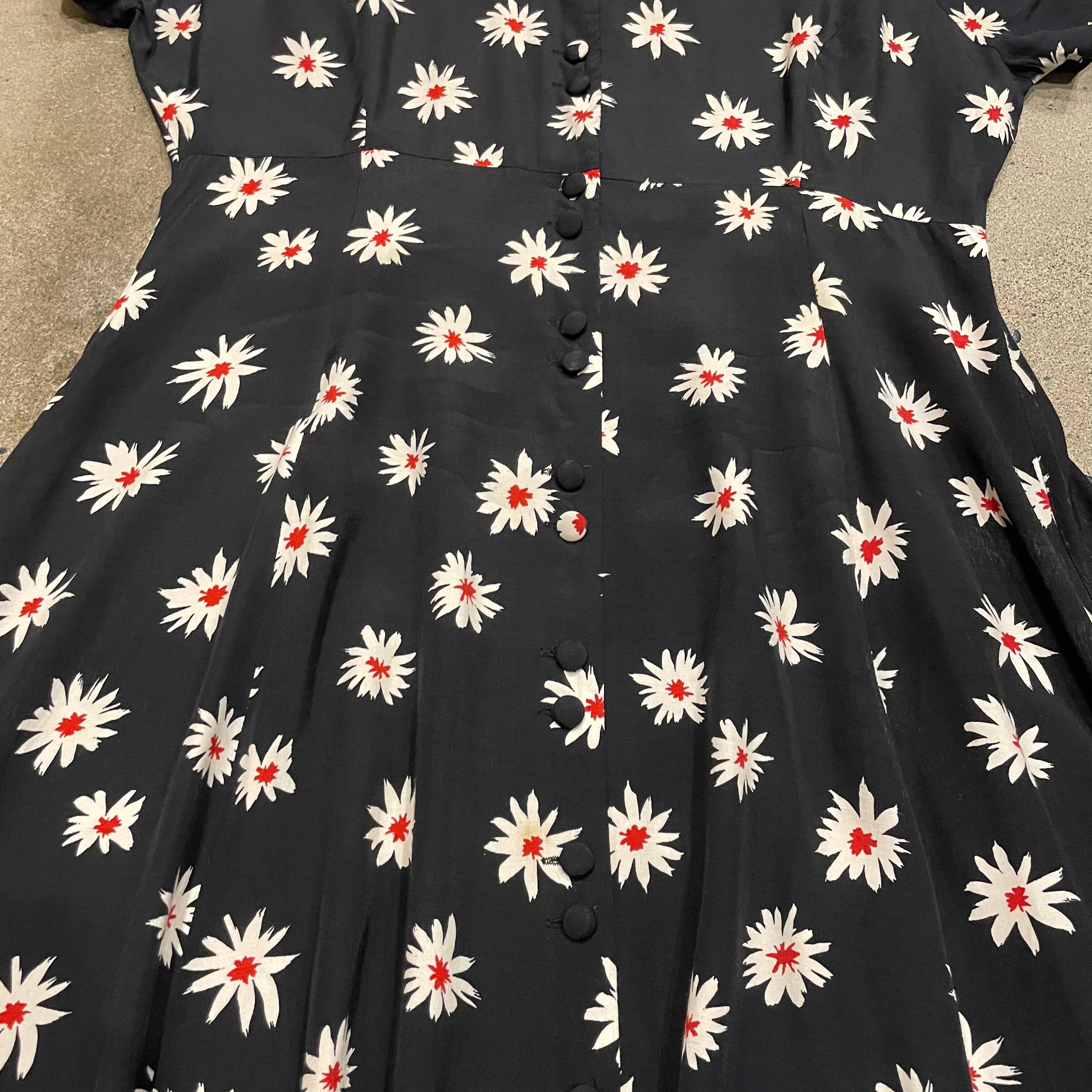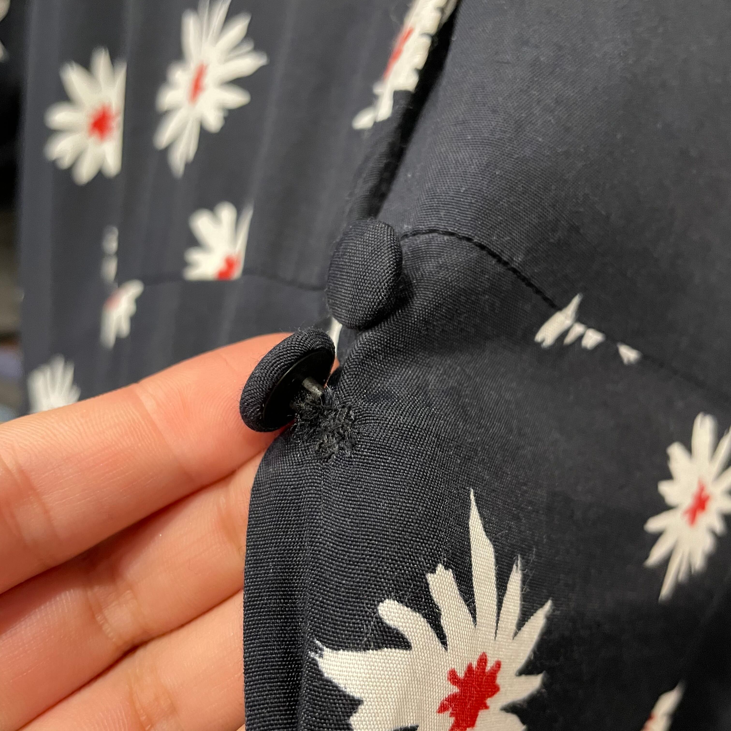 黒地に赤と白のみの花柄が潔くてかわいいワンピースです。