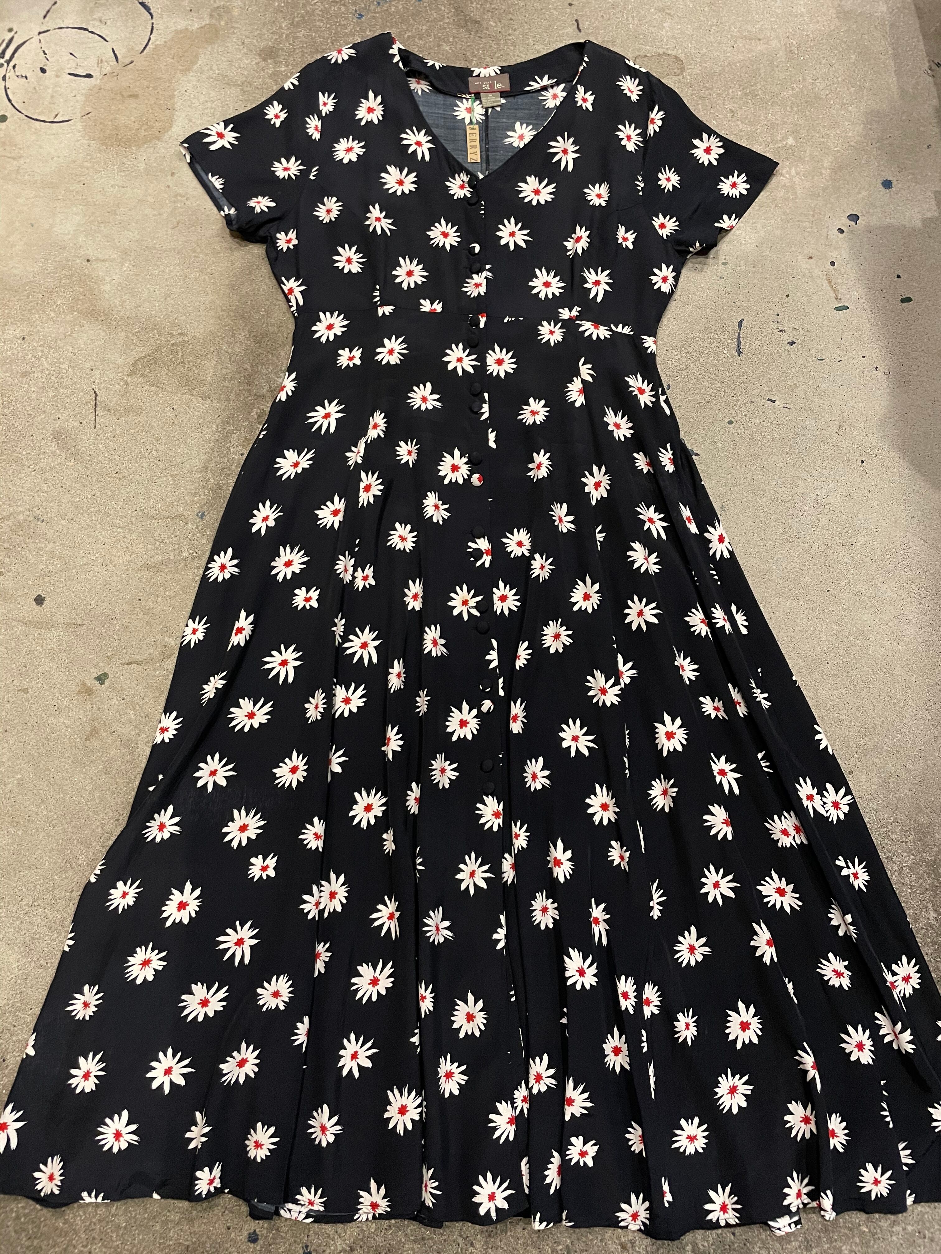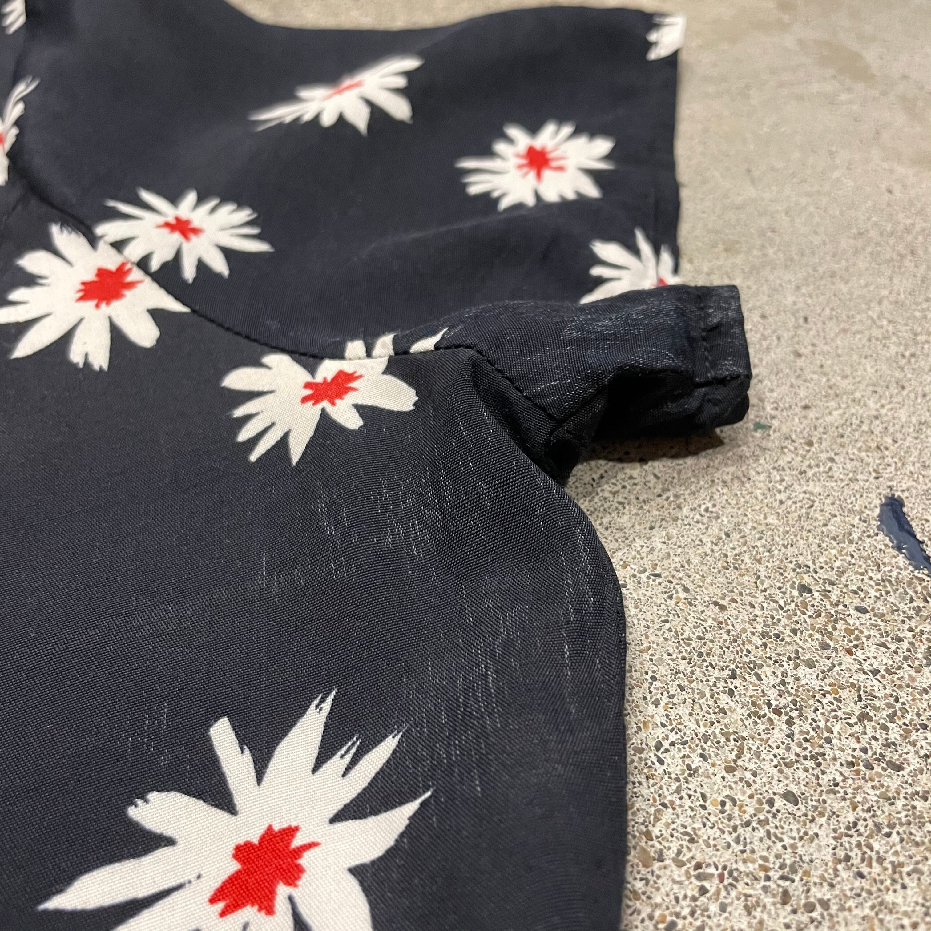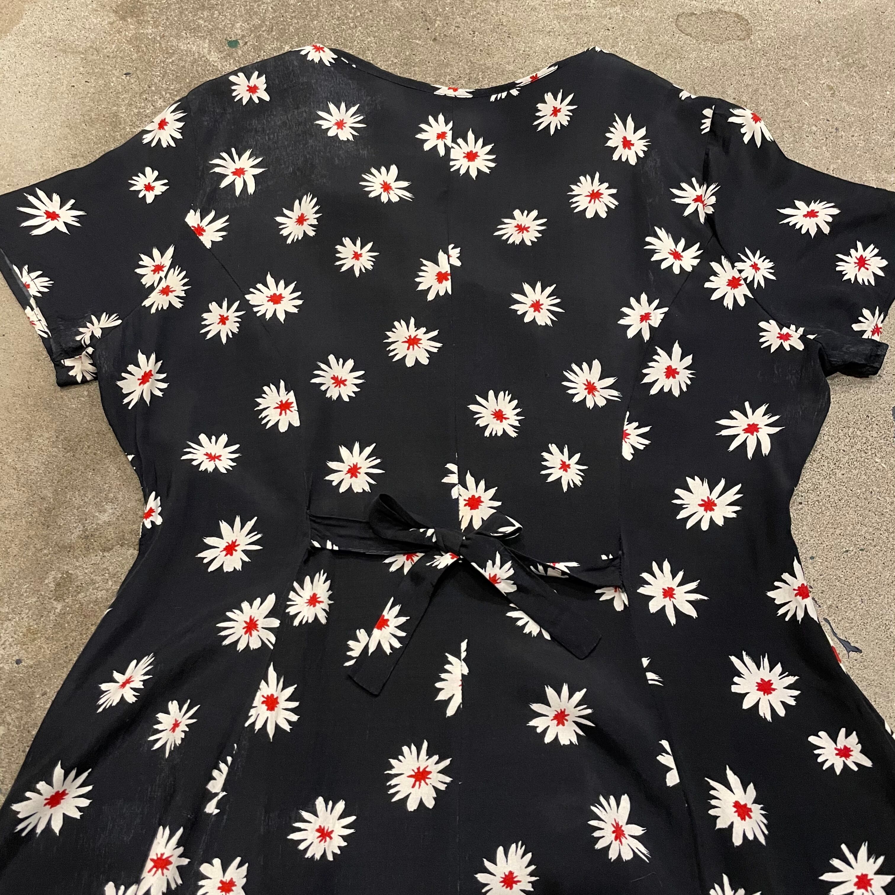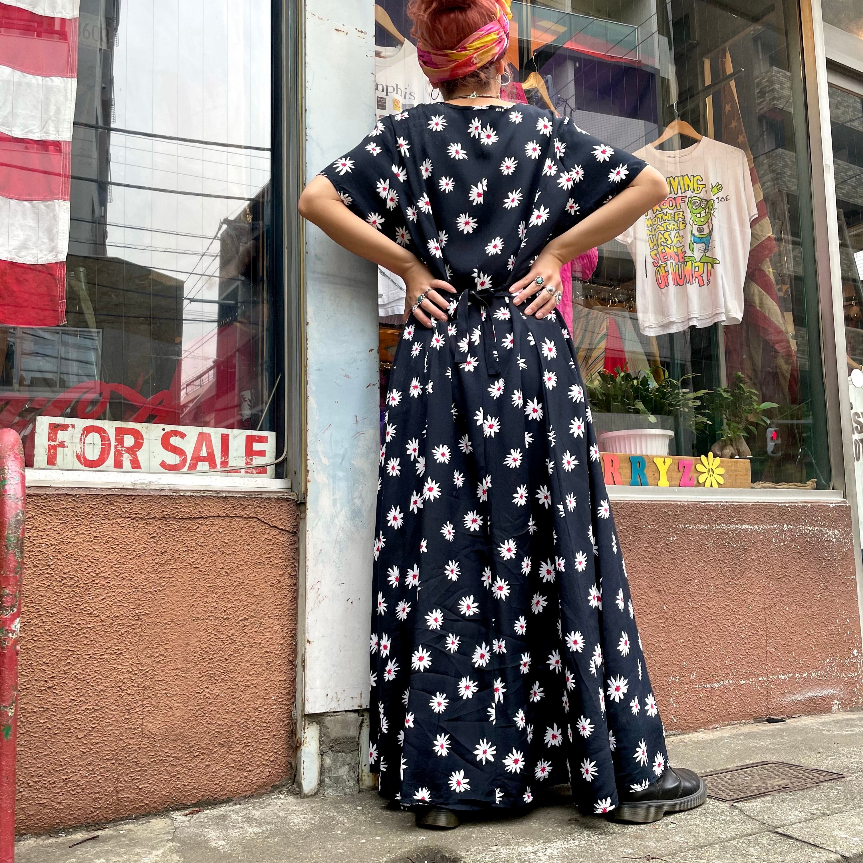 黒地に赤と白のみの花柄が潔くてかわいいワンピースです。