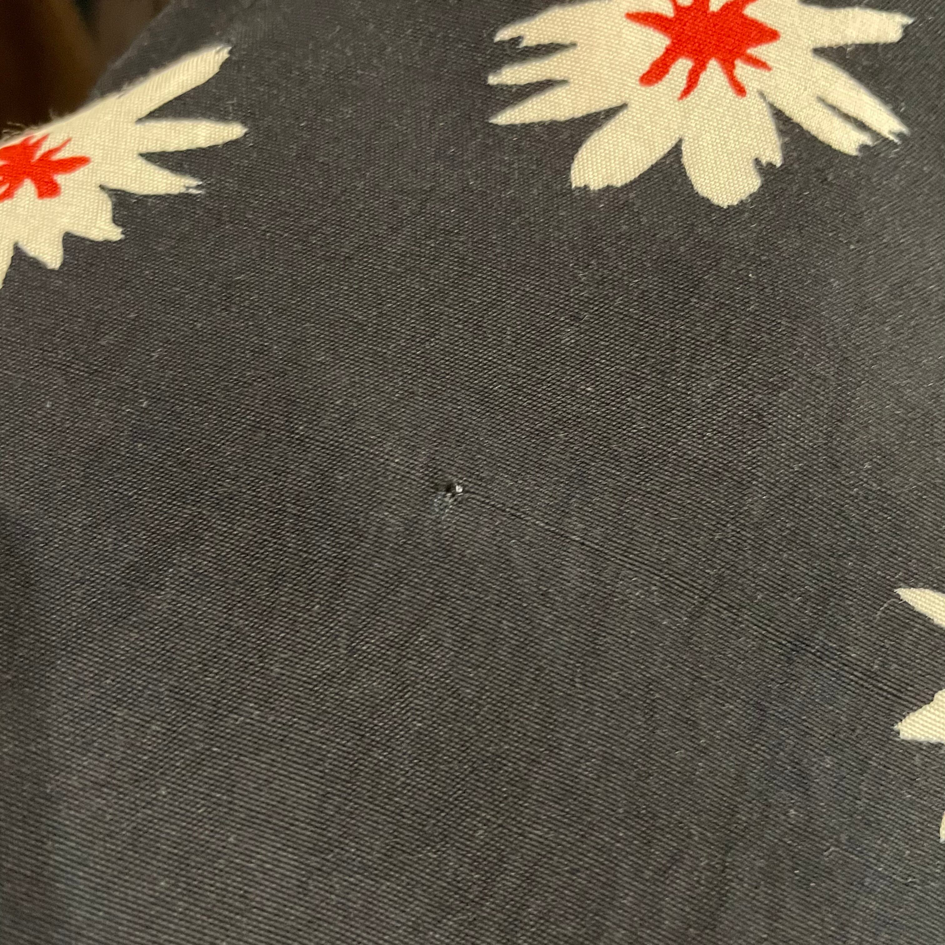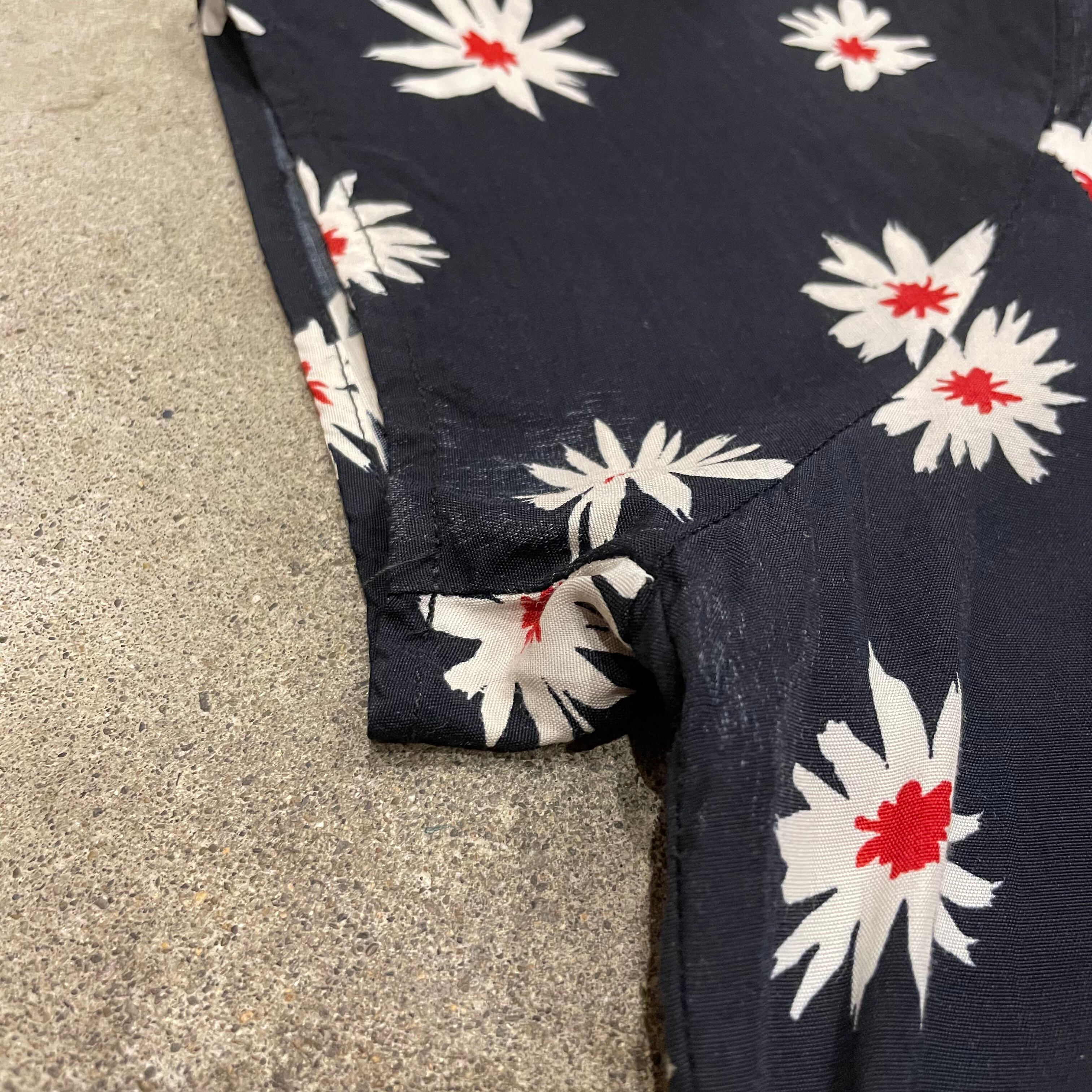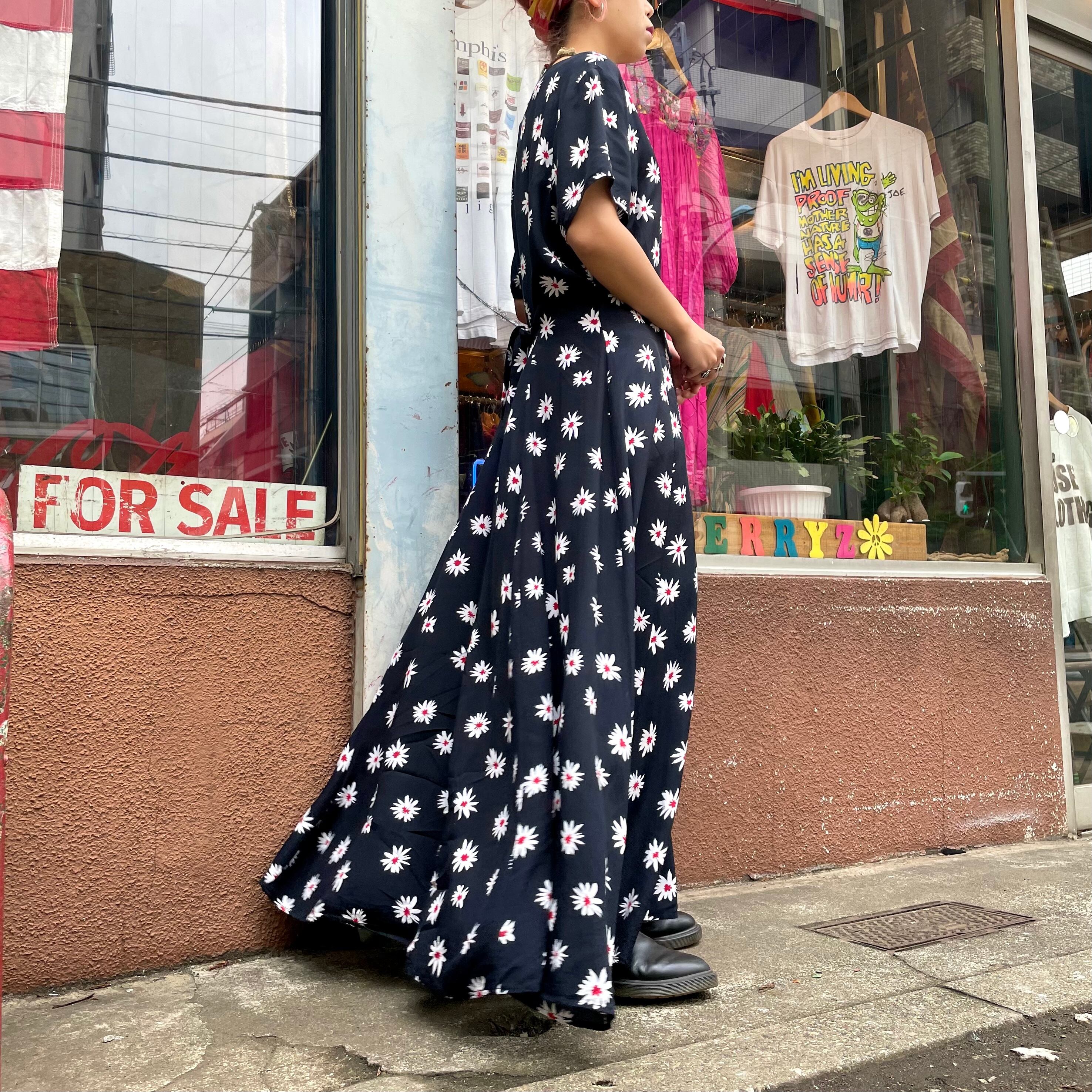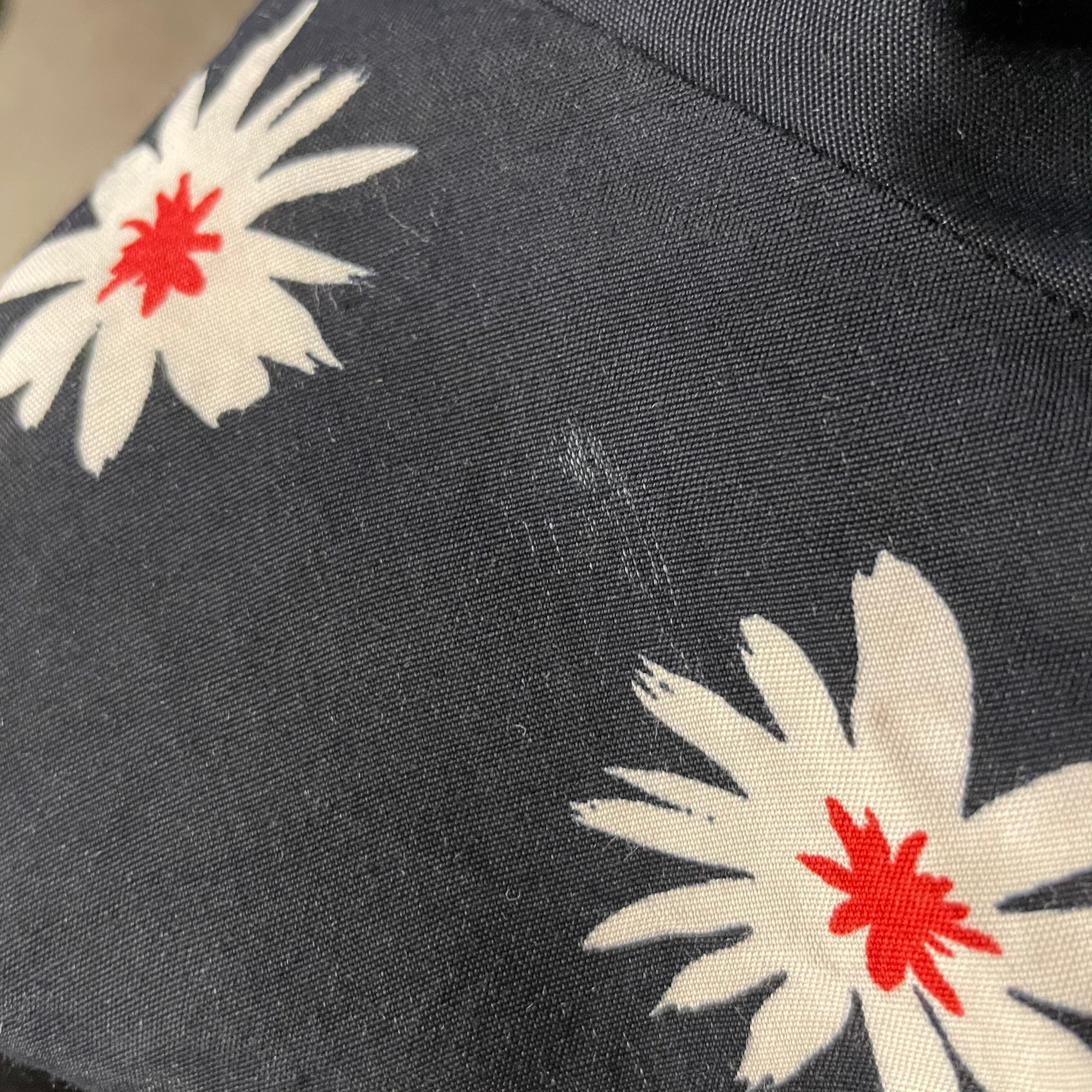 黒地に赤と白のみの花柄が潔くてかわいいワンピースです。