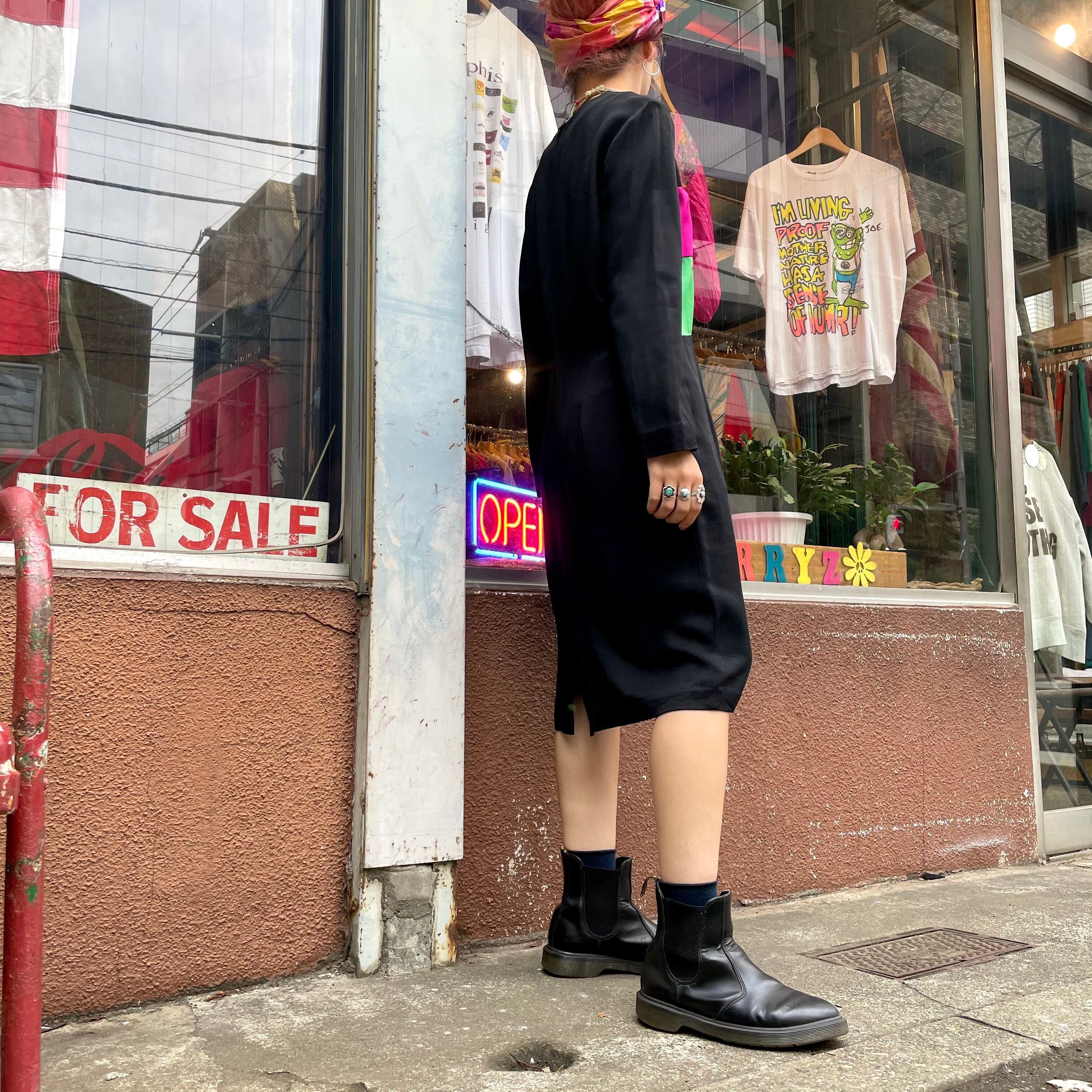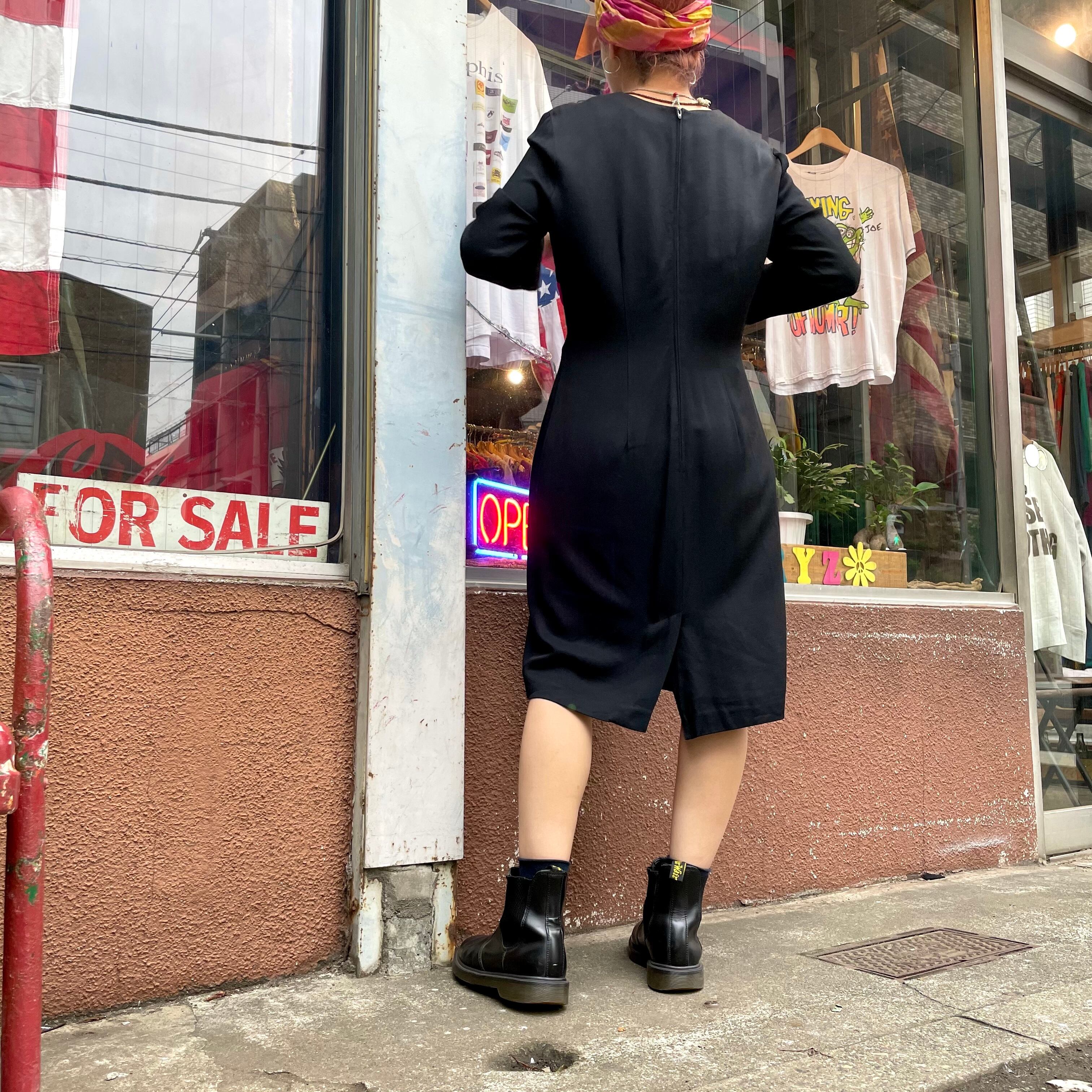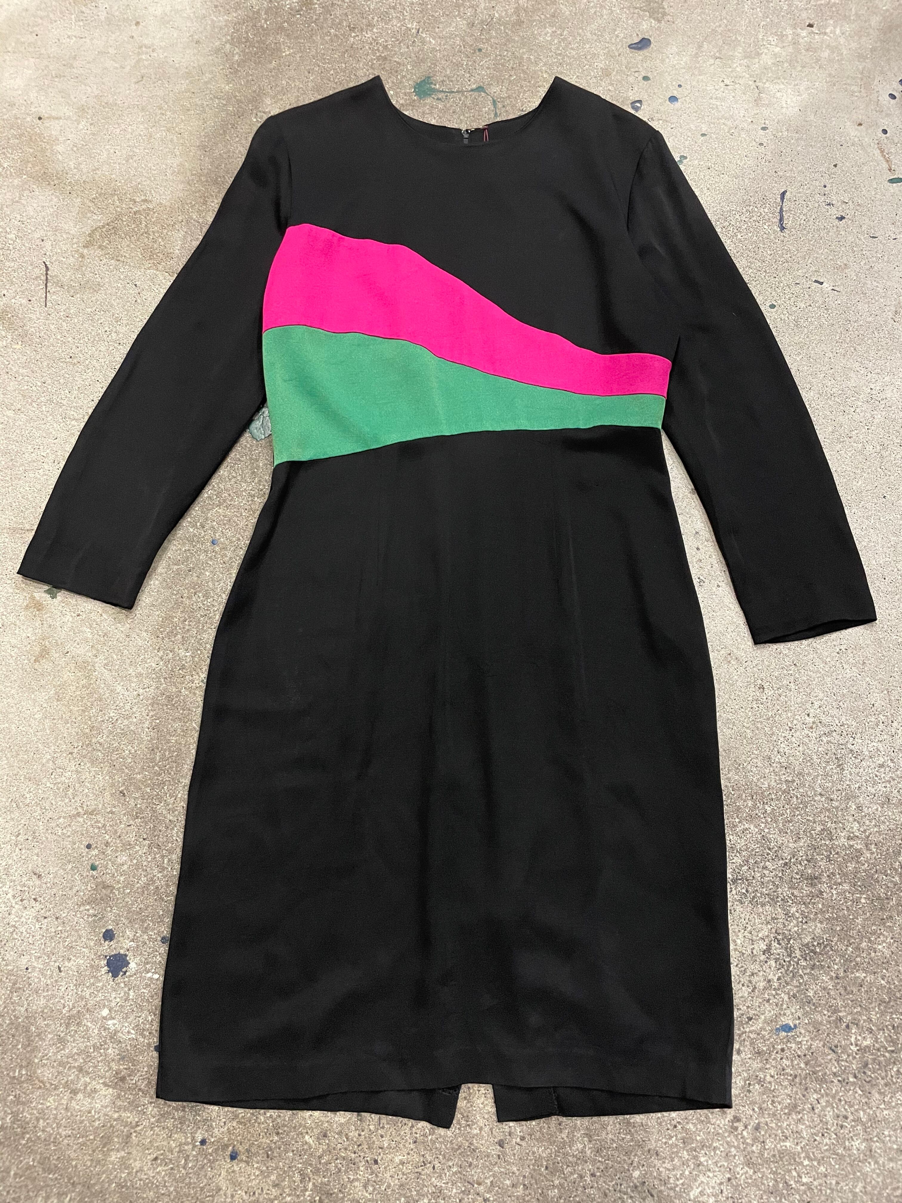 黒地にビビッドなピンクと黄緑の切り替えがインパクトがあってかっこいいワンピースです。