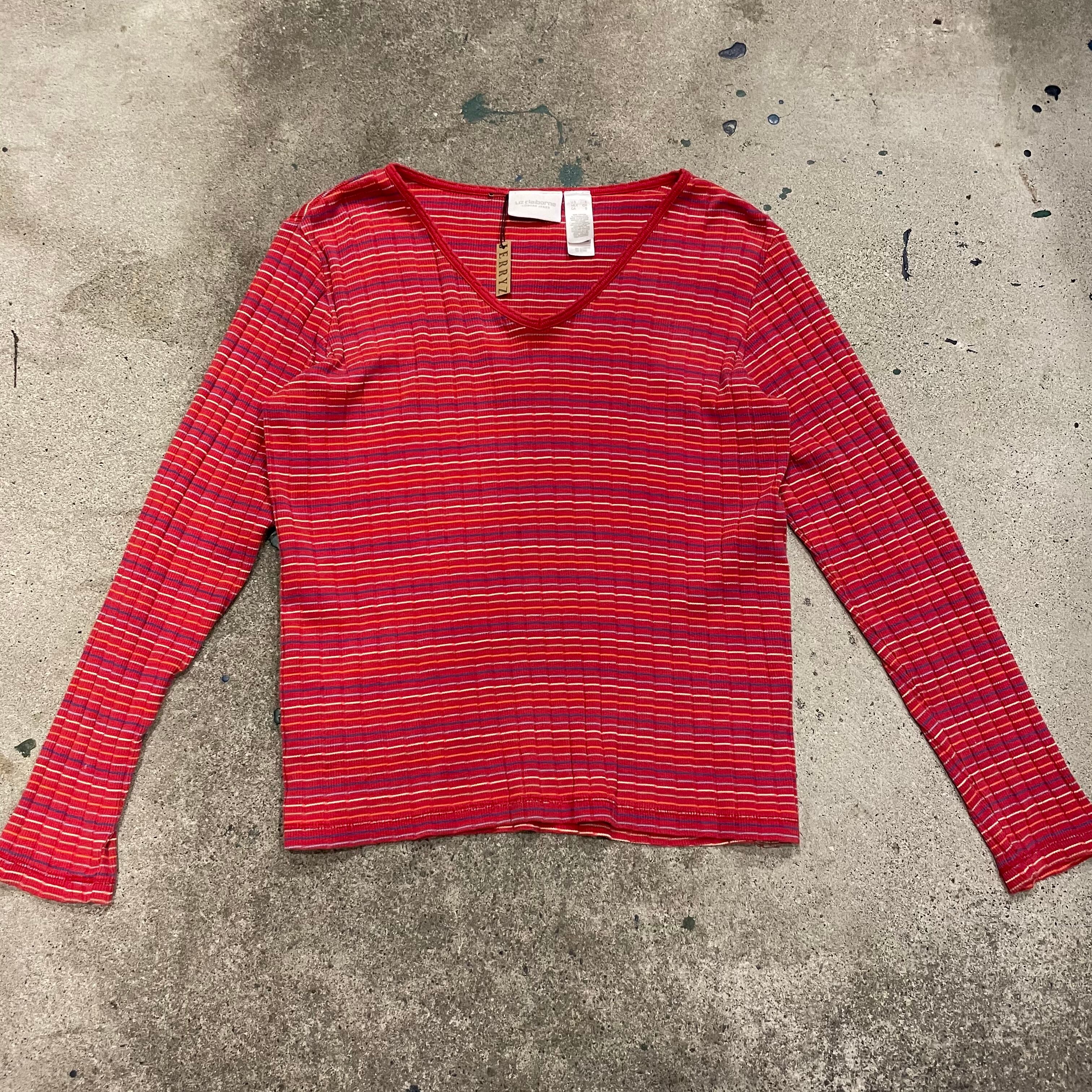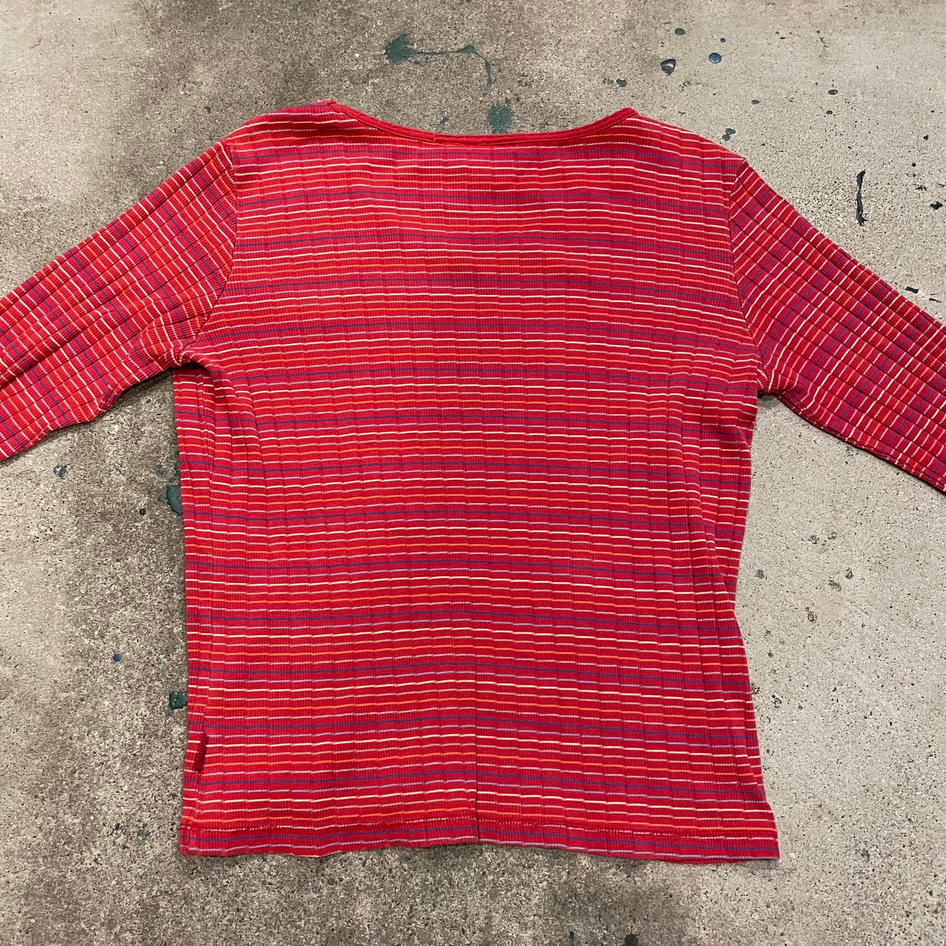 凹凸のあるリブのような素材感の着心地の良いボーダートップスです。