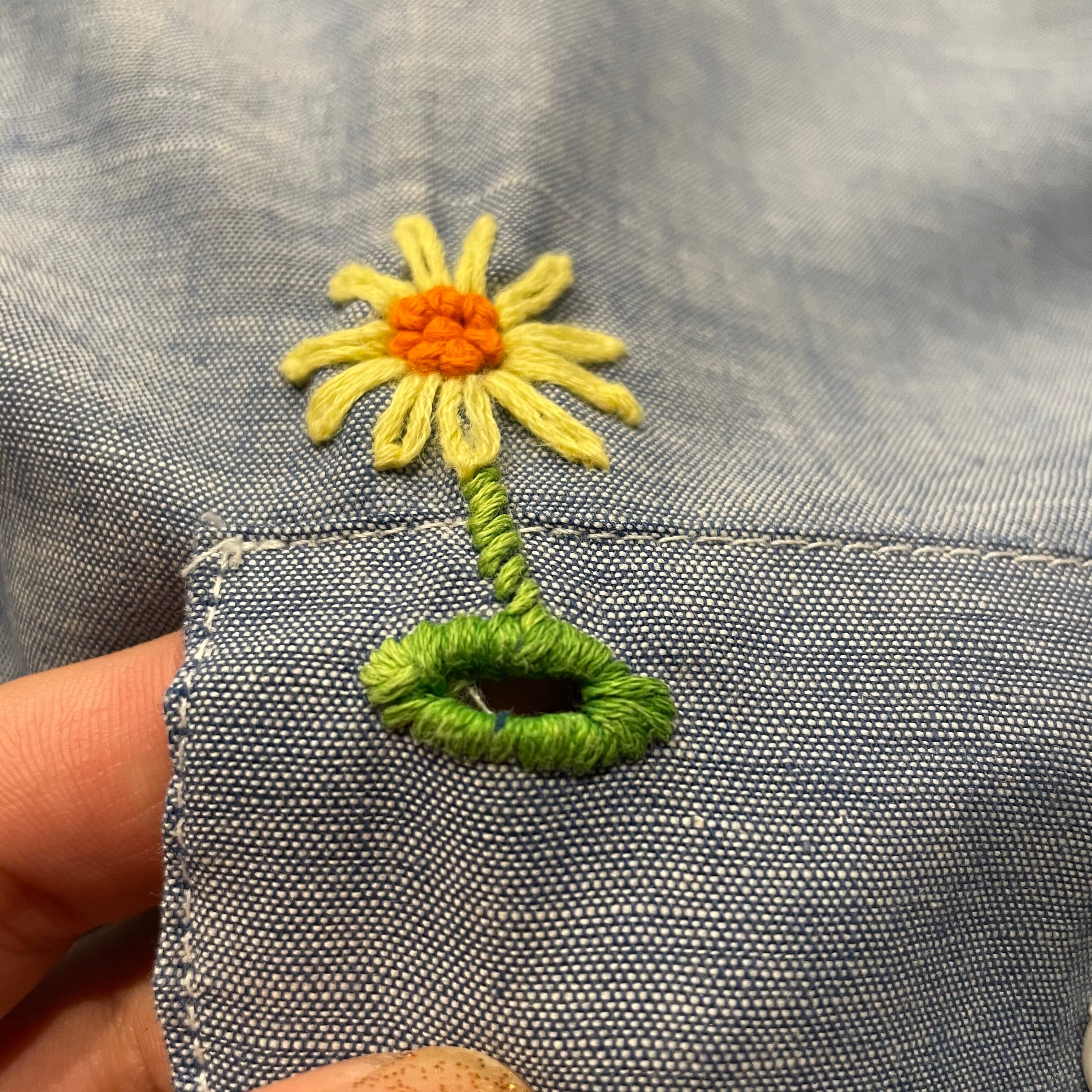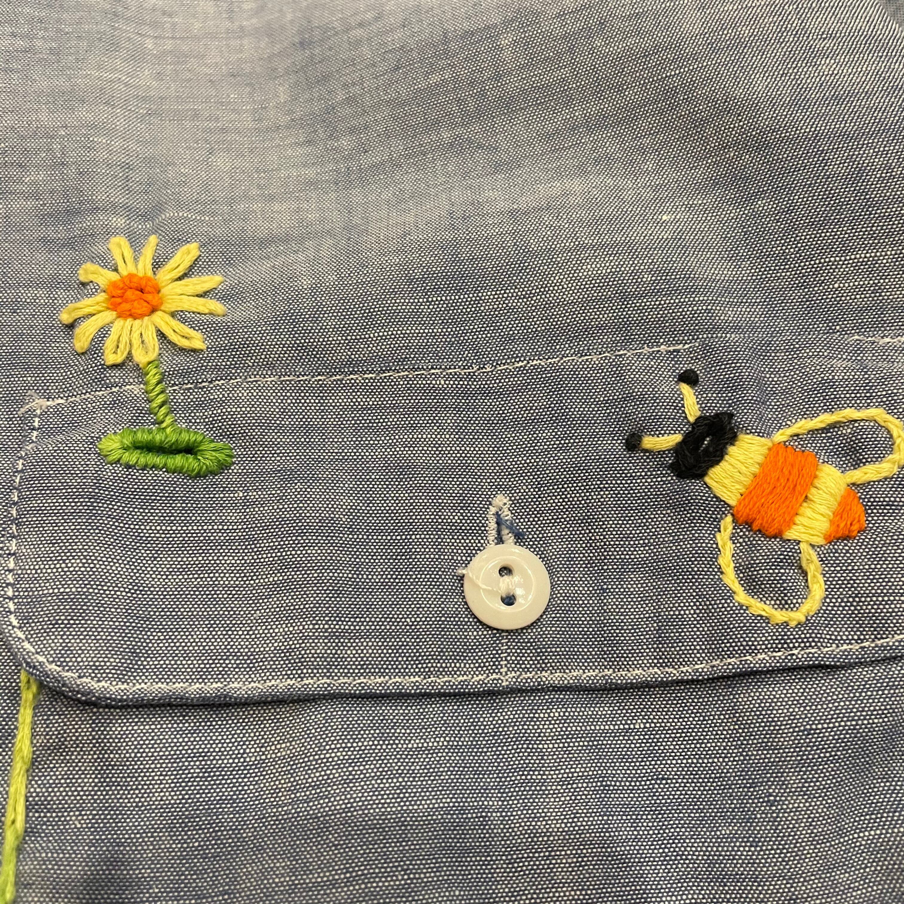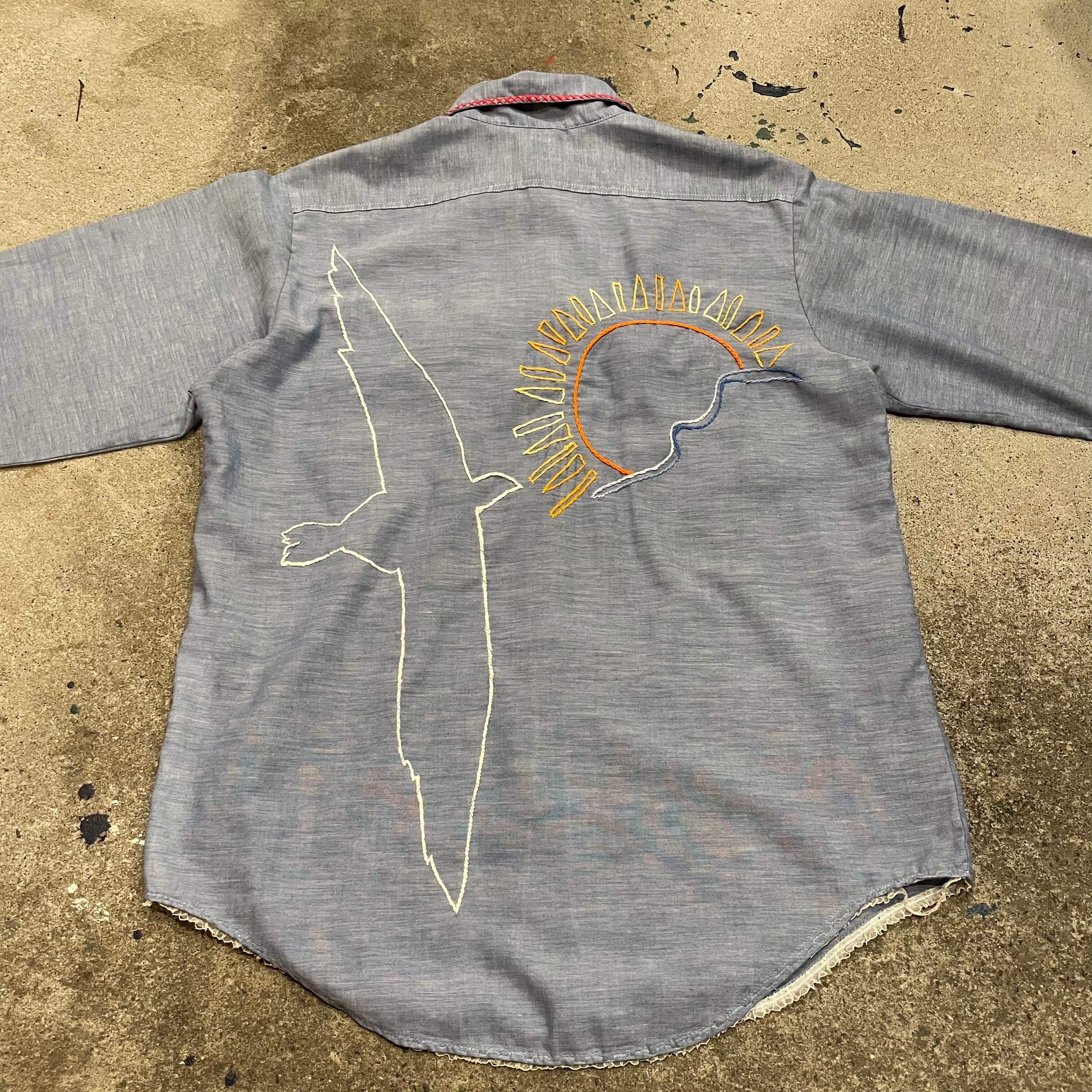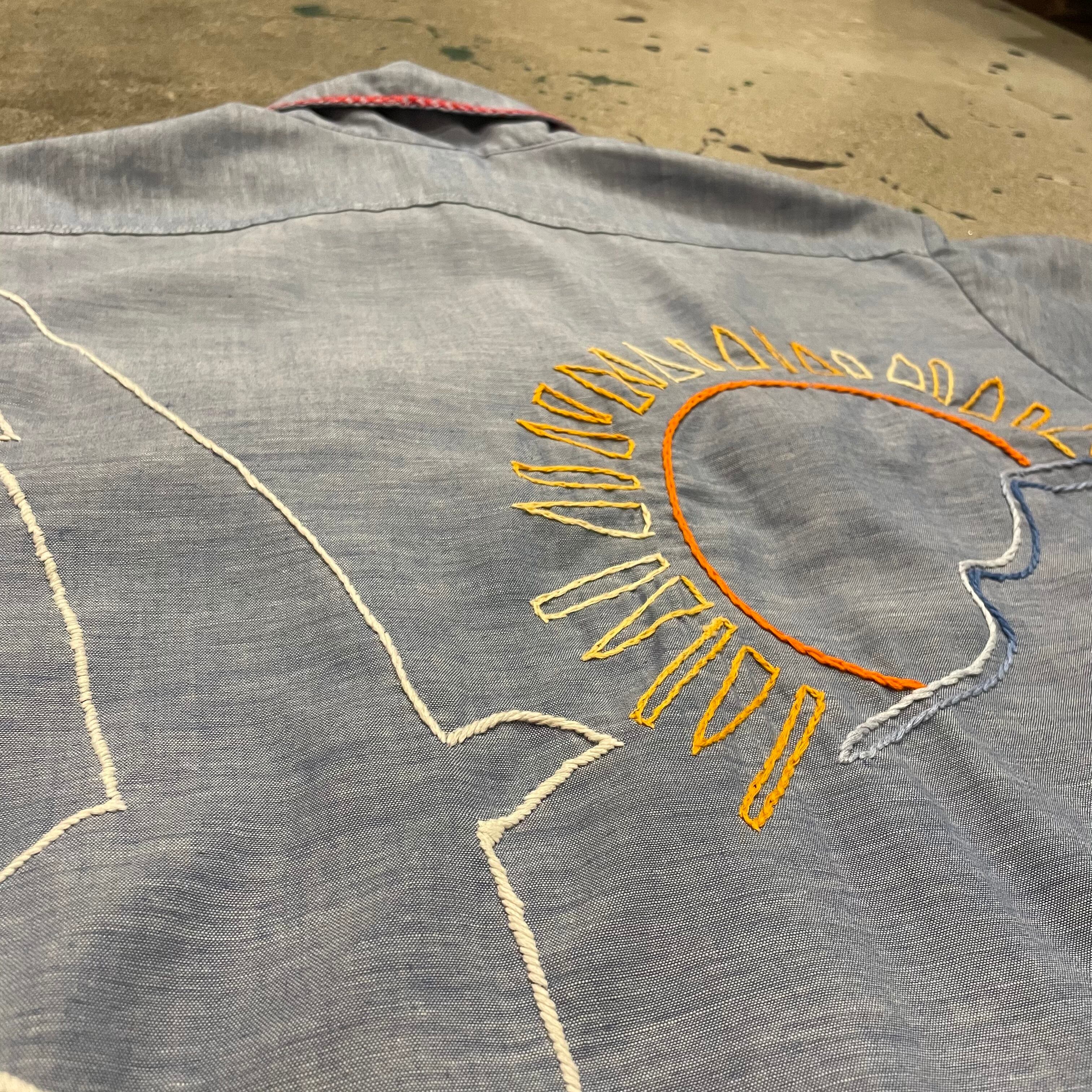 いろんな手刺繍が施されておりますが、背中の太陽と海と鳥がとてもかわいいです。