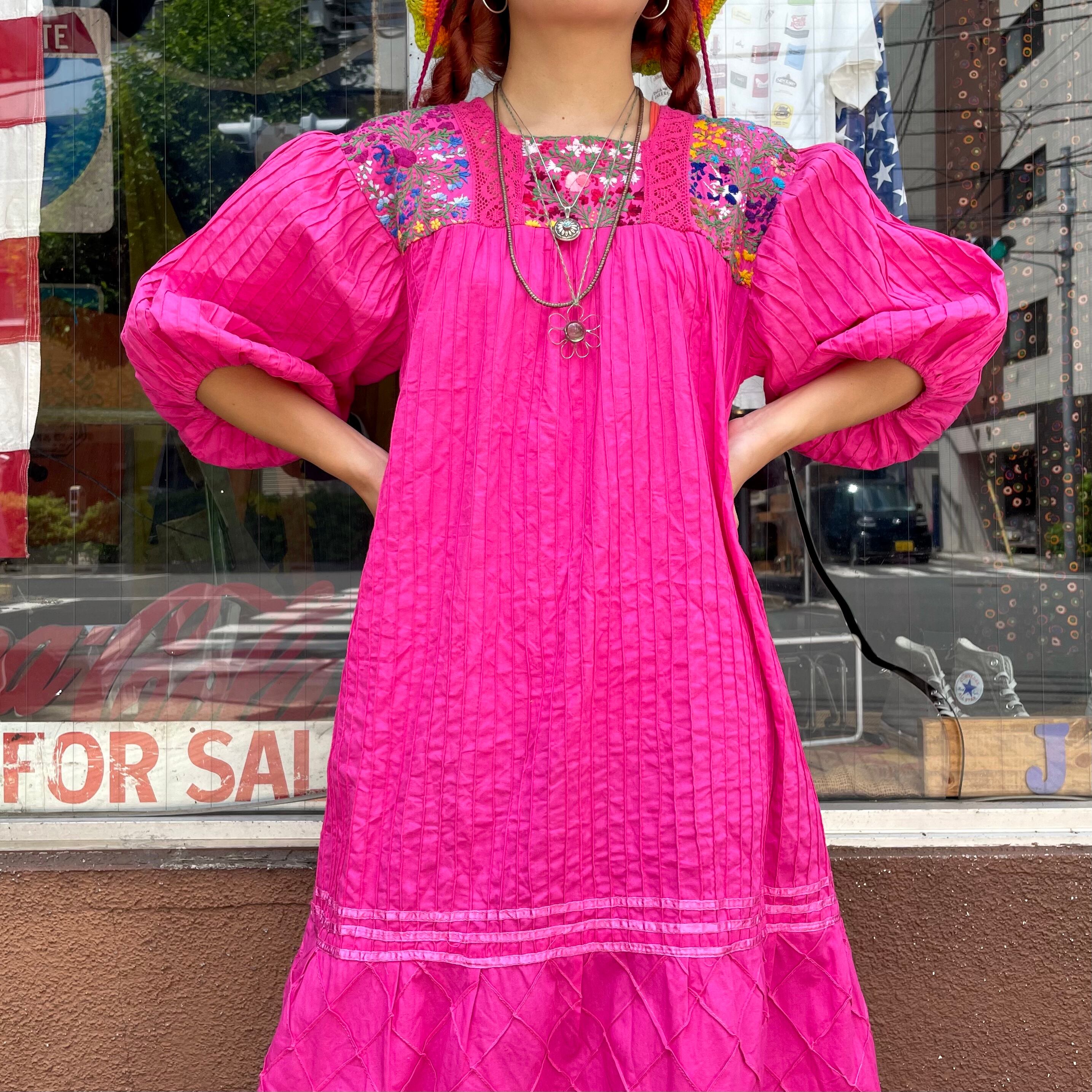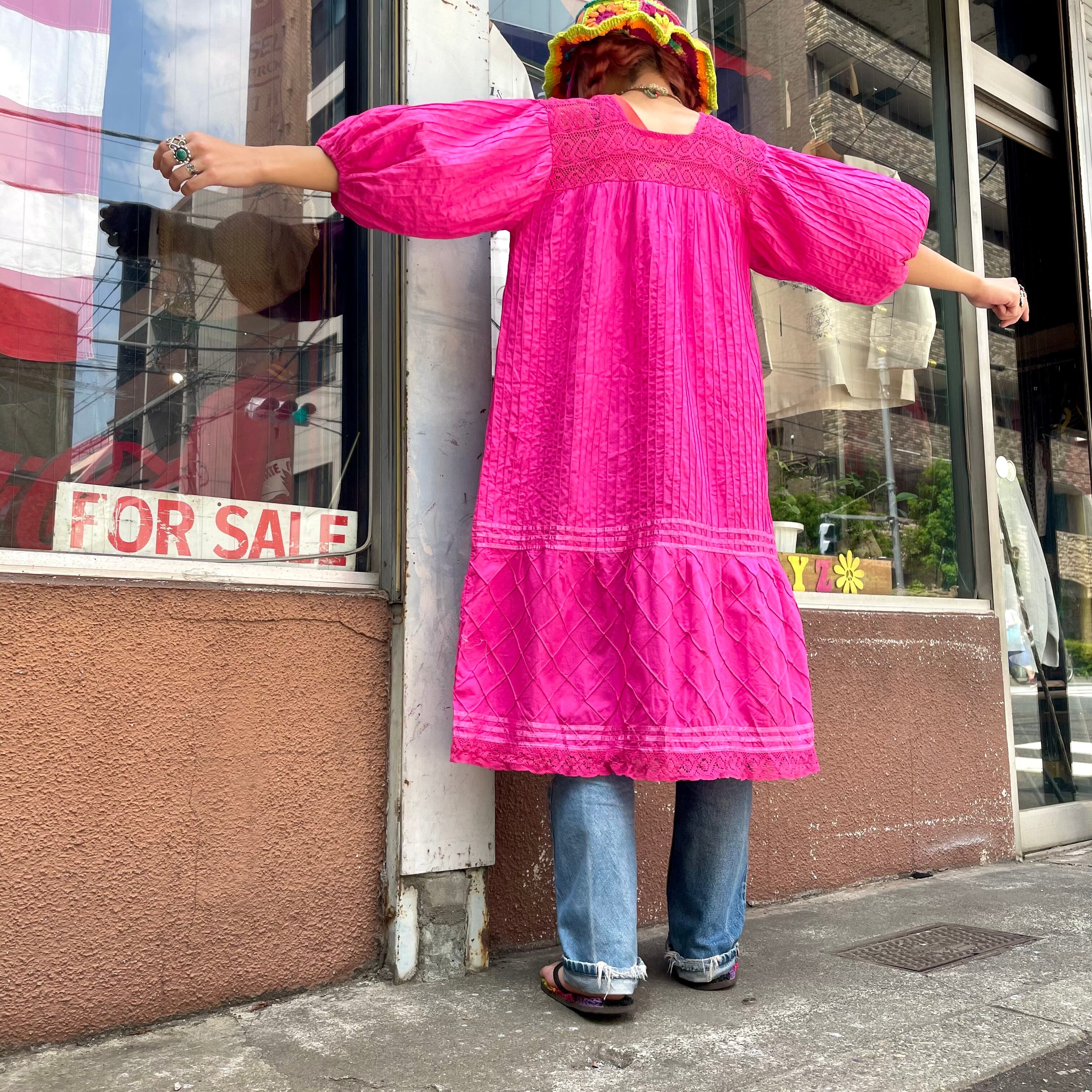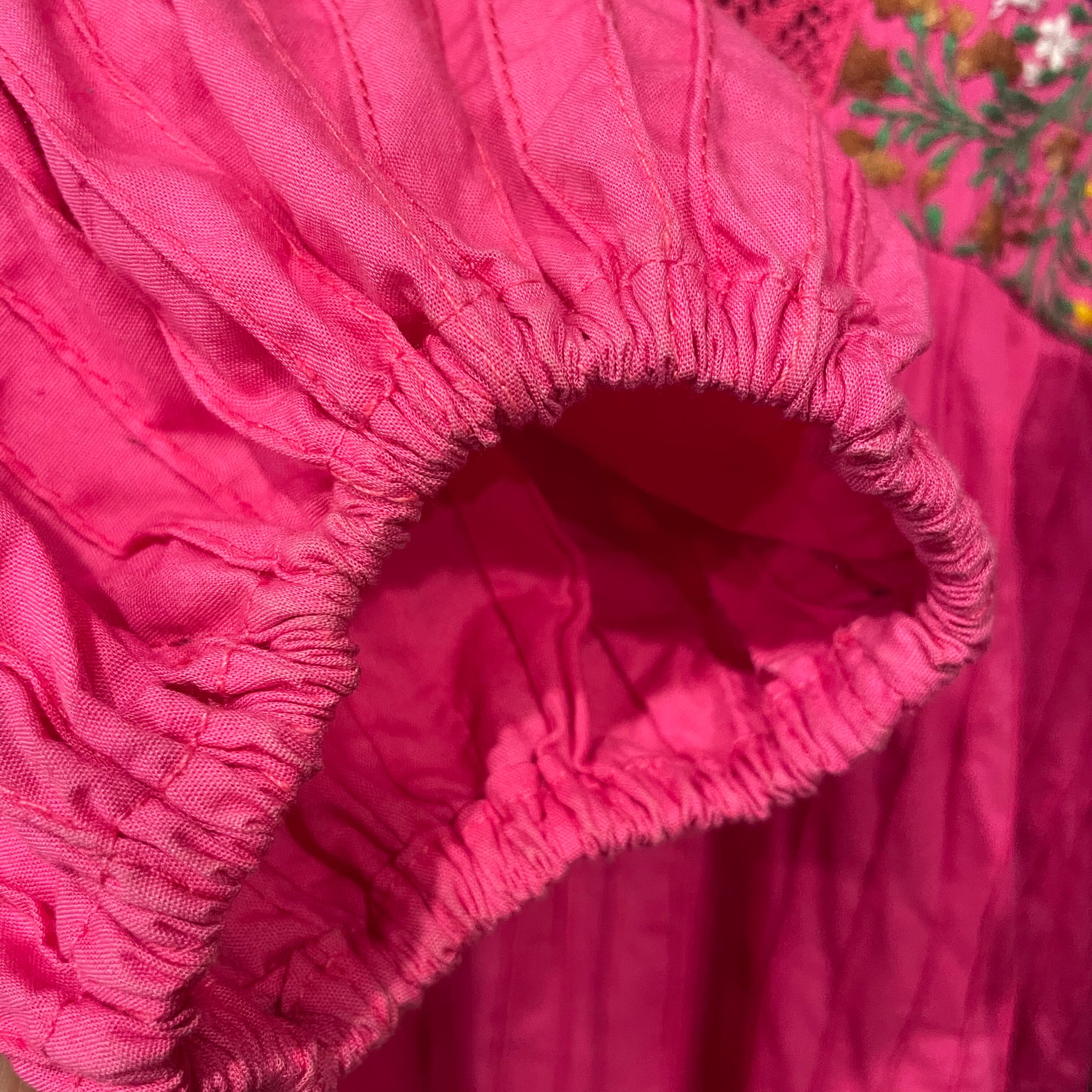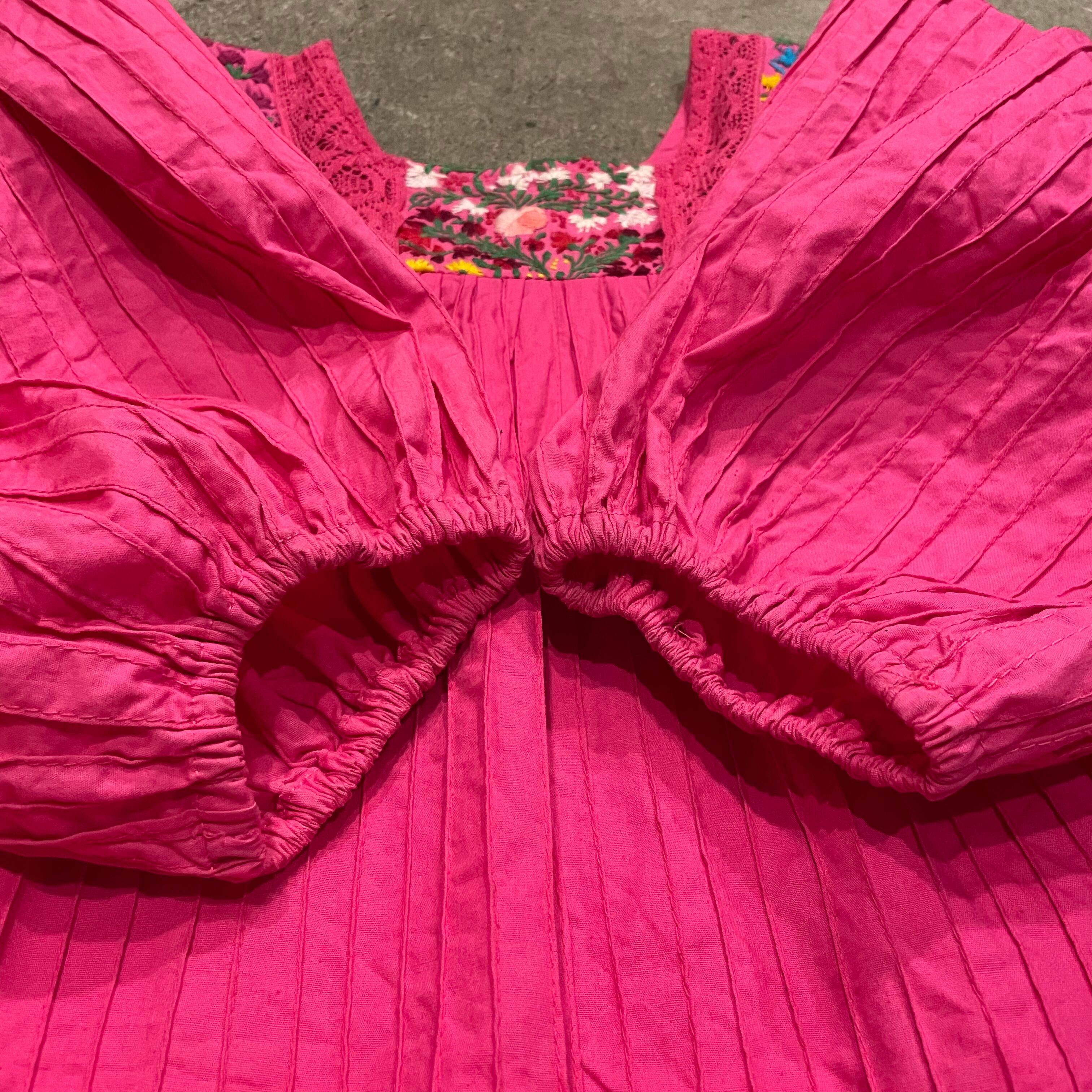 ビビッドなピンクにサンアントニーノ刺繍と全体にピンタックが施された手の込んだとても美しい一着です。