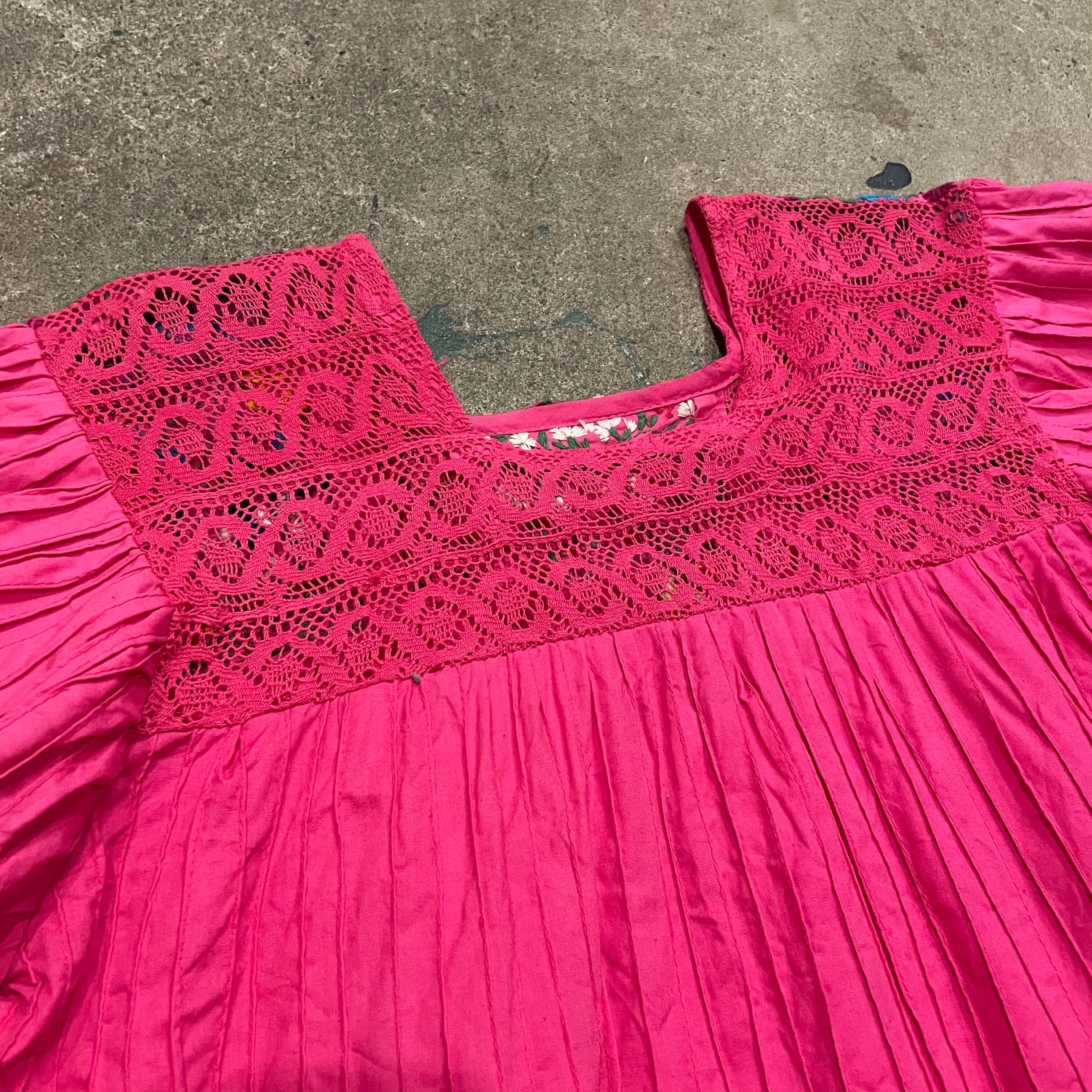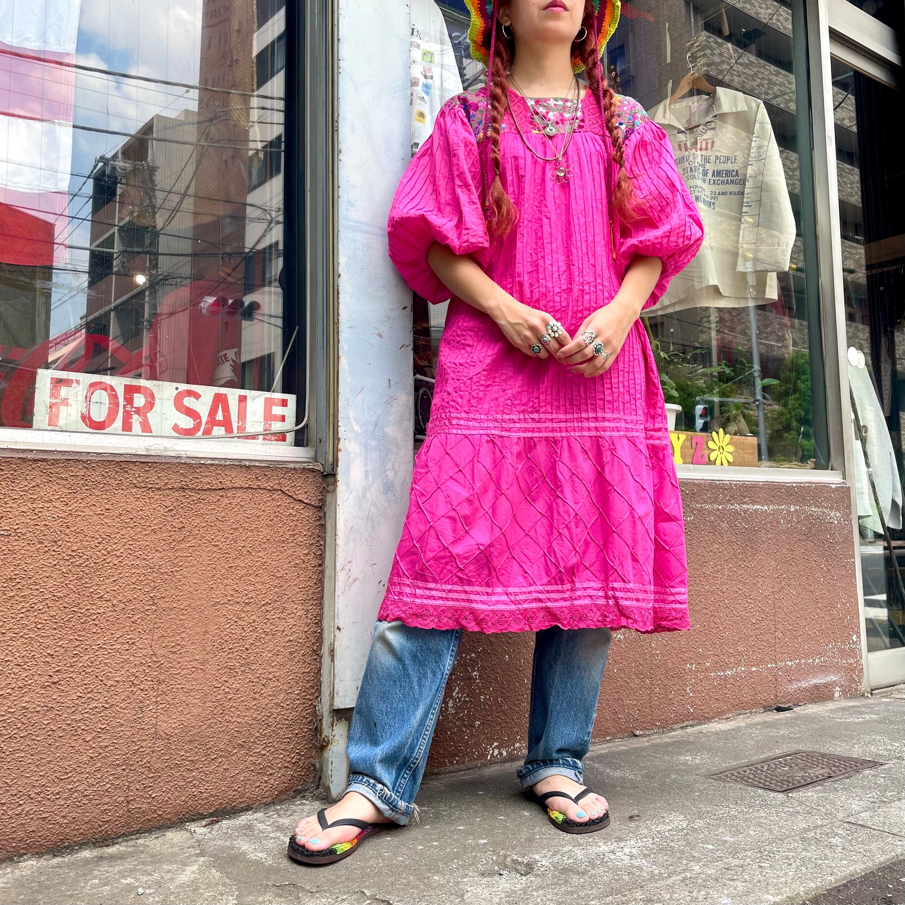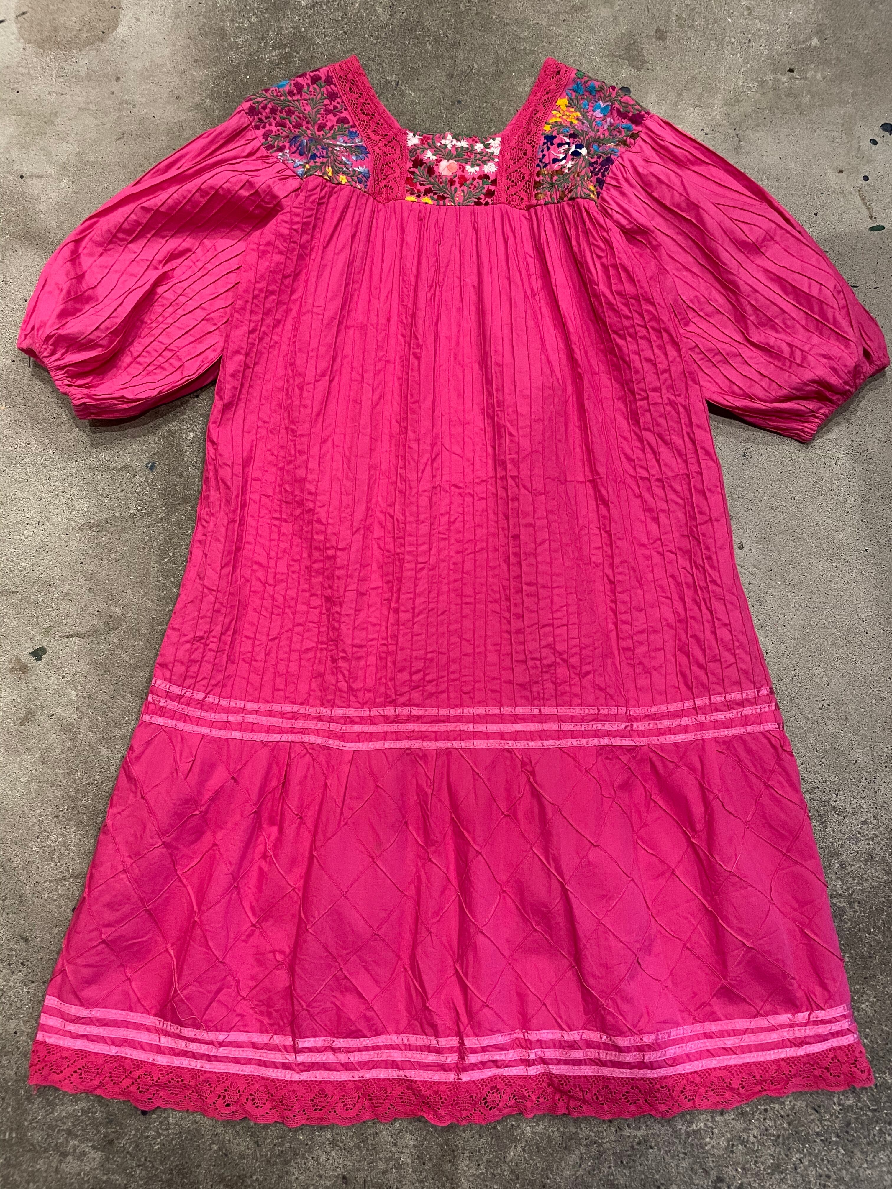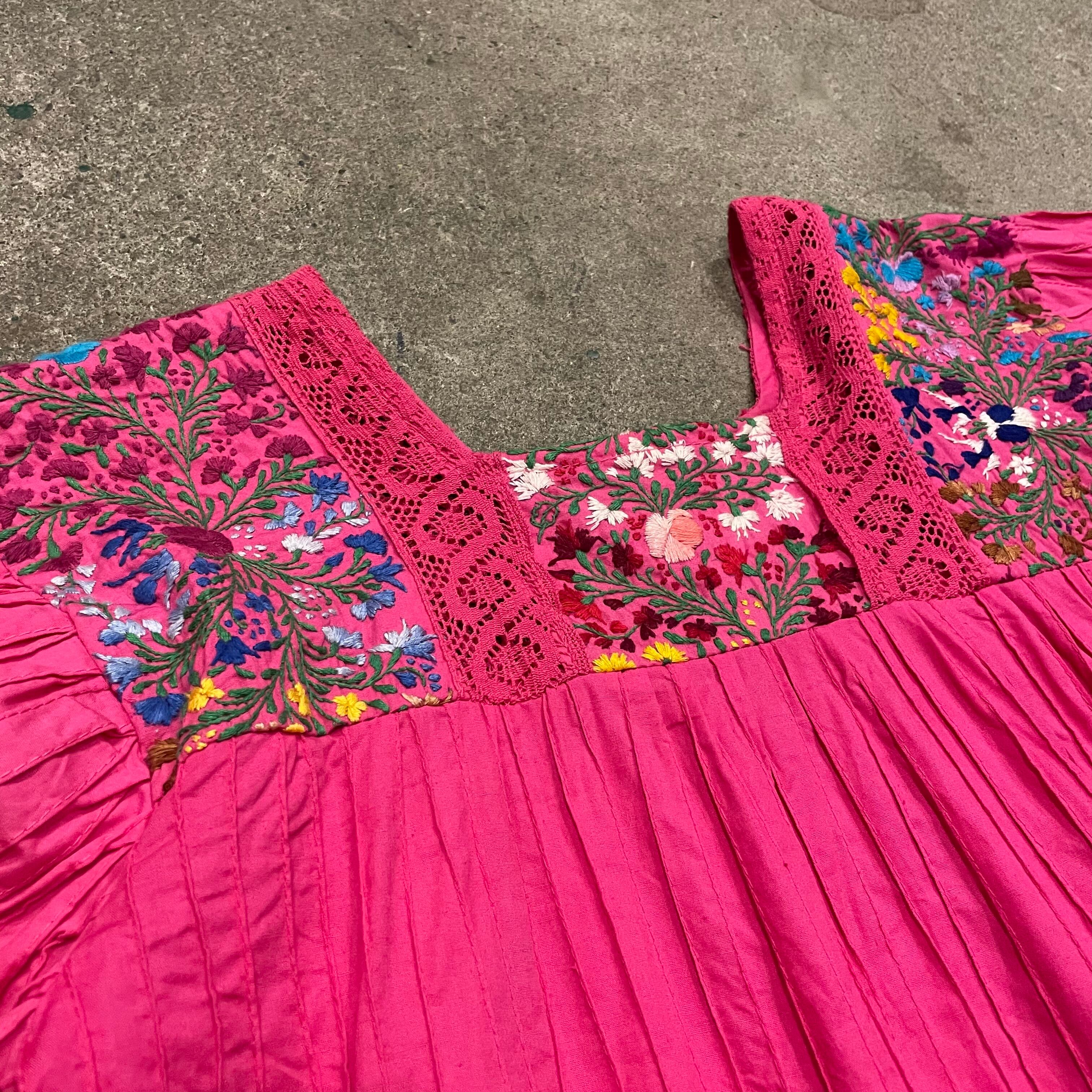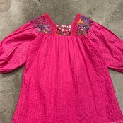 ビビッドなピンクにサンアントニーノ刺繍と全体にピンタックが施された手の込んだとても美しい一着です。