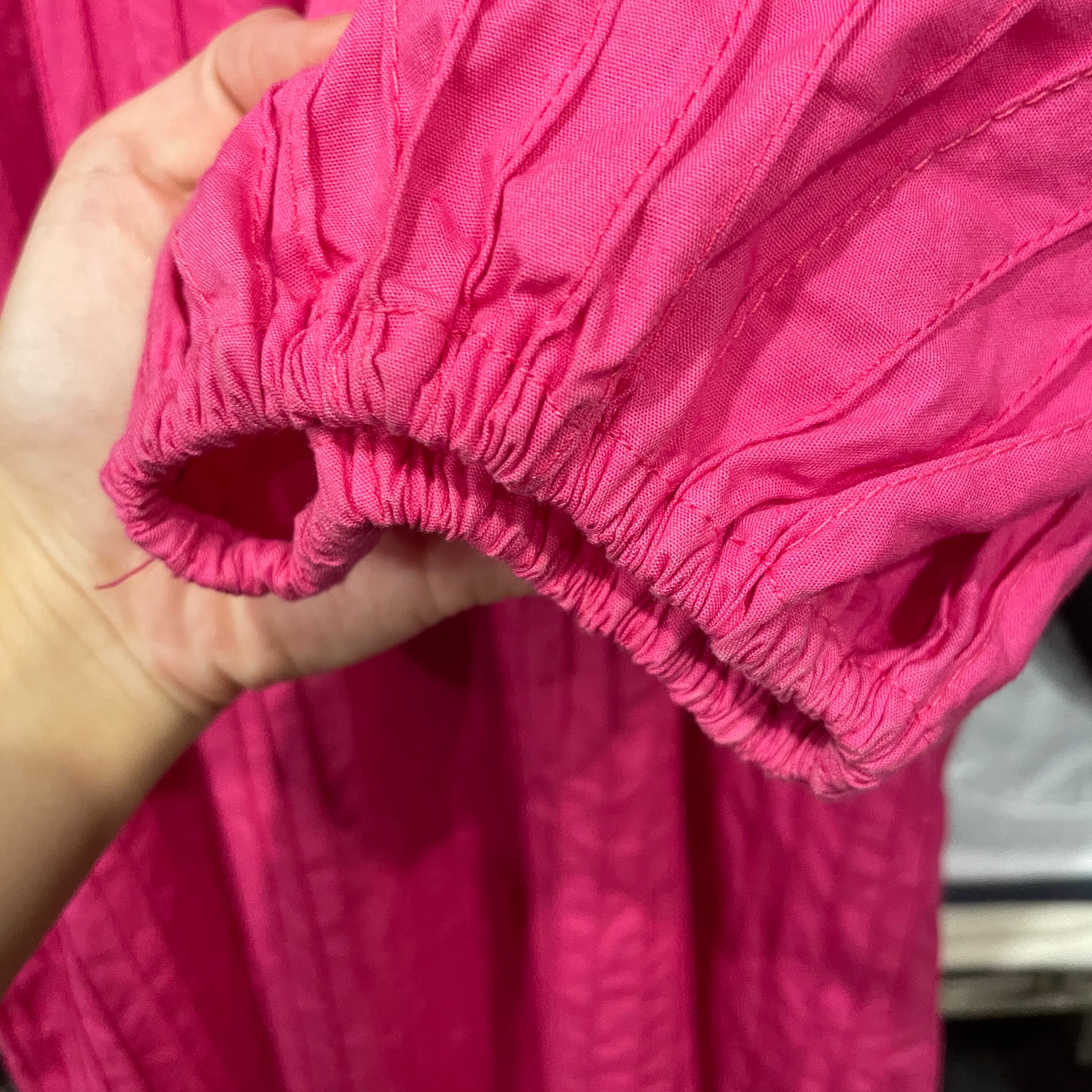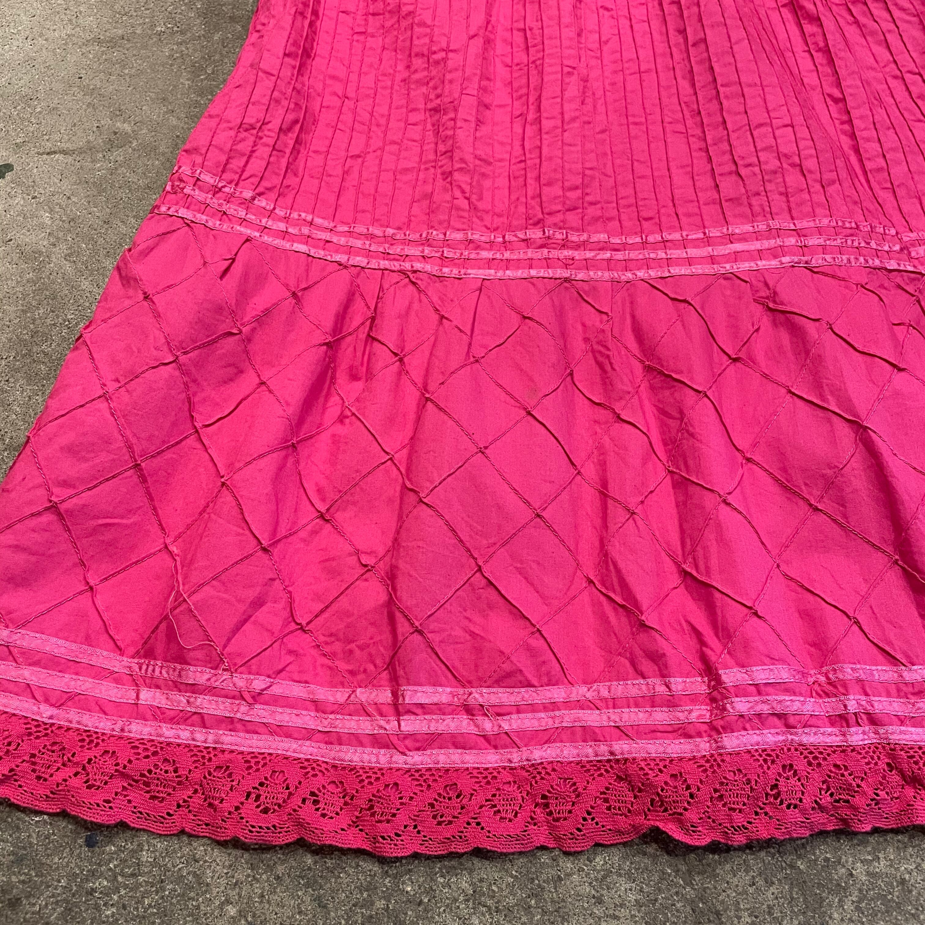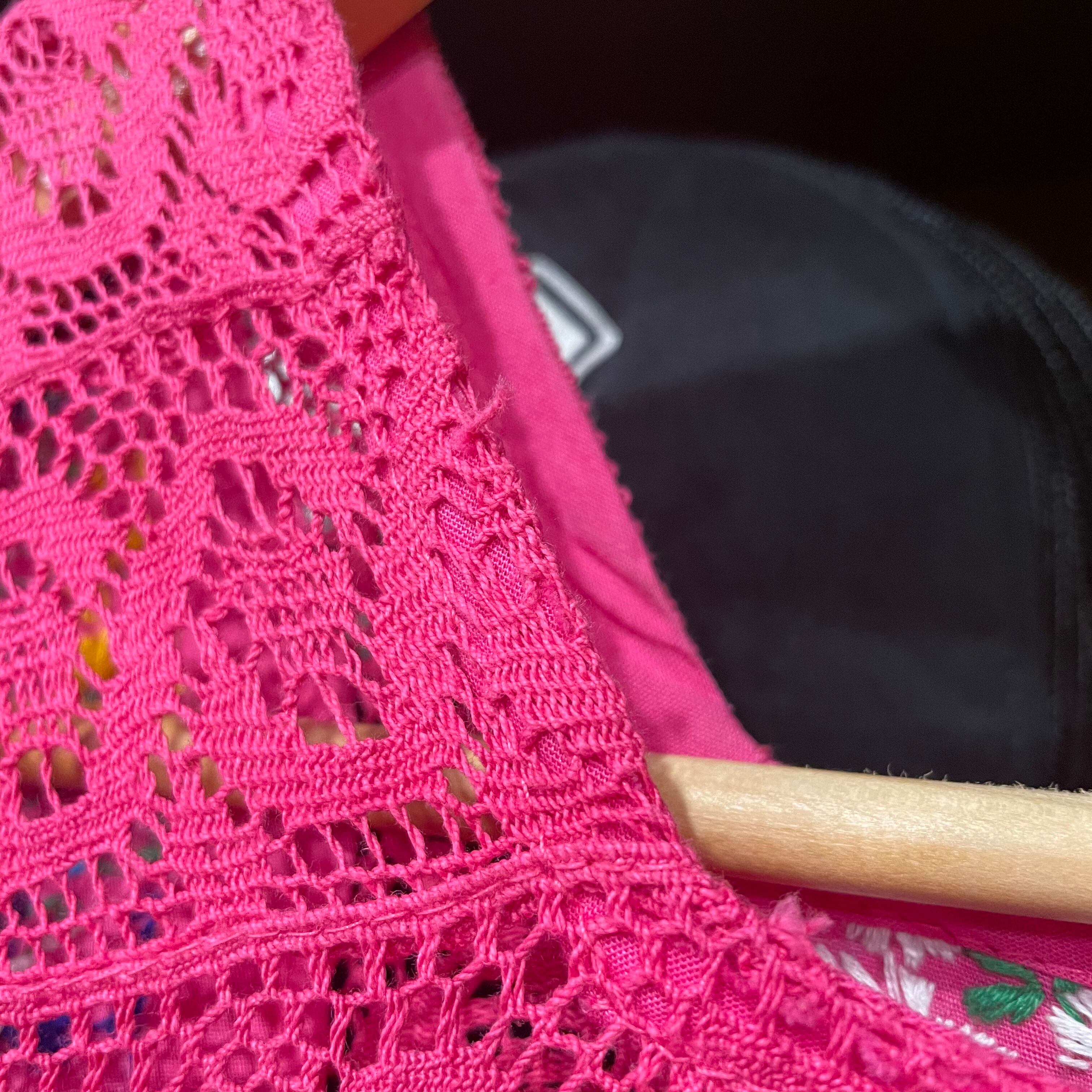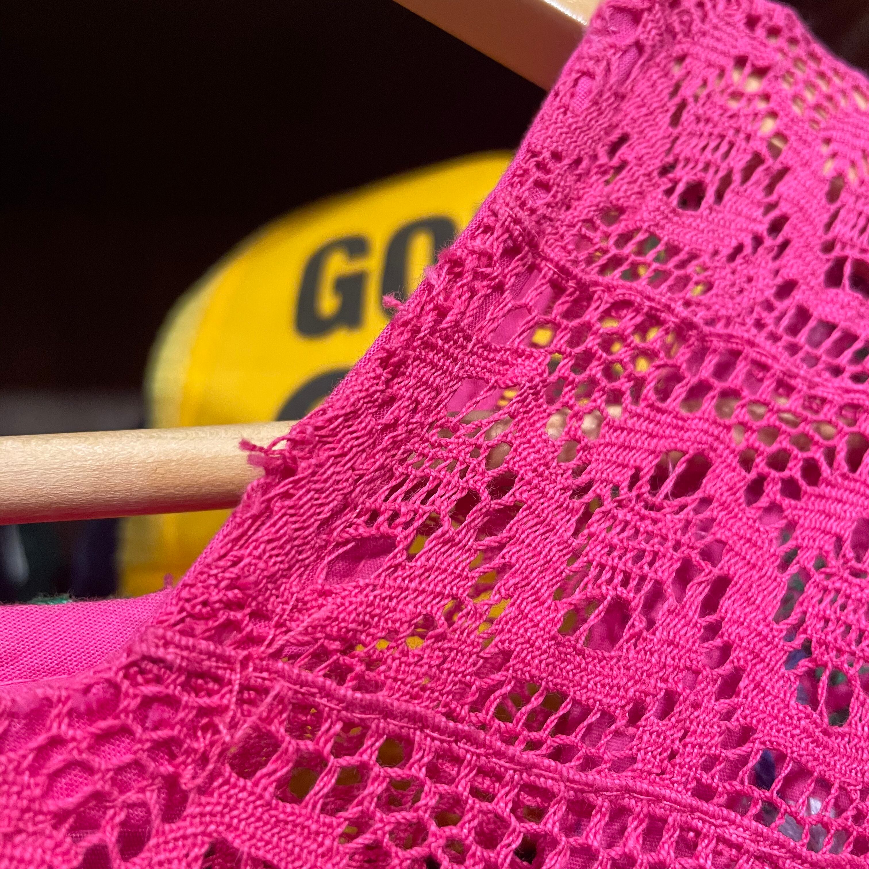 ビビッドなピンクにサンアントニーノ刺繍と全体にピンタックが施された手の込んだとても美しい一着です。